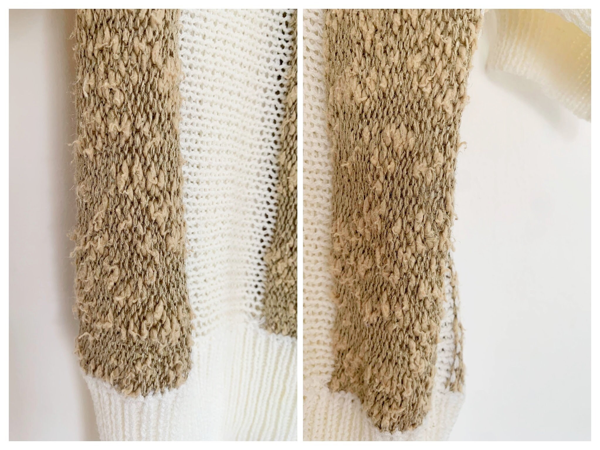 Condition: The bulky knit fabric was probably smoother before and it shows some texture, however this oversized sweater is in great vintage condition.