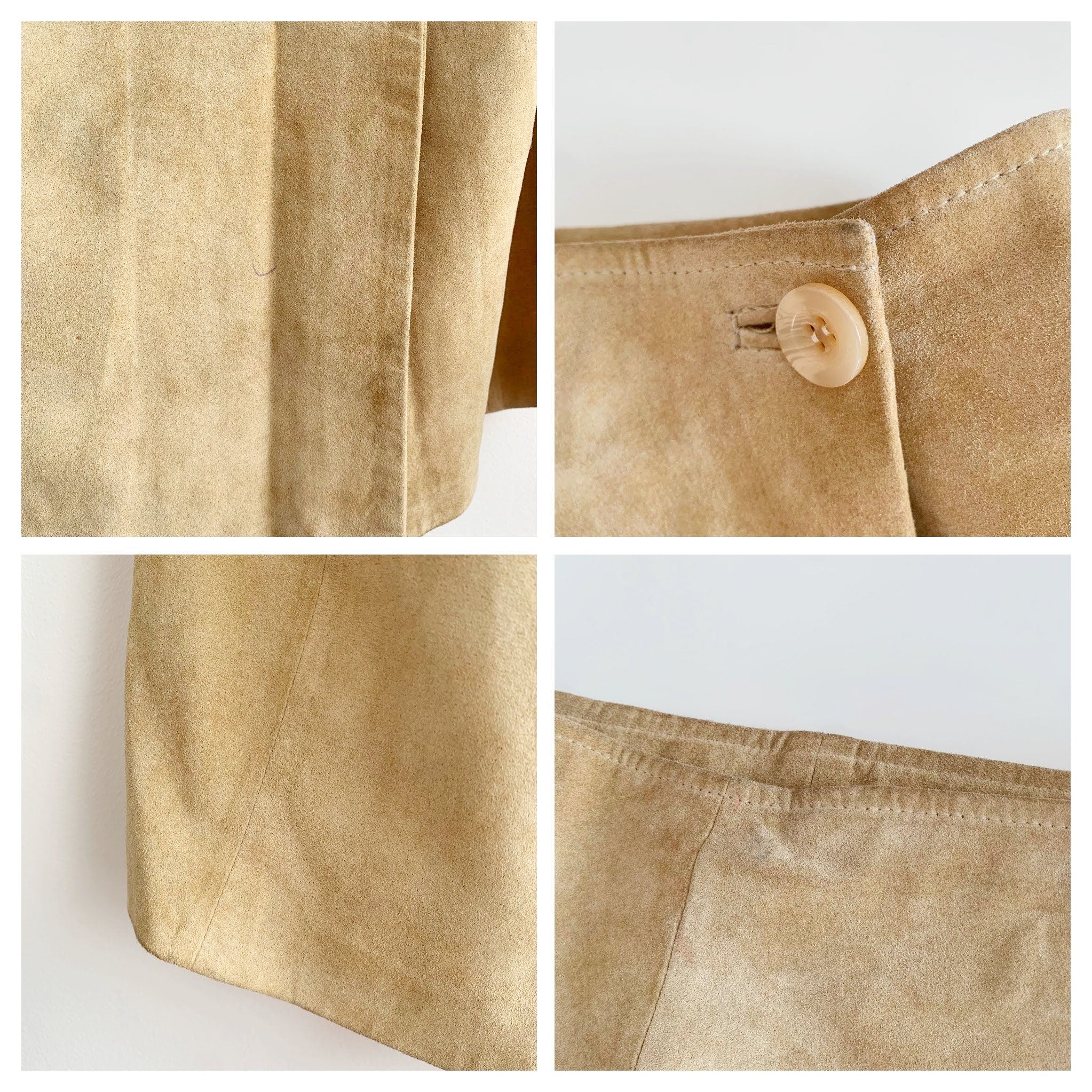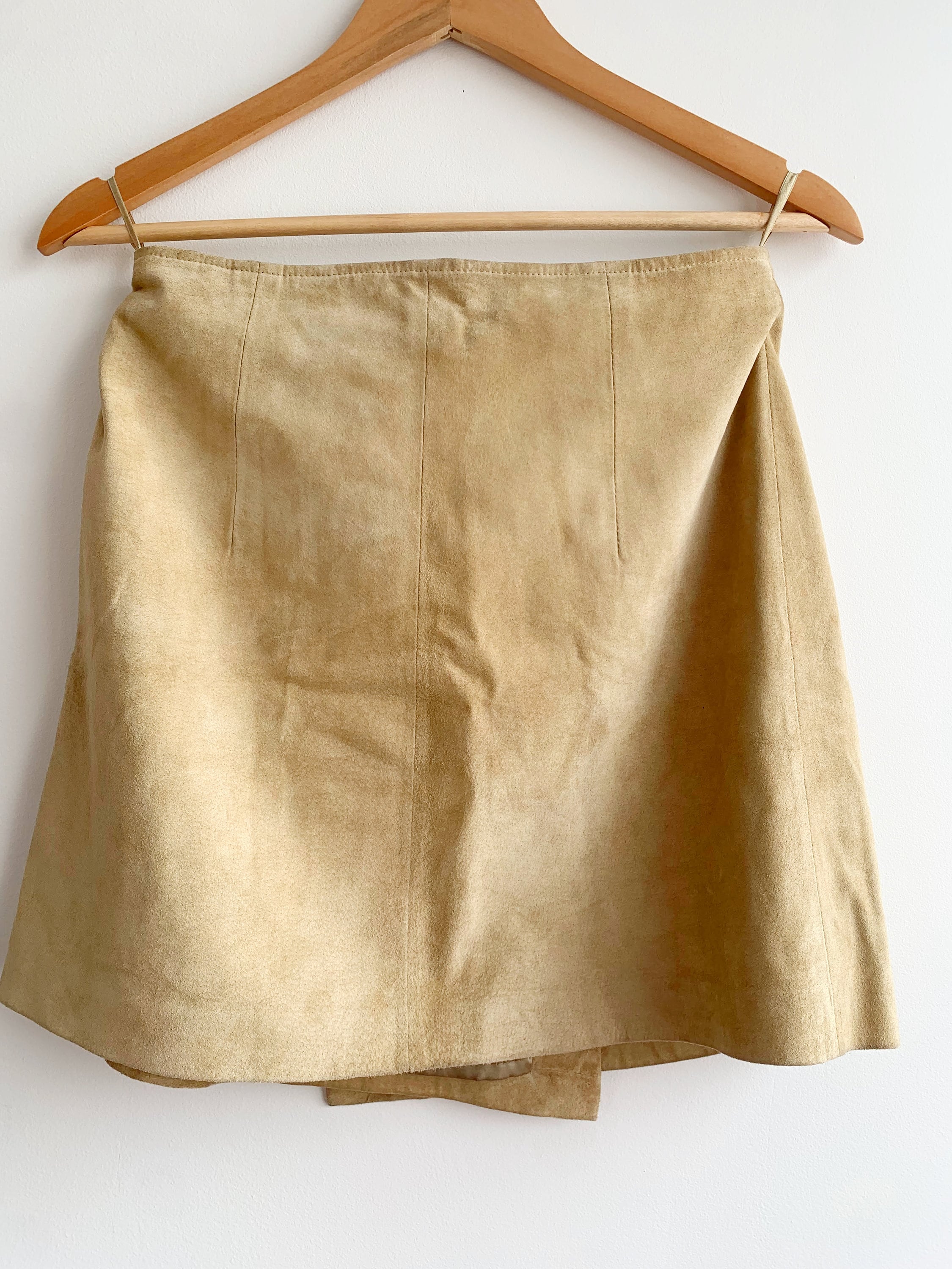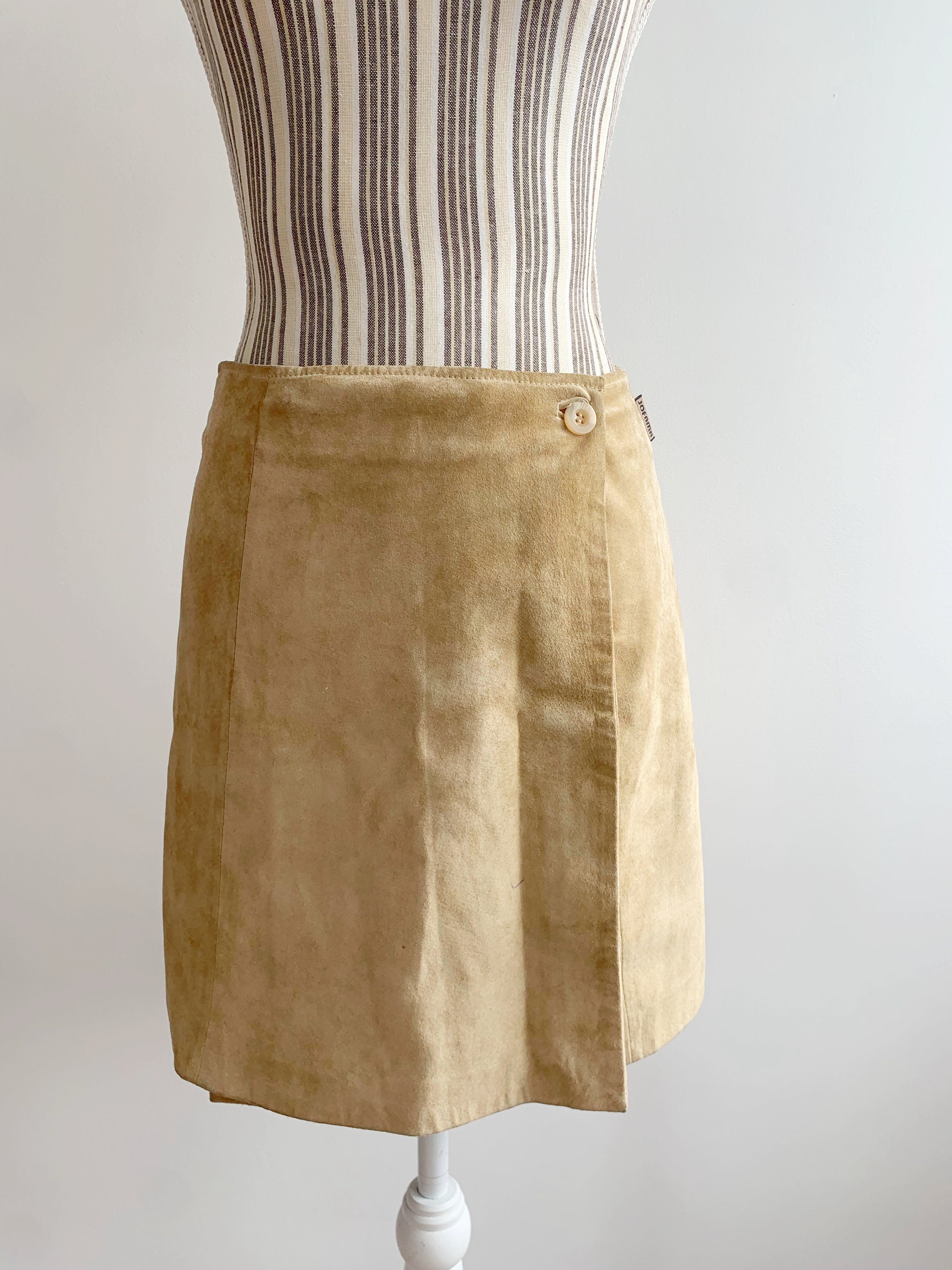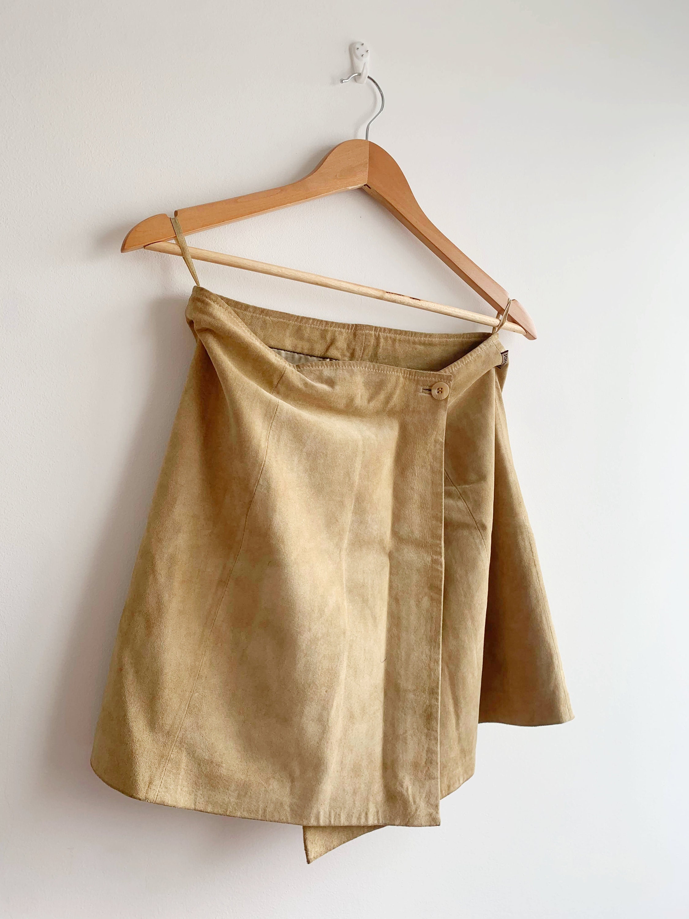 This is a vintage 90s suede mini skirt with button up closure at the side. This suede wrap skirt is made of super soft genuine suede leather and polyester lining. This genuine leather mini skirt is by the brand Jofama. The size marked is 38 M , it fits like size S/M. The button was moved by half an inch from it's original place to make the skirt smaller. Please check the measurements below.