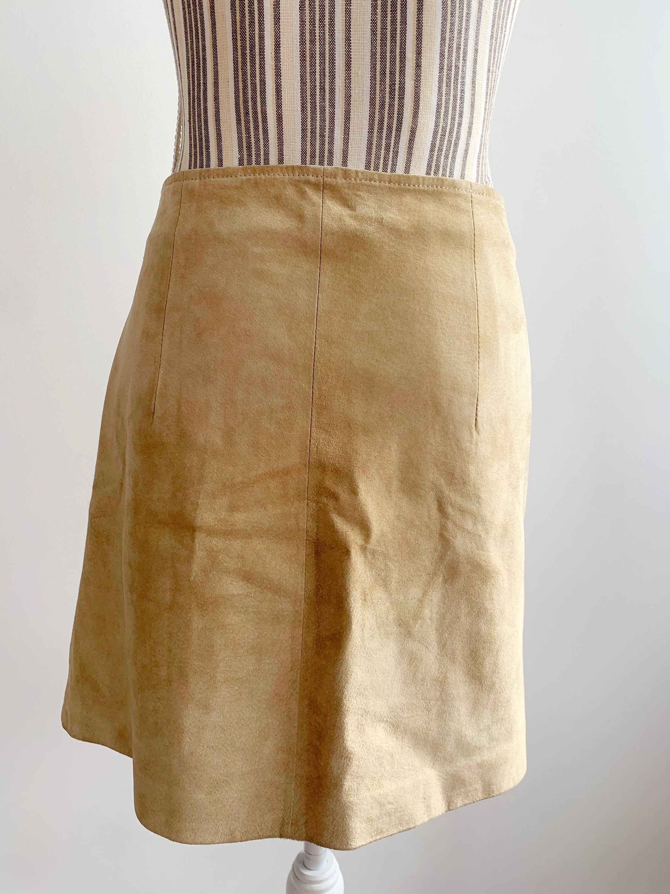 Condition: The suede mini skirt was much loved and shows some creases and marks on the suede leather surface, as well as some darkening around the edges, which I have tried to capture in the close up photos.