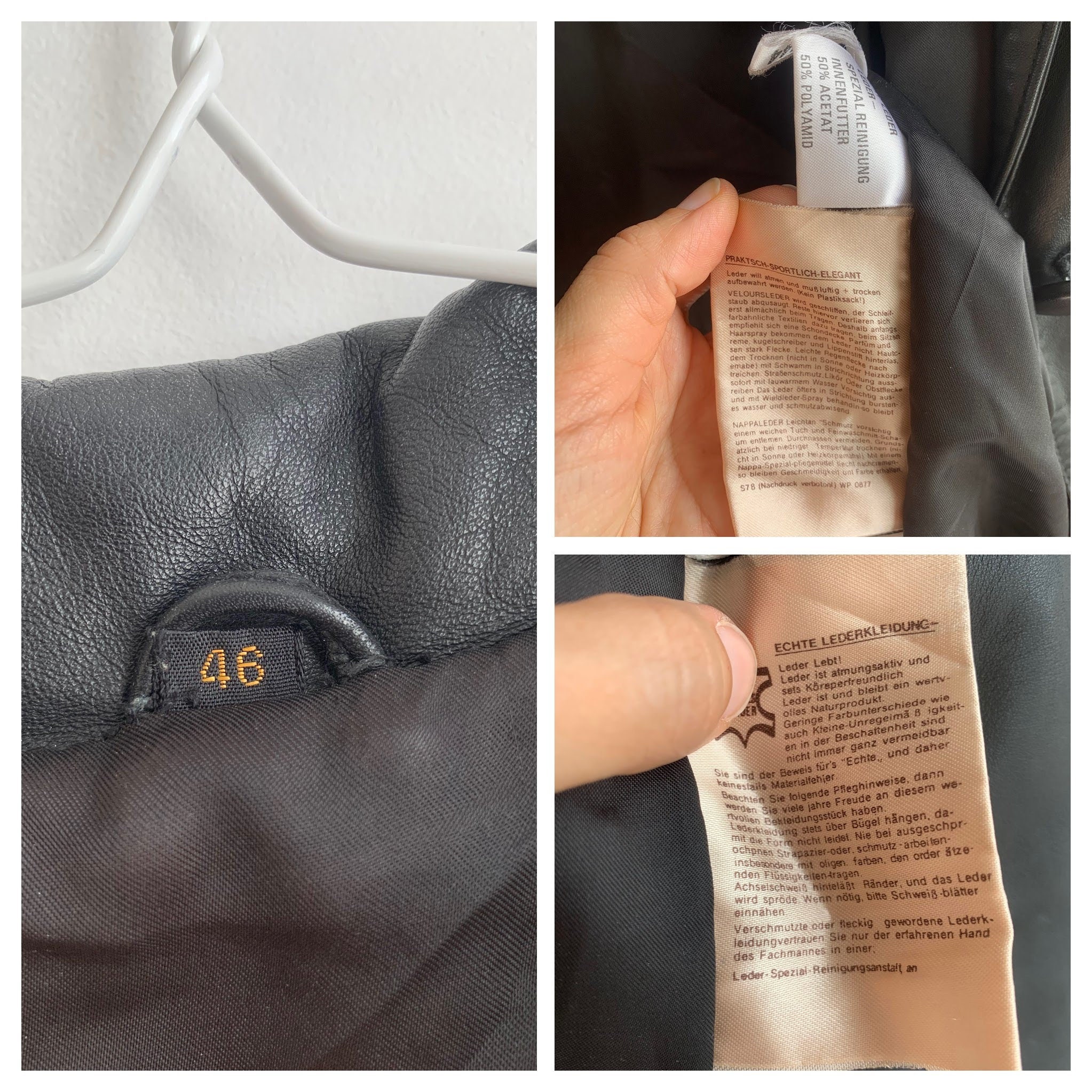 Condition: This oversized leather jacket is beautifully preserved with some signs of wear. The leather has become softer around the sleeves and the pockets. It shows some scratches here and there, which I have tried to capture in the close up photos.
