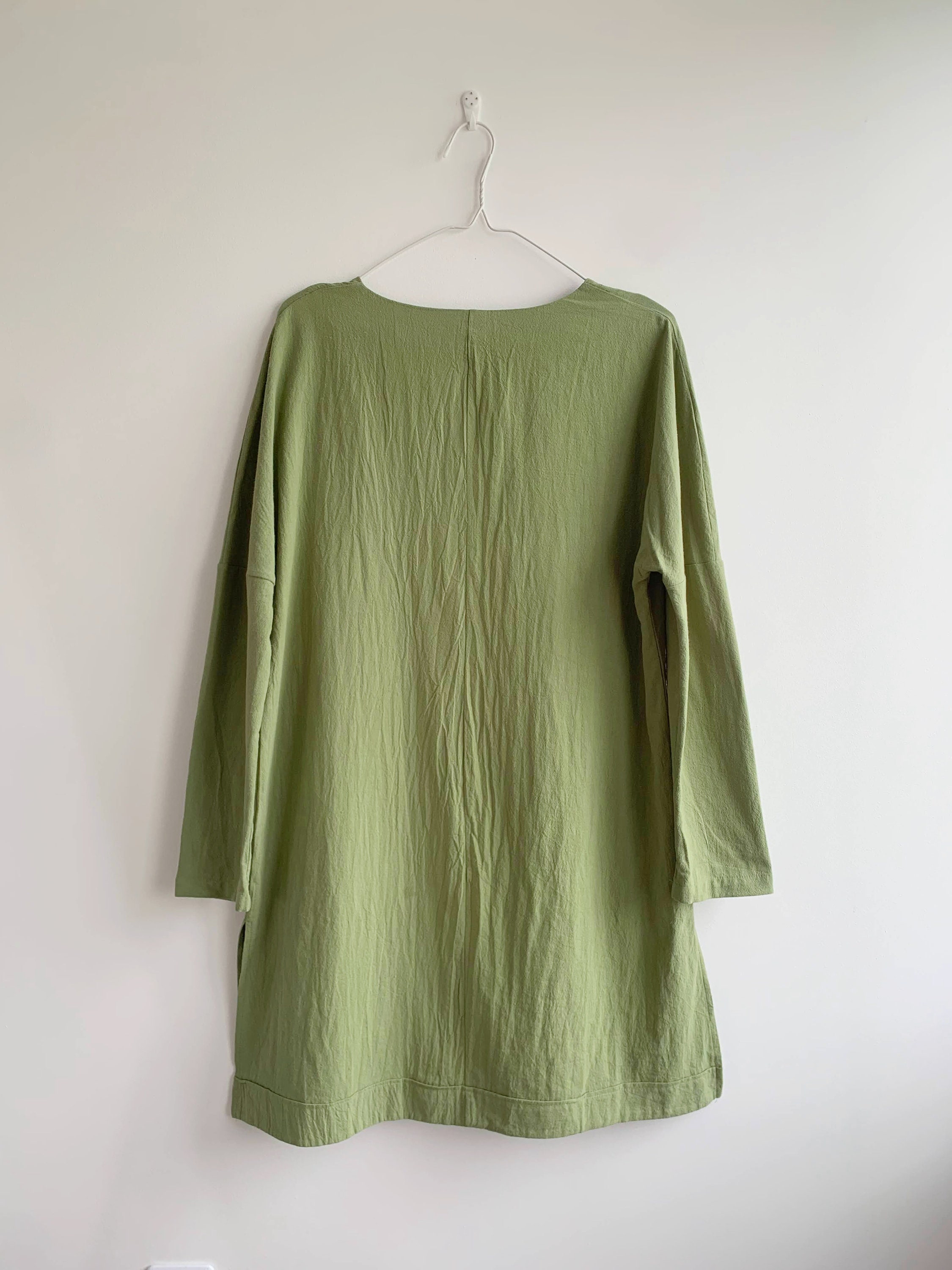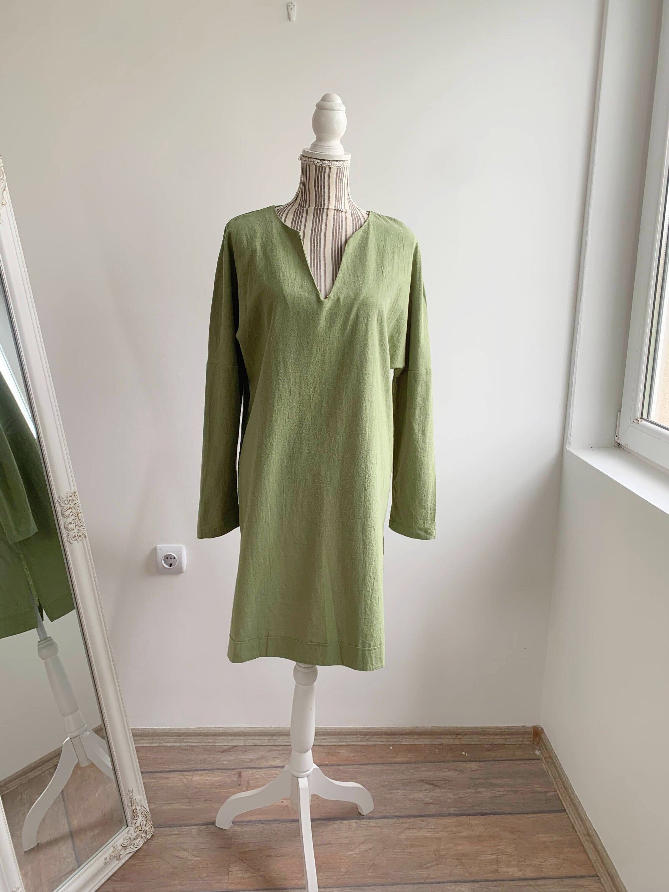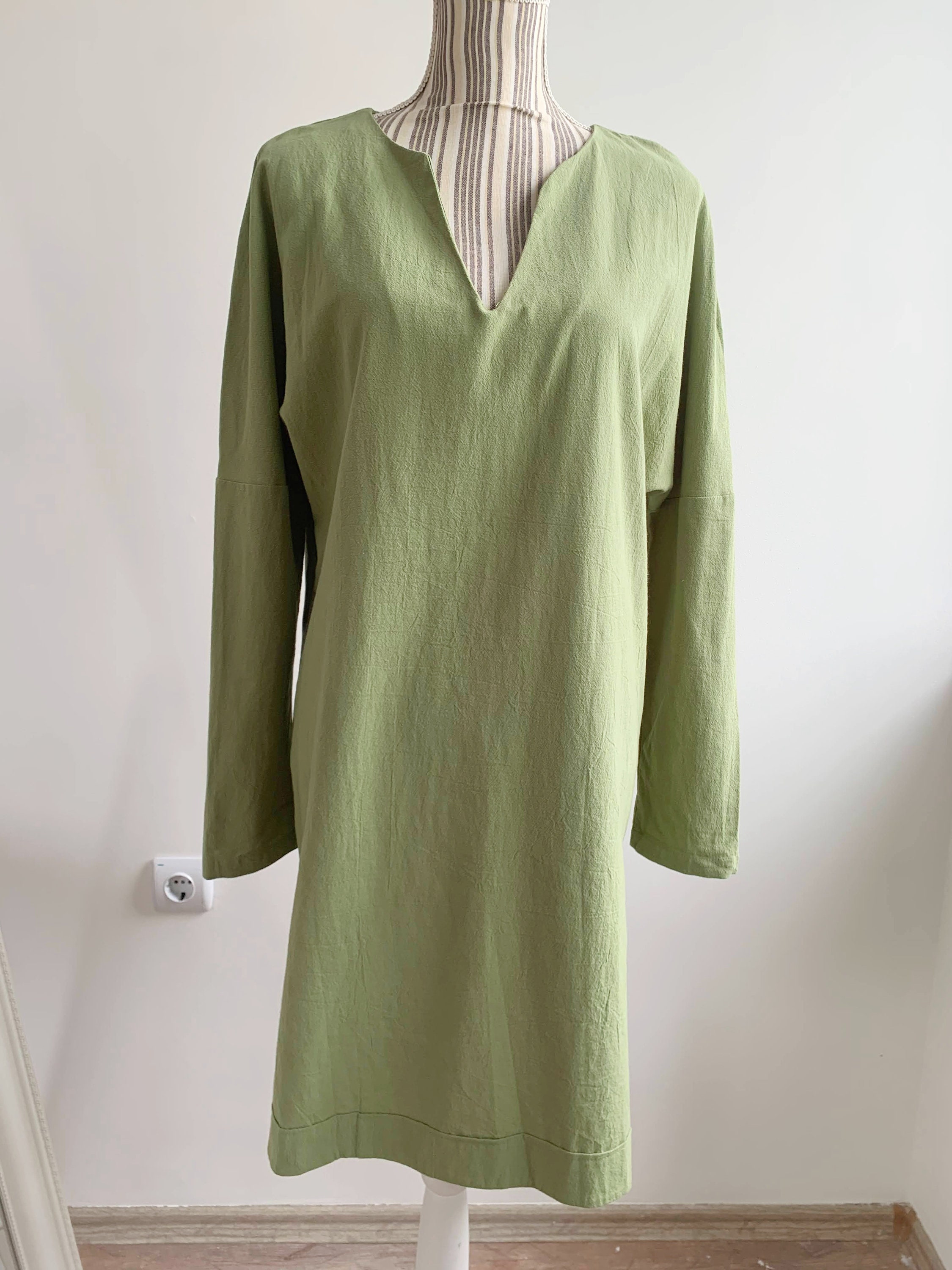 This is a vintage sage green cotton kaftan tunic with v neck and long sleeves. This boho tunic top has side slits and relaxed fit silhouette. You can wear this cotton tunic top a beach cover up, lounge wear or sleepwear. This boho chic kaftan shirt is so comfortable to wear. It has a comfy loose fit. This bohemian shirt is size M. Please check the measurements below.
