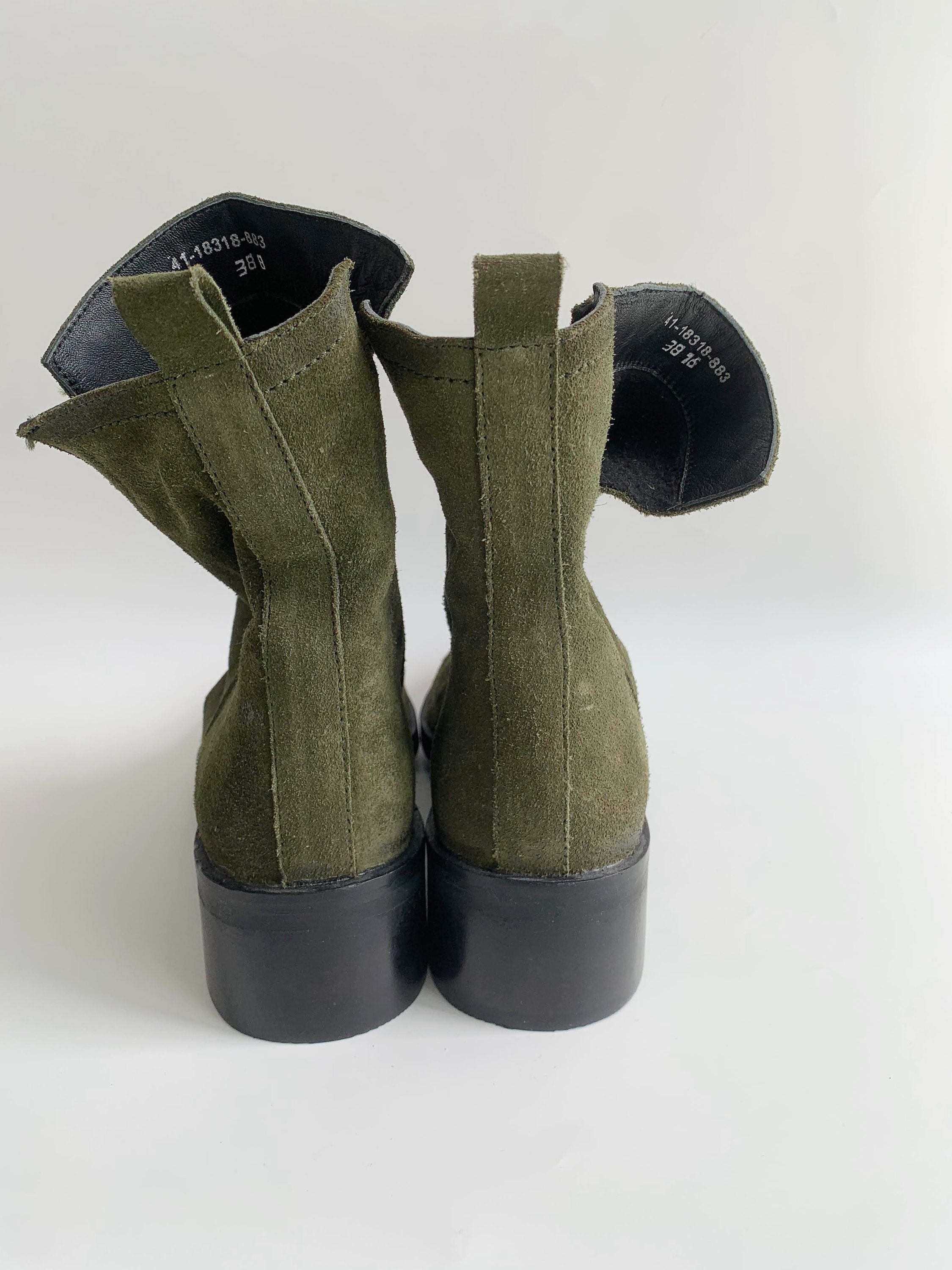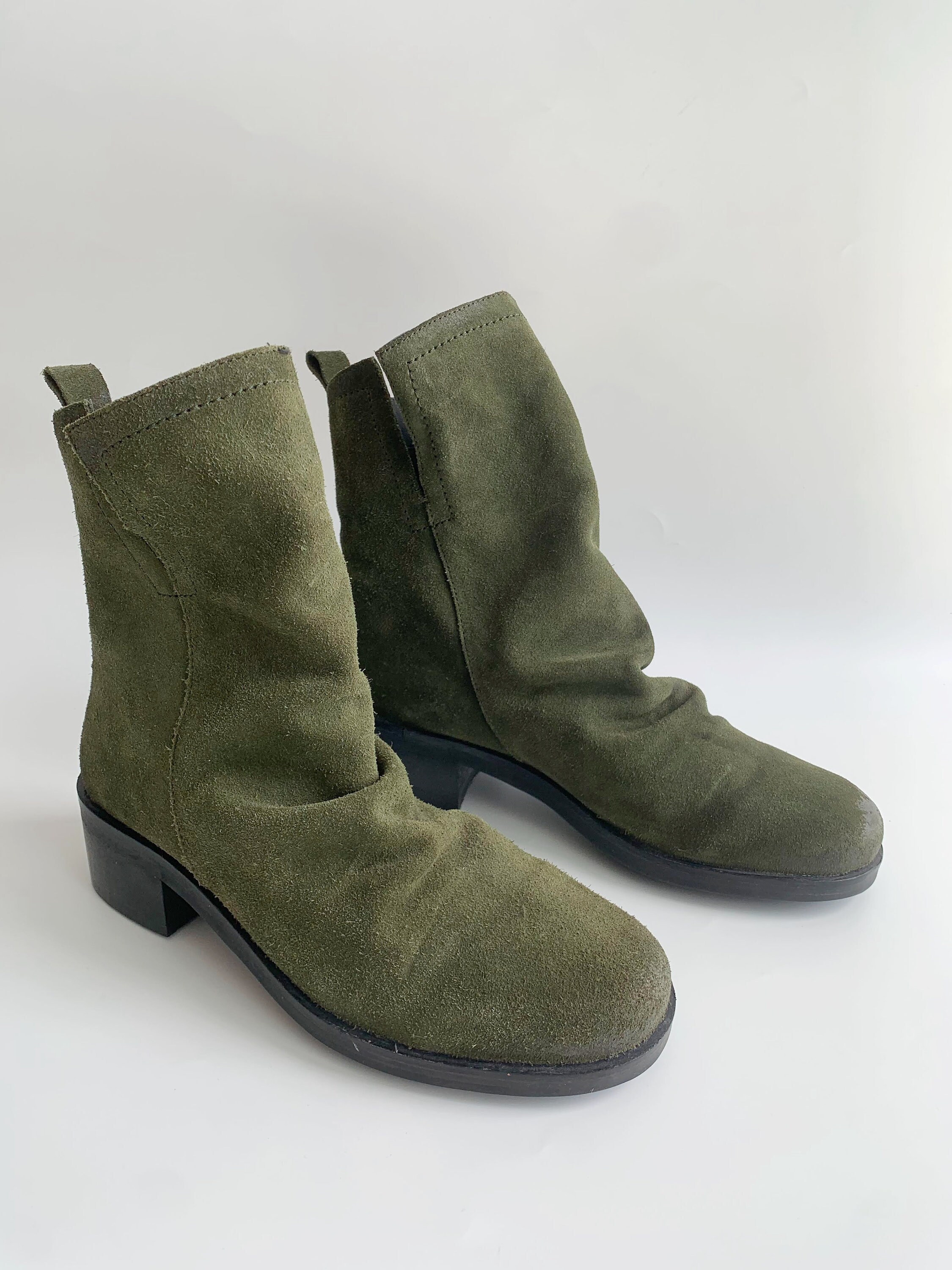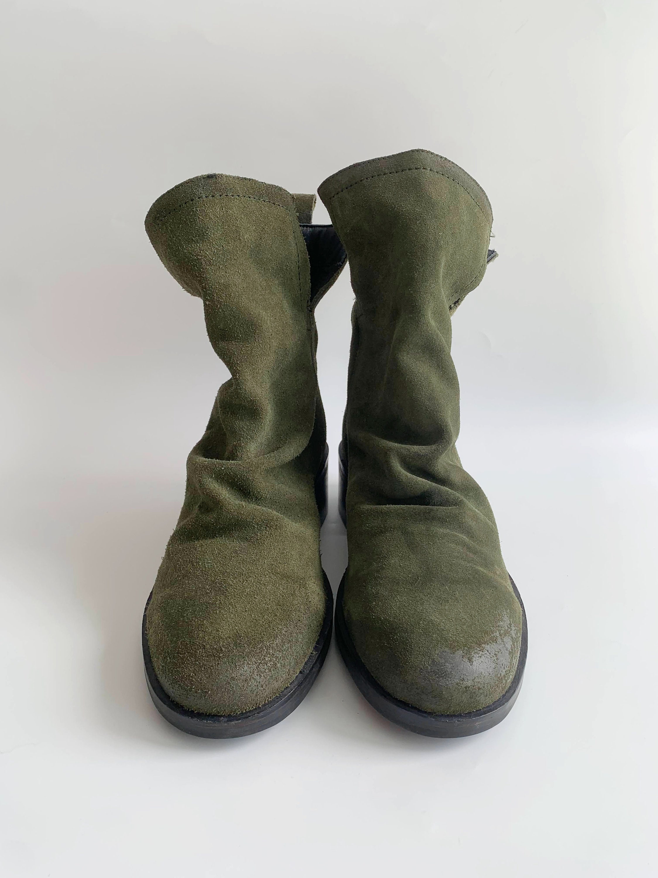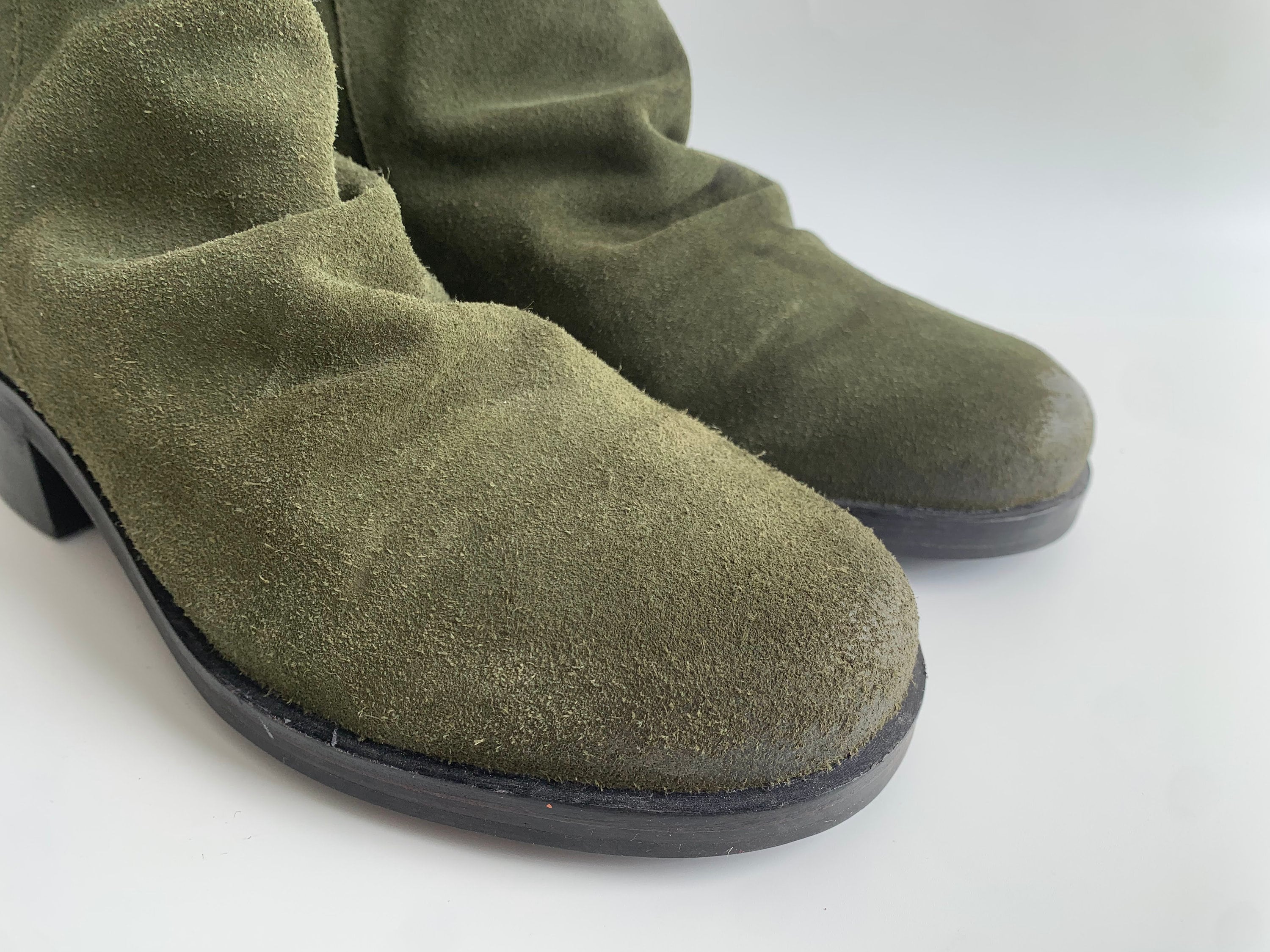 Condition: These green suede boots are show some signs of wear - there are some marks, scratches and creases on the real suede leather, which I have tried to capture in the close up photos