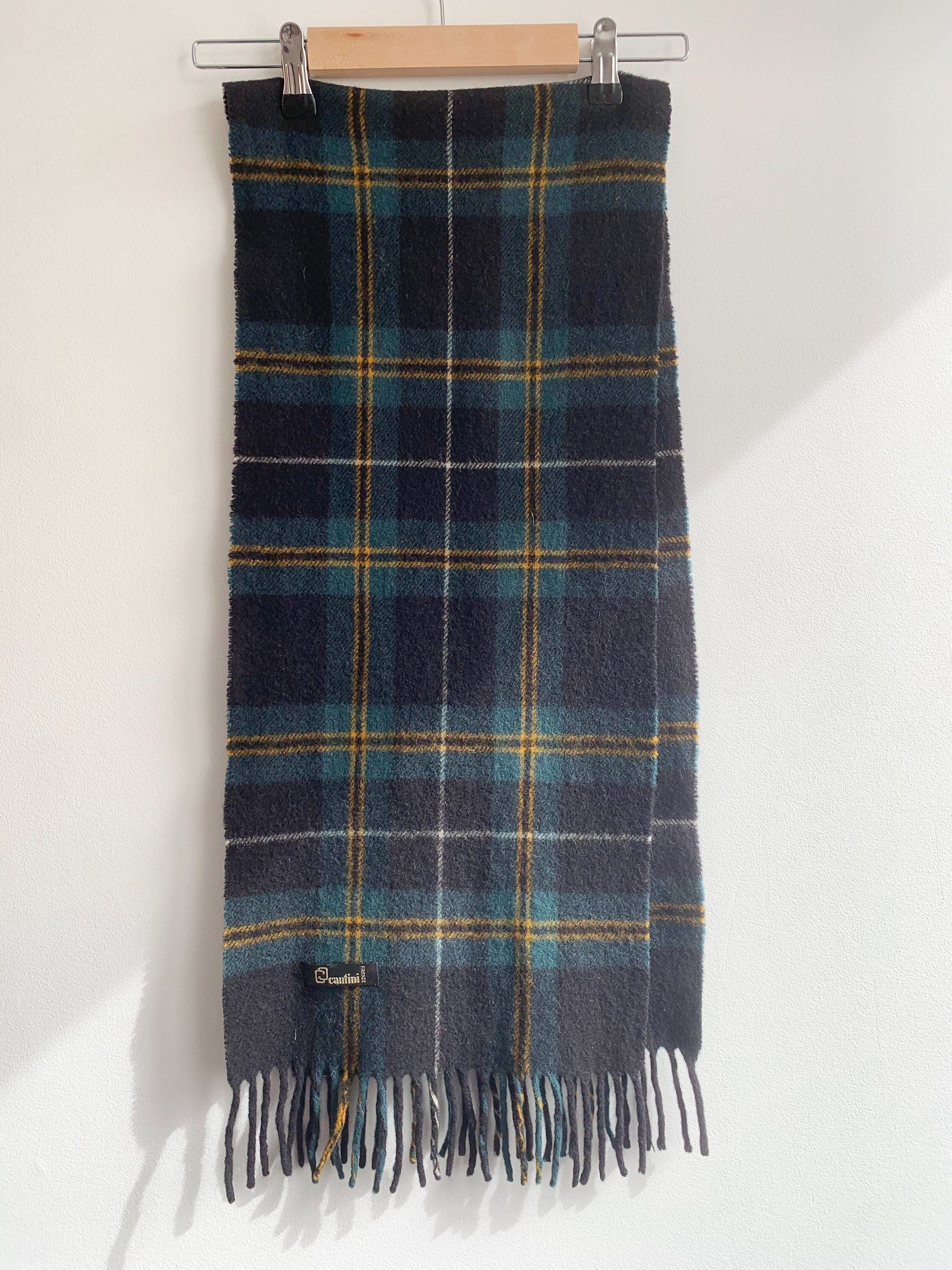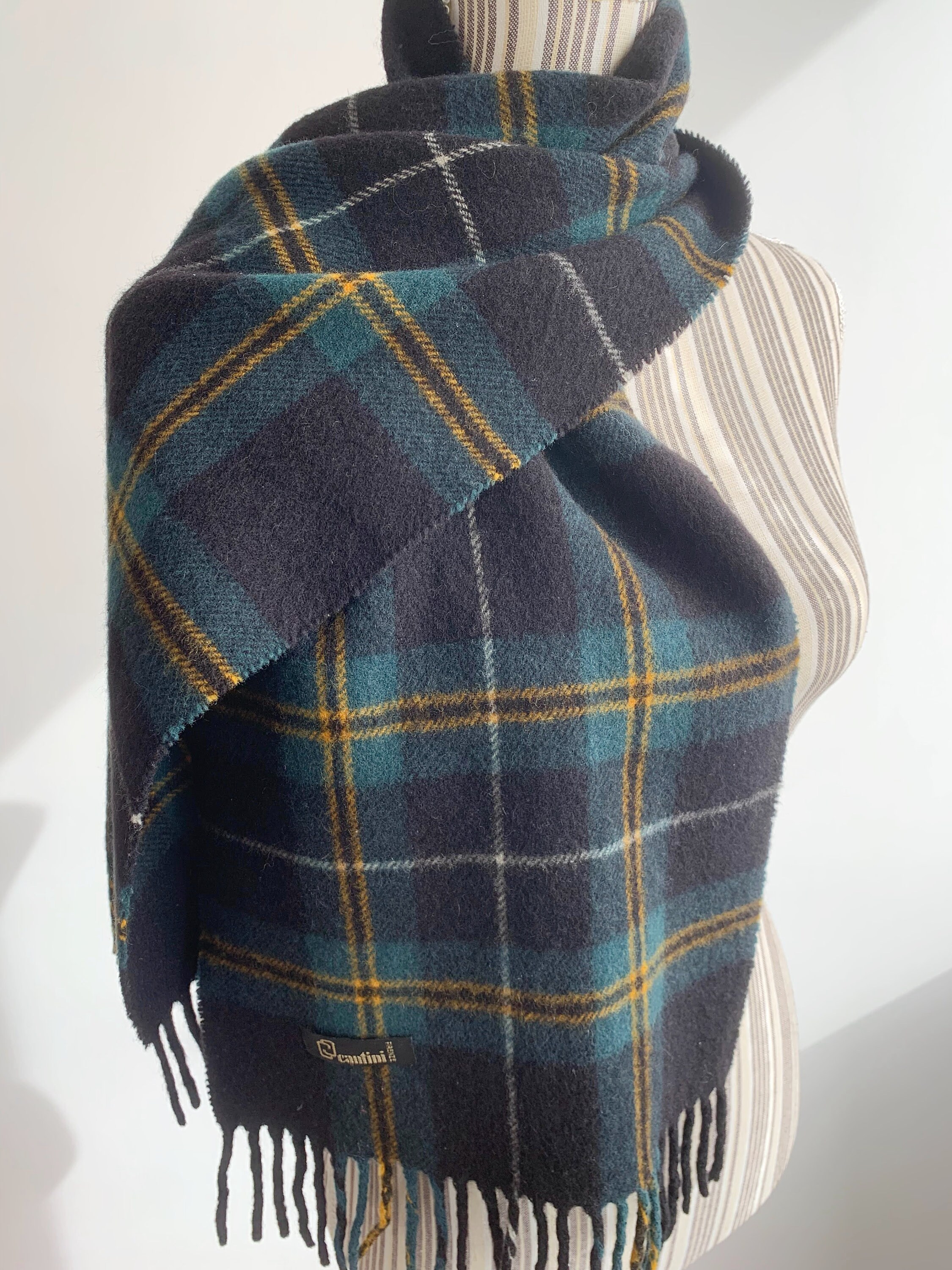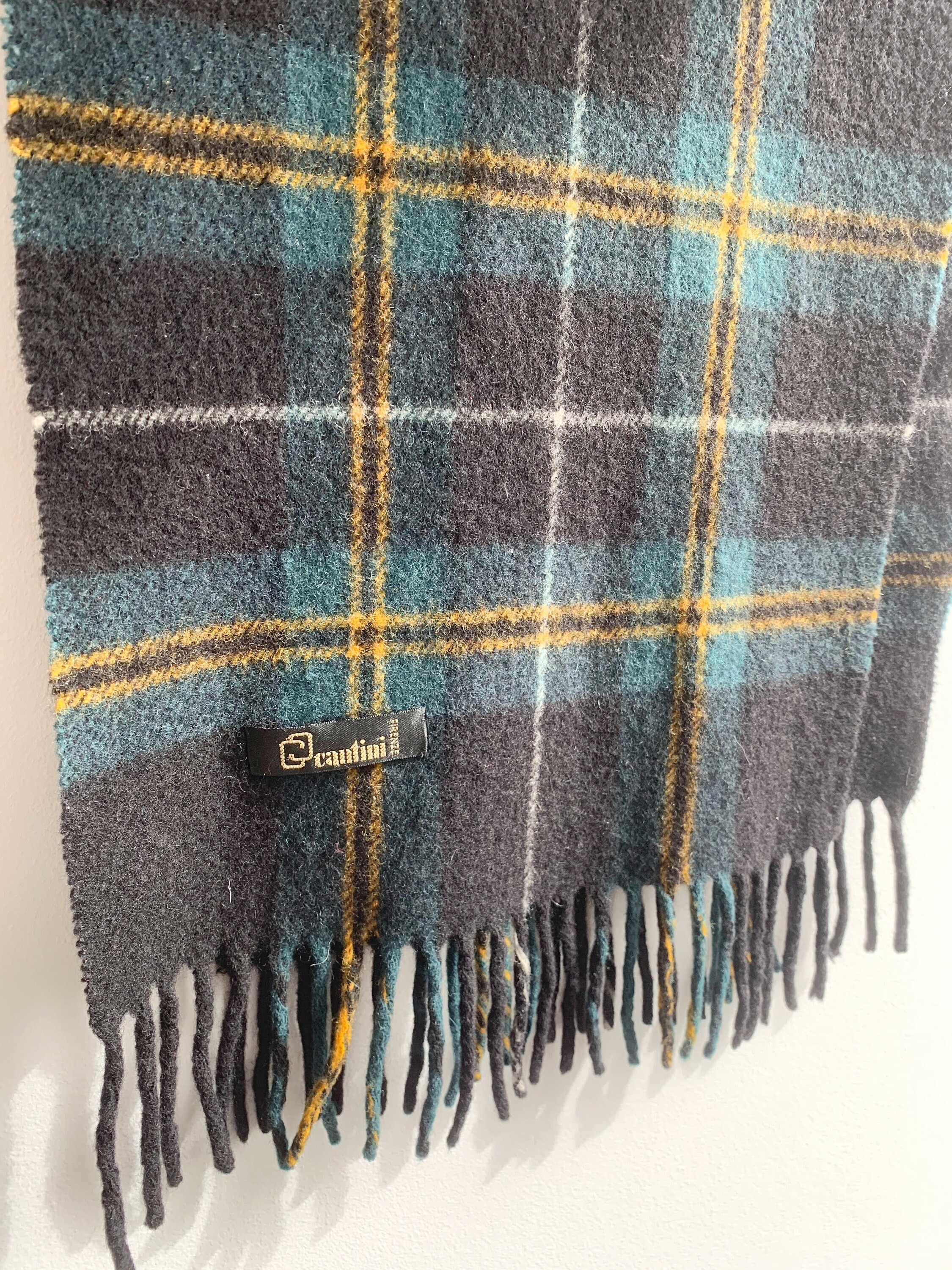 This is a vintage 90s soft and fluffy retro scarf in black, pine green and mustard yellow. This unisex warm wool scarf is suitable for both men and women. This plaid scarf has a simple print in autumn colors, it will keep you warm and cozy during the cold days. Beautiful vintage gift for the fall and winter season.
