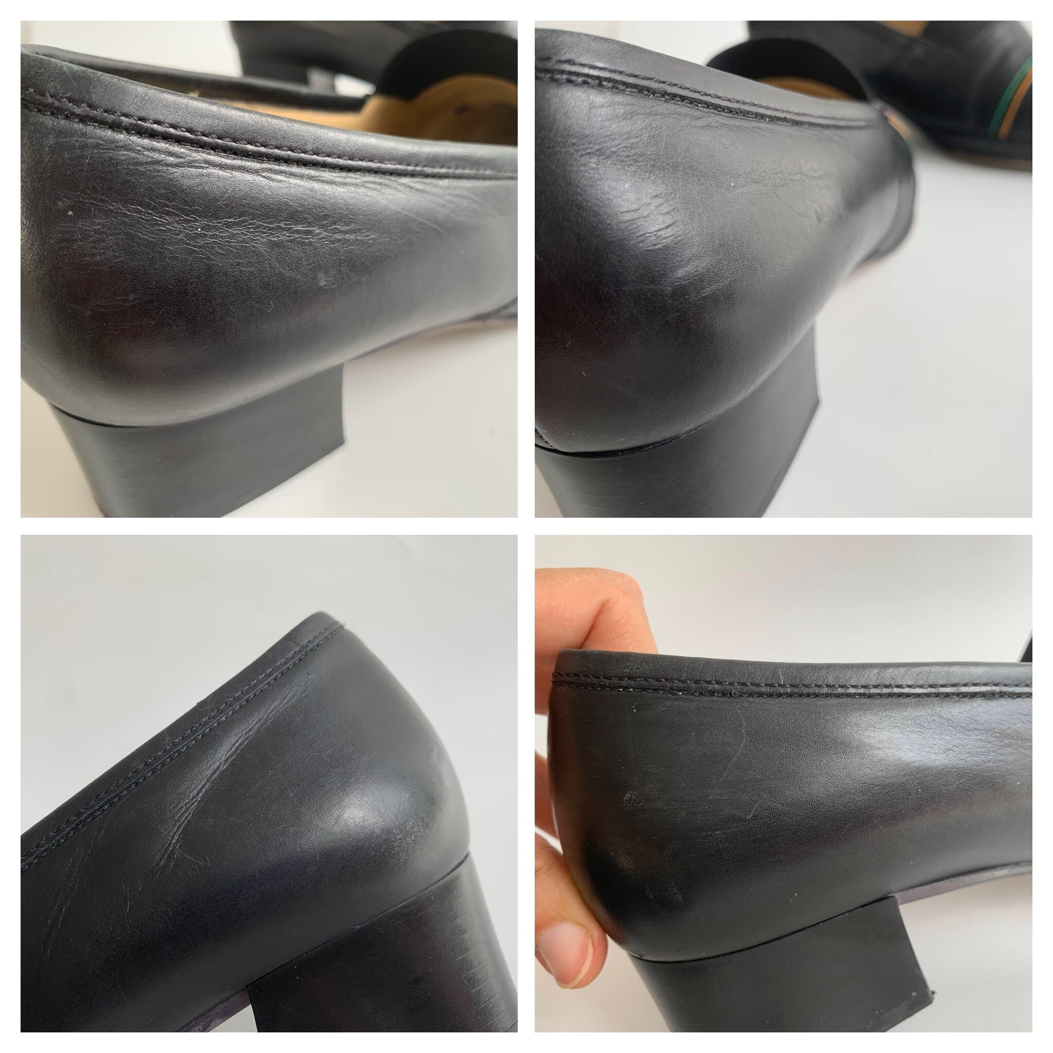 Condition: Beautiful vintage condition with some signs of wear. There are some scratches around the heels and some fine scratches at the toes, which I have tried to capture in the close up photos.