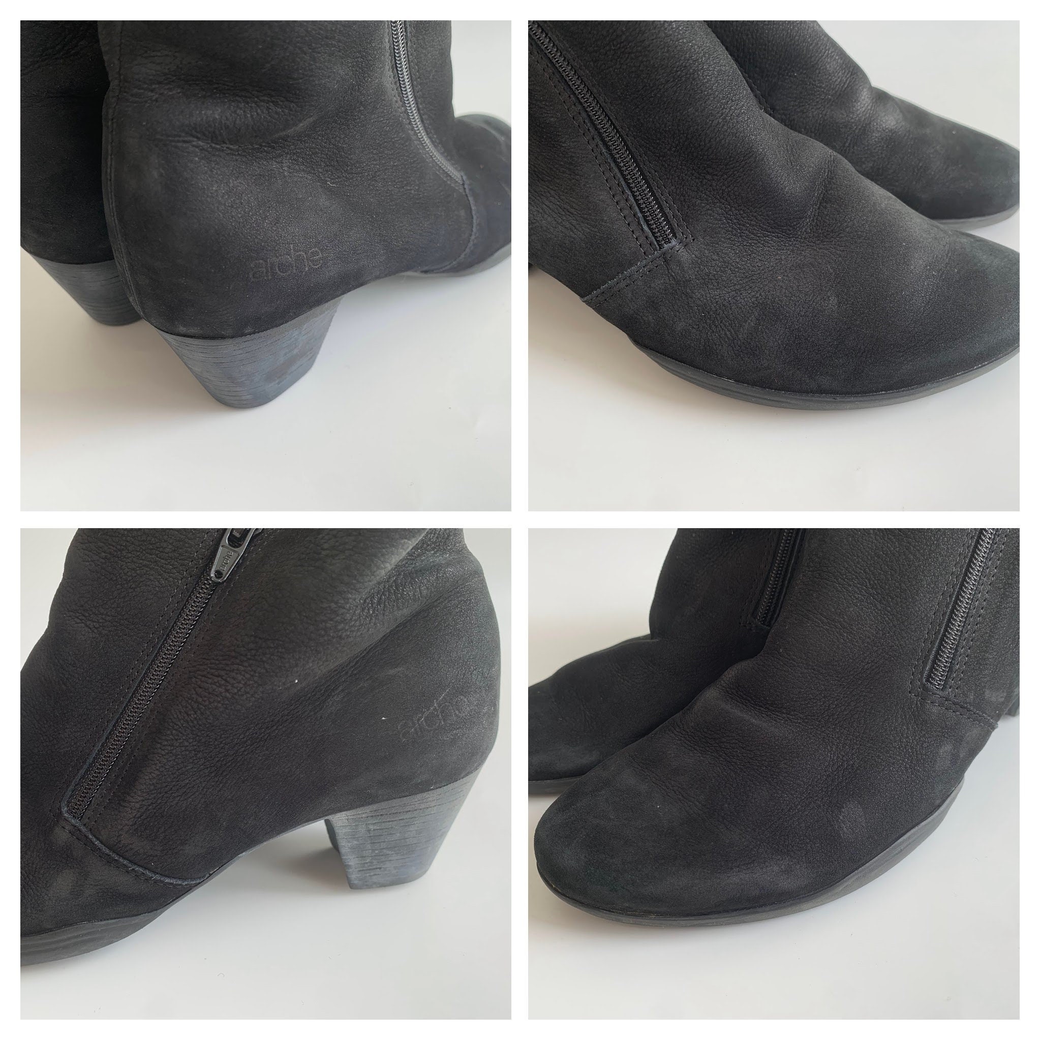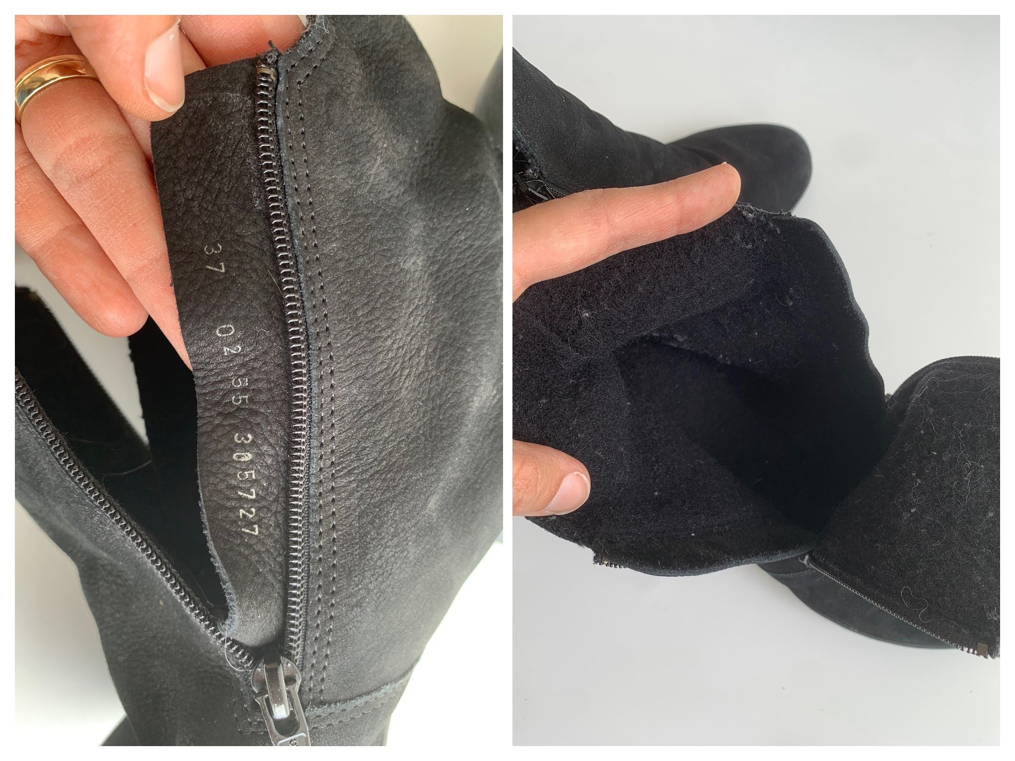 Condition: These black leather boots are in beautiful vintage condition with some signs of wear. There are marks on the suede leather surface, typical for suede leather items, which I have tried to capture in the close up photos.