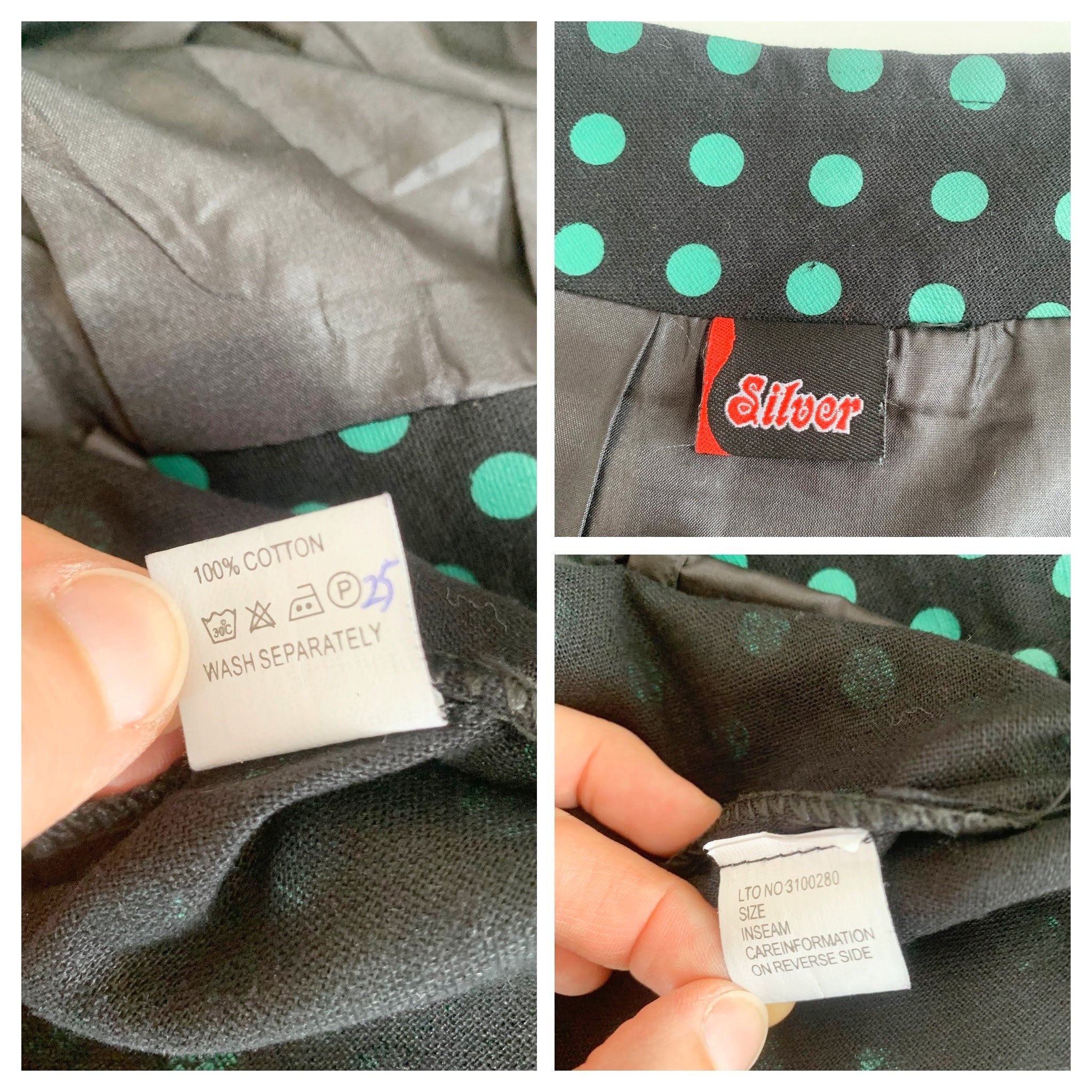 Condition: As the polka dots are printed on the black fabric, there are some fine cracks on some of the polka dots.