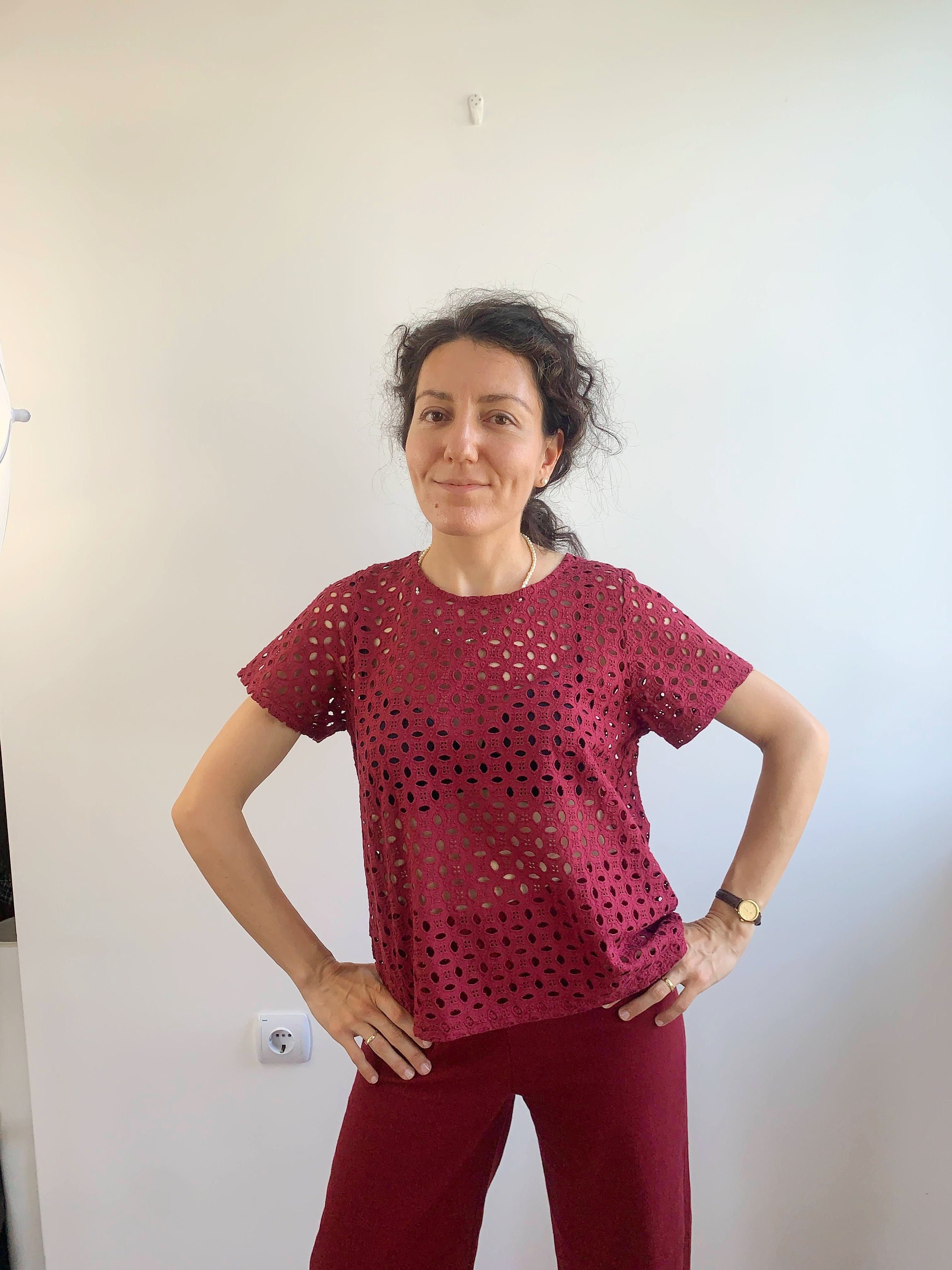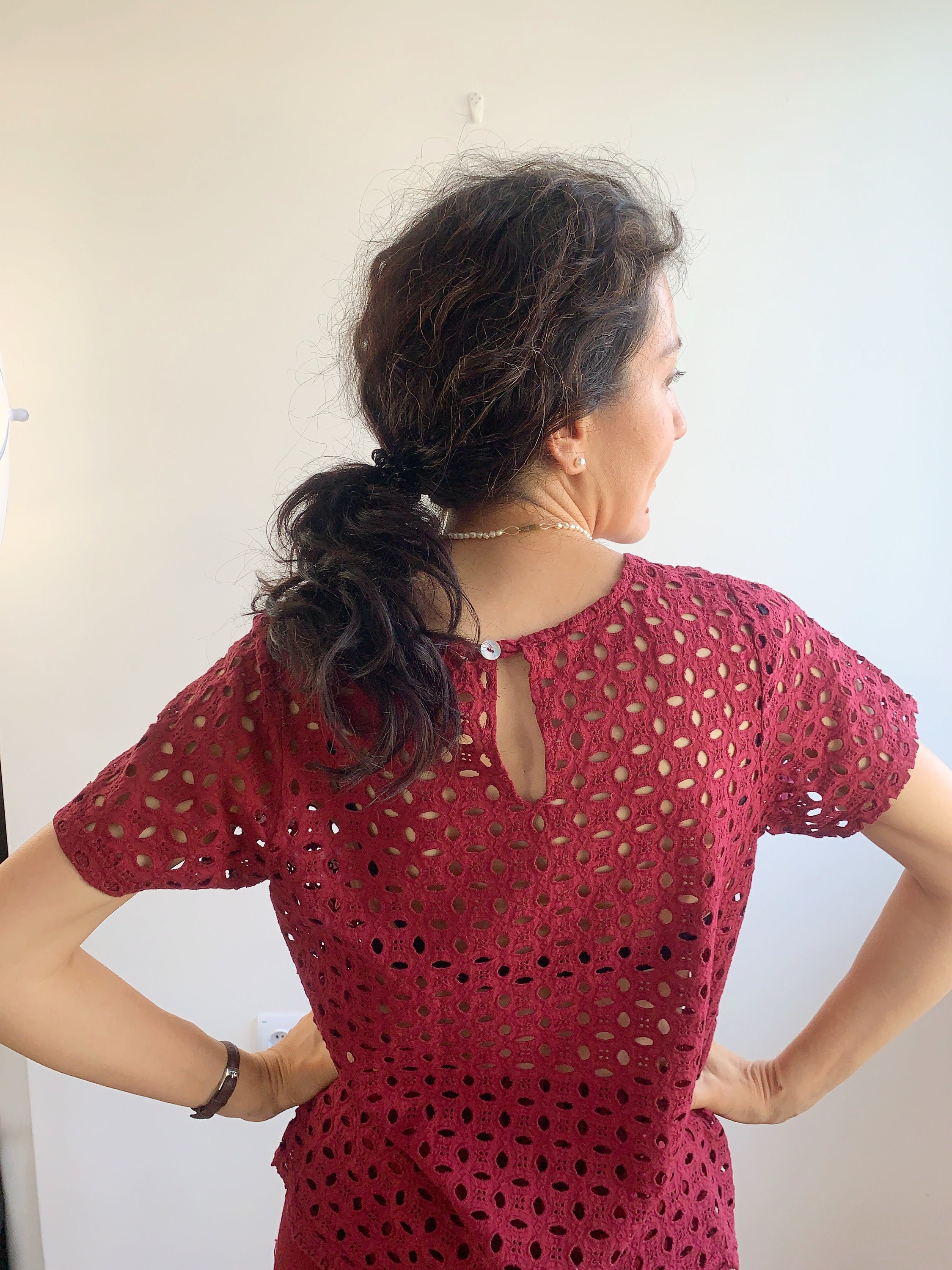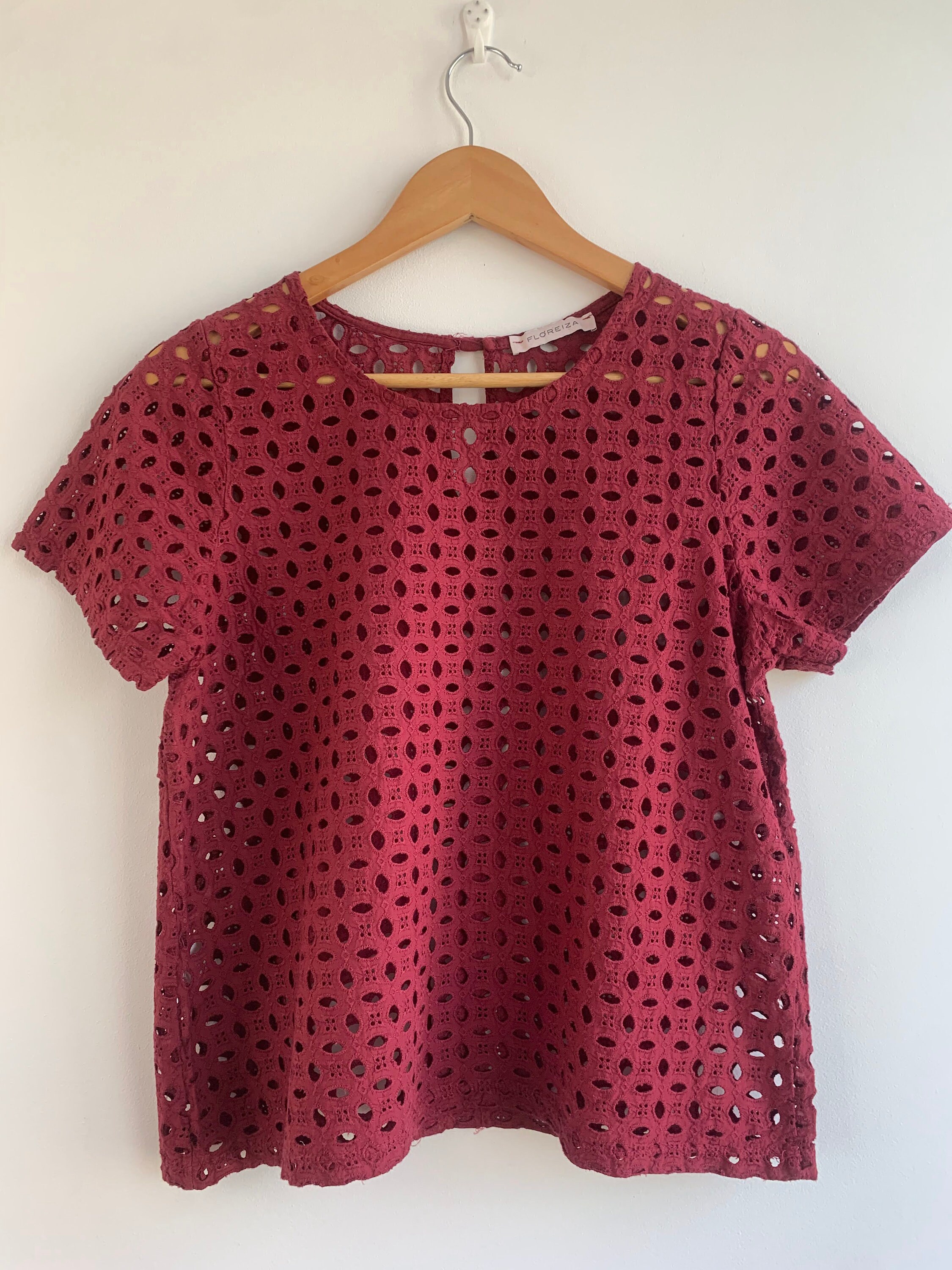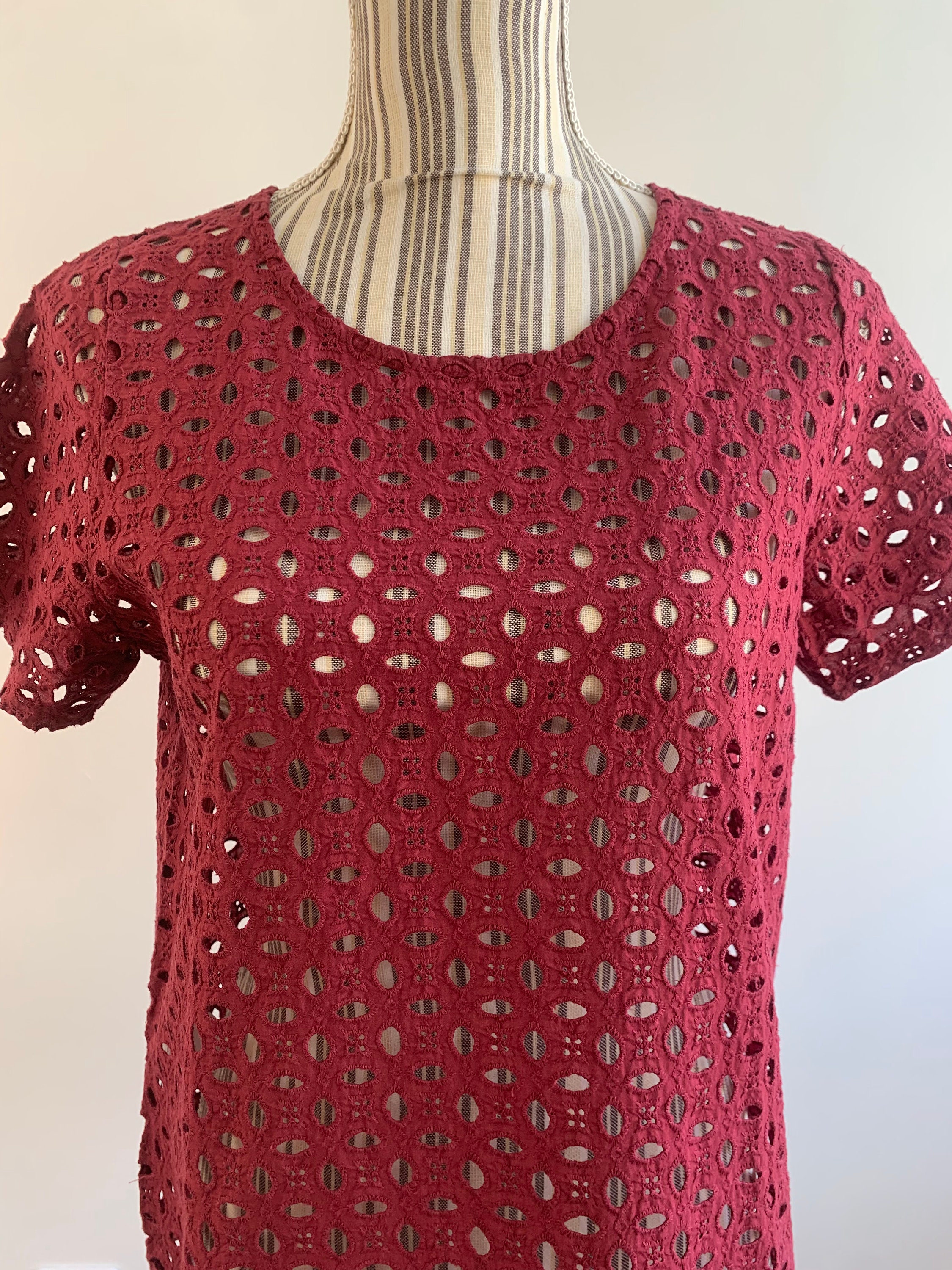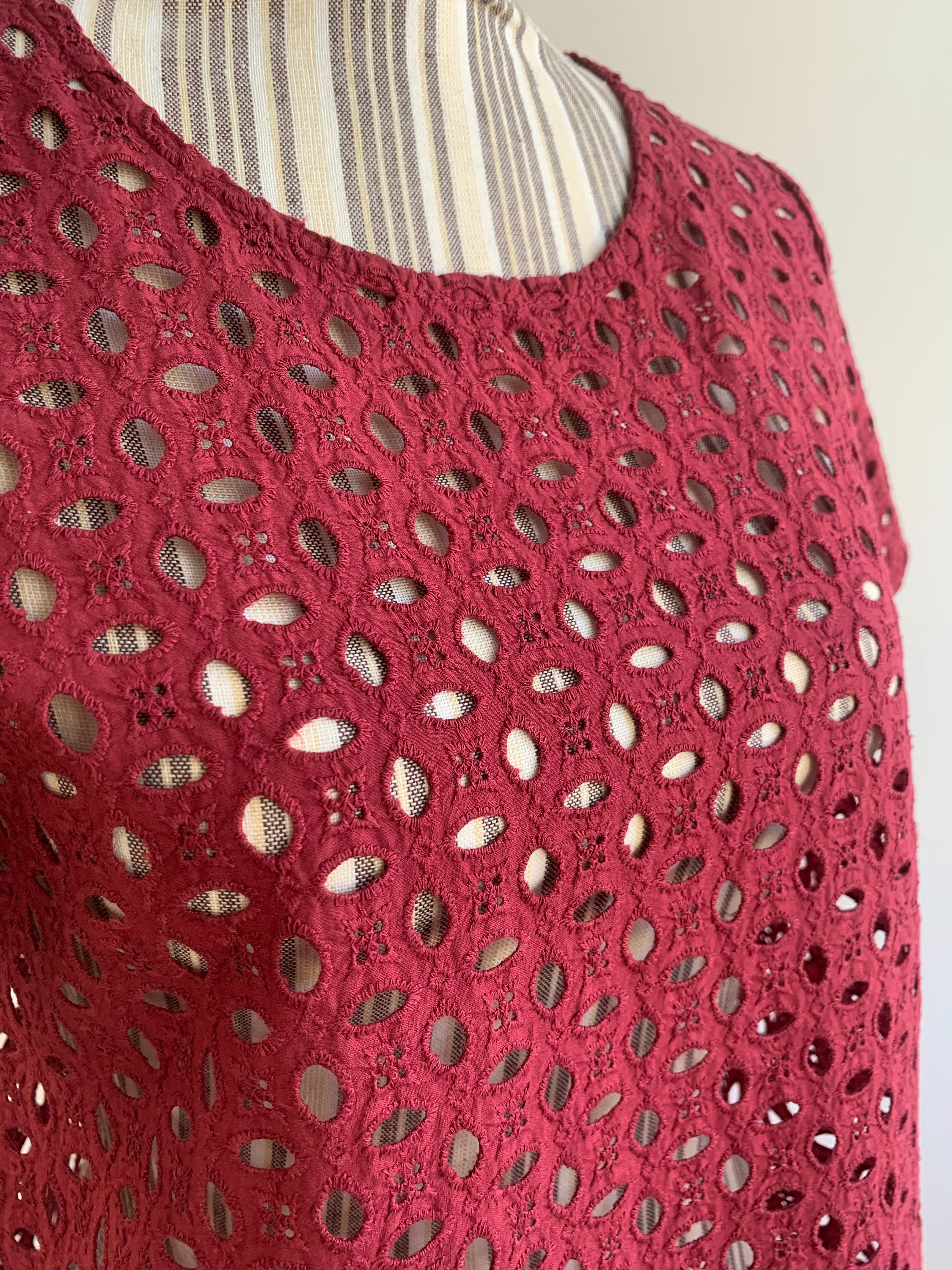 Vintage 90s pure cotton cut out embroidery floral shirt for women size S M with boxy cut silhouette, scoop neck and back button closure with mother of pearl button. Perfect breathable clothing for the summer.