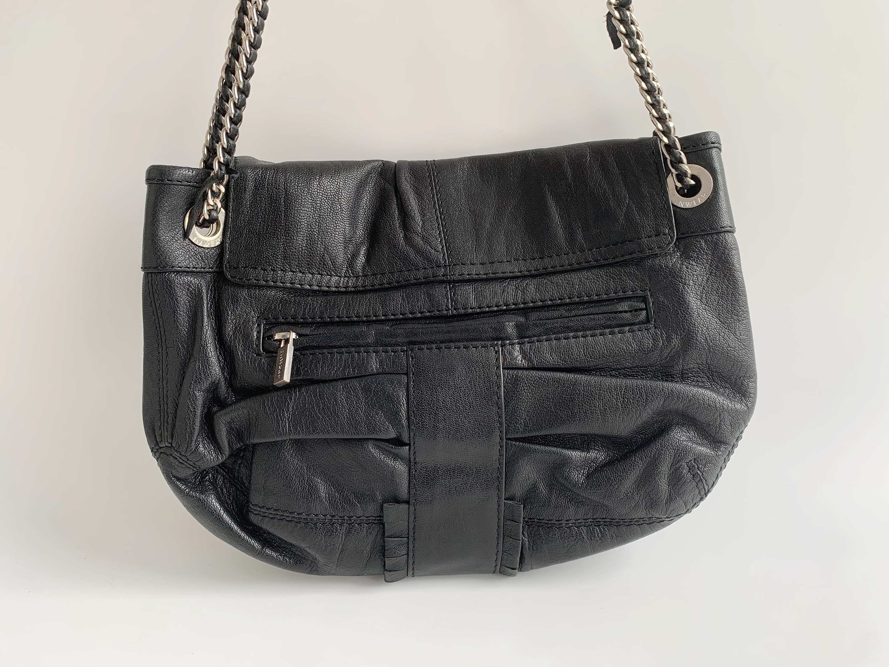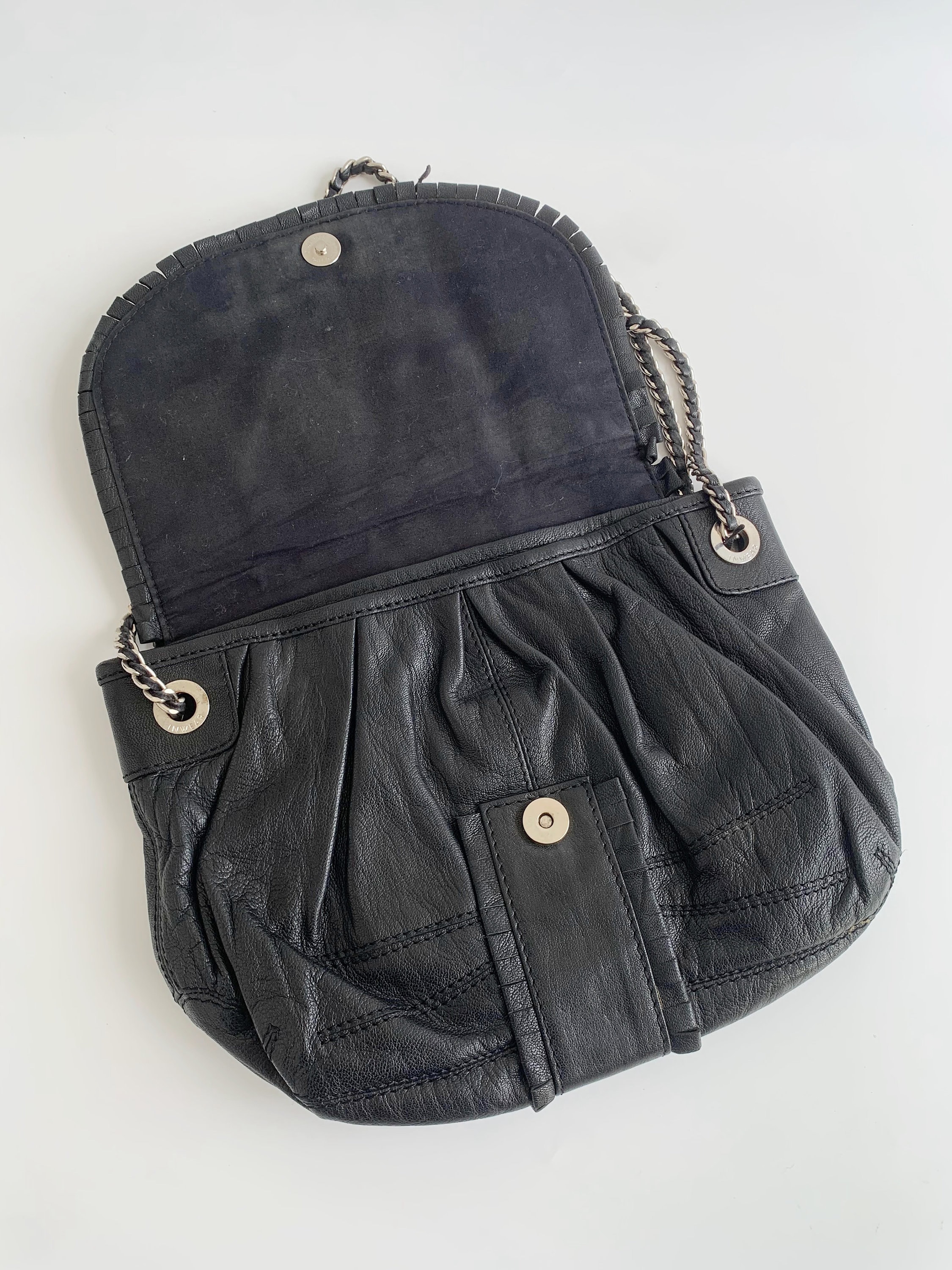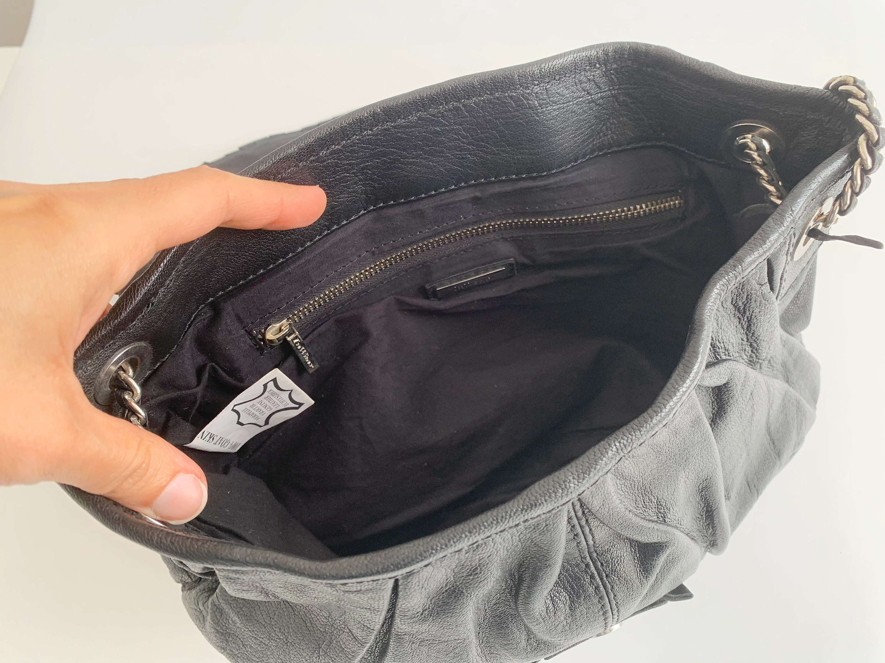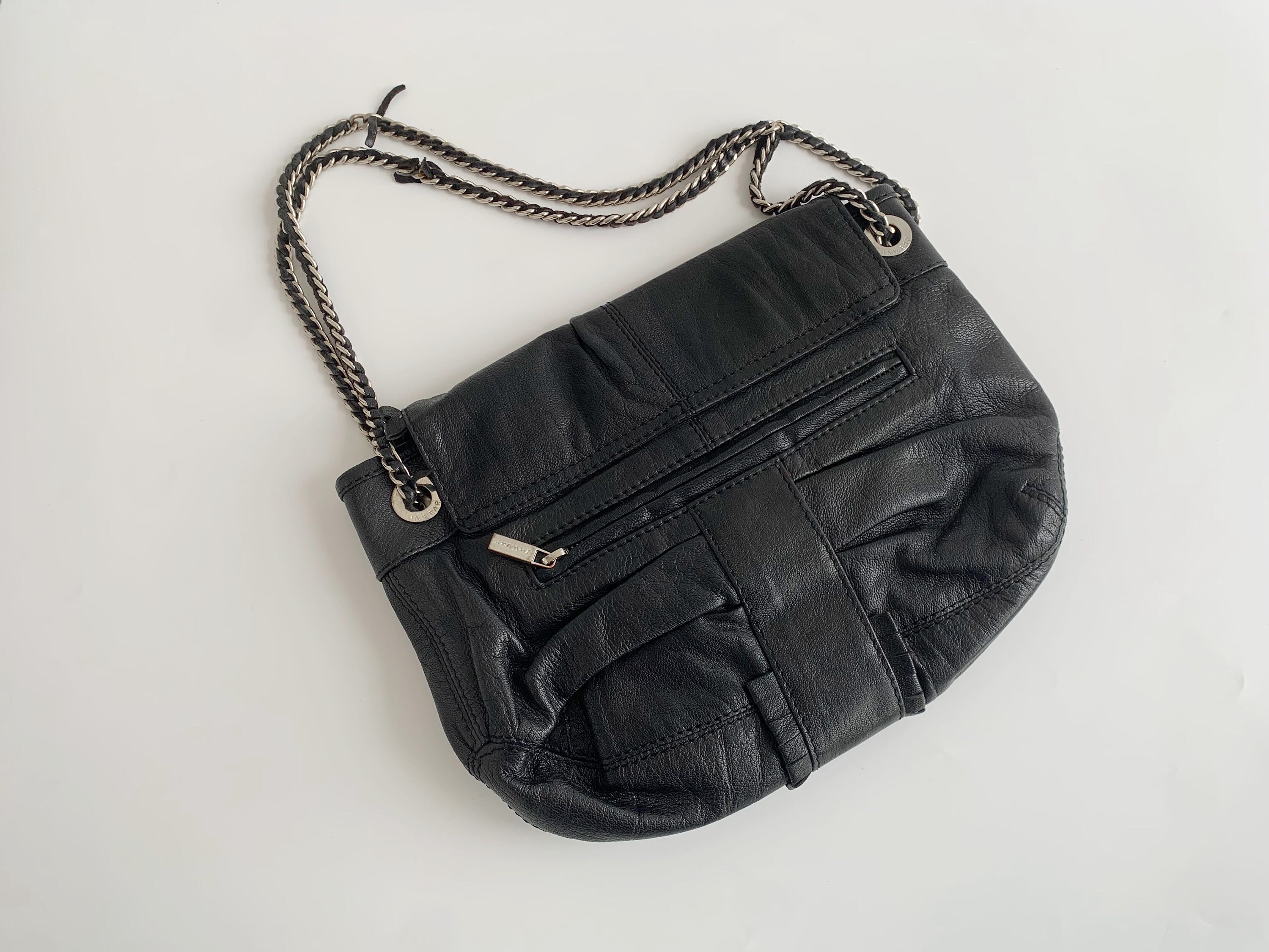 This is a vintage back leather hobo bag. This vintage Y2K white leather purse is made of soft genuine leather in jet black color. This stylish leather tote purse has silver tone hardware and flap over magnetic closure. The interior is lined in cotton lining. There is one compartment and two pockets with zip closure. This spacious leather tote bag is perfect for your busy days out in every season.