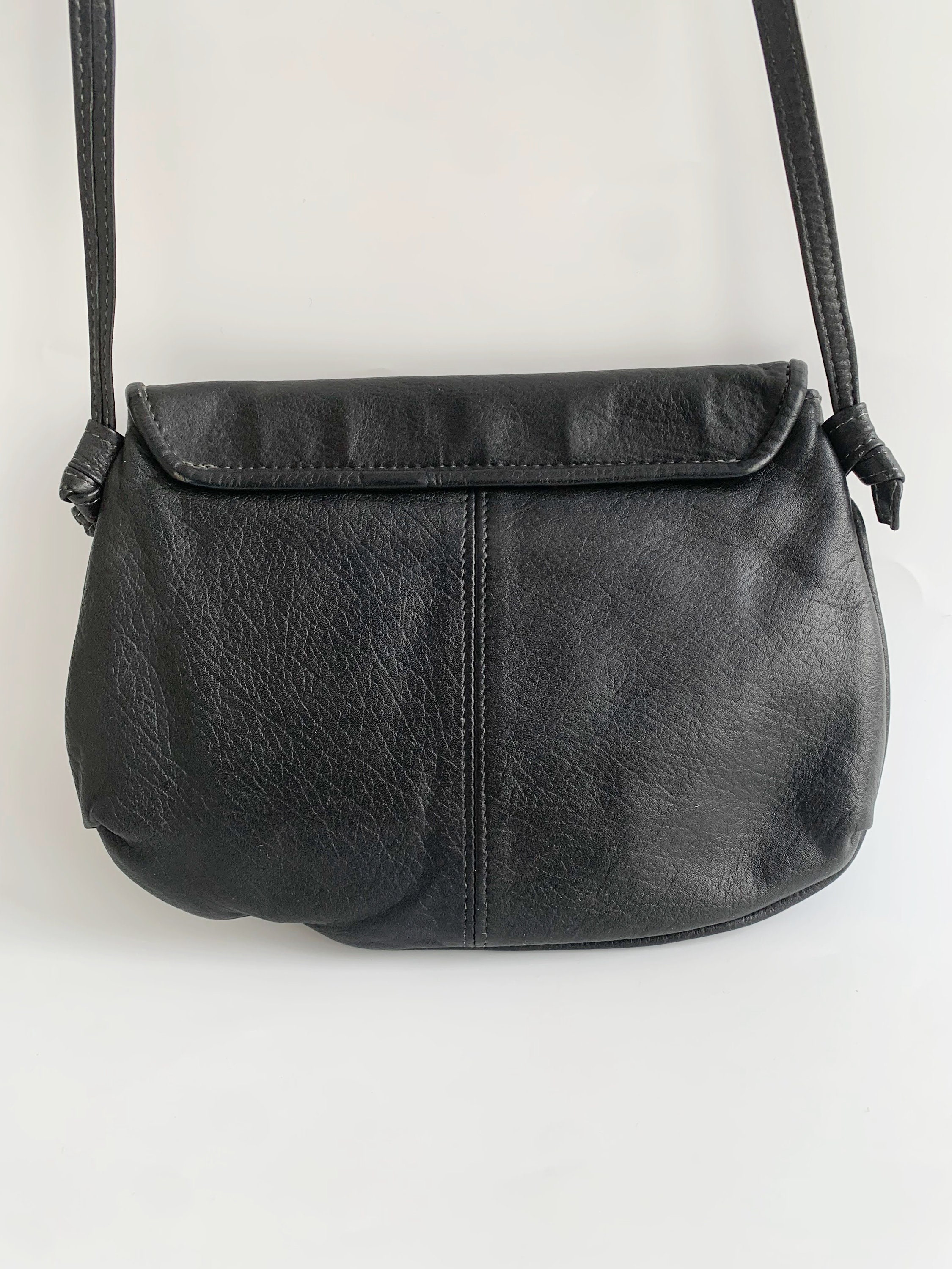 Condition: This small black crossbody purse is in beautiful shape with some minor signs of wear as it was pre-loved. There is some fading of the leather around the edges, which I have tried to capture in the close up photos.