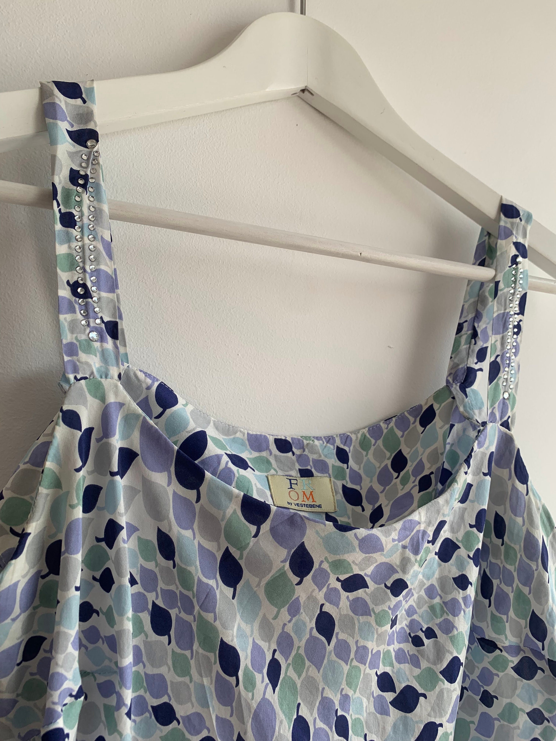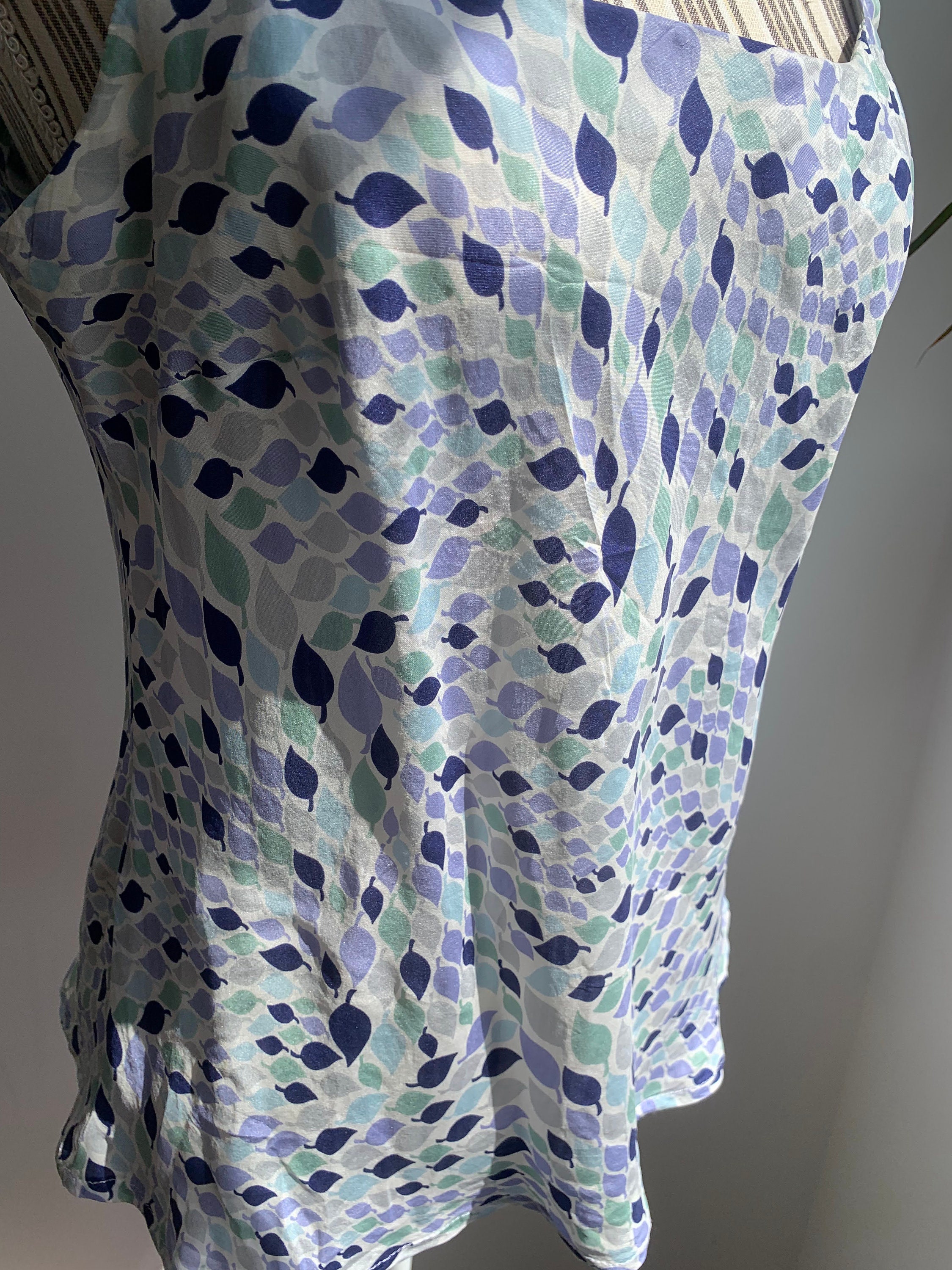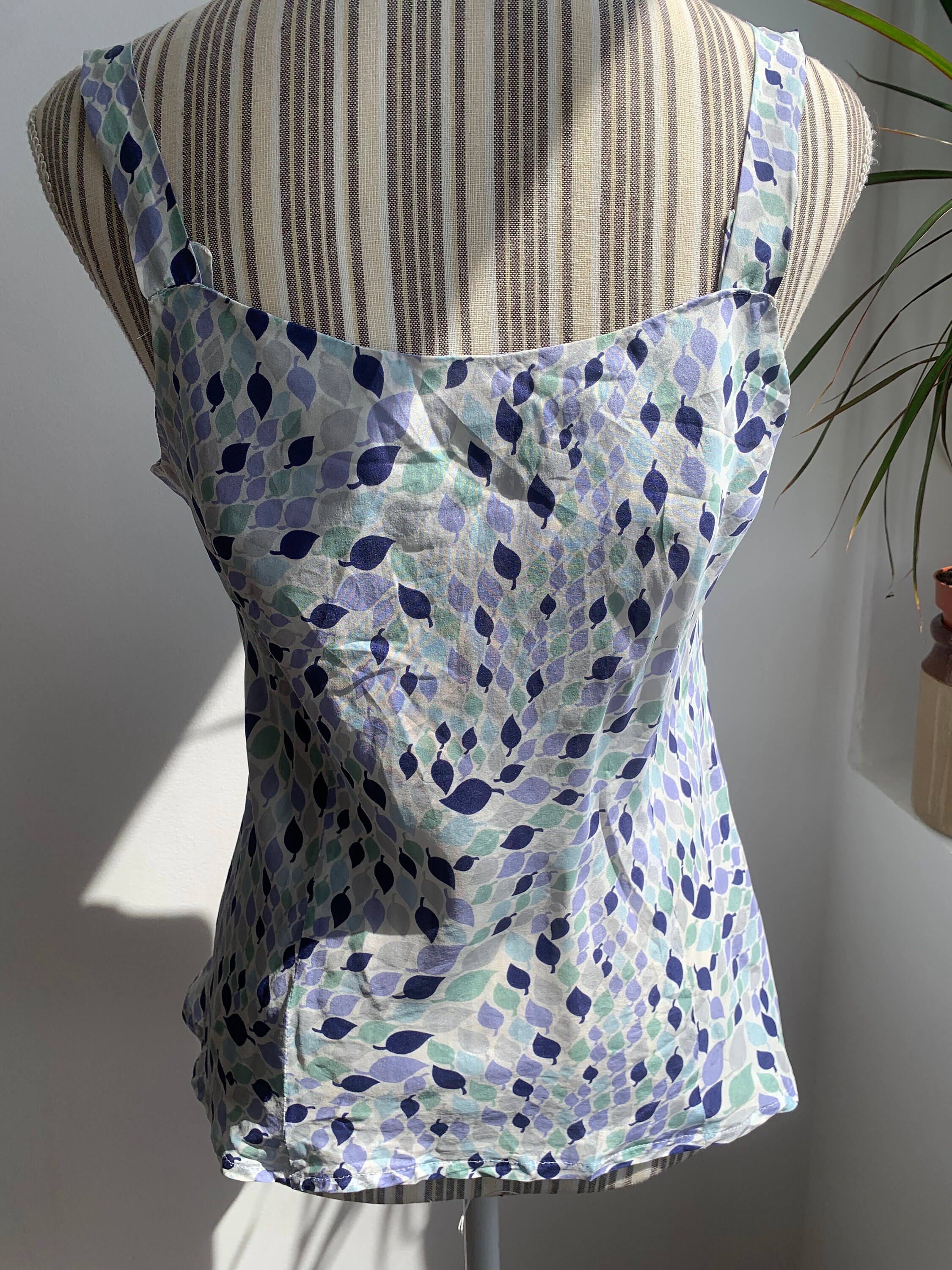 This is a lovely leaf print summer tank top made of 100% silk fabric with slim spaghetti straps and rhinestones. This flowy silk camisole is super comfortable and breathable, perfect for the summer.