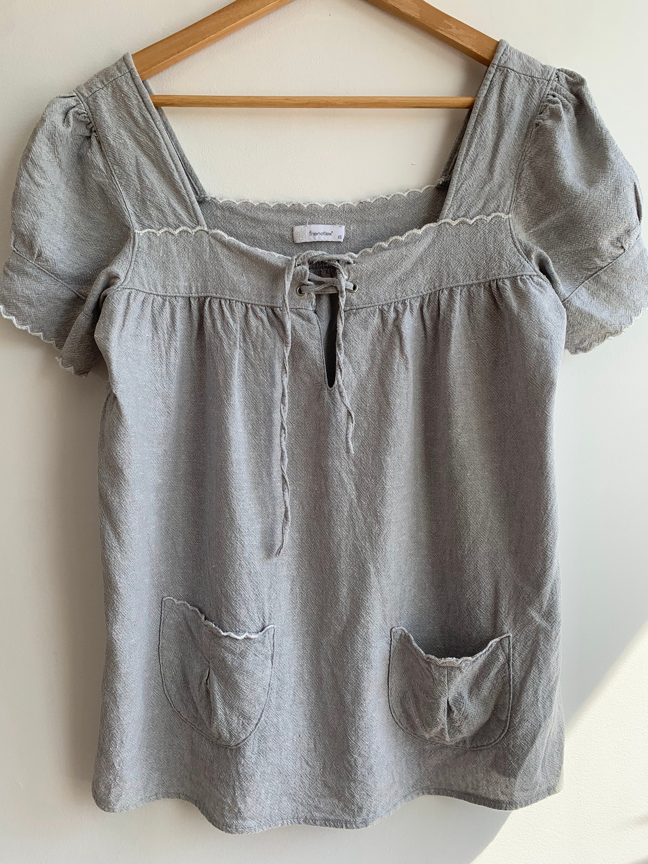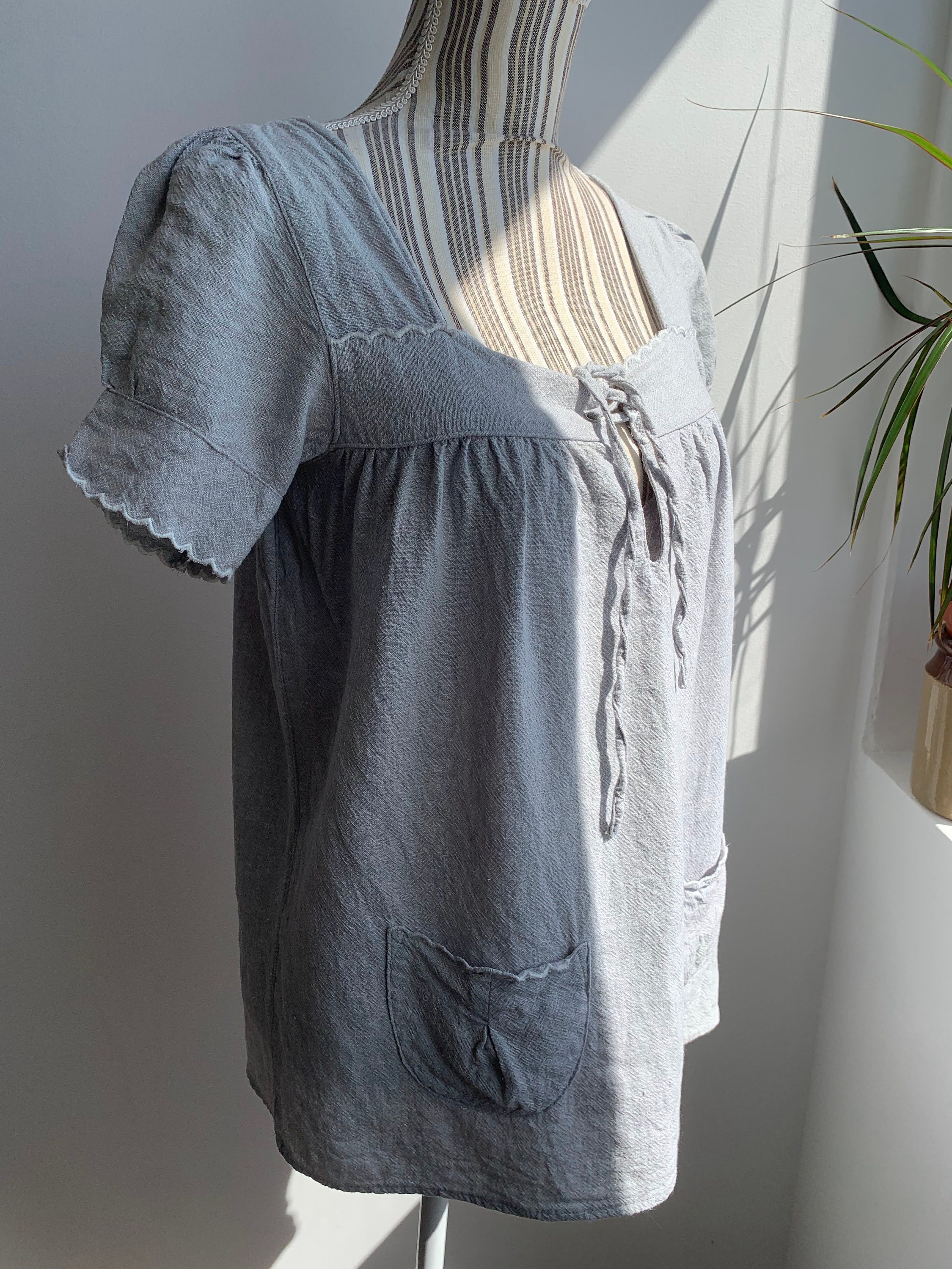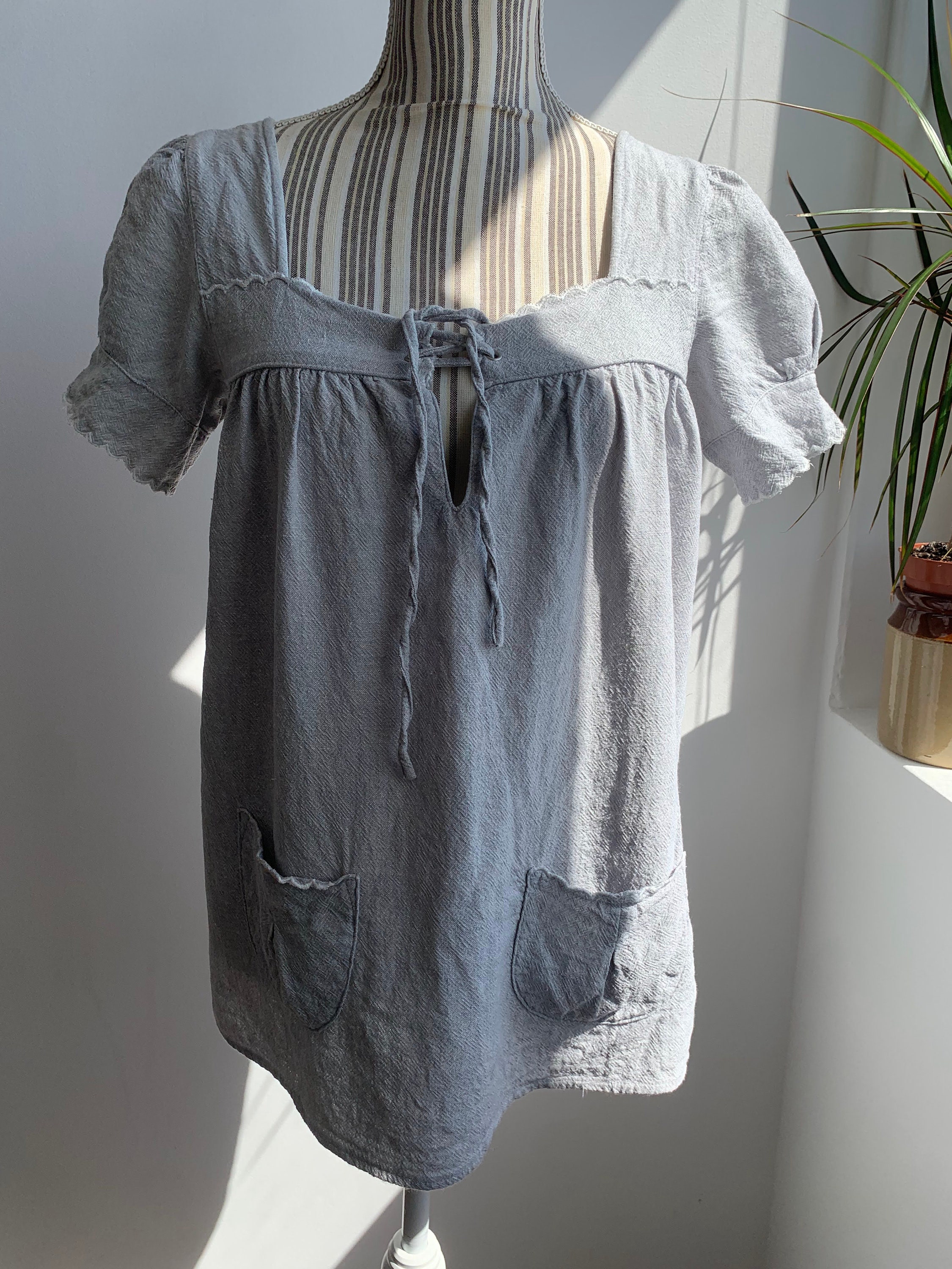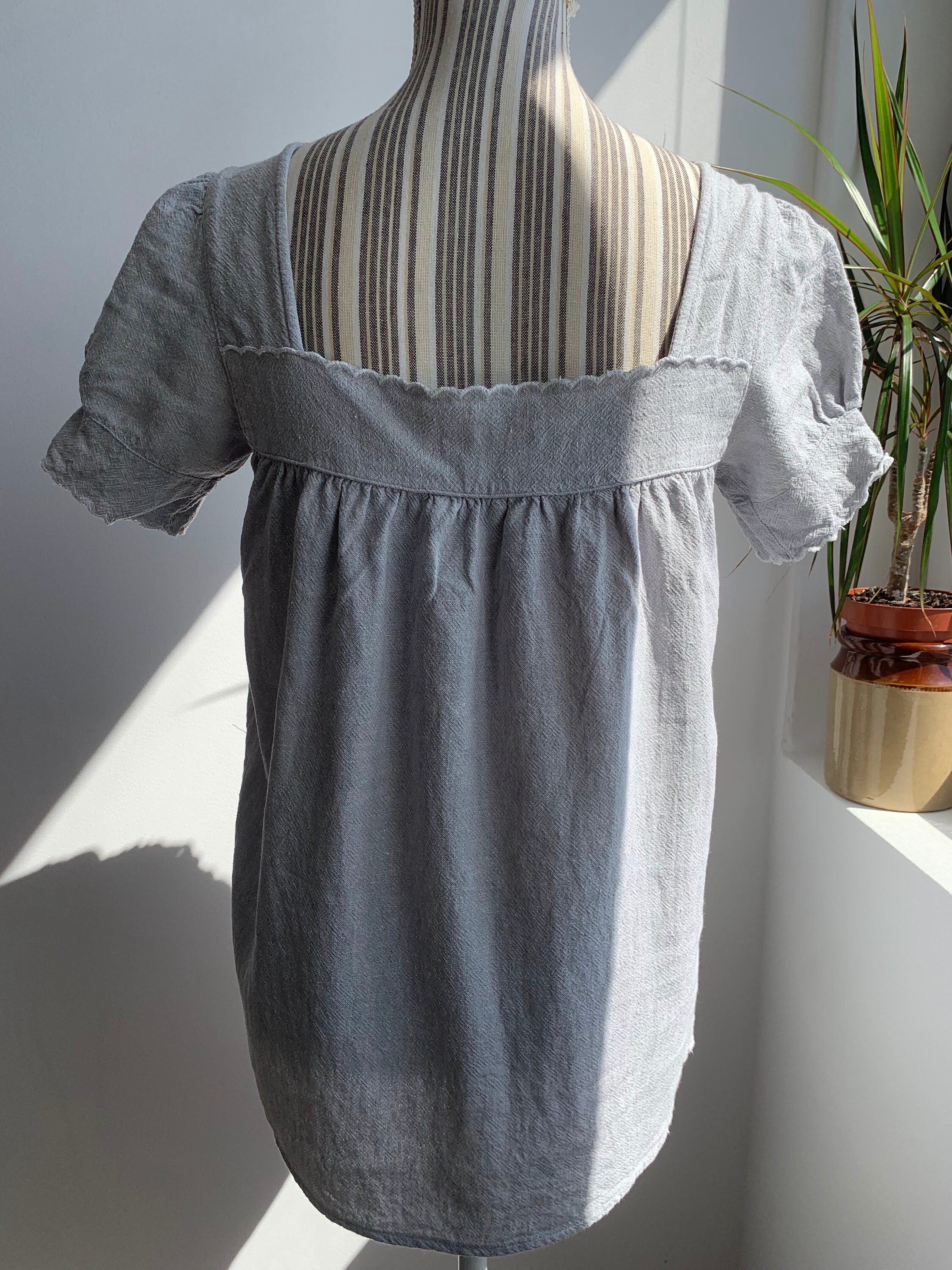Vintage 90s linen cotton chemise blouse size XS. This natural fabric peasant blouse is made of lightweight linen/ cotton blend fabric. Perfect breathable clothing for the summer.