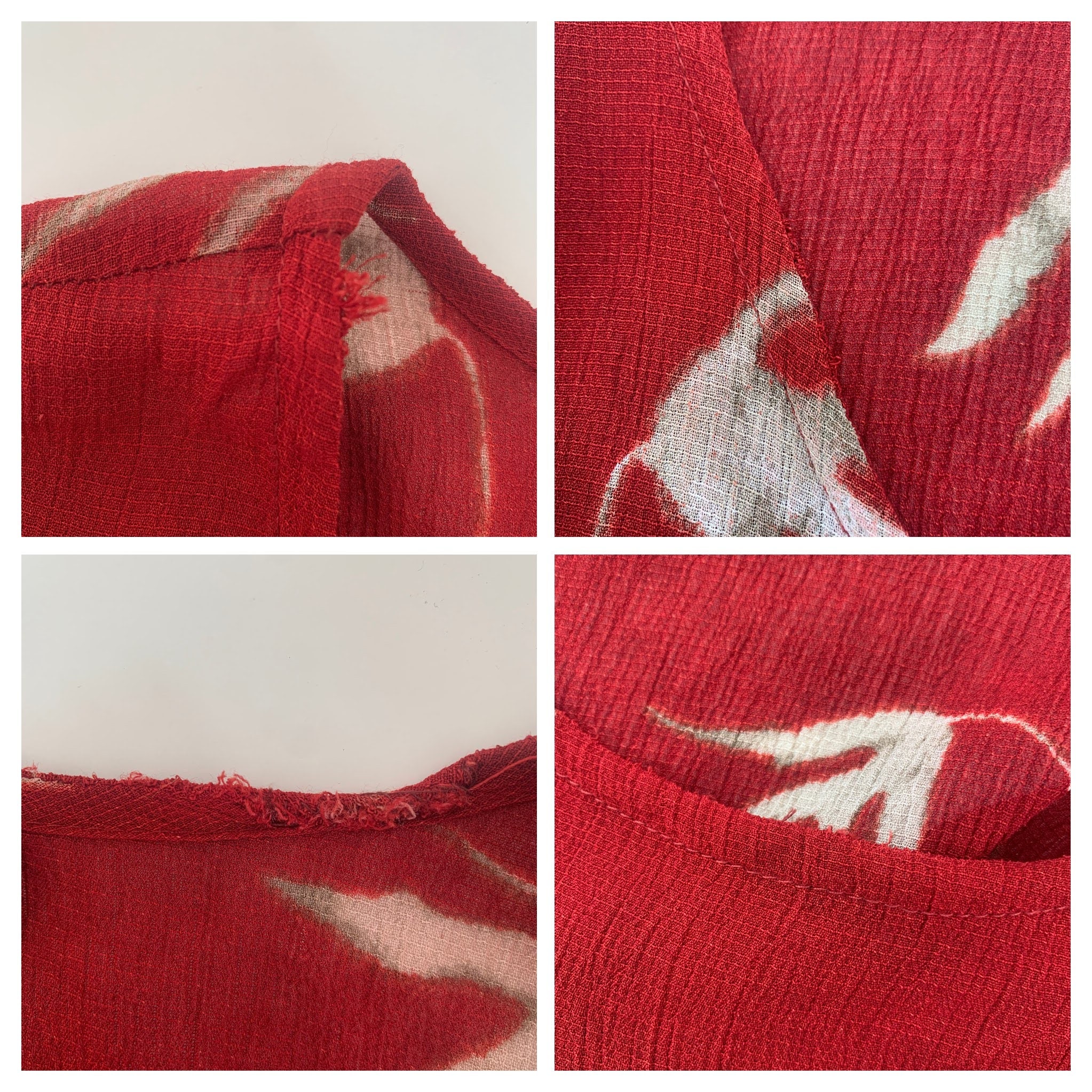 Condition: there are some loose fibers around the neckline, which I have captured in the close up photo collage. Overall beautiful vondition