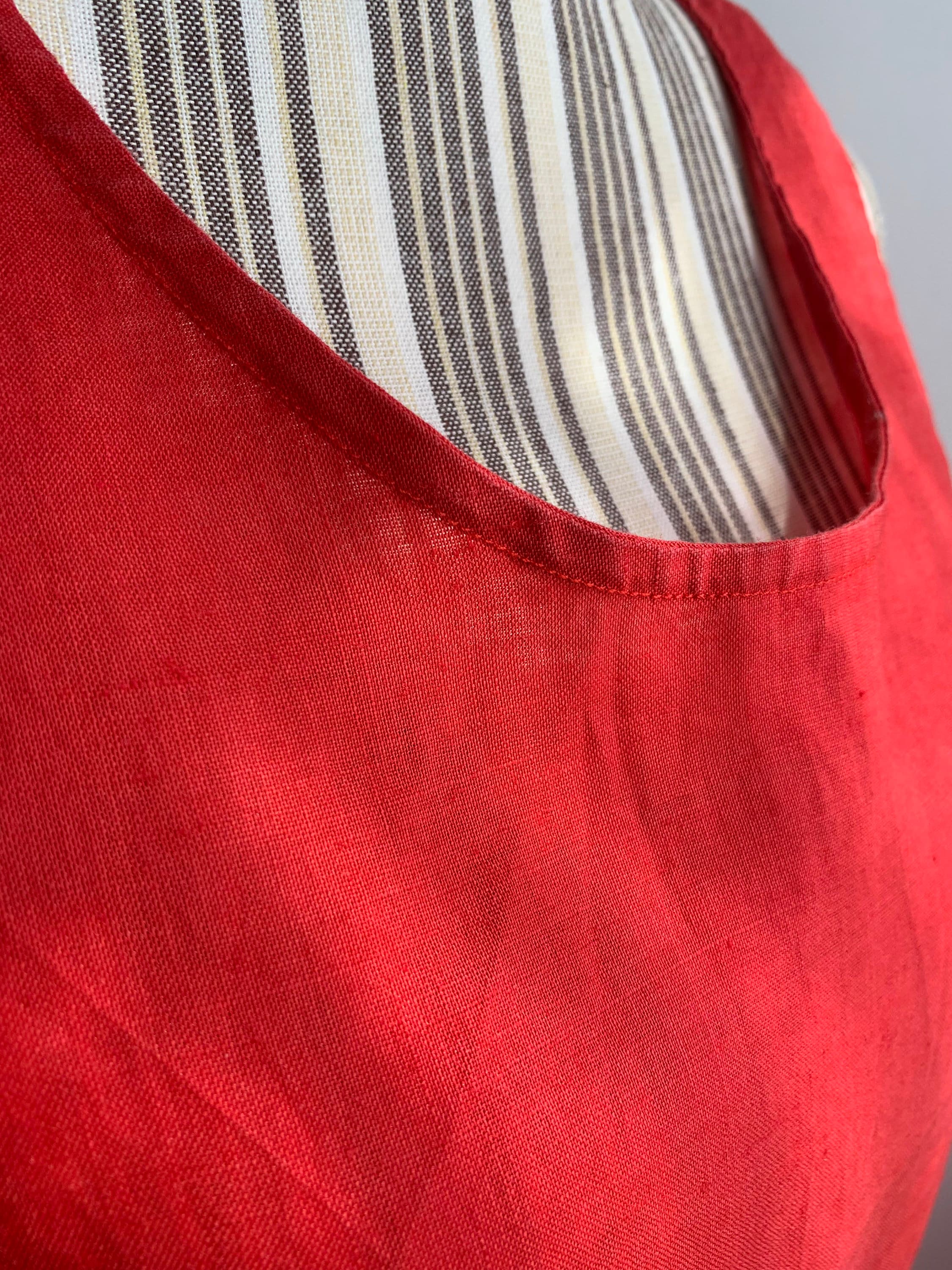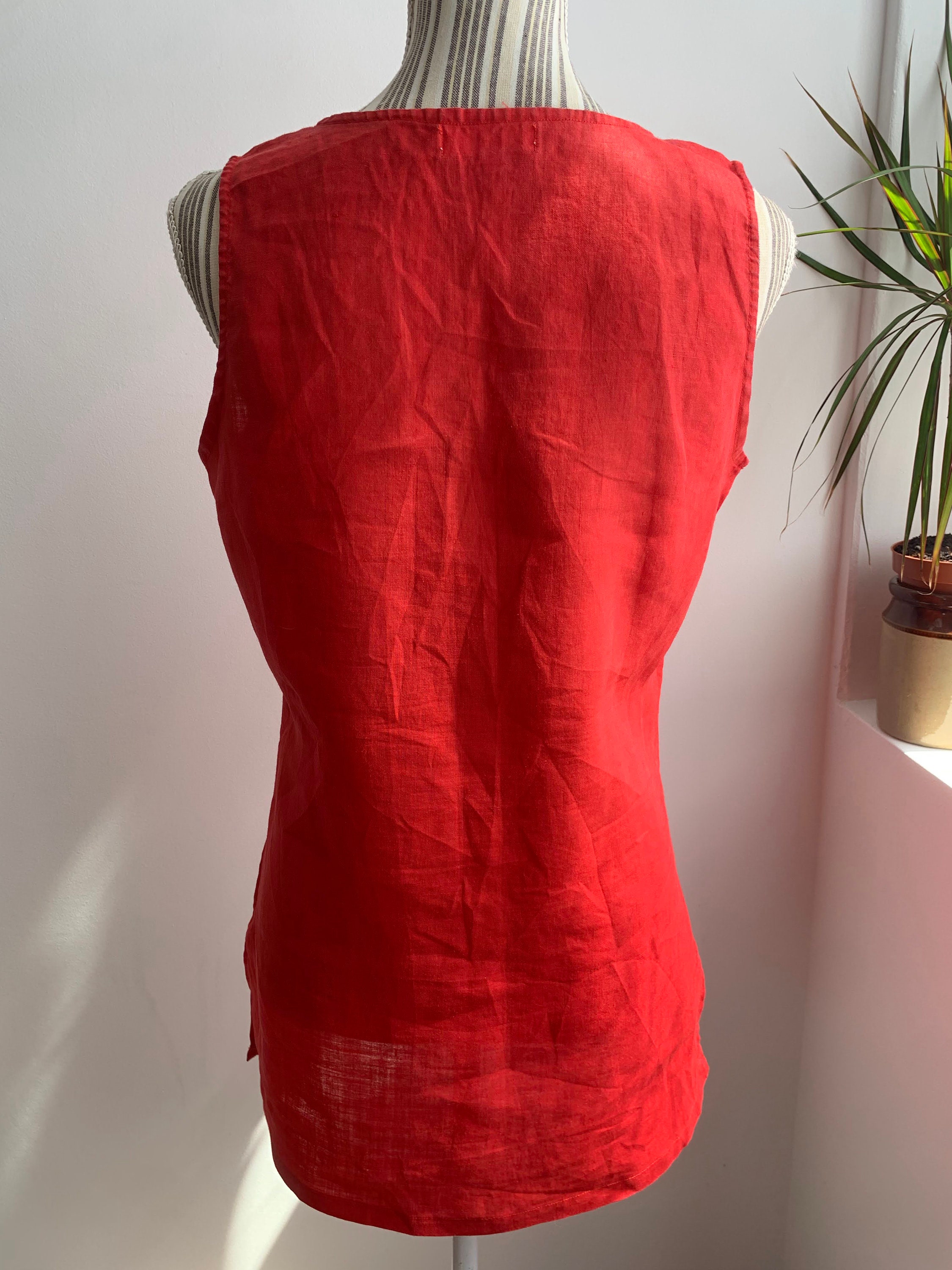 Condition: This vintage ramie top is beautifully preserved with some fading around the edges of the ramie fabric. This red tank top has natural texture of the ramie fabric.