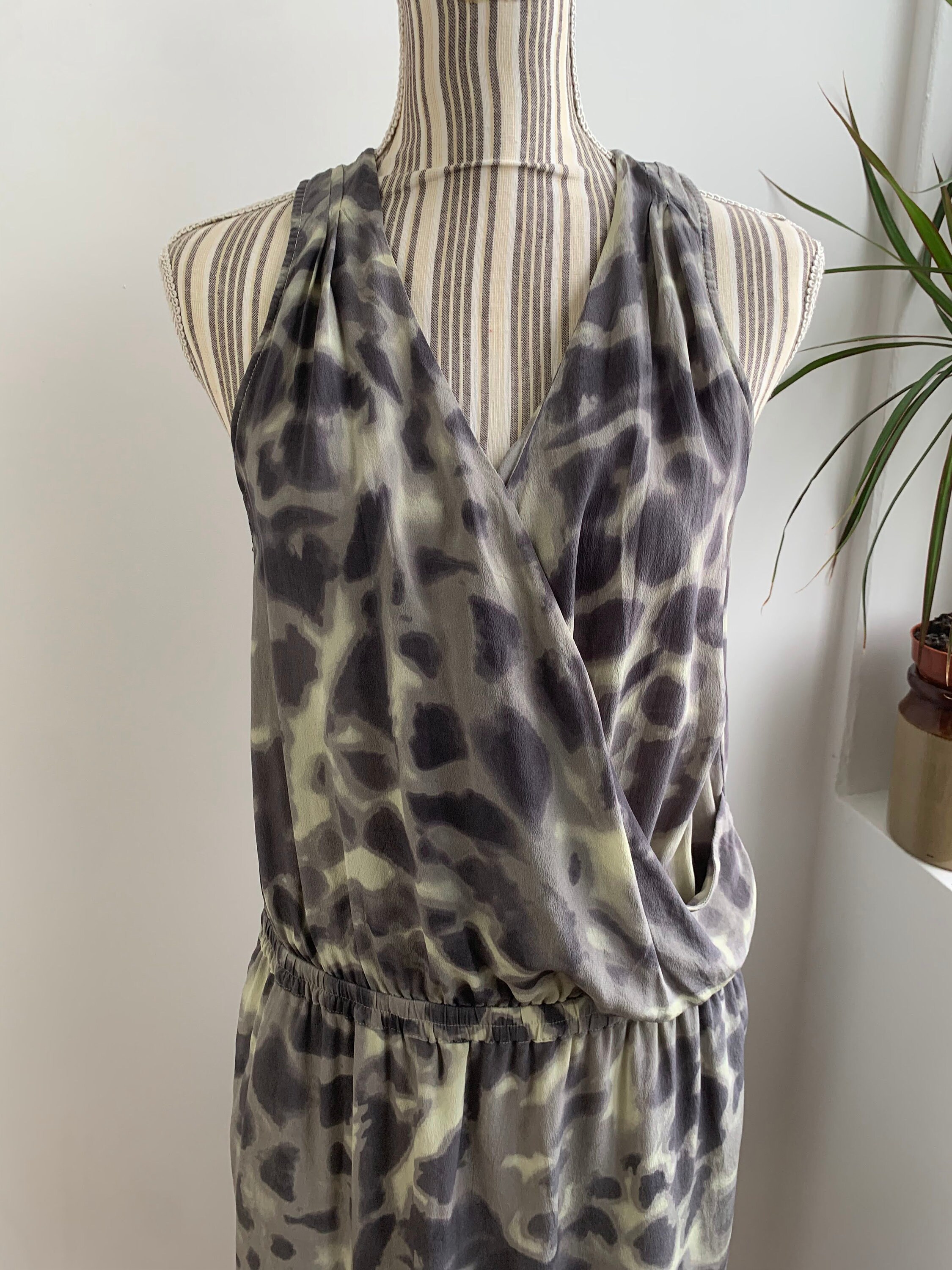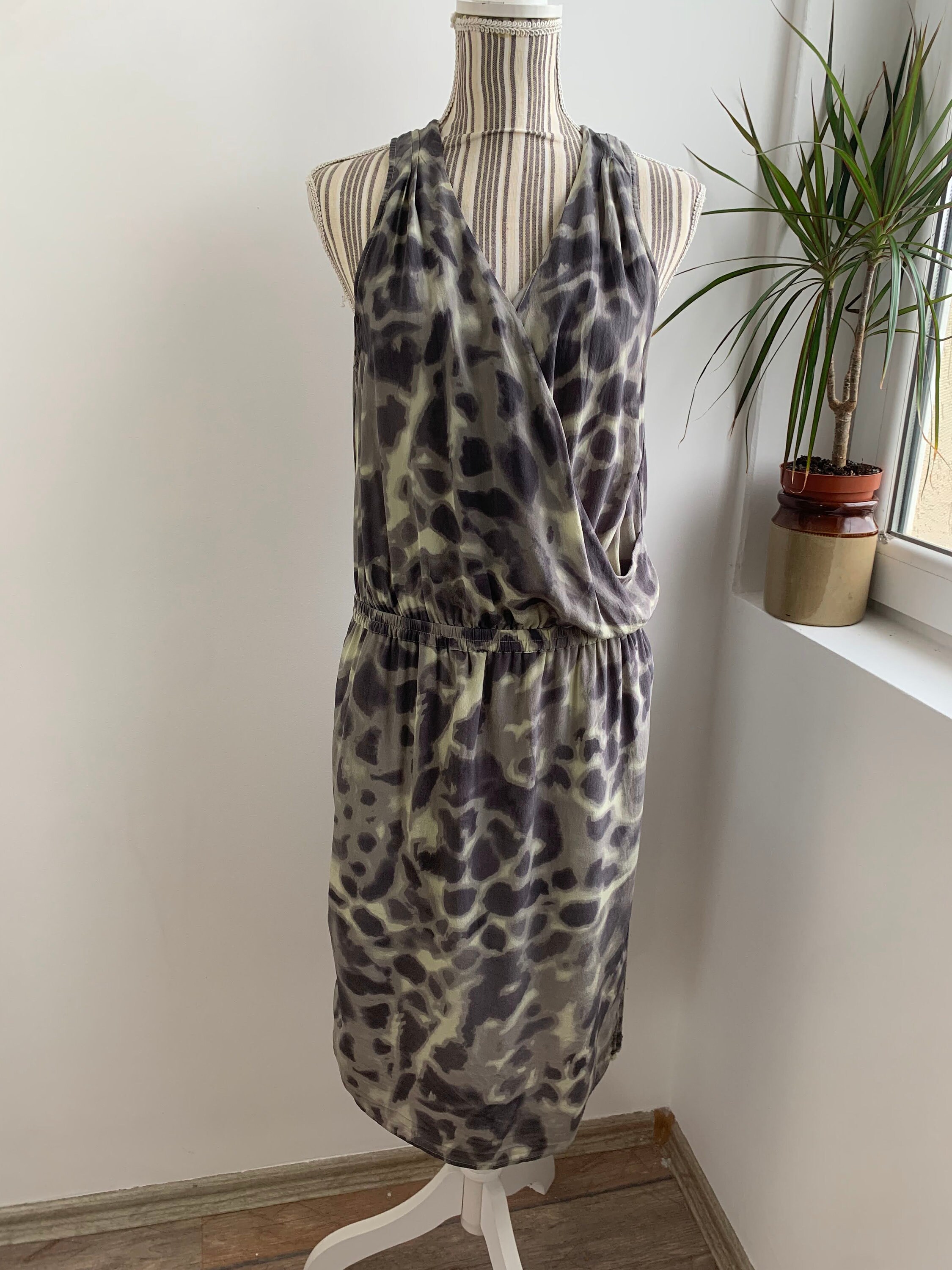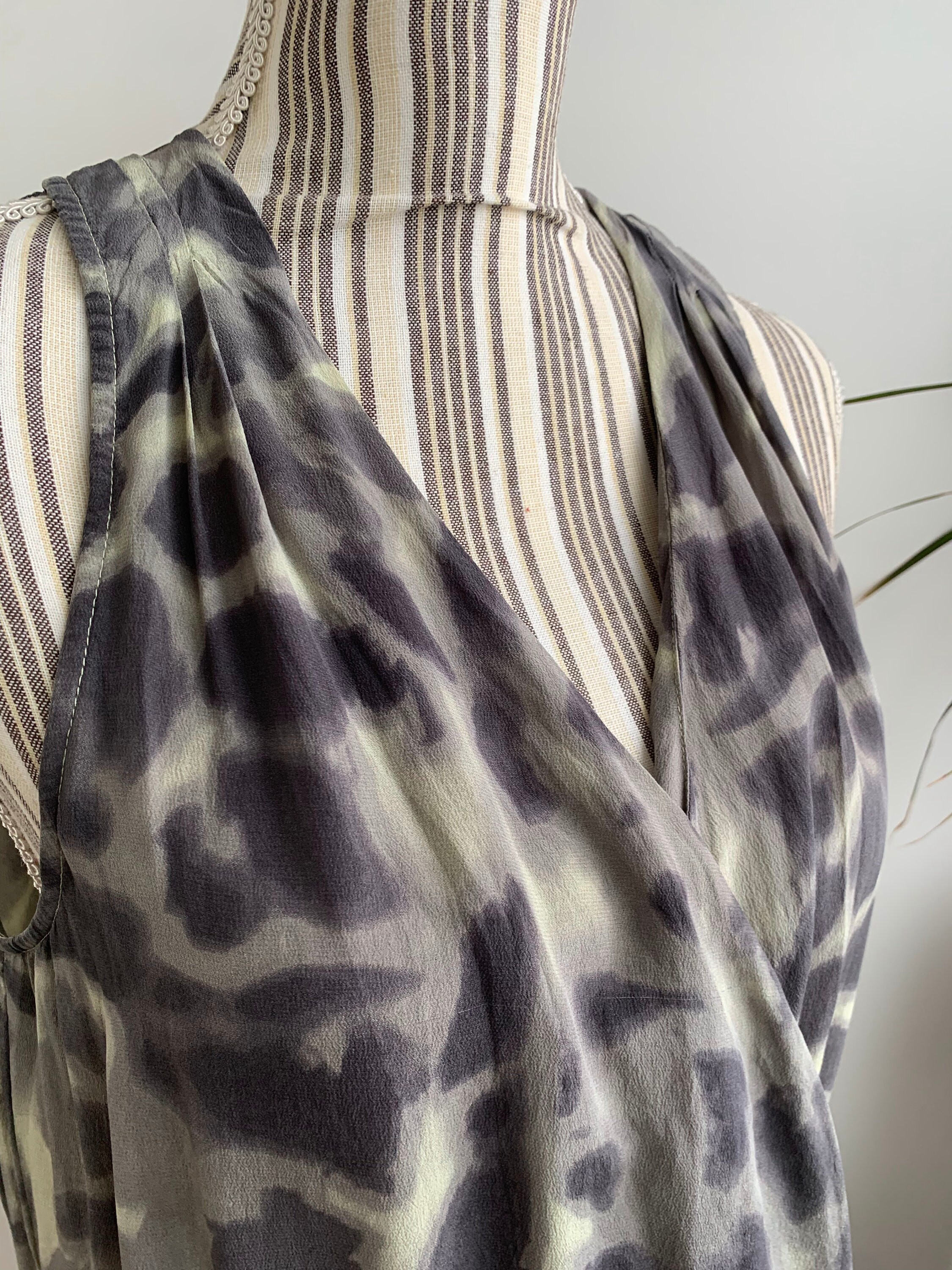 This is a beautiful vintage Y2K pure silk dress with deep V neck and elastic waistline. This gorgeous silk summer dress has adjustable drawstrings at the sides so you can adjust the length. This elegant flowy draped silk dress is made of lightweight pure silk fabric. This grunge dress has no lining at the top part, it has lining at the skirt. This relaxed fit silk dress is side 42 which fits like size L. Please check the measurements below