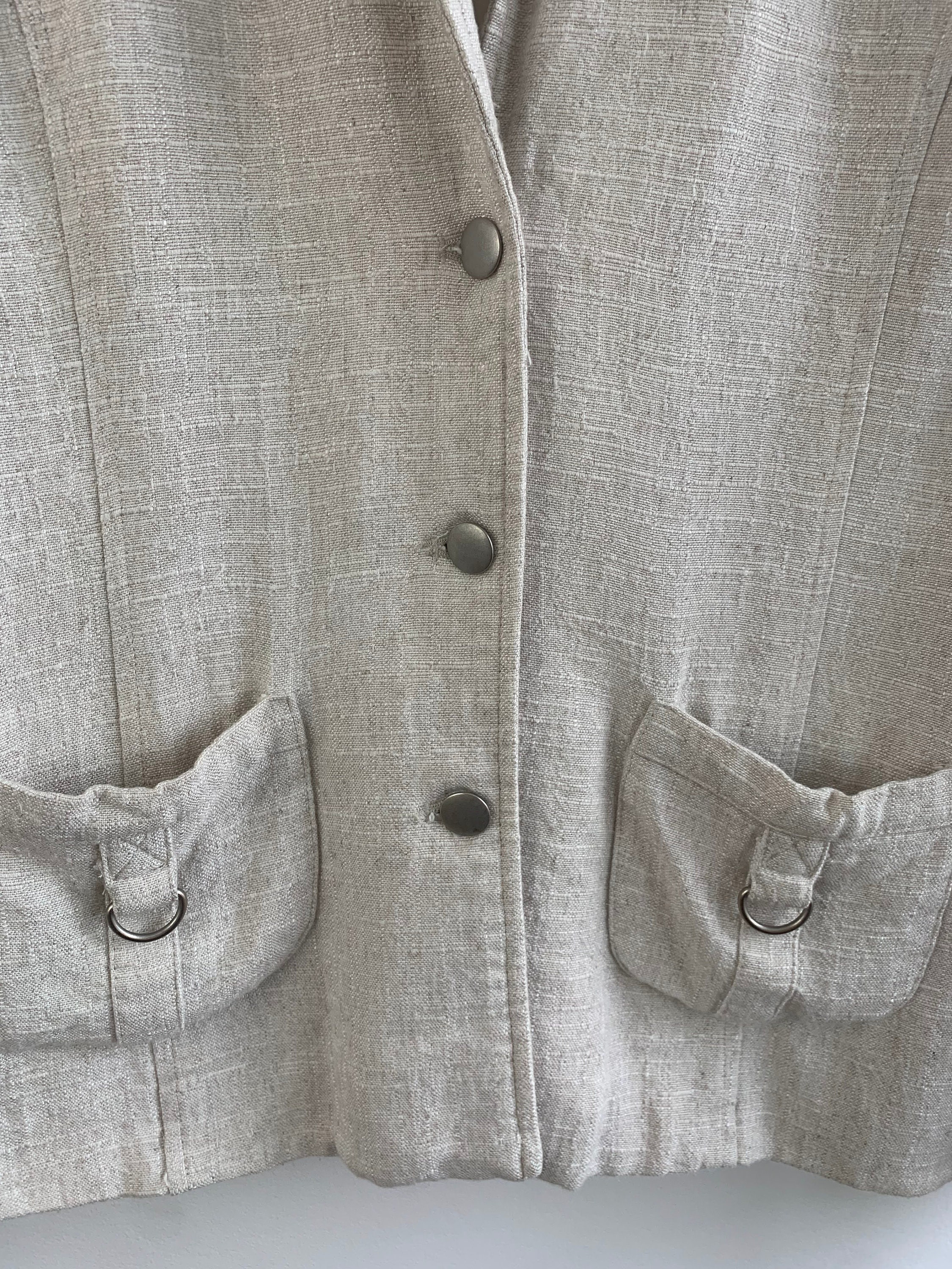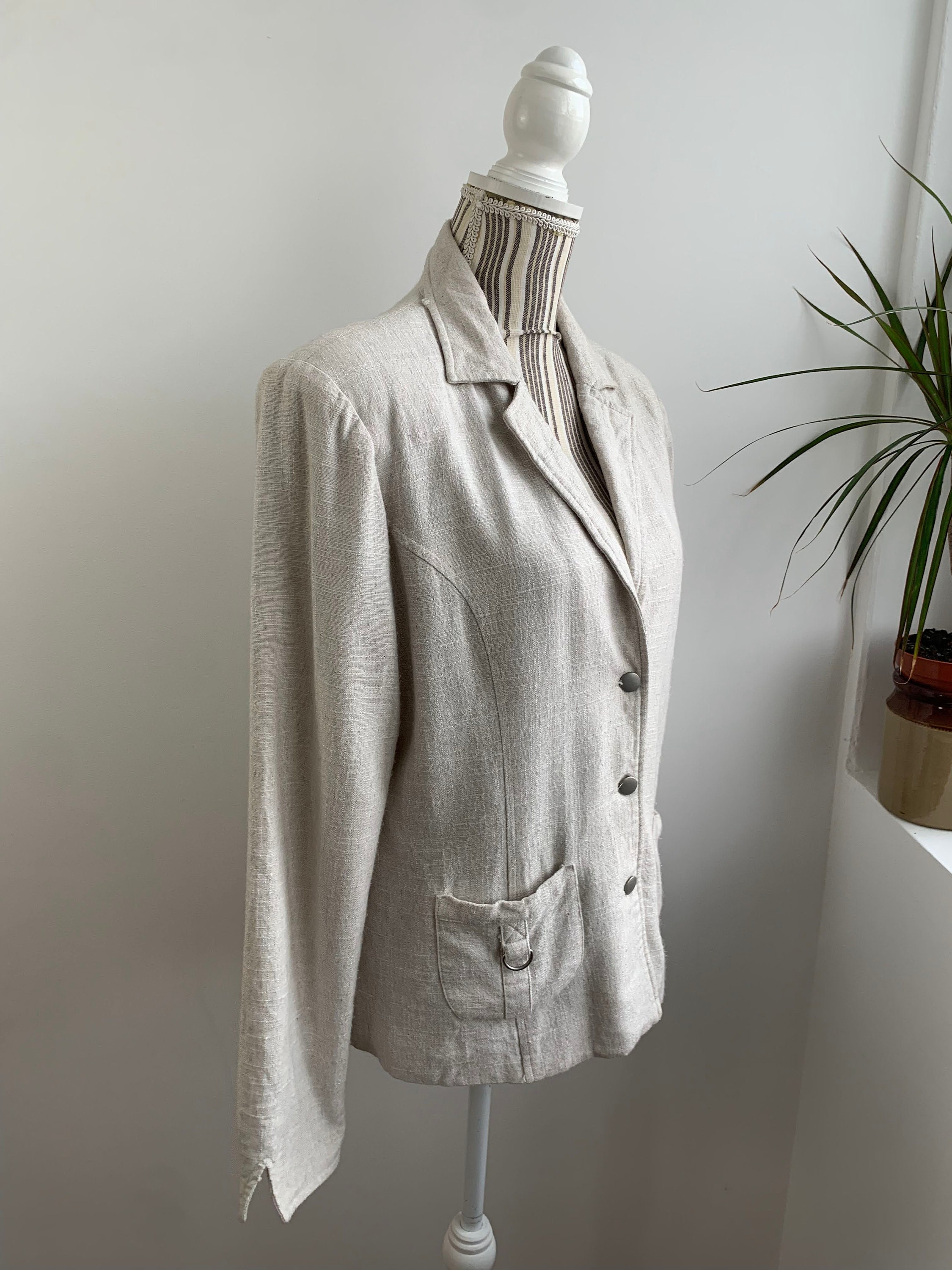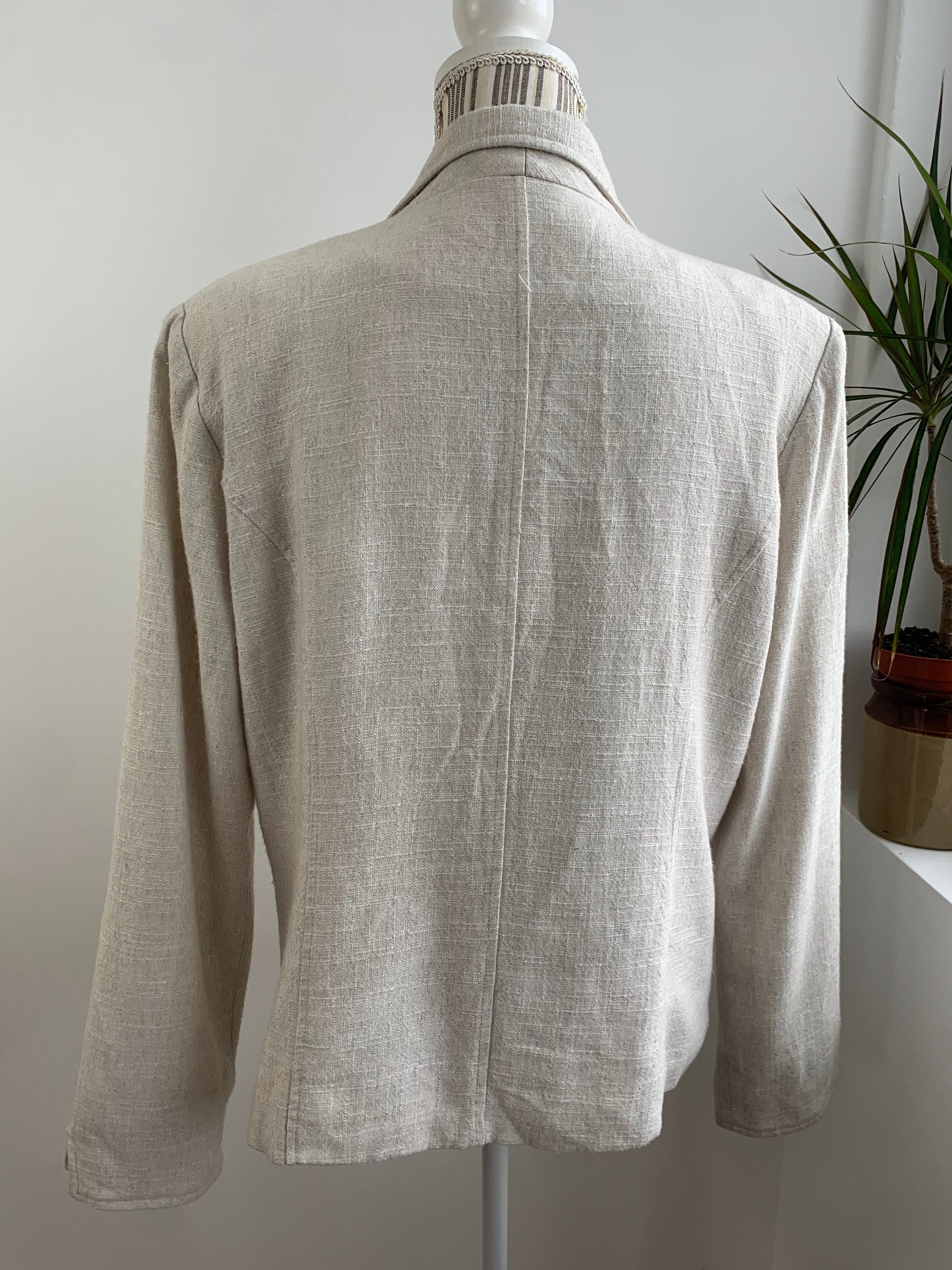 Condition: this linen blend blazer jacket is in beautiful vintage condition with no visible signs of wear, the fabric has natural texture.
