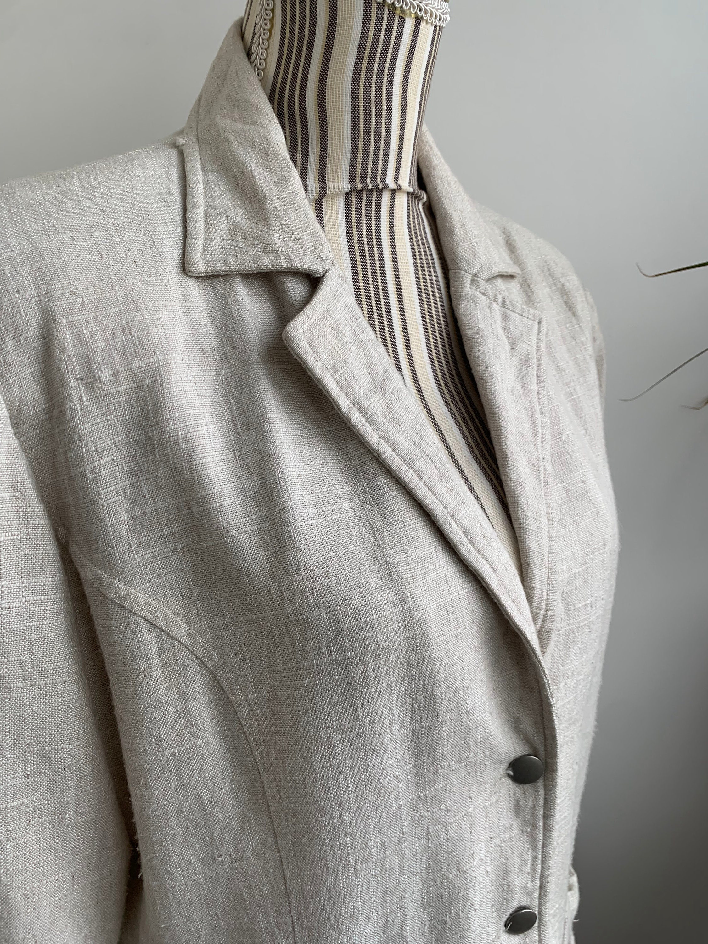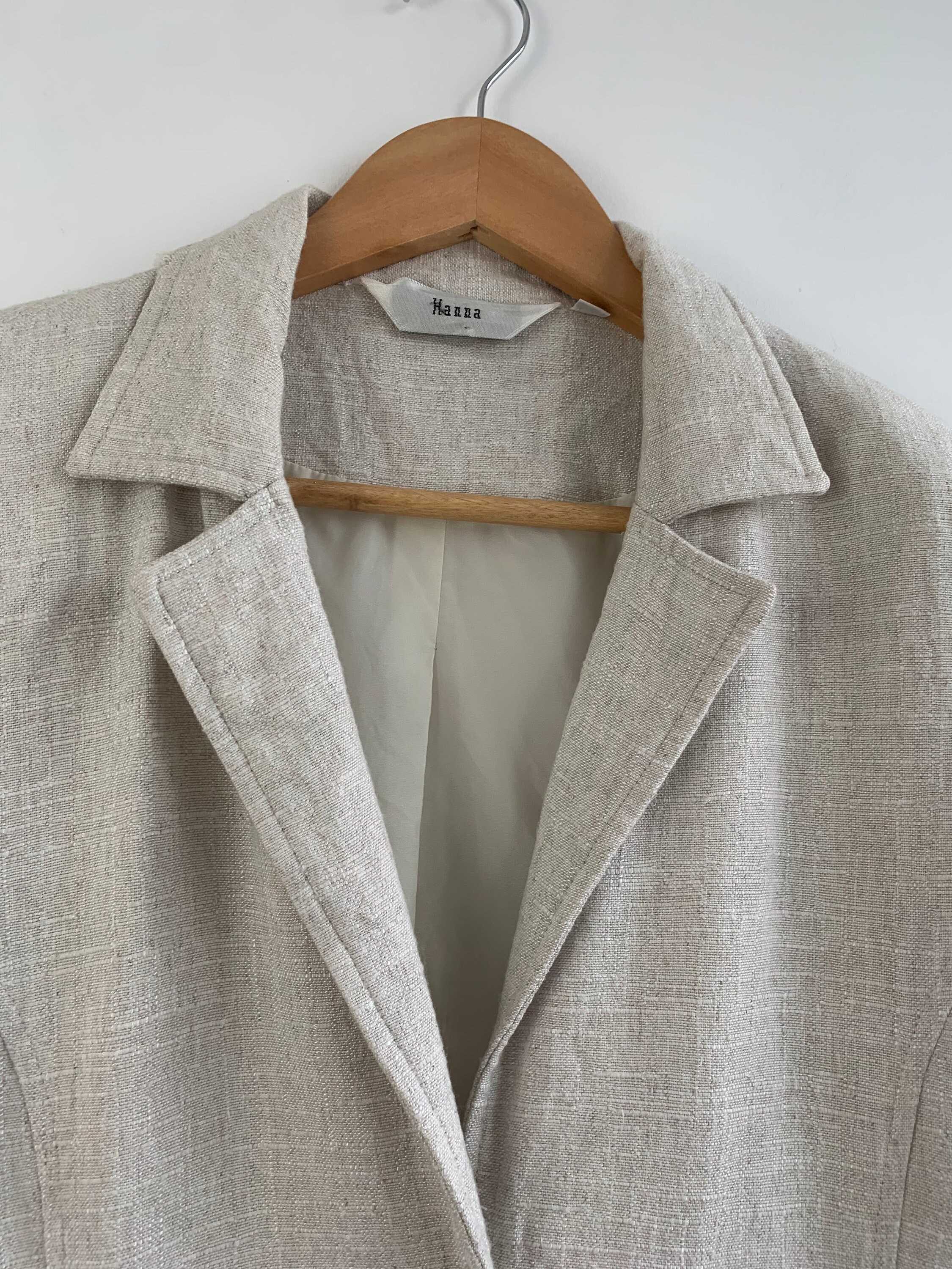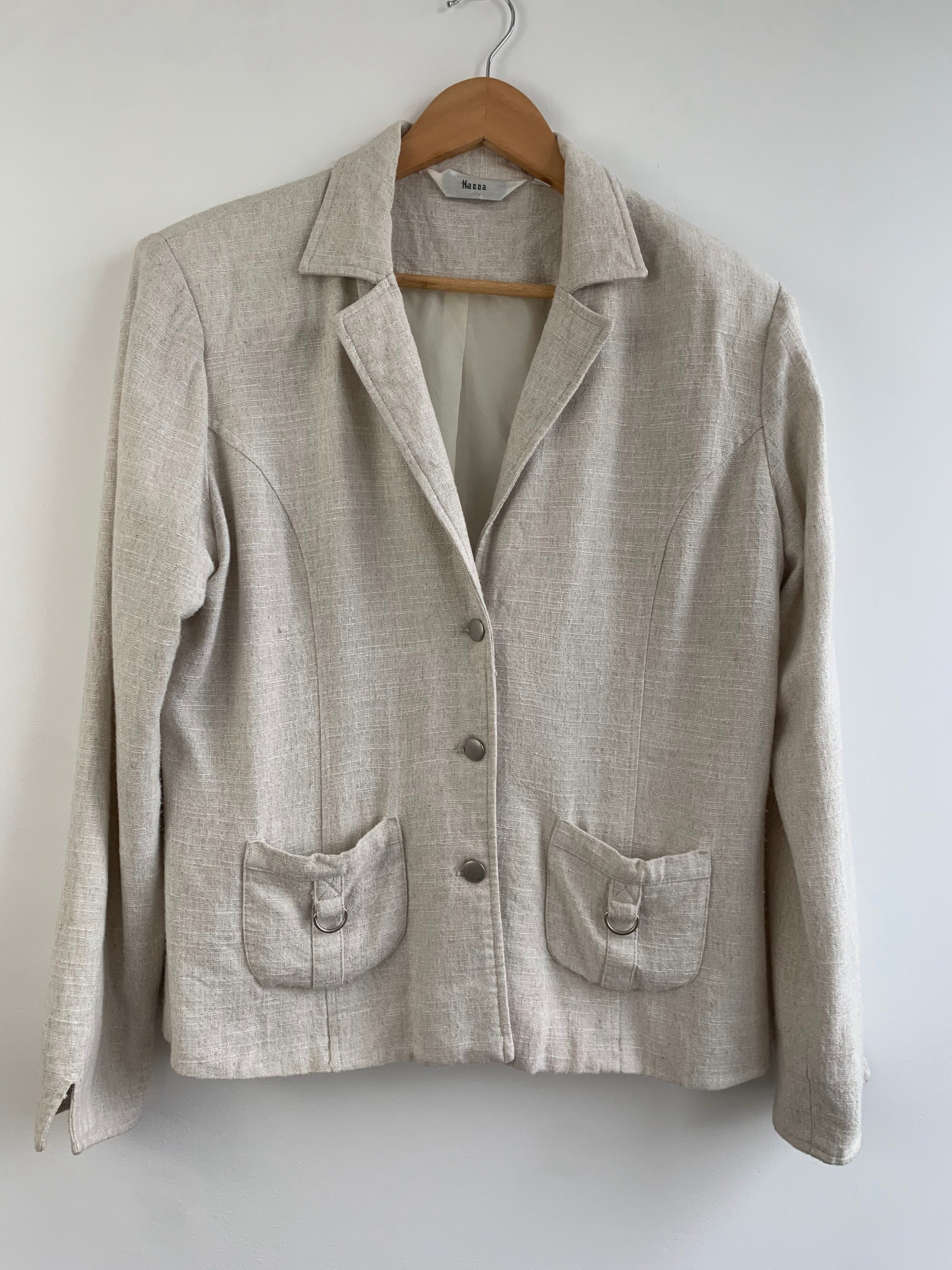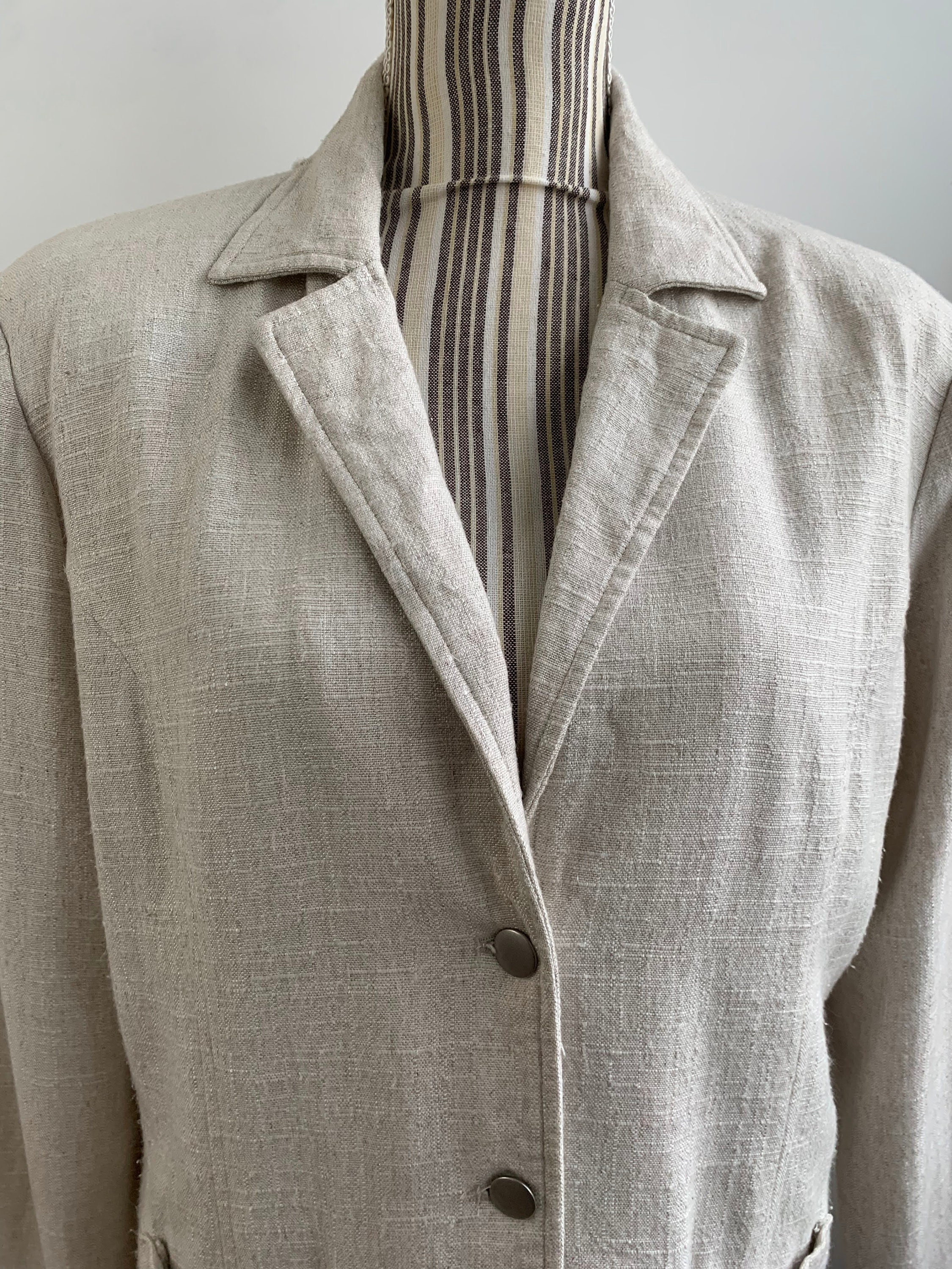 Condition: this linen blend blazer jacket is in beautiful vintage condition with no visible signs of wear, the fabric has natural texture.