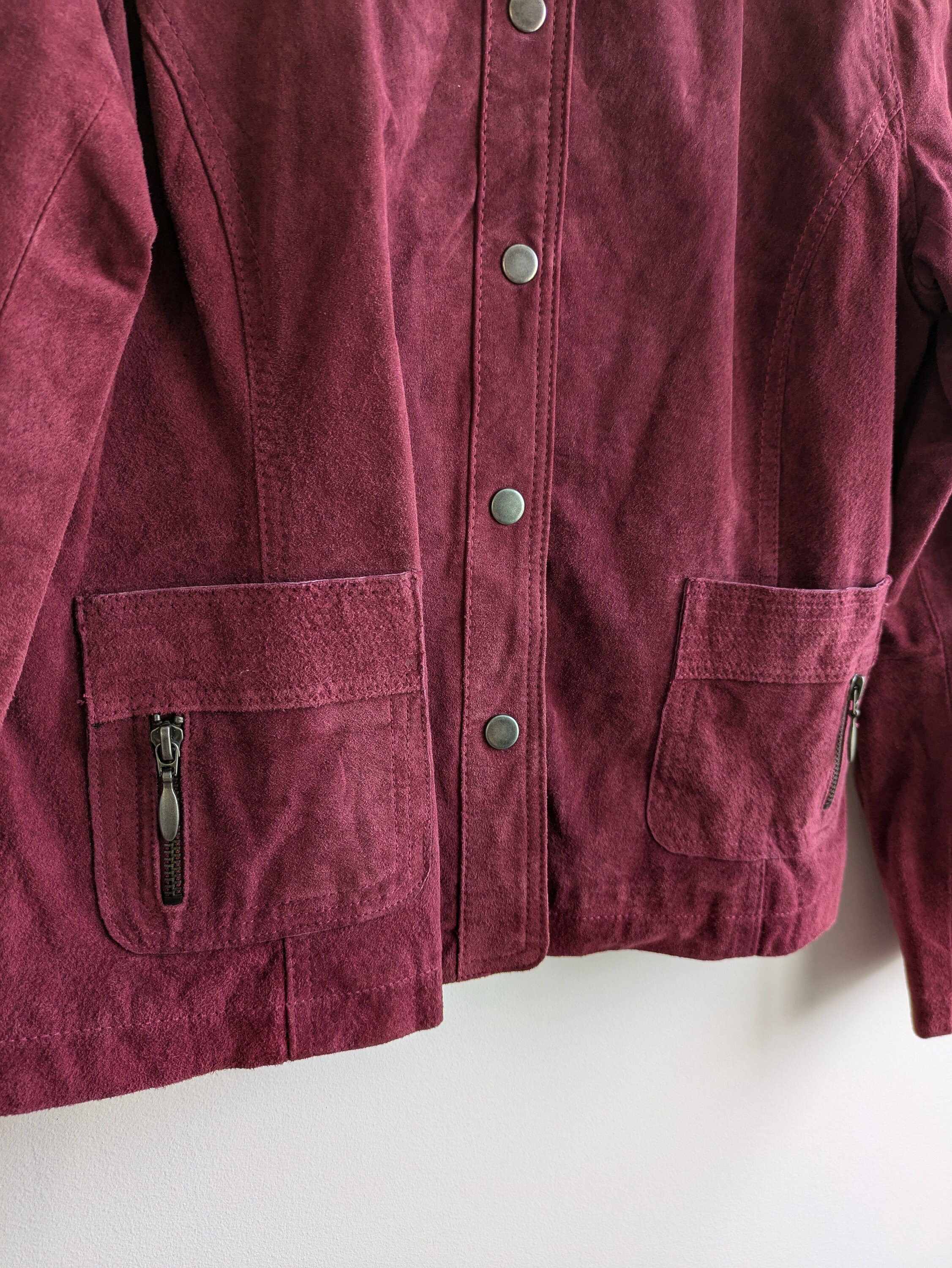 Condition: This vintage suede leather jacket has a distressed leather look with some marks and scratches on the suede leather surface typical for vintage suede items.
