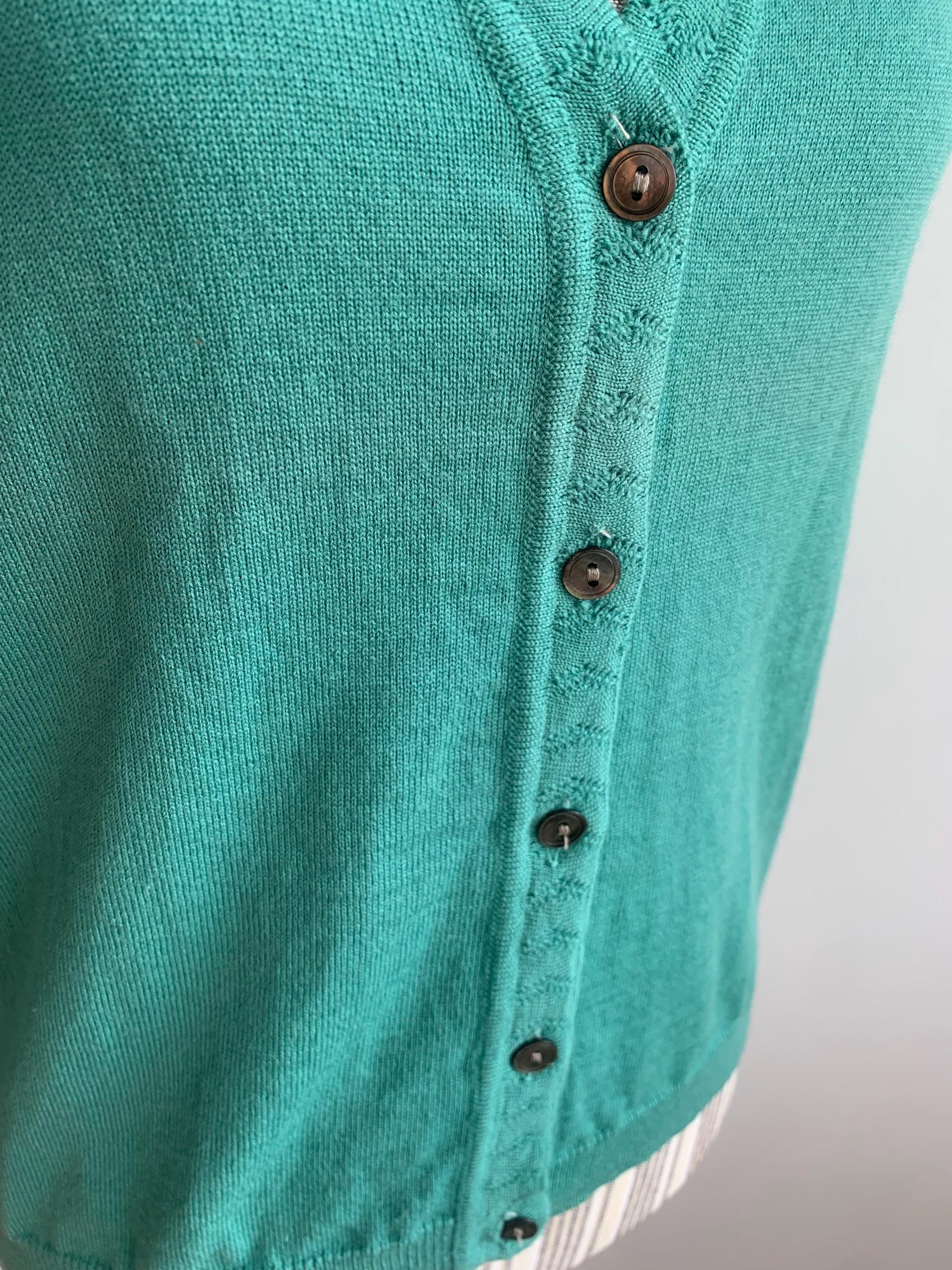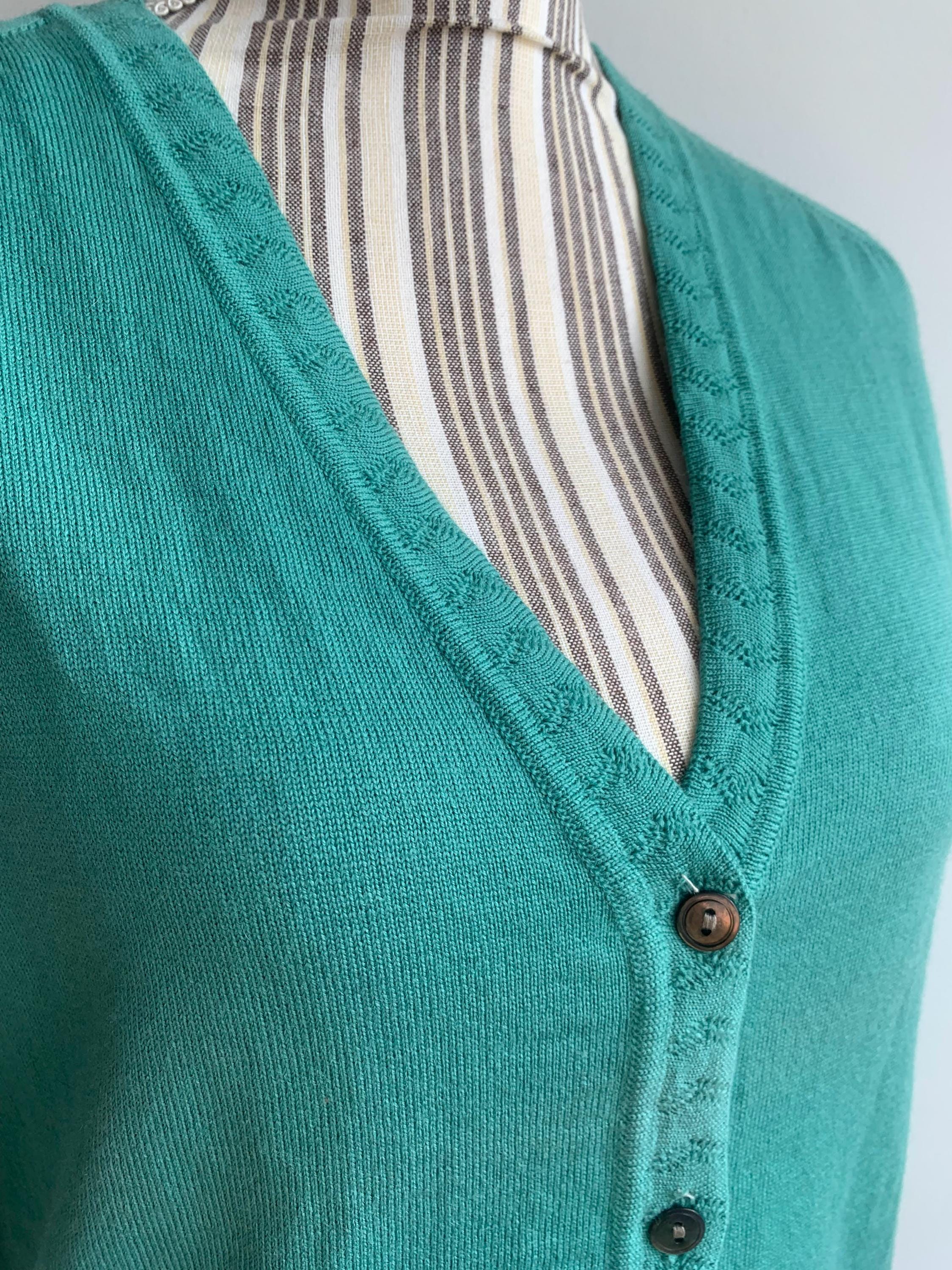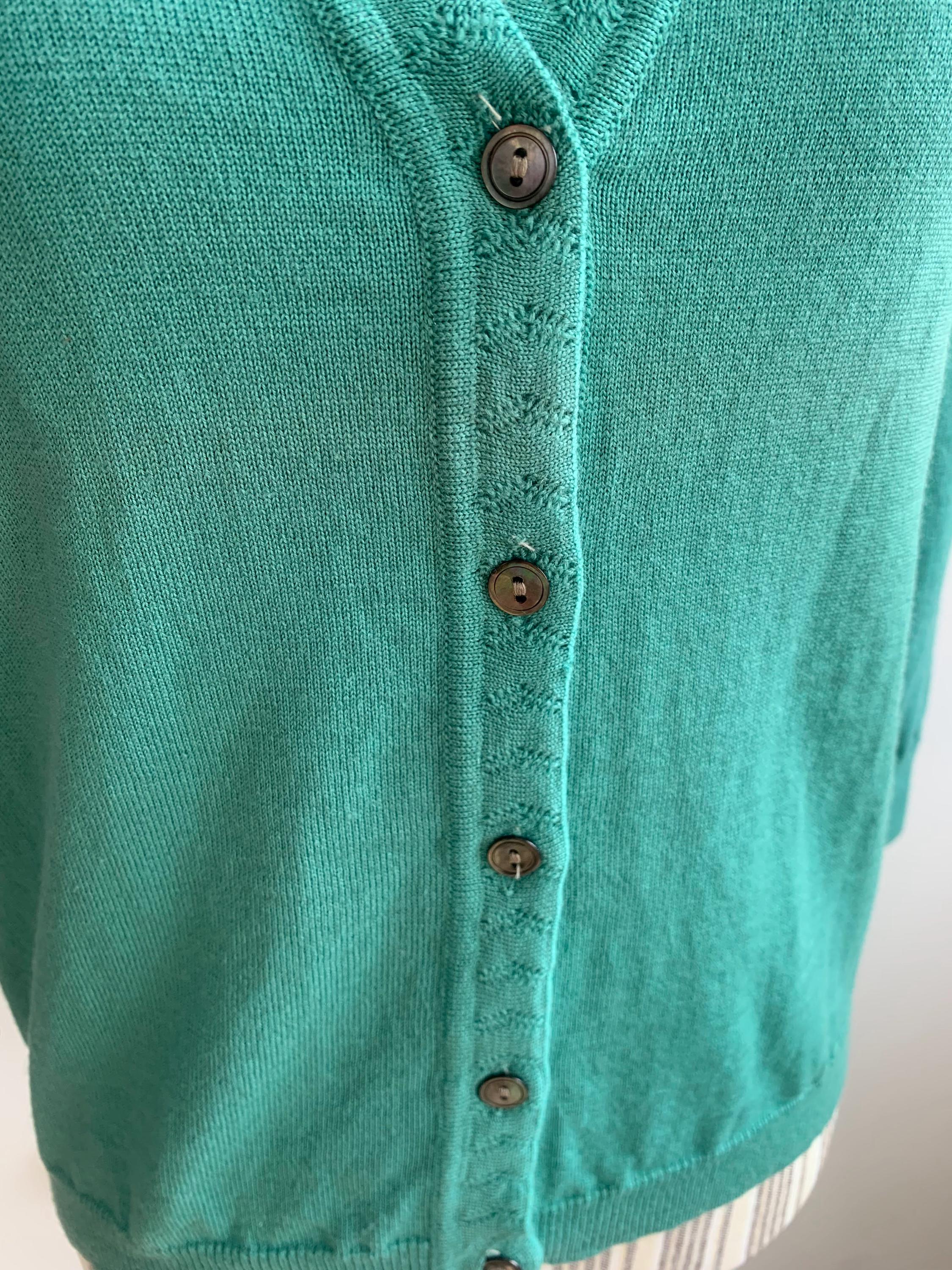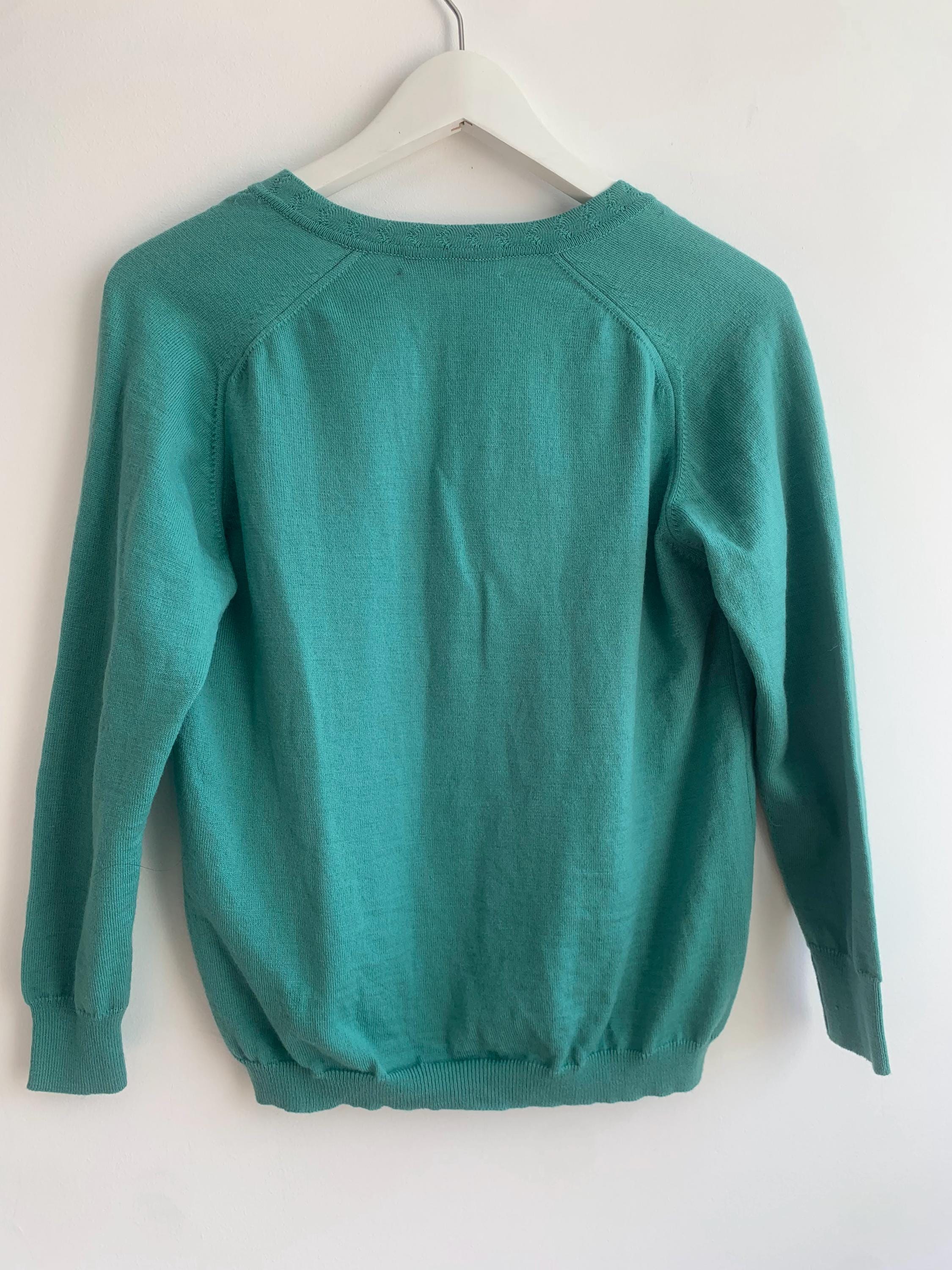 Check out this gorgeous vintage 80s teal pure wool sweater delicate knitted pattern and button front closure. This warm and cozy pure wool cardigan is made of soft pure wool knitted fabric which is warm and cozy. This soft wool cardigan has a relaxed cropped silhouette with bracelet sleeve. This knitted cardigan is so romantic, perfect to pair with boho chic dresses or midi skirts. It fits like size S