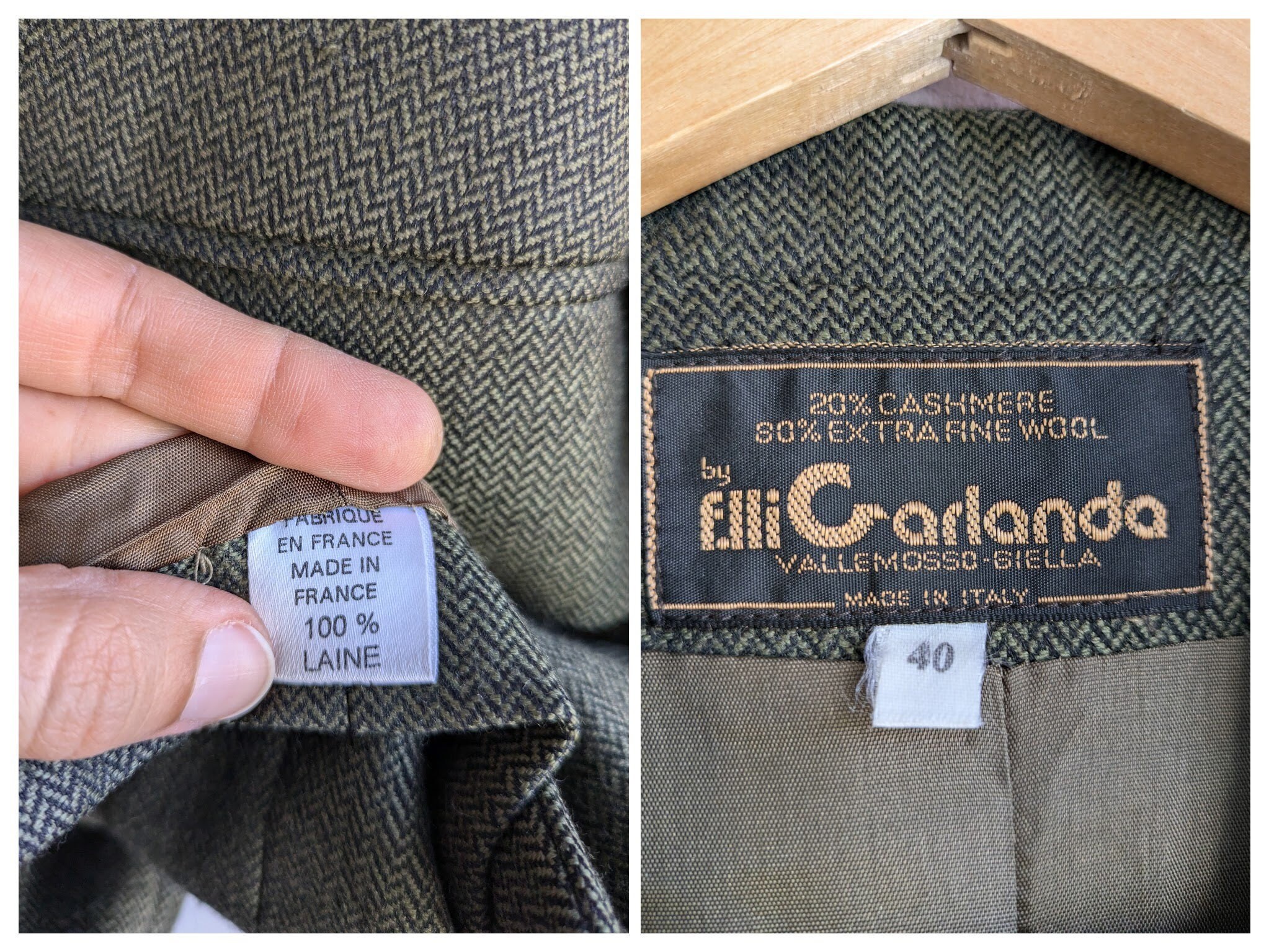 Condition: beautiful vintage condition with almost no visible signs of wear, just some fluffiness of the wool fabric under the armpit, which I have captured in the close up photo.