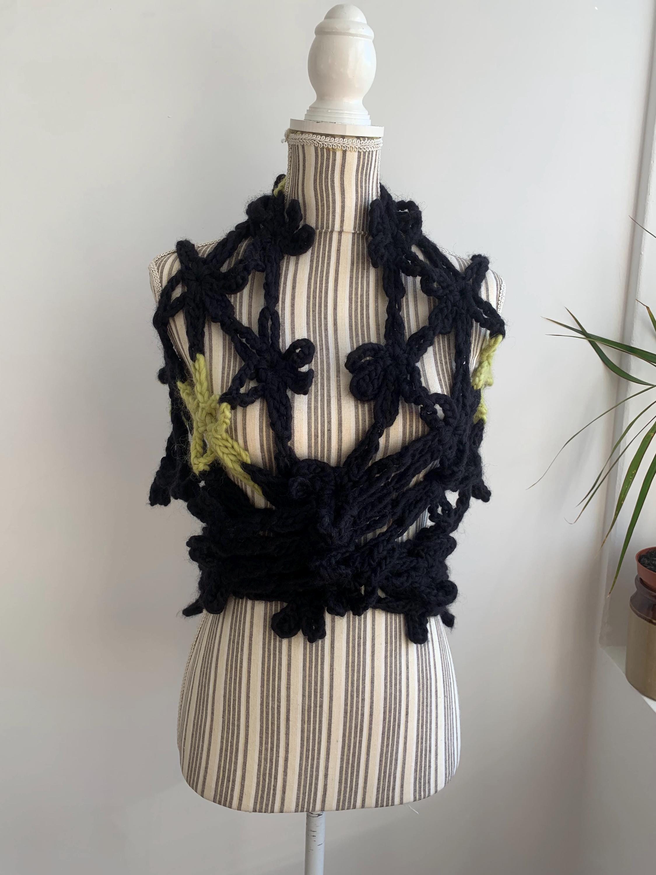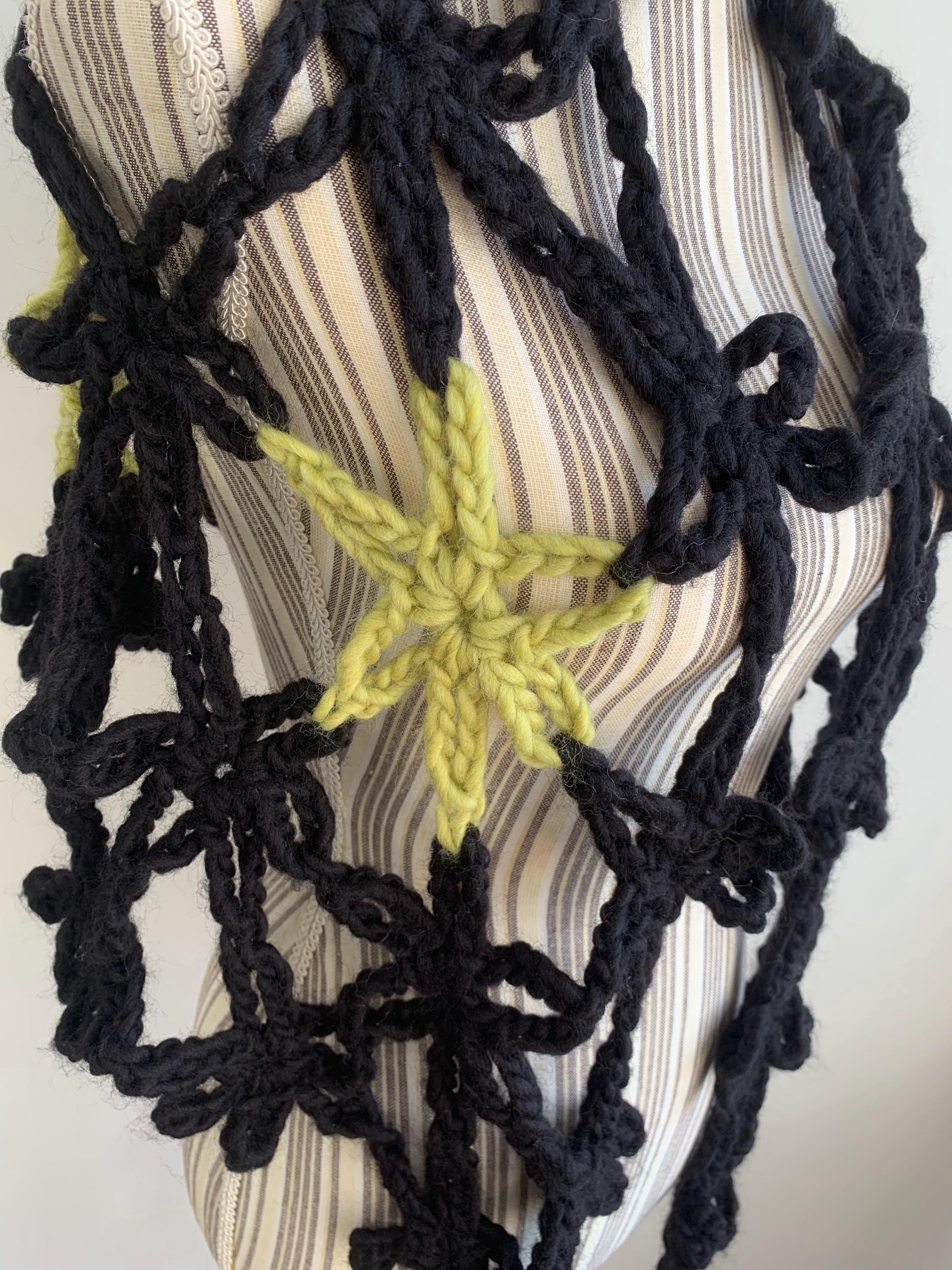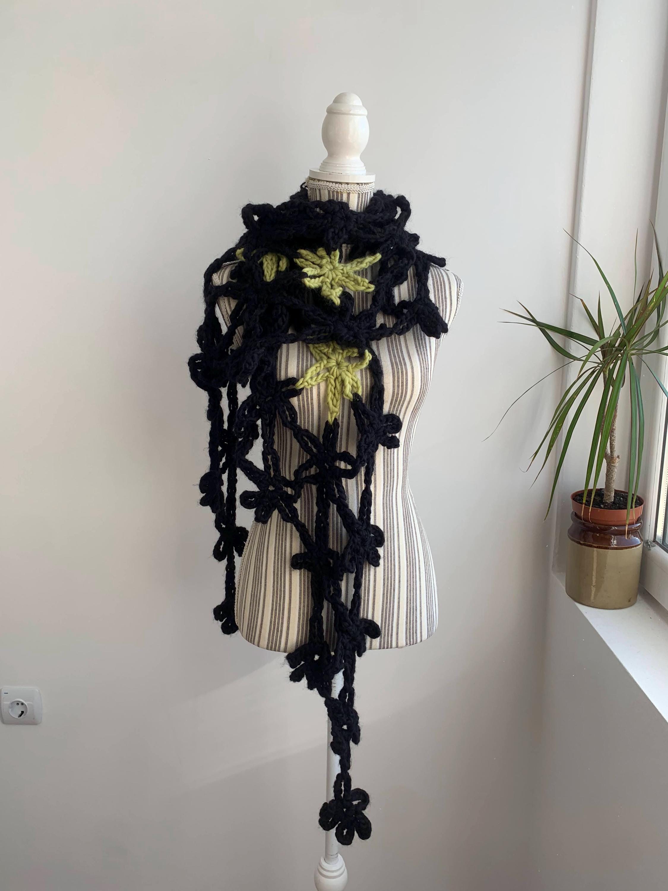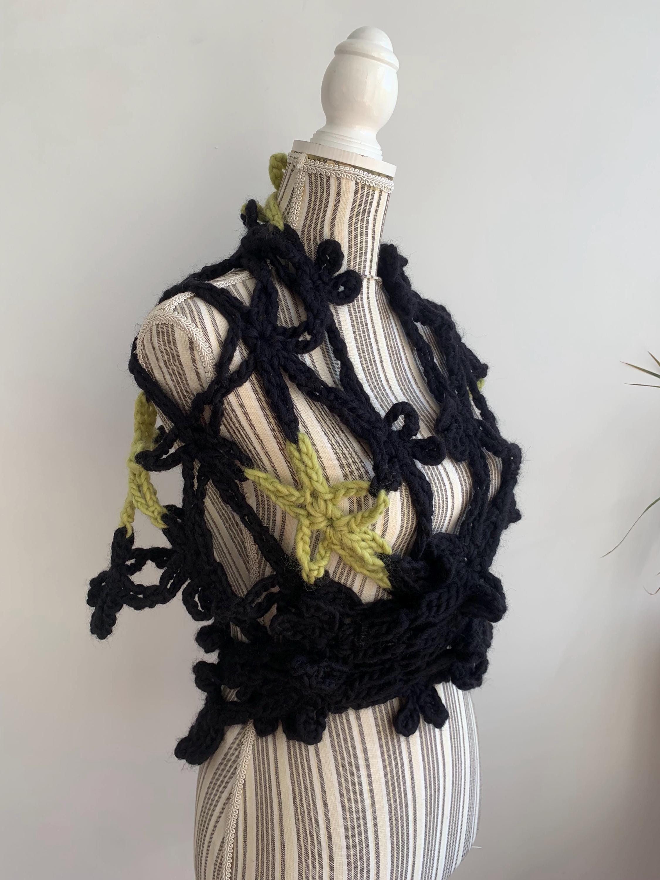 This is a beautiful vintage 90s jumbo flower crochet shawl in black and lime green. This chunky knit shawl is so versatile that you can wear in a variety of ways. This bohemian cover up is made of thick super soft and fluffy mohair acrylic wool yarn which will keep you warm and cozy. Perfect romantic wrap shawl for any occasion. Wonderful vintage gift for her