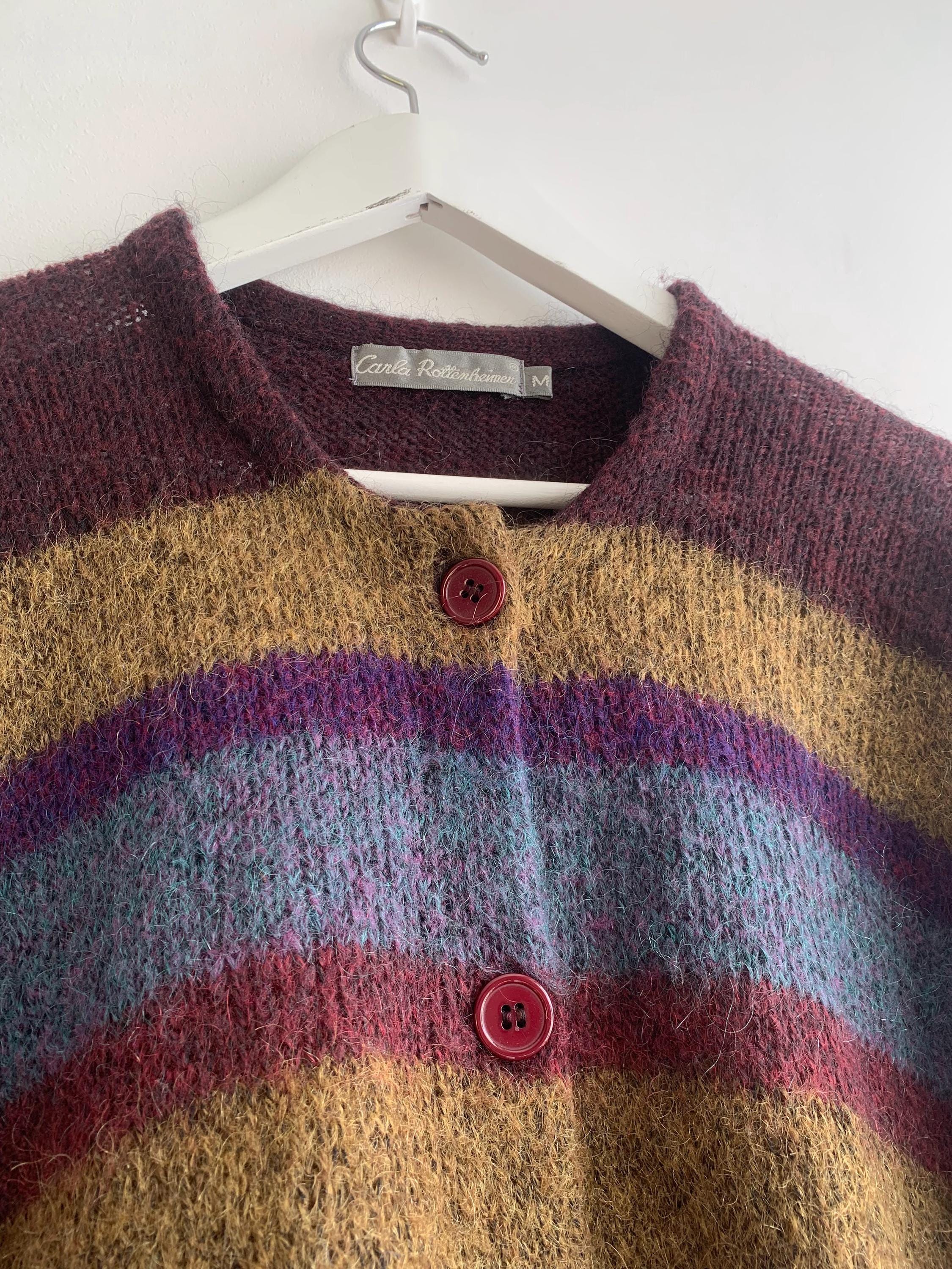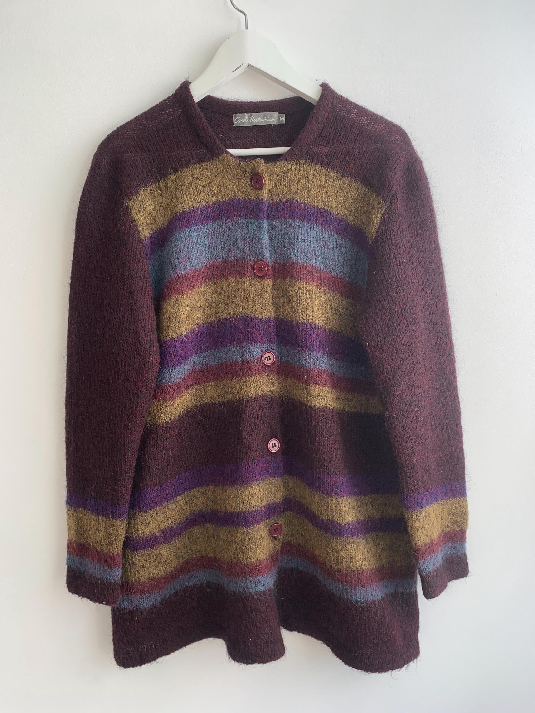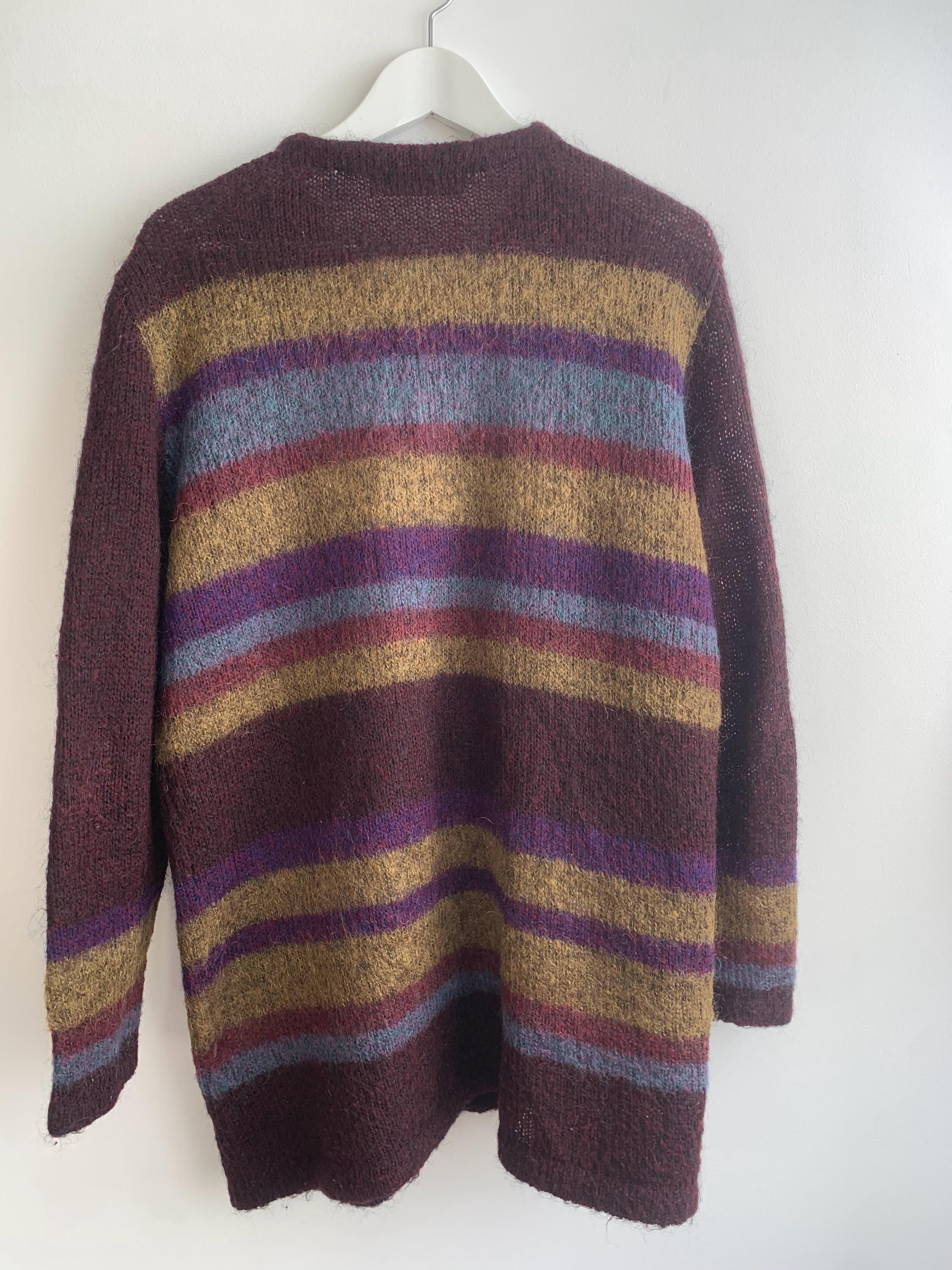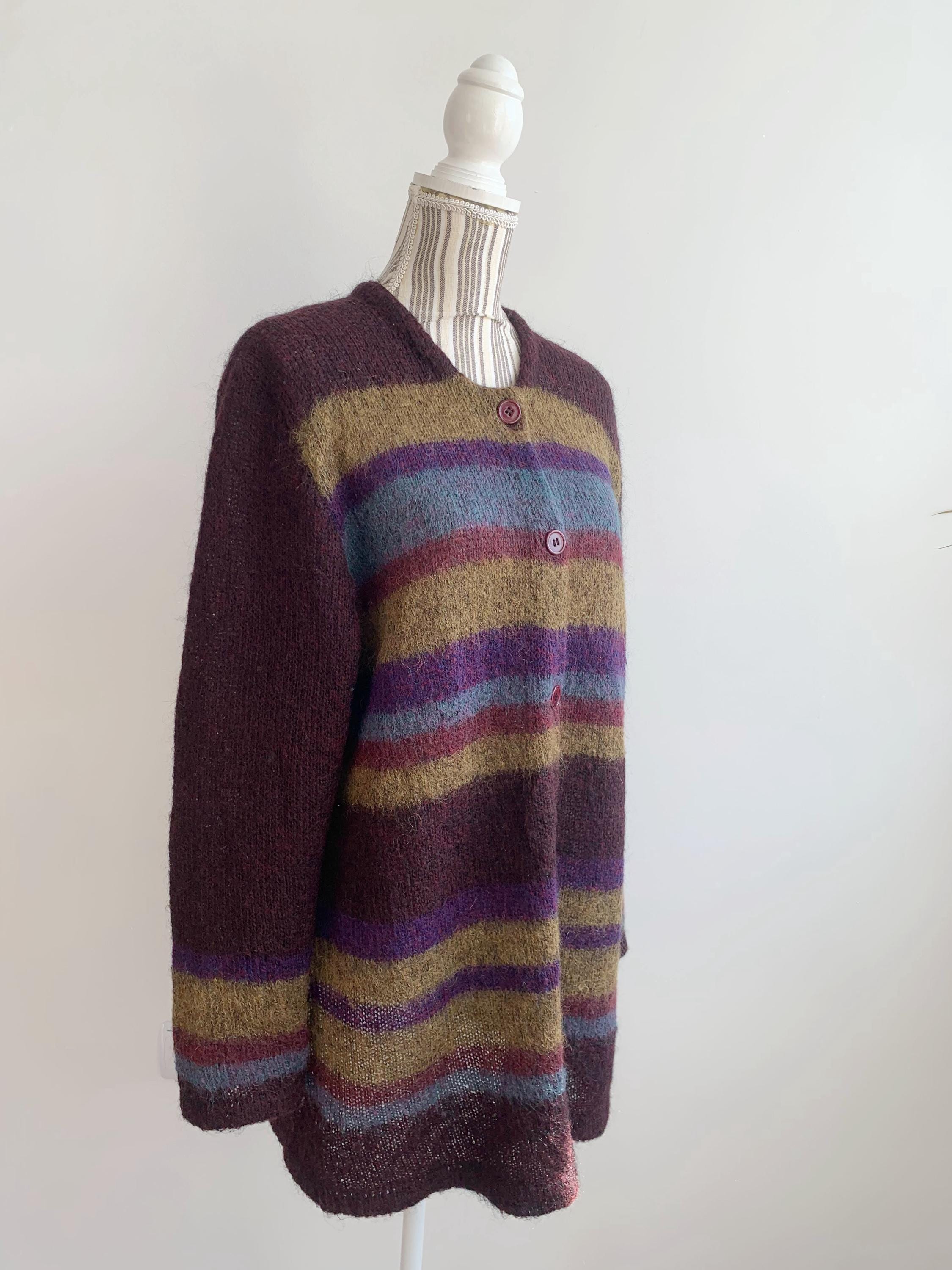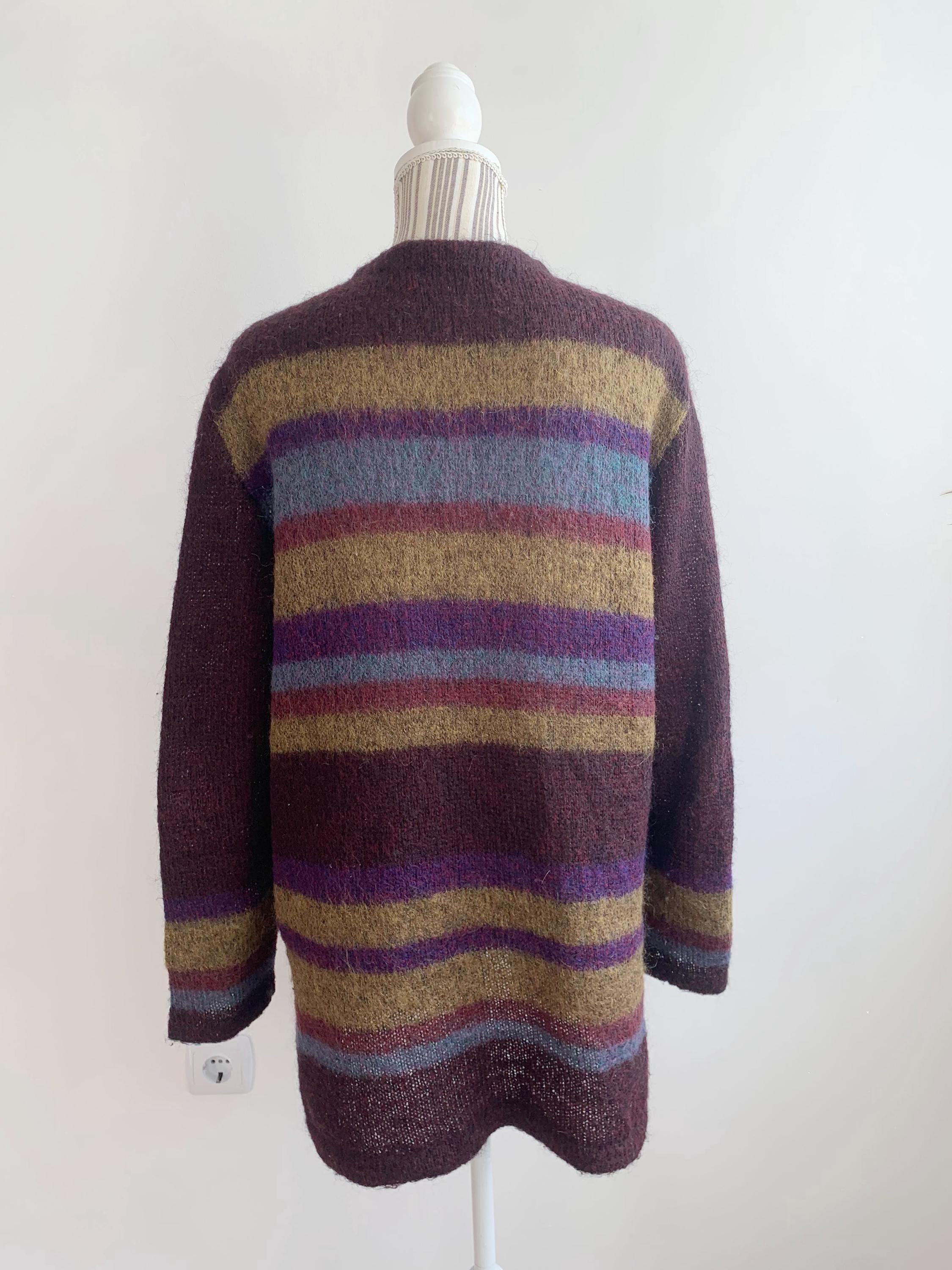 Check out this gorgeous vintage striped soft mohair wool button front cardigan made of 50% mohair wool, 30% acrylic and 20% polyester. This fluffy fuzzy longline cardigan is super cozy and warm for the fall winter season. This soft knit cardigan has an oversized relaxed silhouette. This knitted cardigan carries the 90s boho chic vibe. Wonderful vintage clothing gift foir your mom. It fits like size M