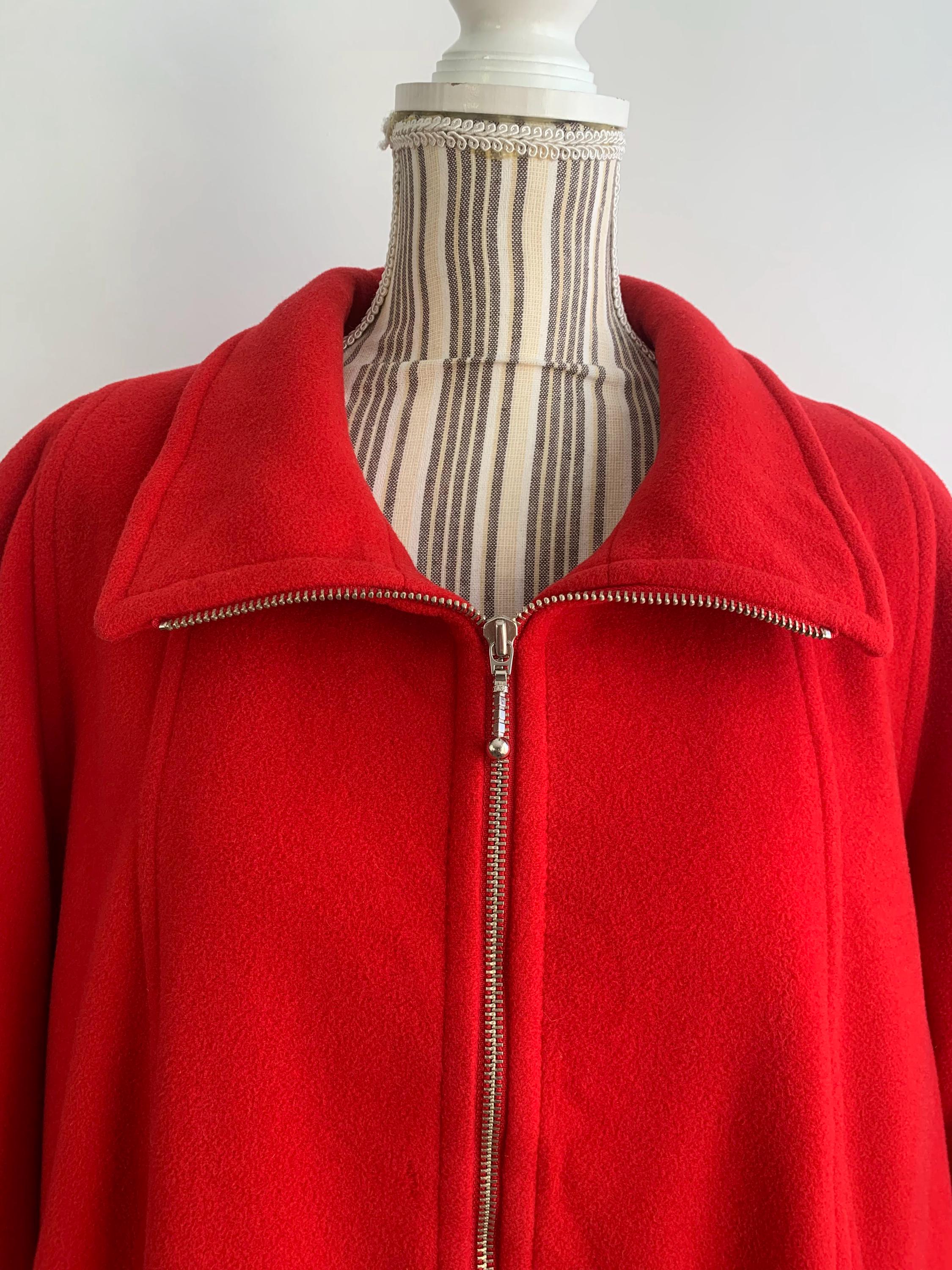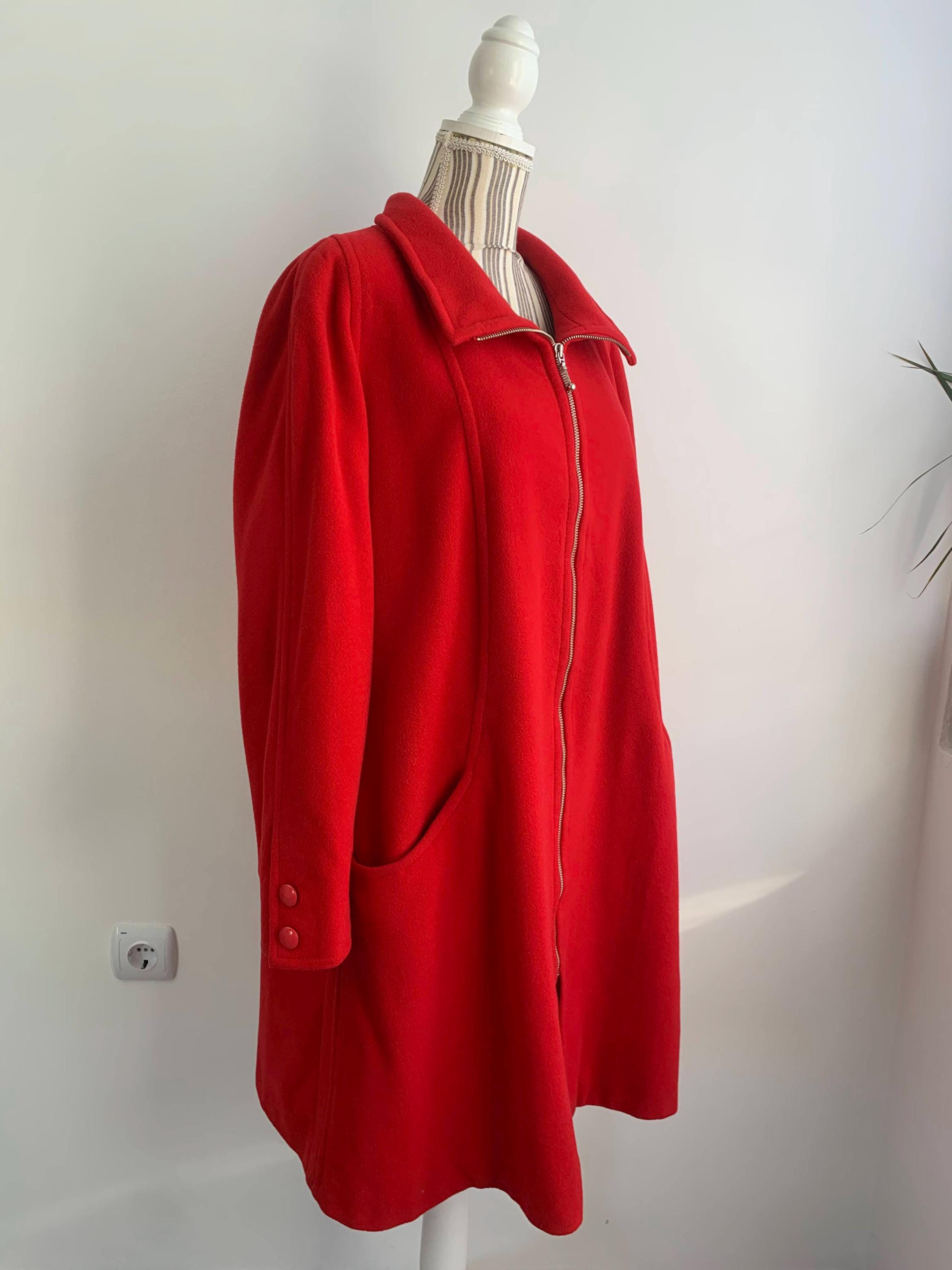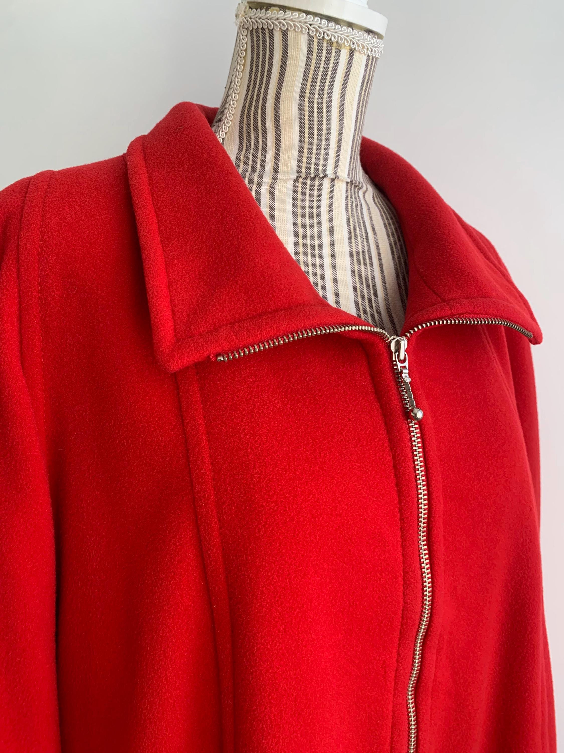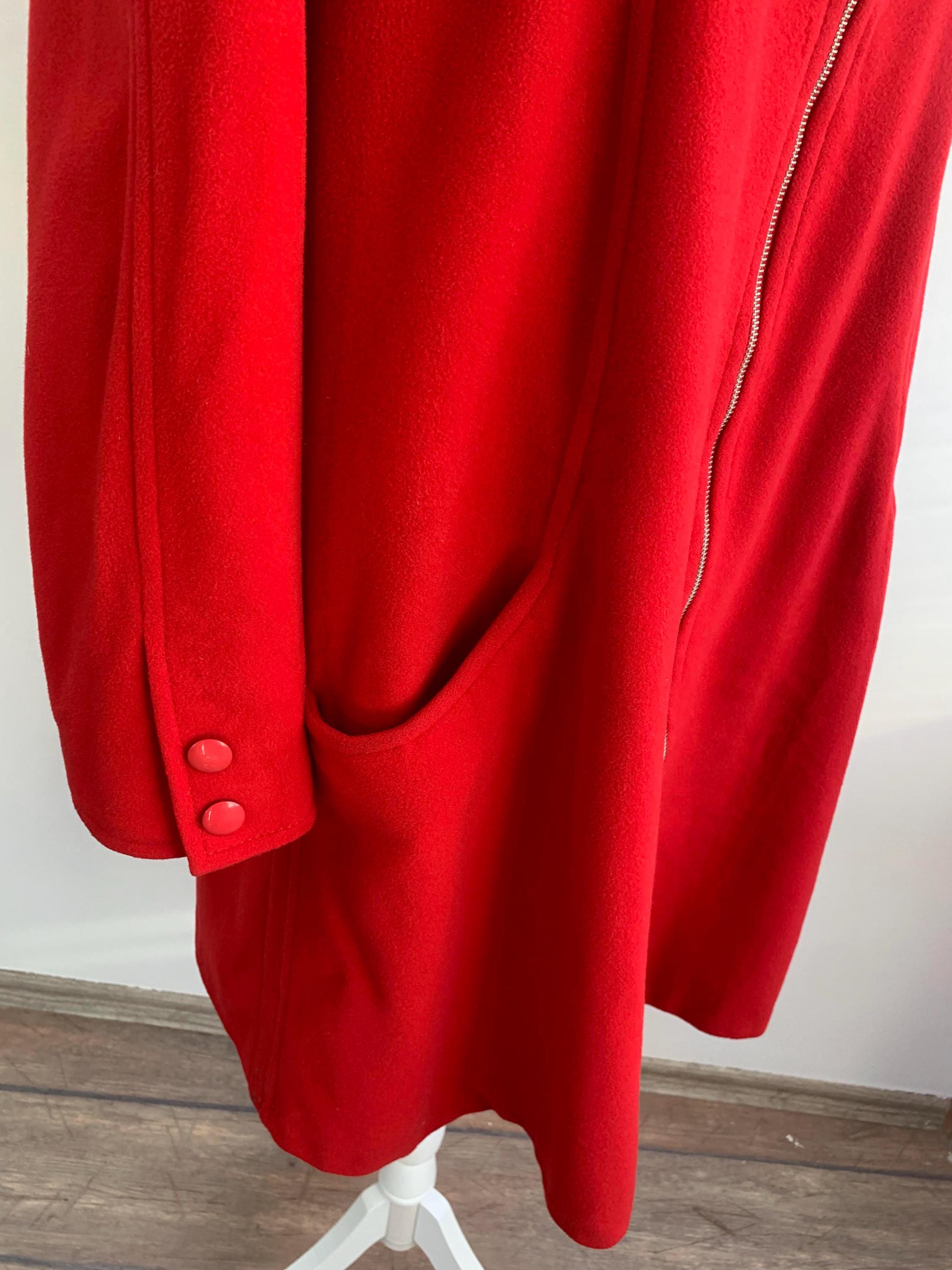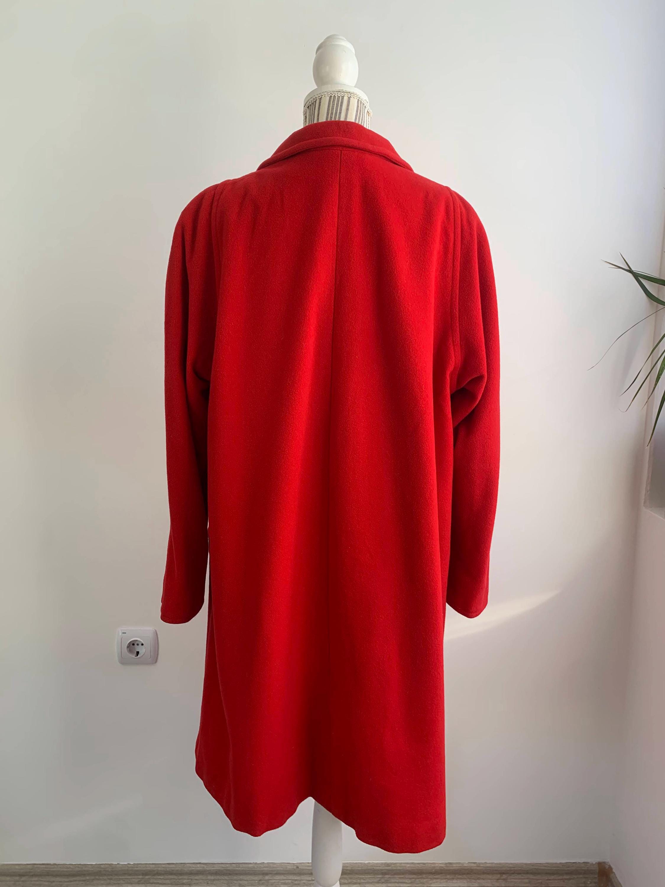 This is s beautiful vintage wool cashmere blend winter midi coat for women. This wool coat is is bright red color. This classic warm winter coat is made of soft and cozy cashmere wool blend fabric. This A line flared cashmere wool overcoat has lining underneath. It has front zip up closure and two side pockets. This long line wool coat has midi length to about the knees, depending on your hight. This long wool coat is size 44 marked, it fits like size L. Please check the measurements below.