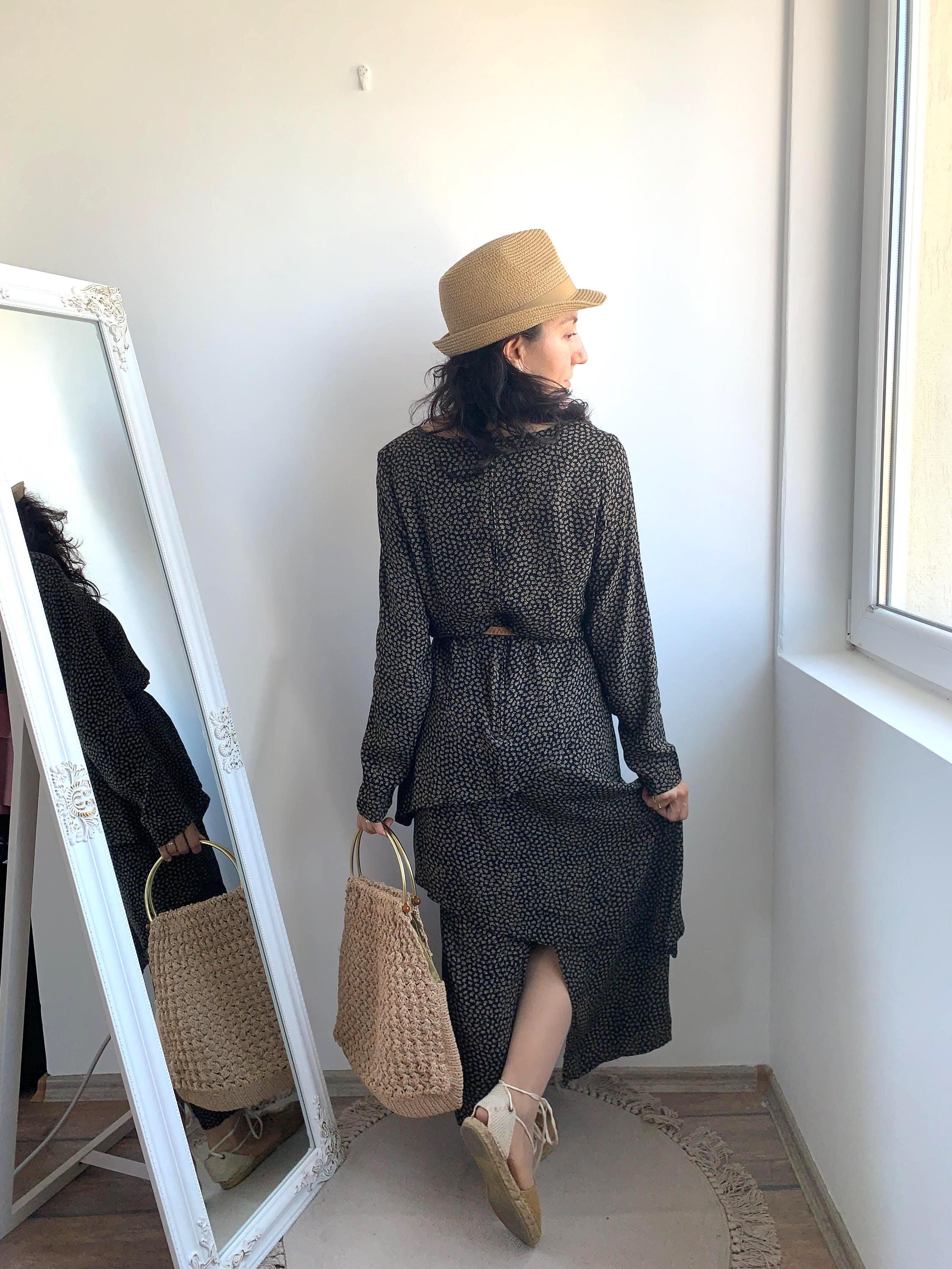 The straw handbag can be purchased here - https://blastfromthepastbags.etsy.com/listing/1165971124/vintage-sisal-basket-bag-boho-summer
