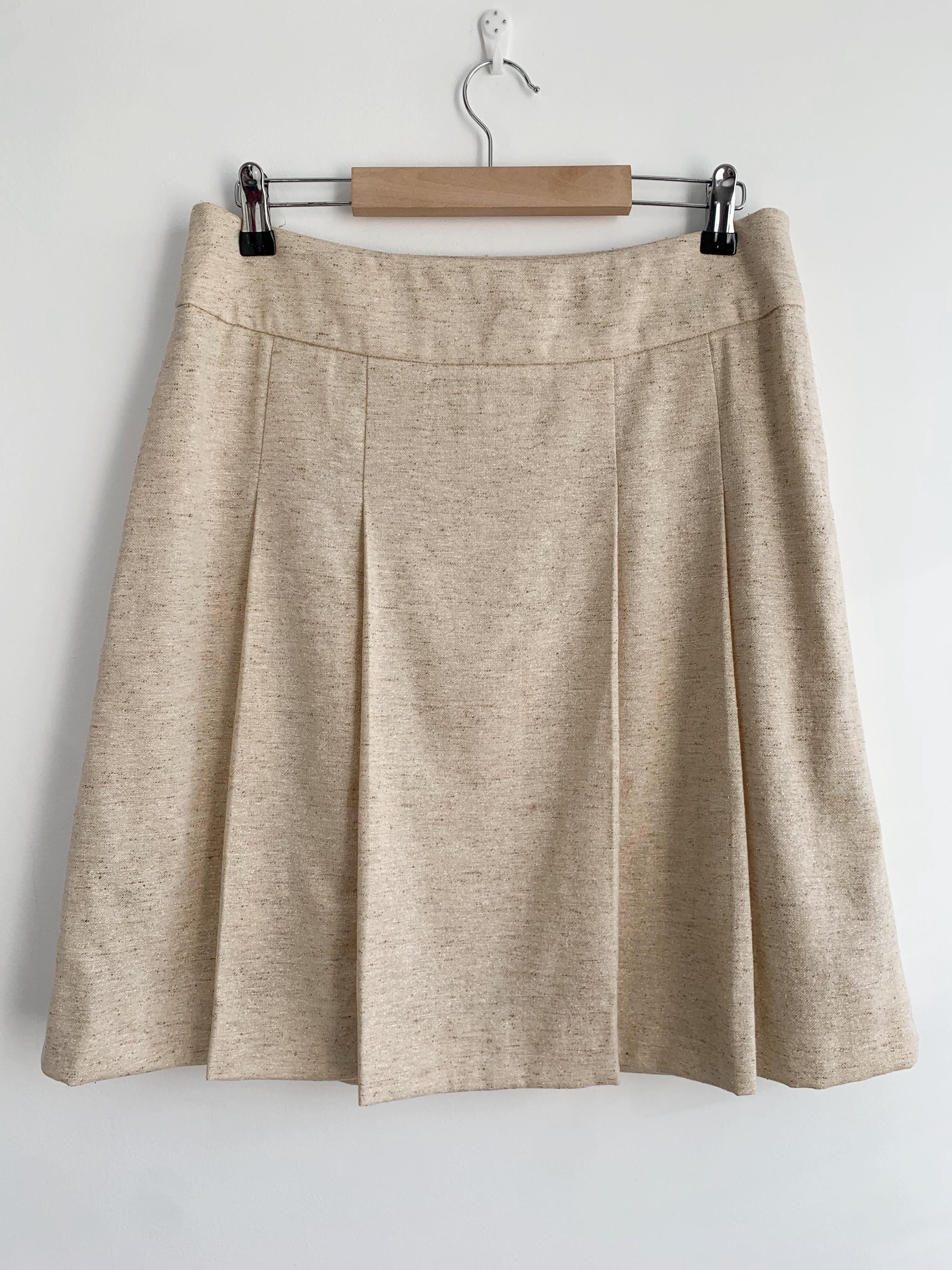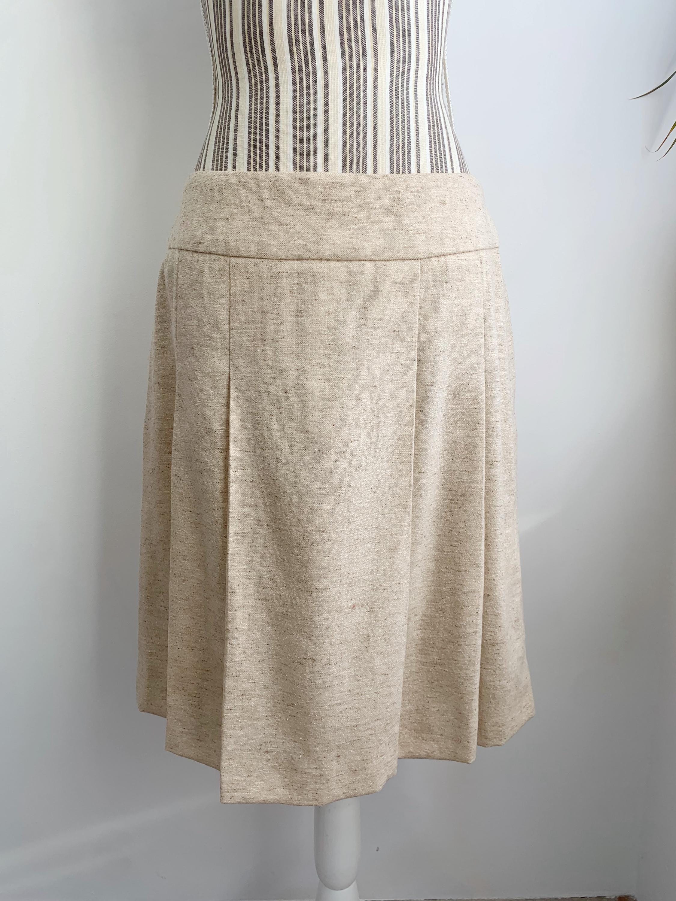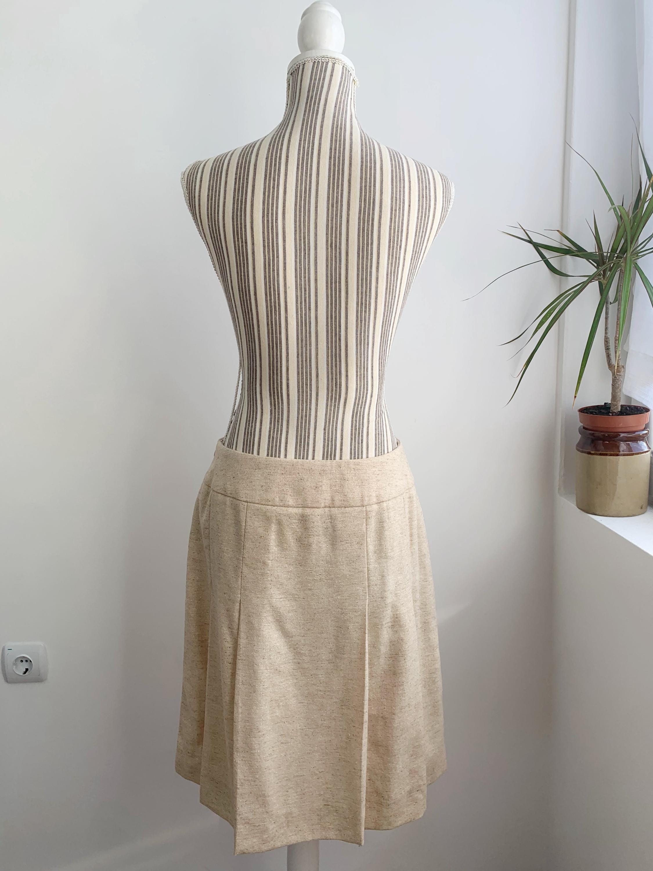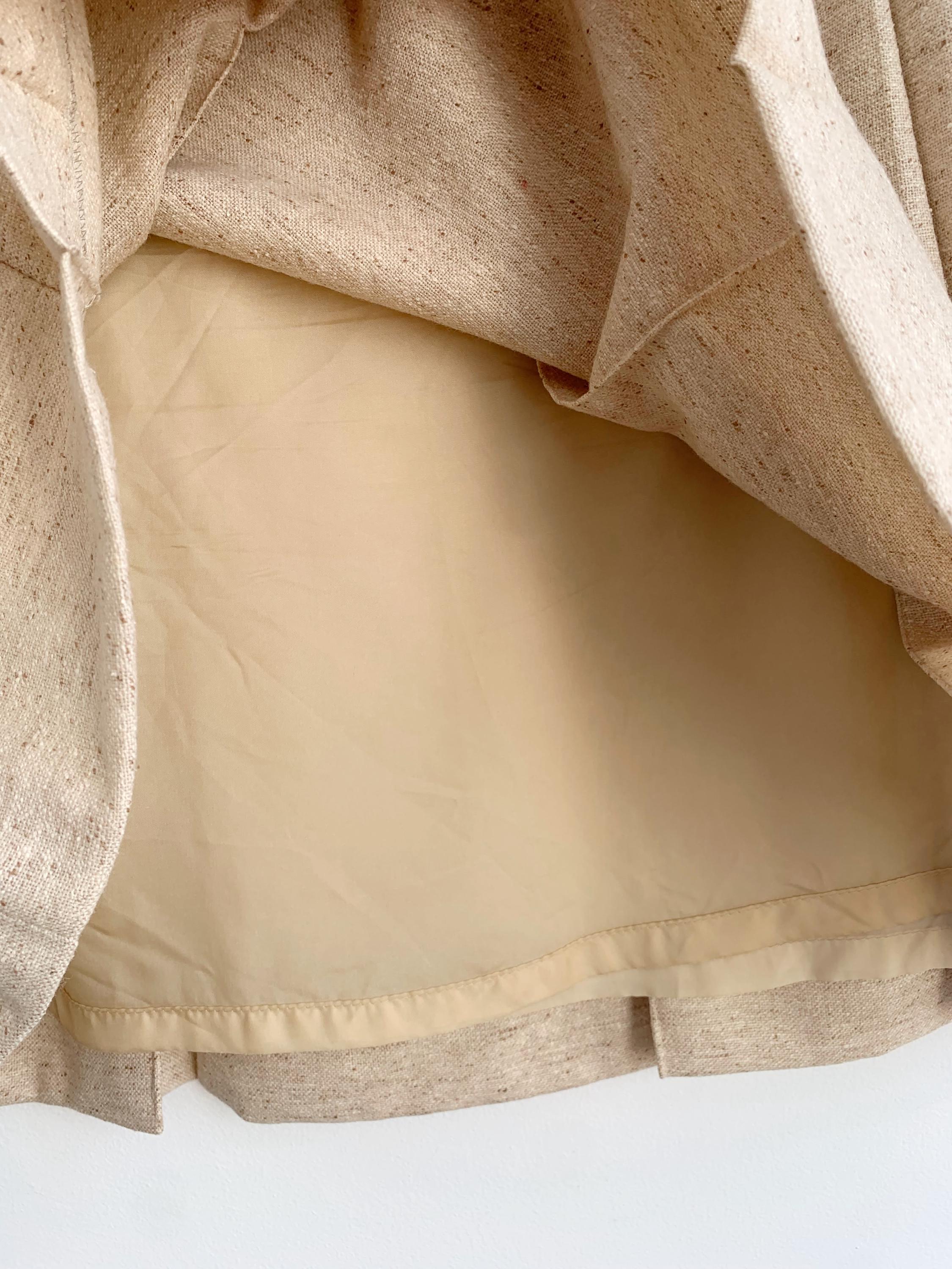 Stylish vintage German short skirt with peats made of textured fabric which feels like wool linen blend with polyester lining. This pleated skirt has side zip closure. It has not size marked, it fits like size M. Please check the measurements below.