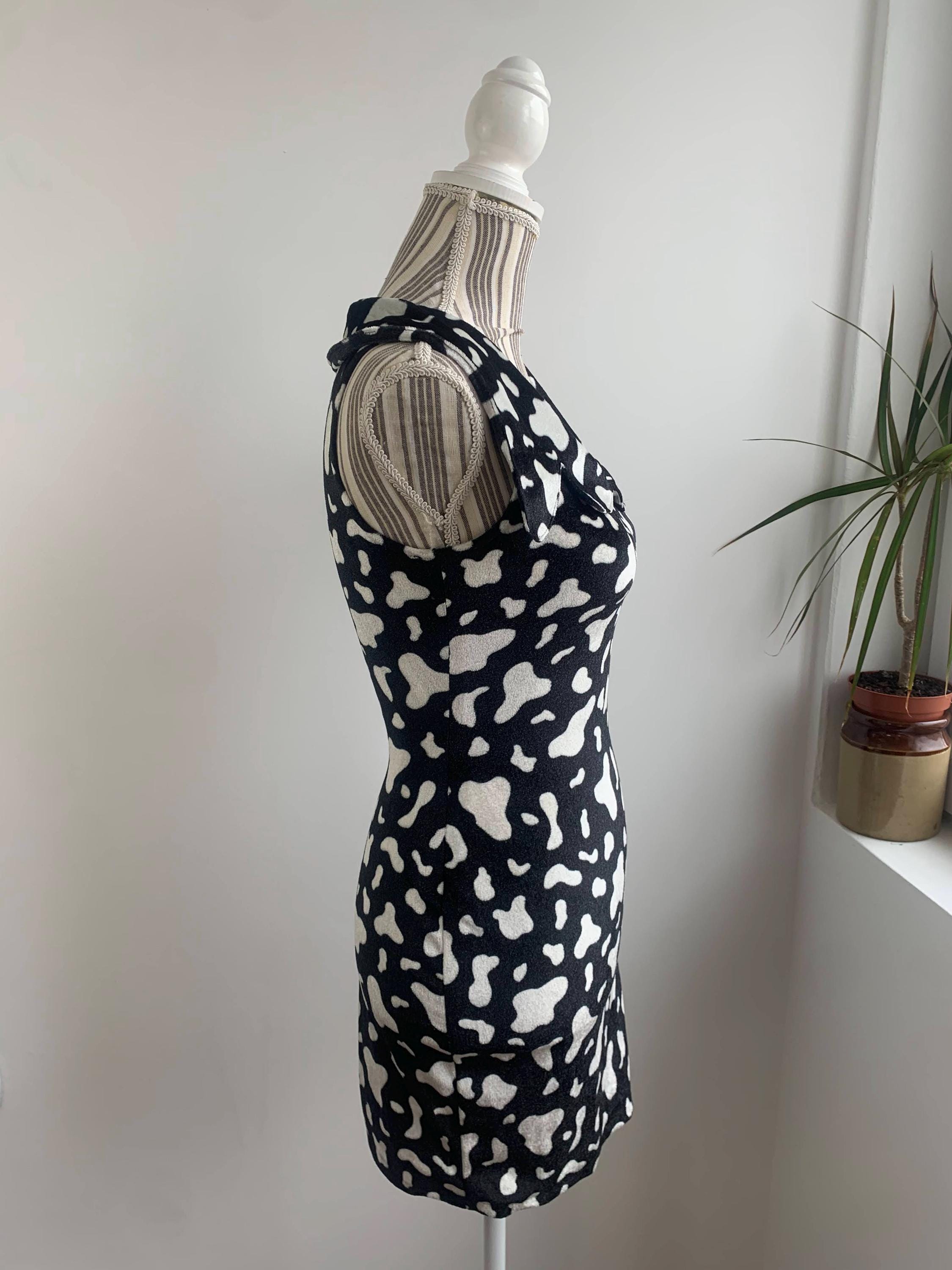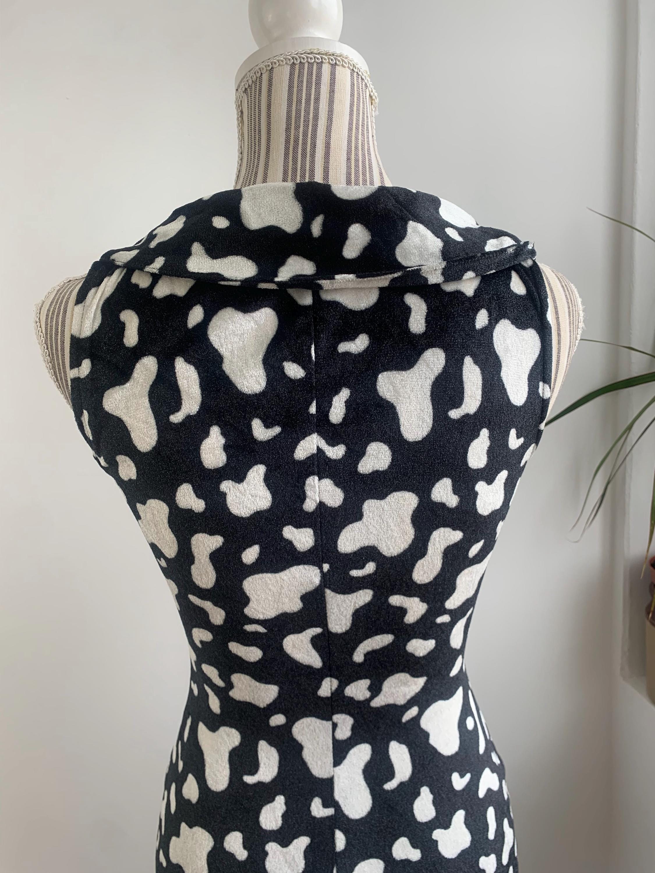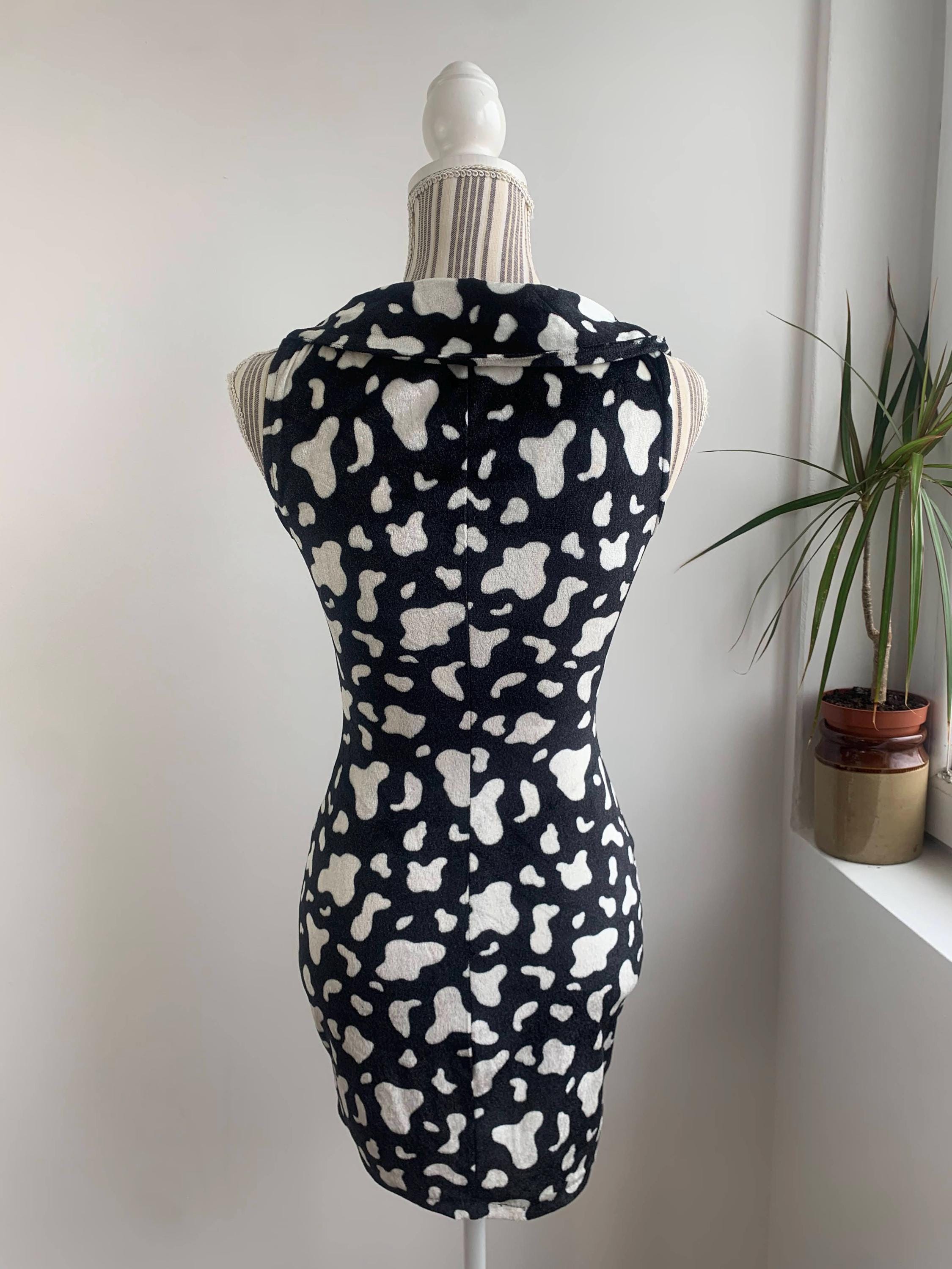 This is a beautiful black and white abstract print short stretchy fitted bodycon dress with lovely retro style collar. This pullover mini dress is made of soft and stretchy plush velvet fabric. This retro style bodycon dress has no closure, it is a pullover dress. This stretchy mini dress was handmade, there is no tag or label. It fits like size XS. Please check the measurements below.