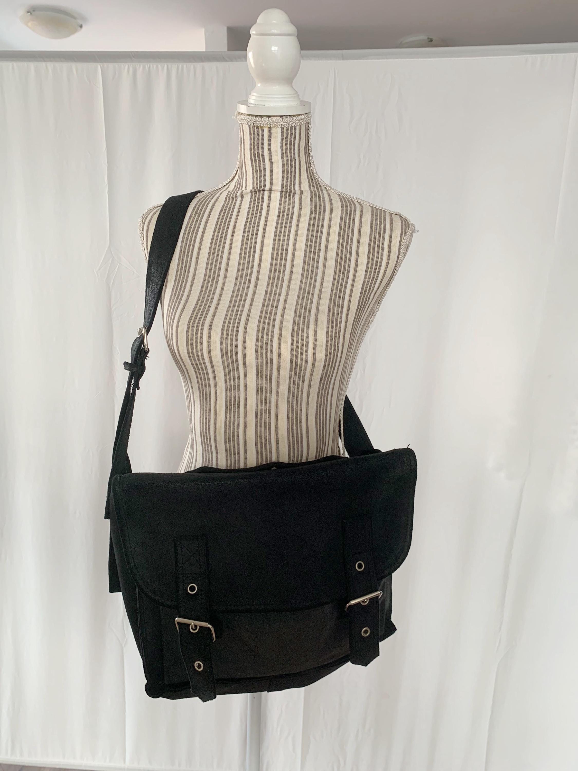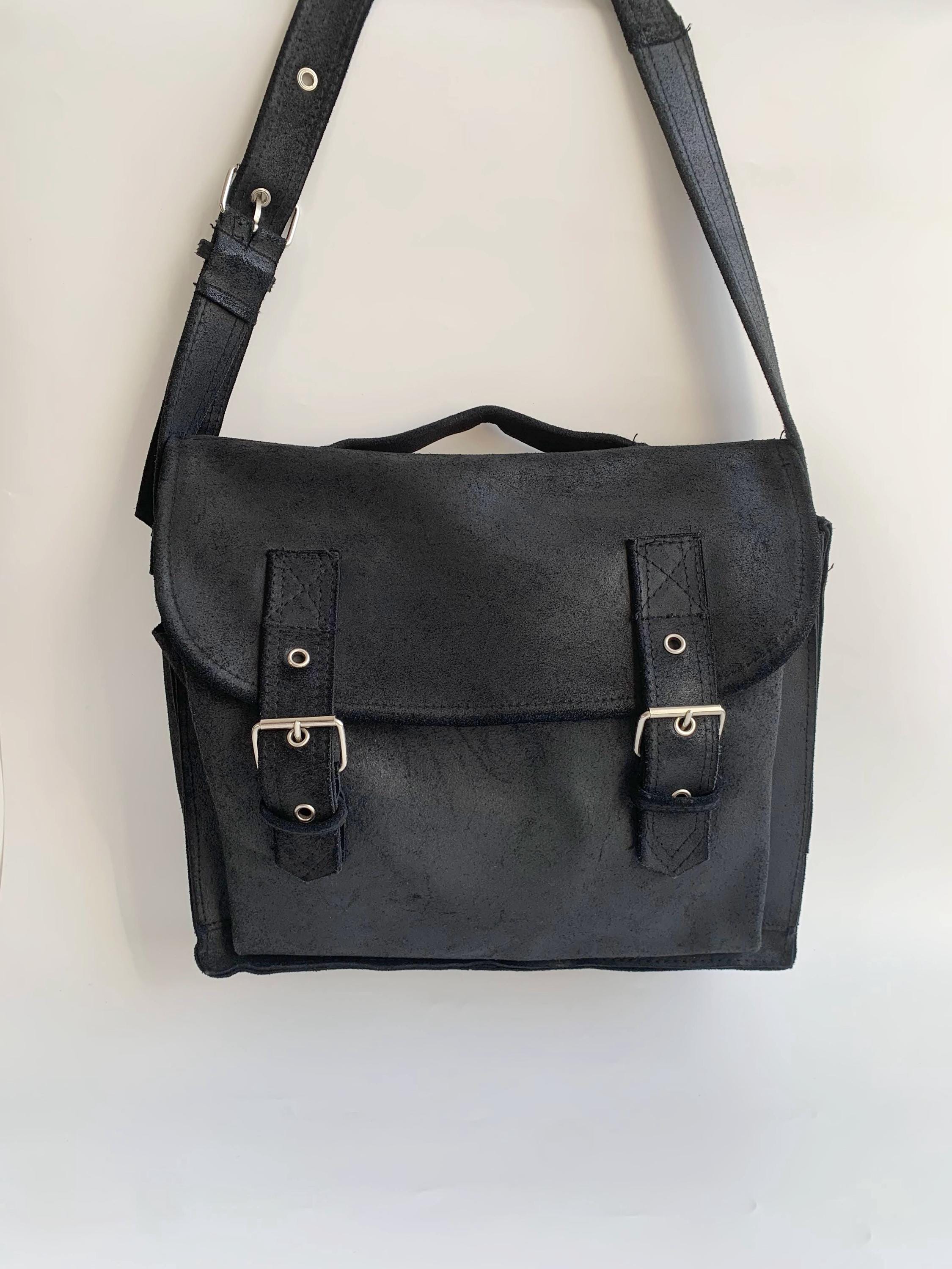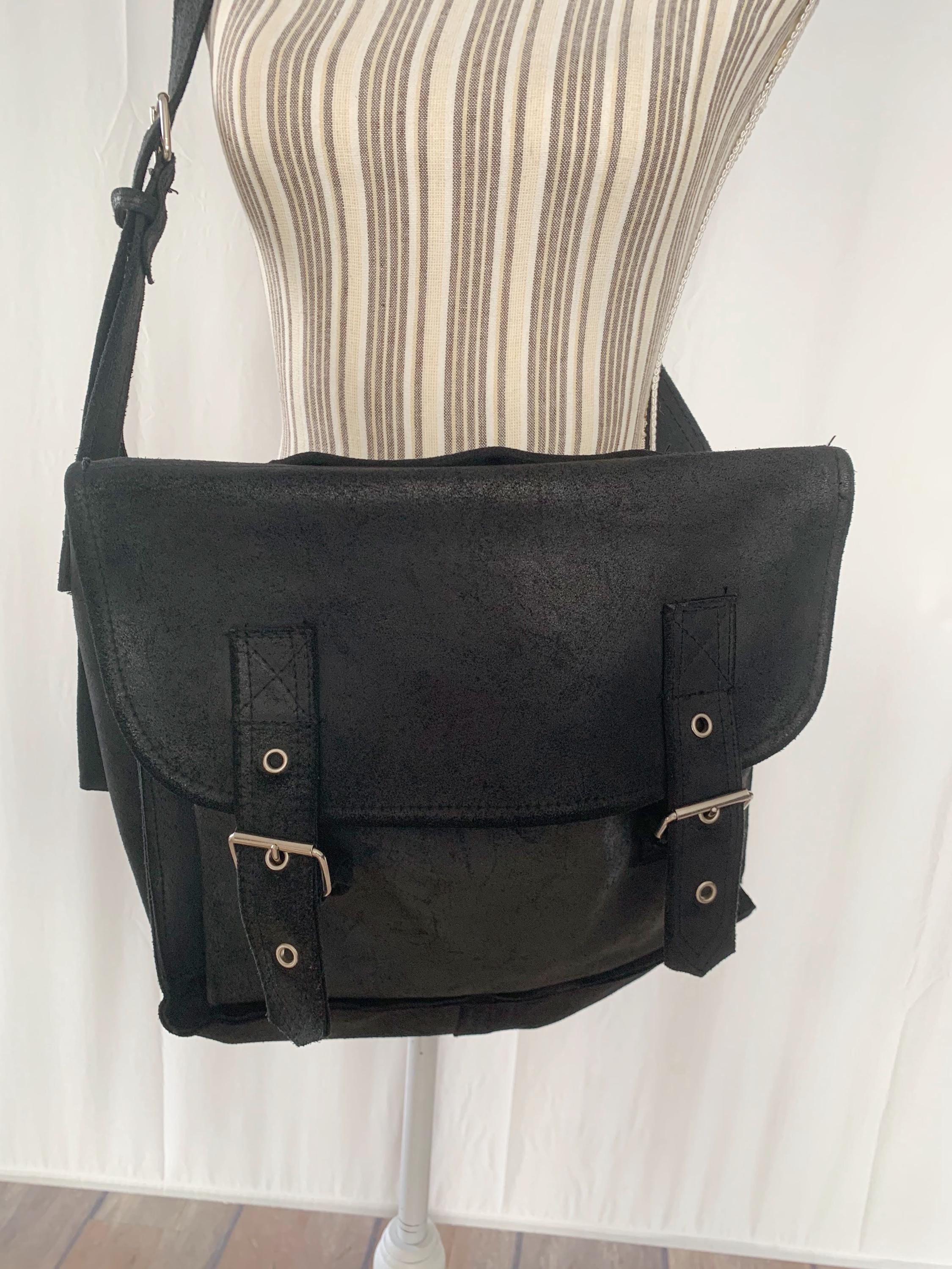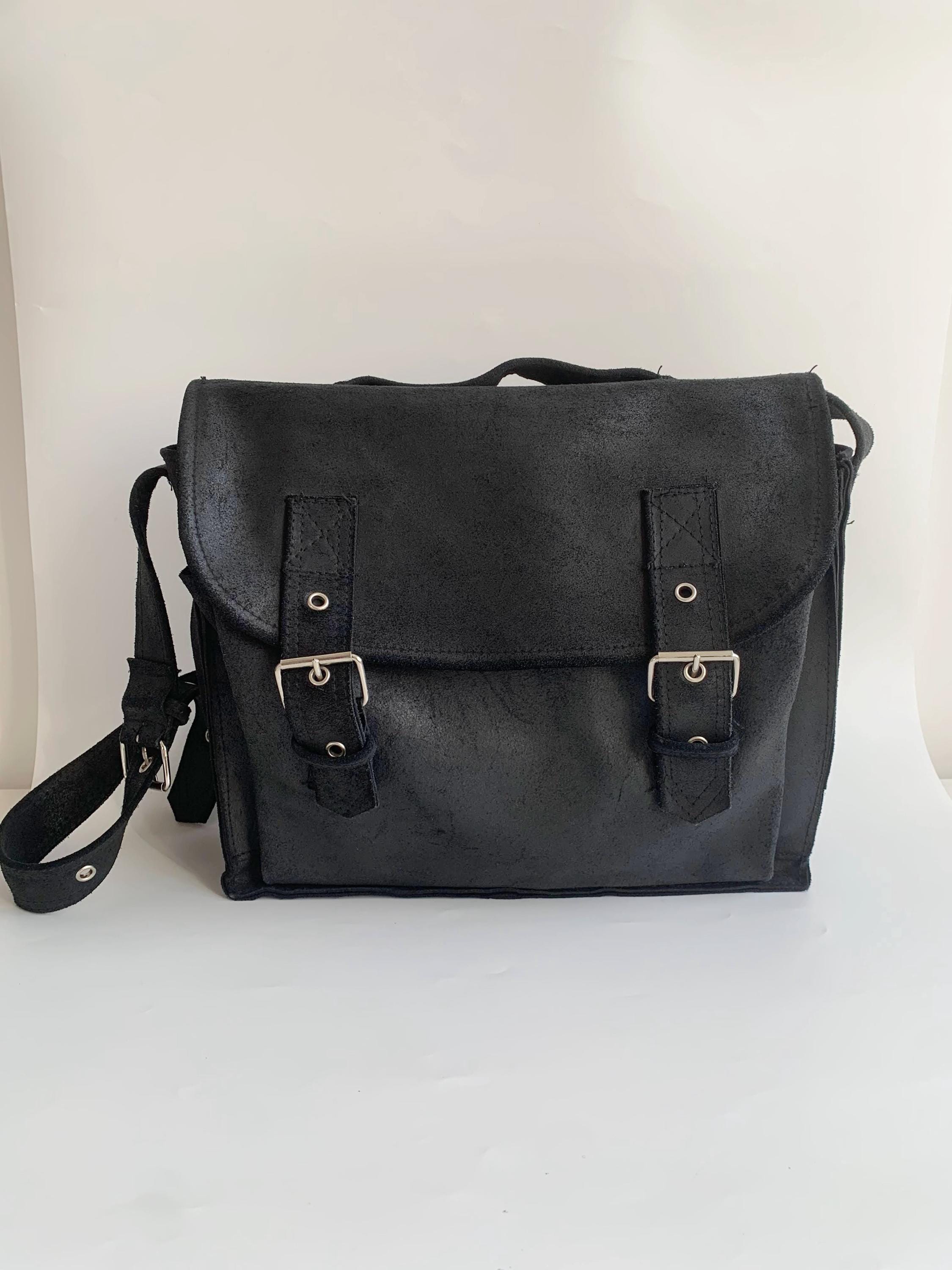 This is a pretty soft black suede leather top handle purse. This vintage 90s oversized handbag has top handle and adjustable shoulder strap. It is made of heavy sturdy soft suede leather. It is perfect for work or school. This black suede leather satchel will be a classic addition to your wardrobe. It is just the right size to fit in everything you need for a busy day out at work, it fits size A4 files comfortably. This large leather messenger bag has one compartment and one pocket at the front.