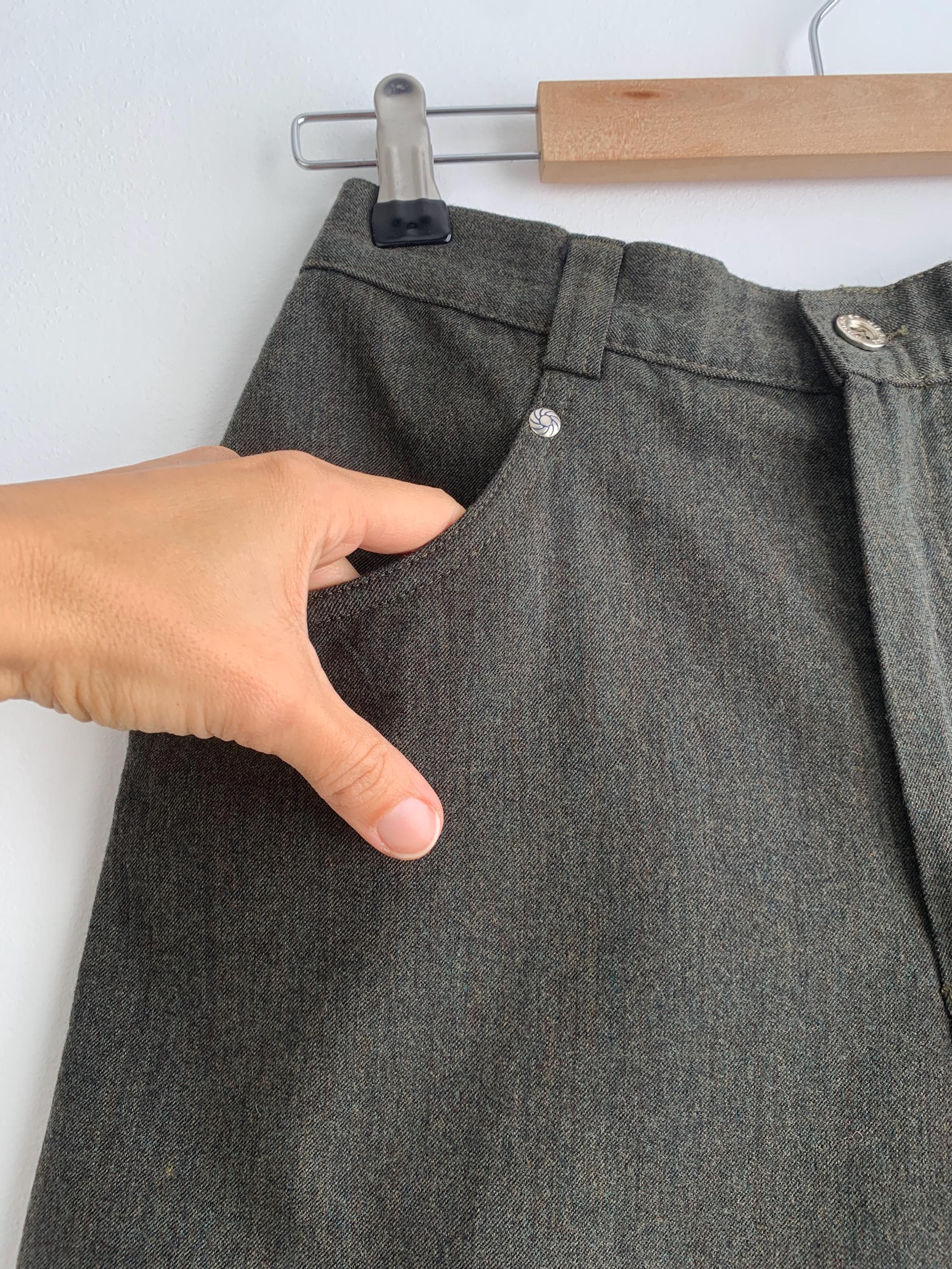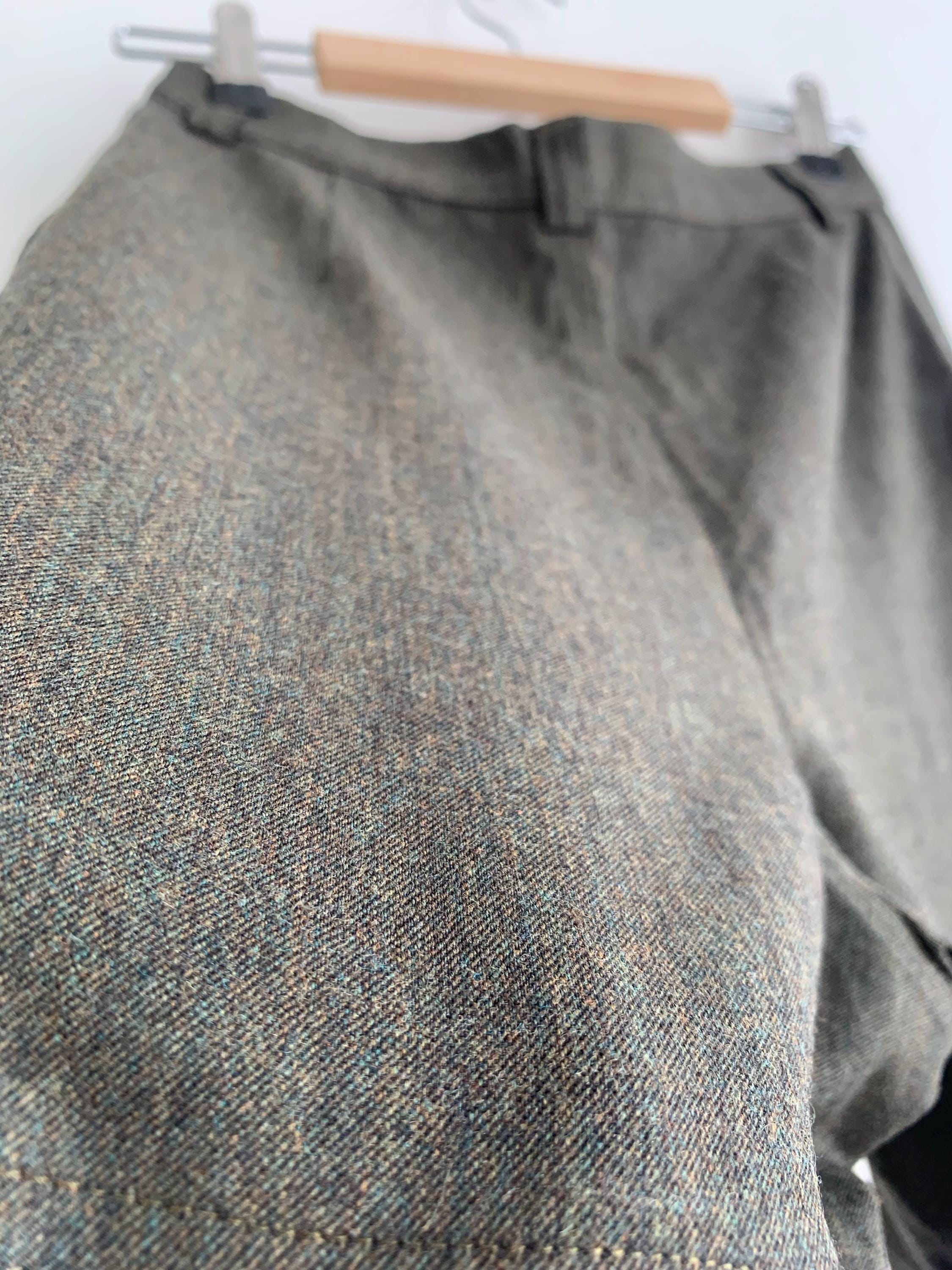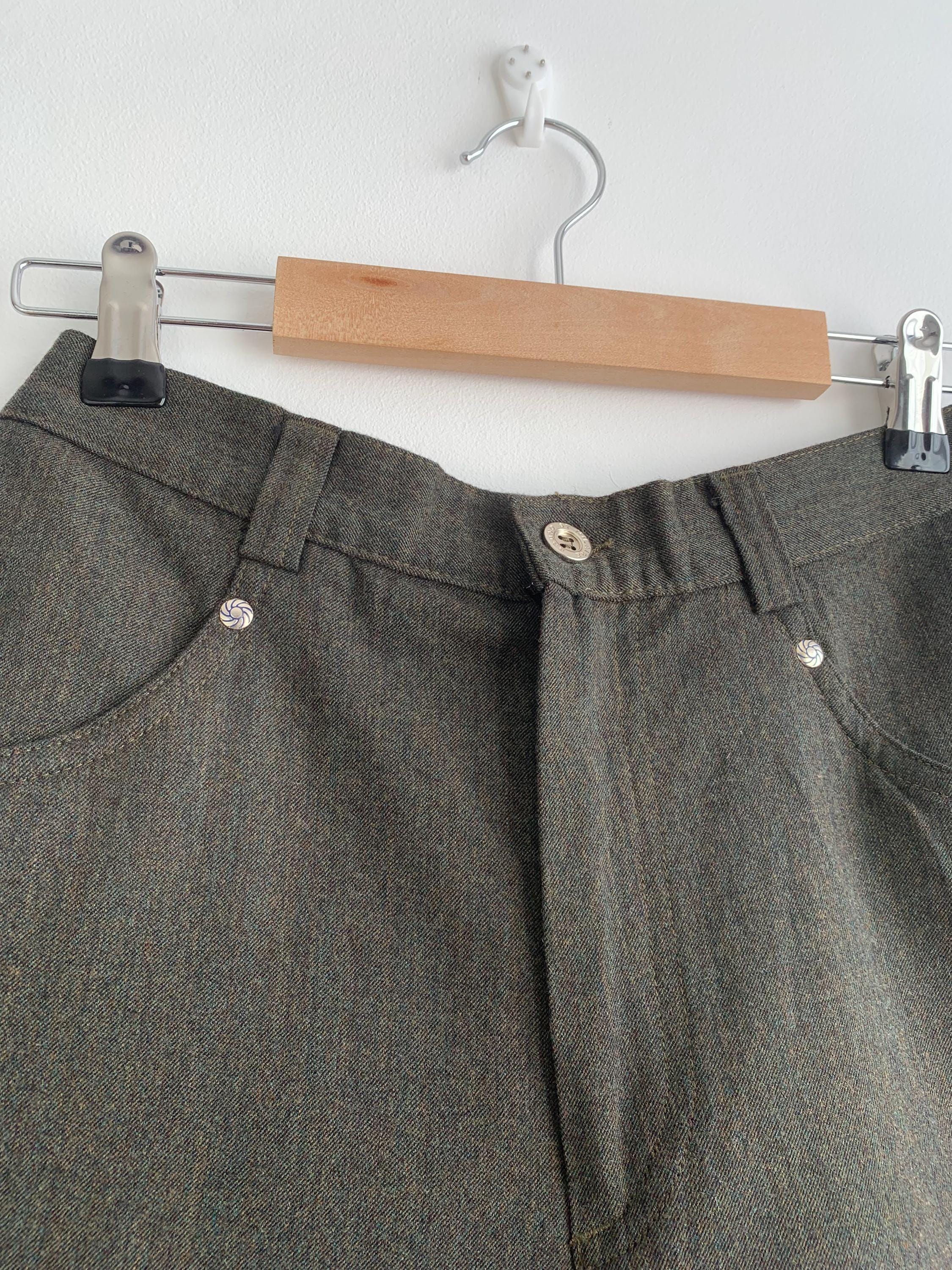Stylish vintage wool shorts for women, made of thin wool fabric in olive green color. These classic dress shorts have front zipper and button closure with two front pockets. They are unlined. The size marked on the label is 38, they fit like size XS. Please check the measurements below.
