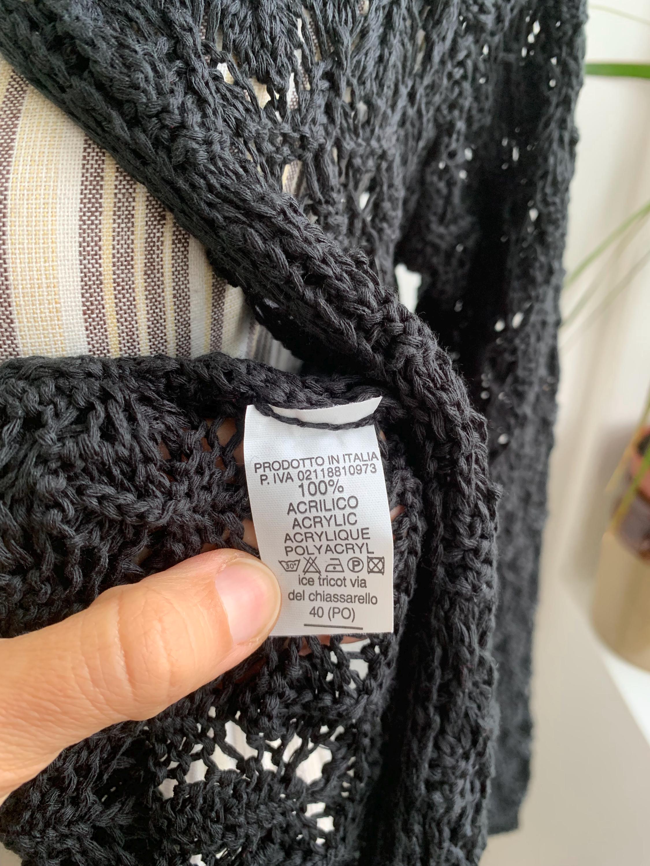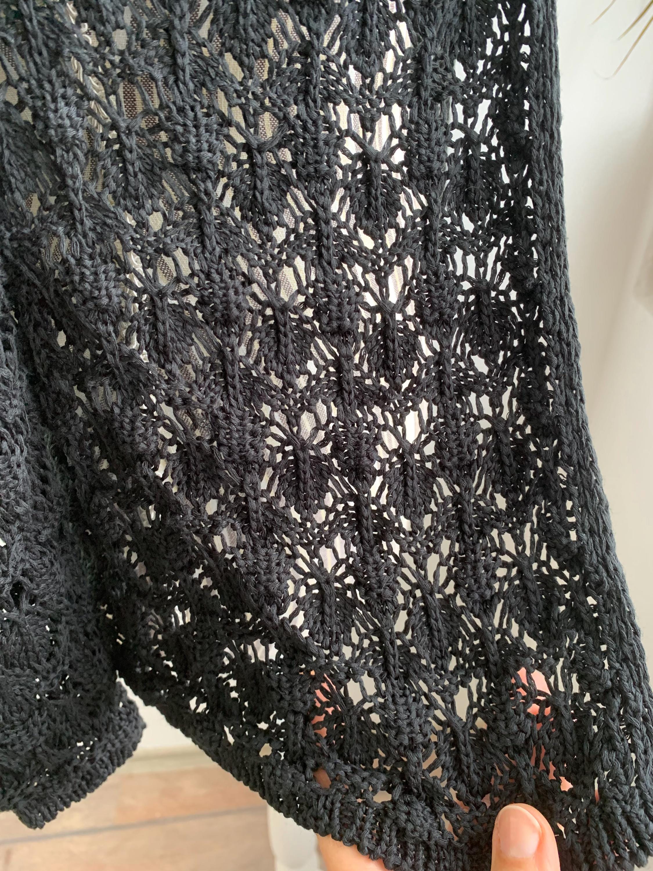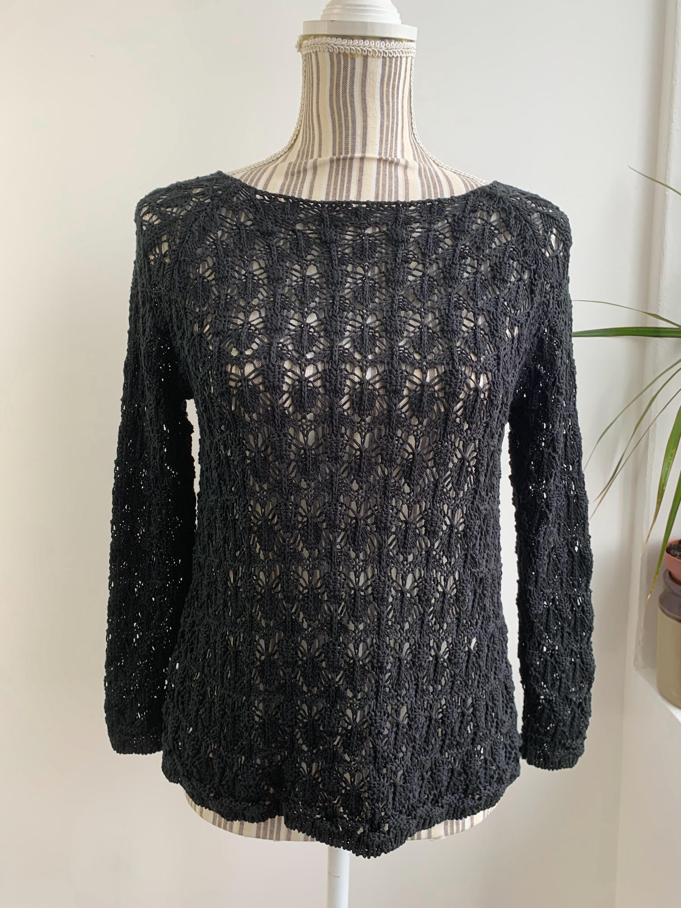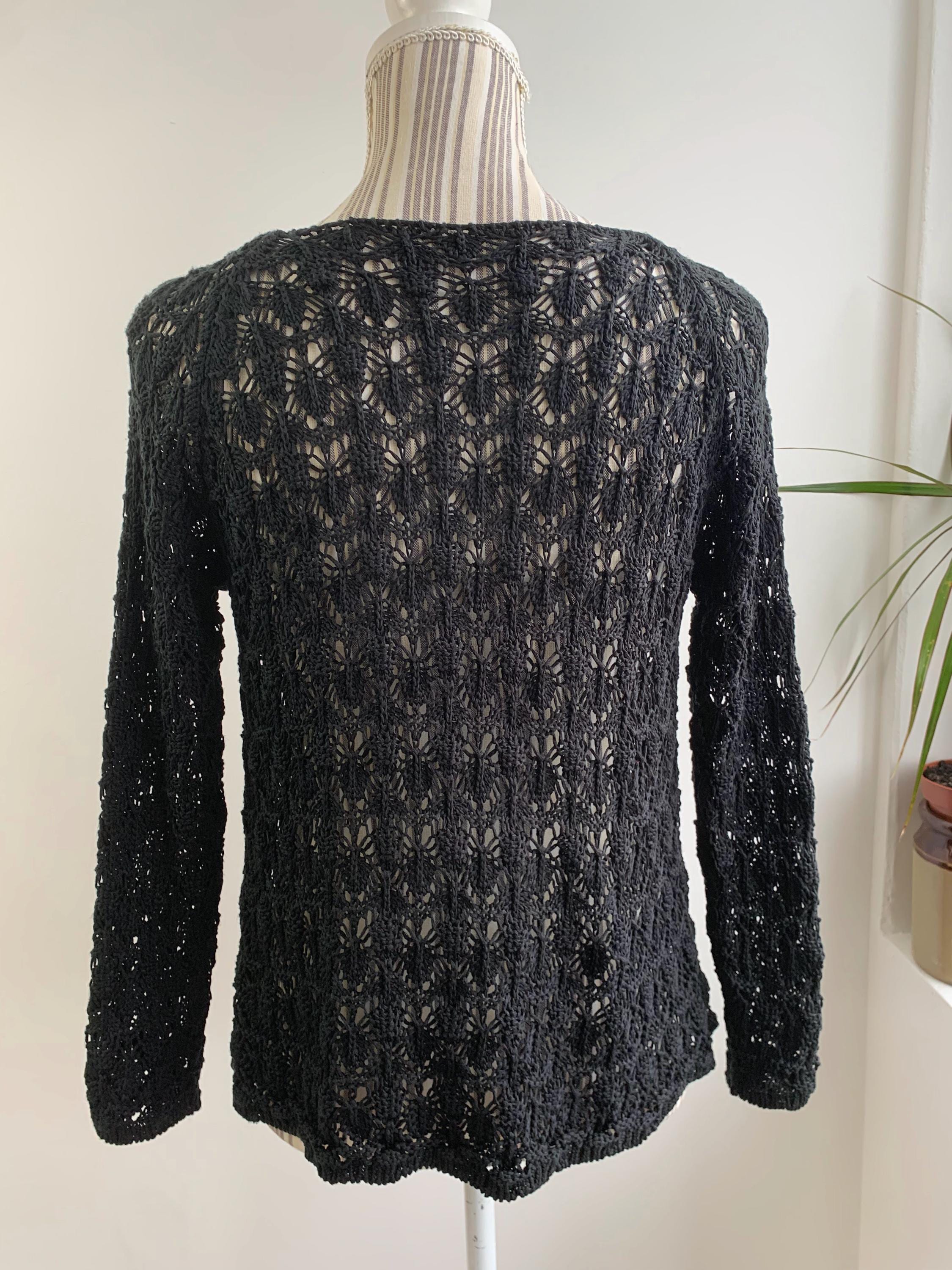 Check out this gorgeous vintage black openwork cardigan with single button closure and long sleeves. This sheer mesh cardigan has a lace fishnet pattern, perfect for layering for the spring/ fall season. Adorable vintage gift for her. You can wear this openwork cardigan both ways - with the button at the front or at the back.