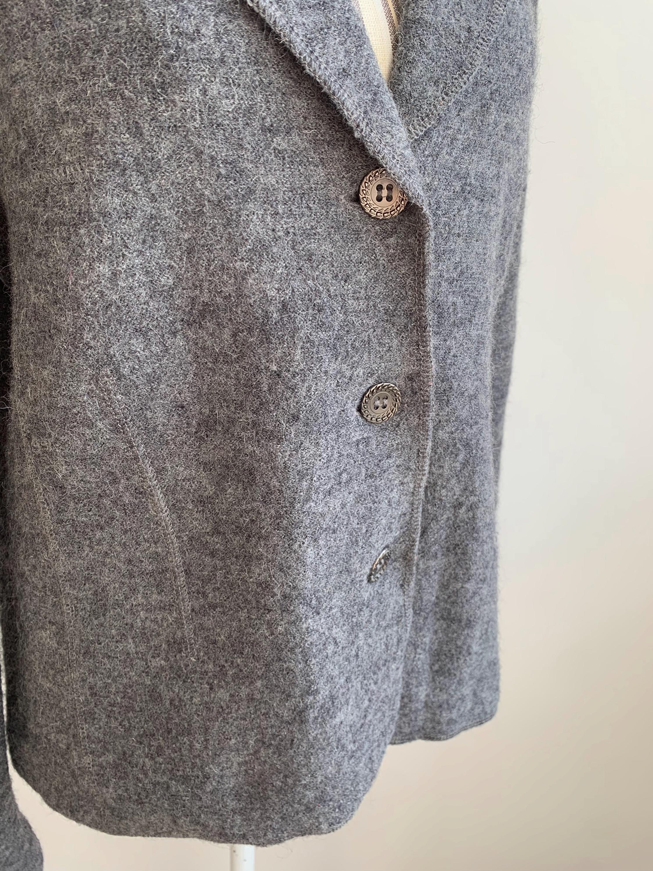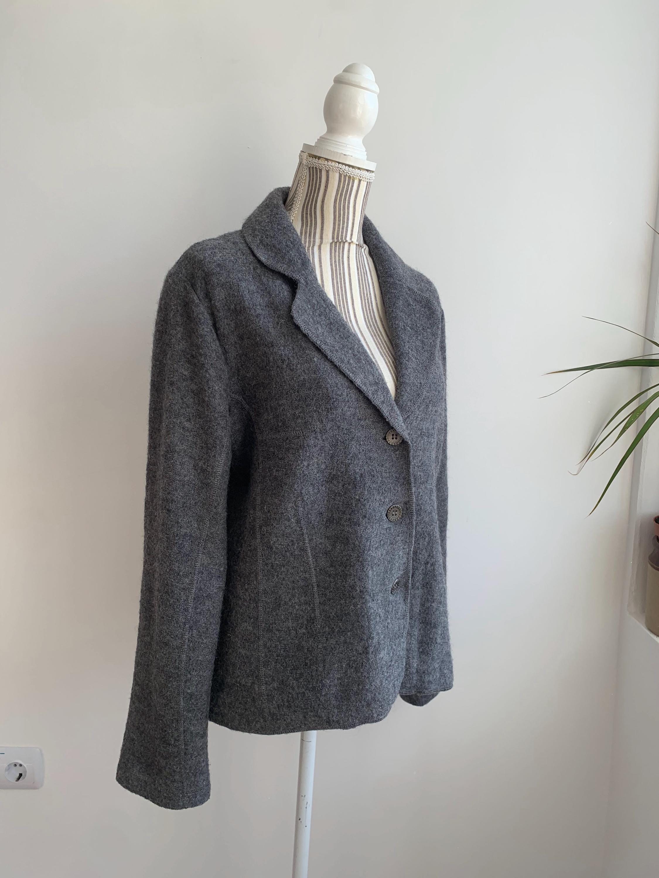 This is s beautiful vintage 90s grey Ppure wool blazer for women with V neck and button front closure. This unlined wool blazer is perfect for the fall and winter seasons. This short wool coat is made of fluffy fussy 100% wool fabric which is super warm and cozy. It has no lining underneath. This women's cropped wool coat is size 40, it fits like M/L. Please check the measurements below.