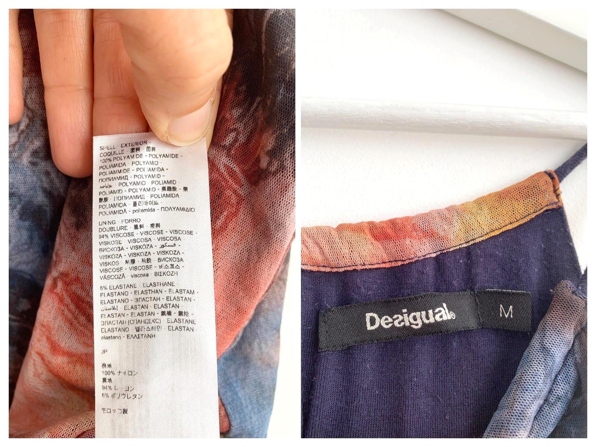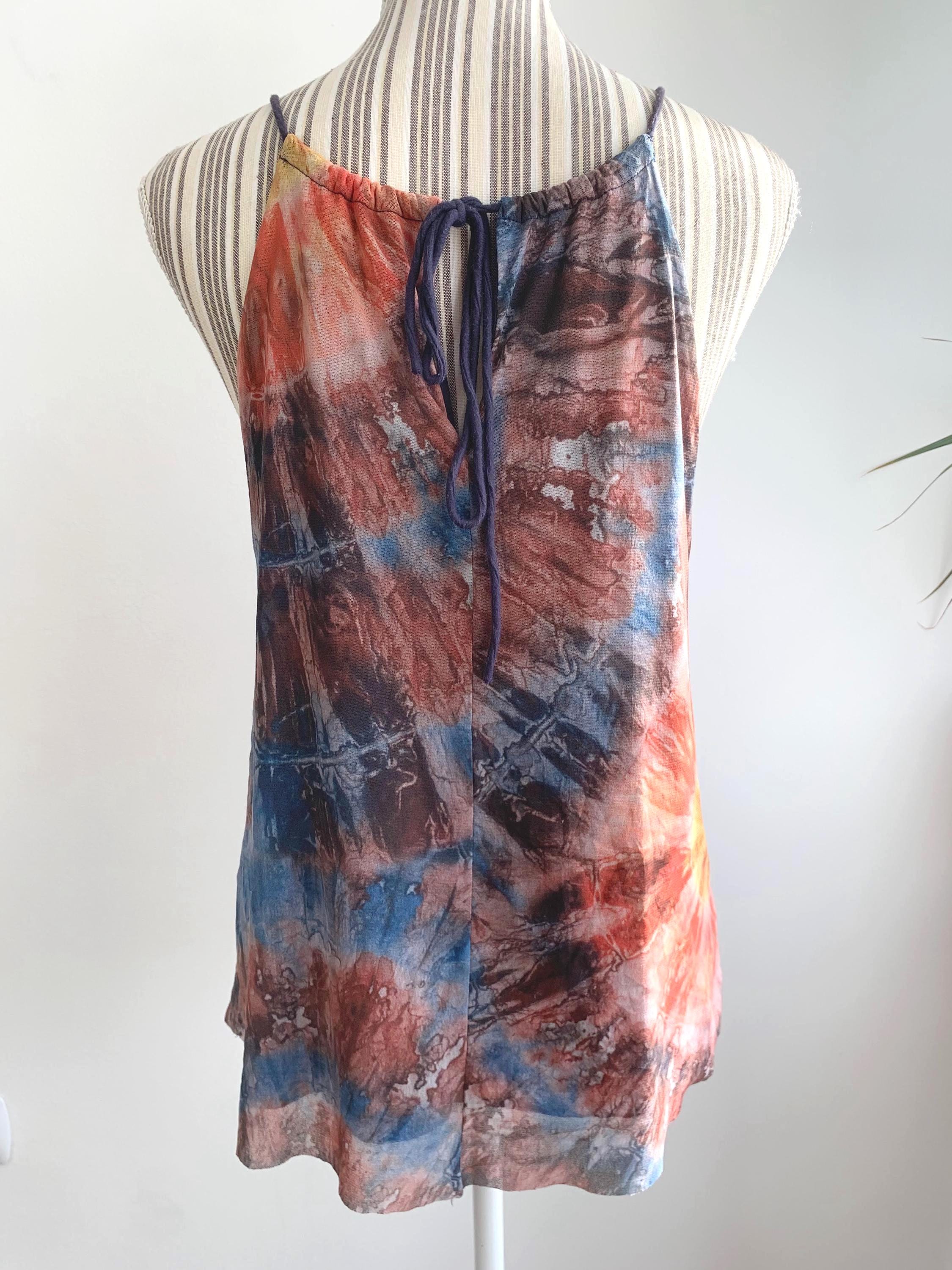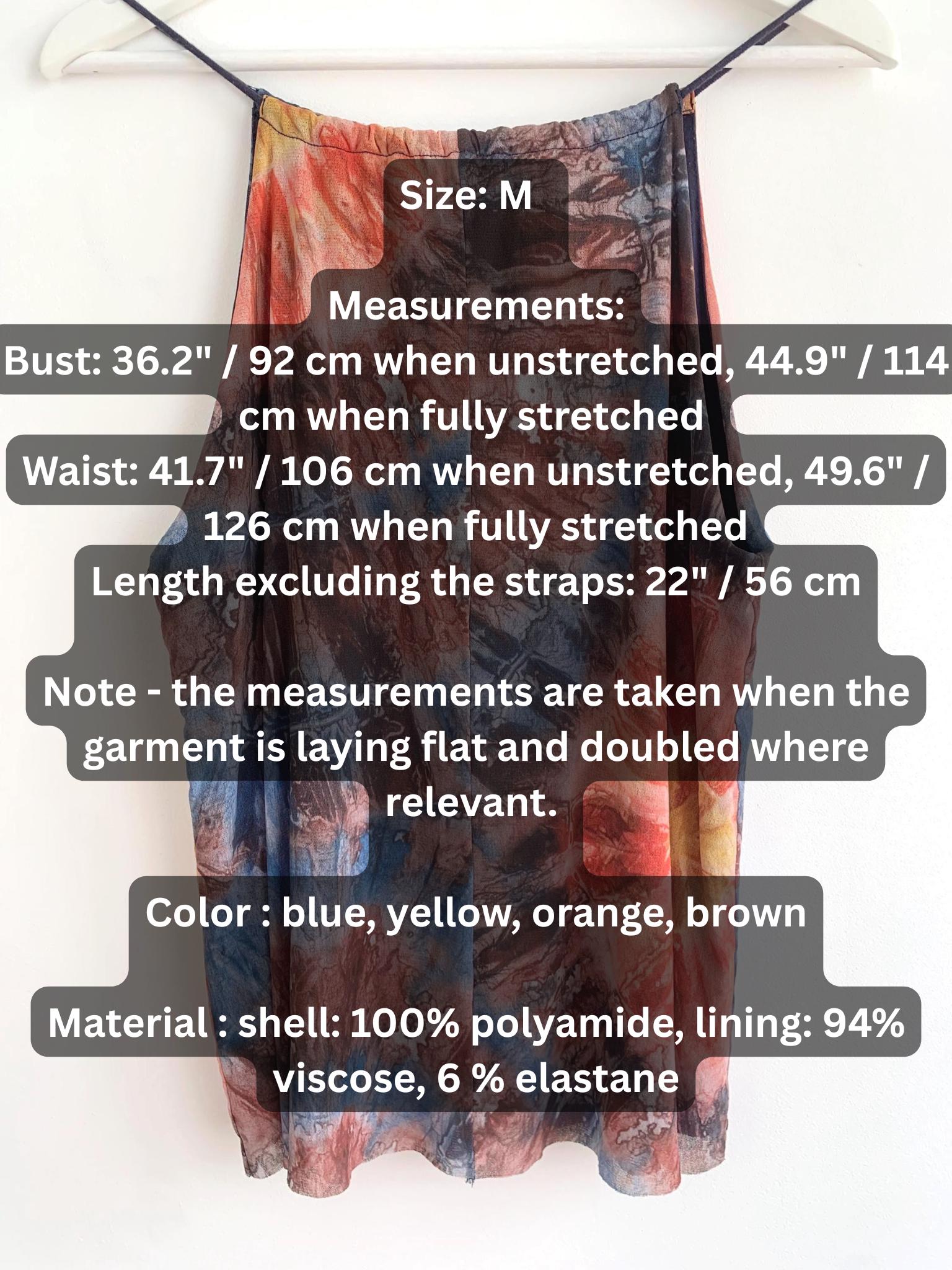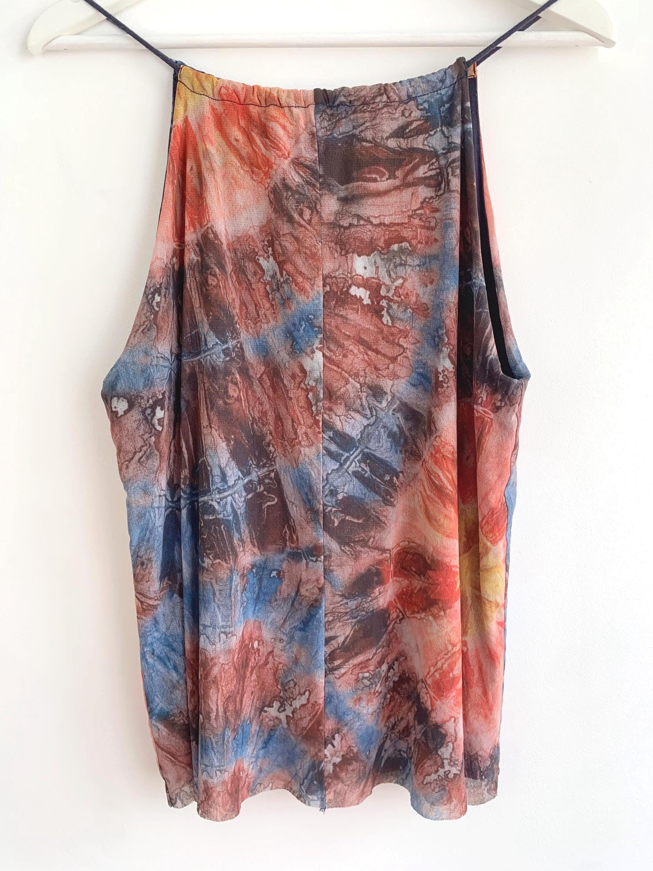 This is a vintage Y2K spaghetti strap tank top by Desigual size M. This tie dye tank top has slim straps which can adjust and tie at the back. This colorful summer top is made of sheer tulle top layer and solid color lining.