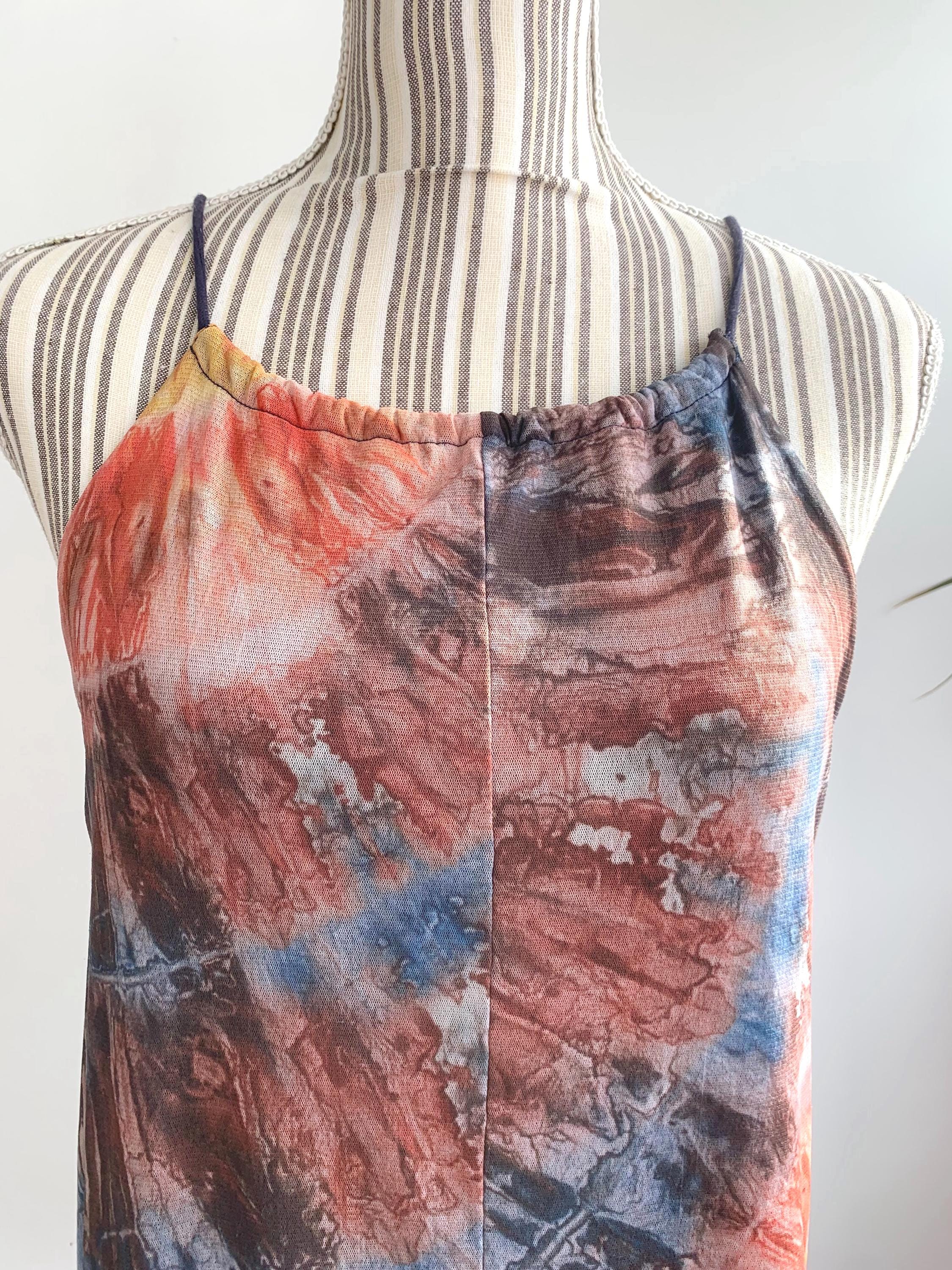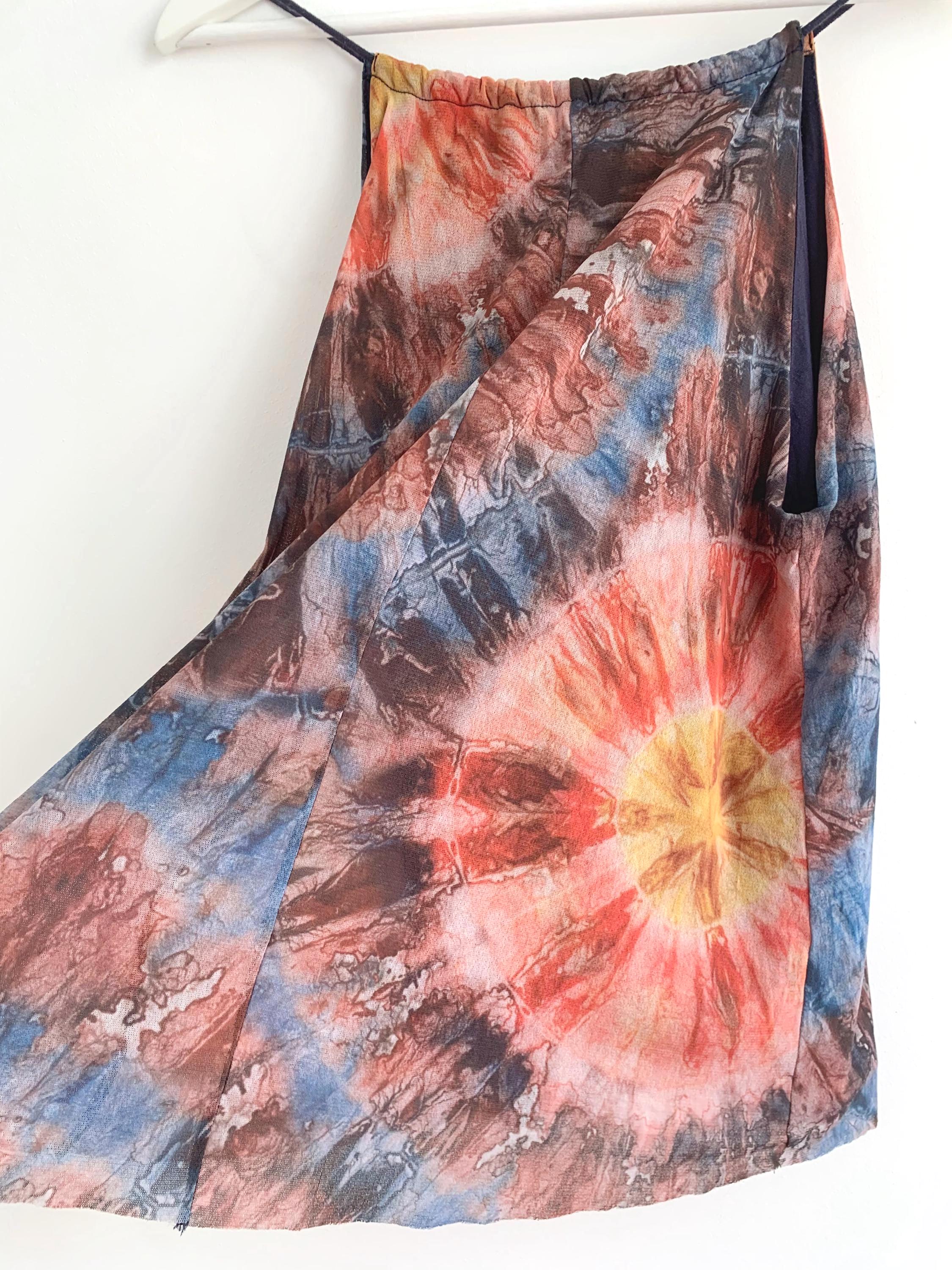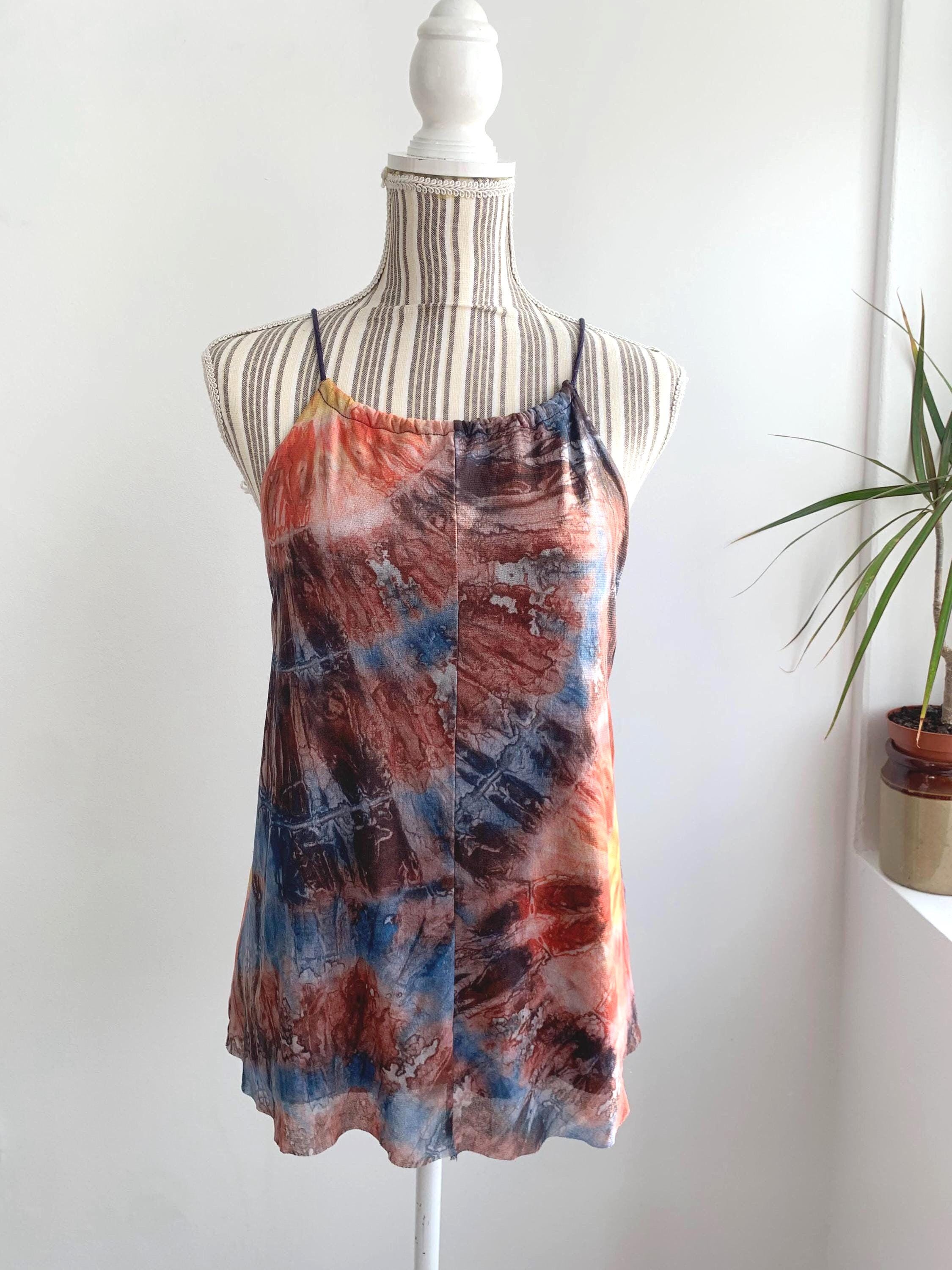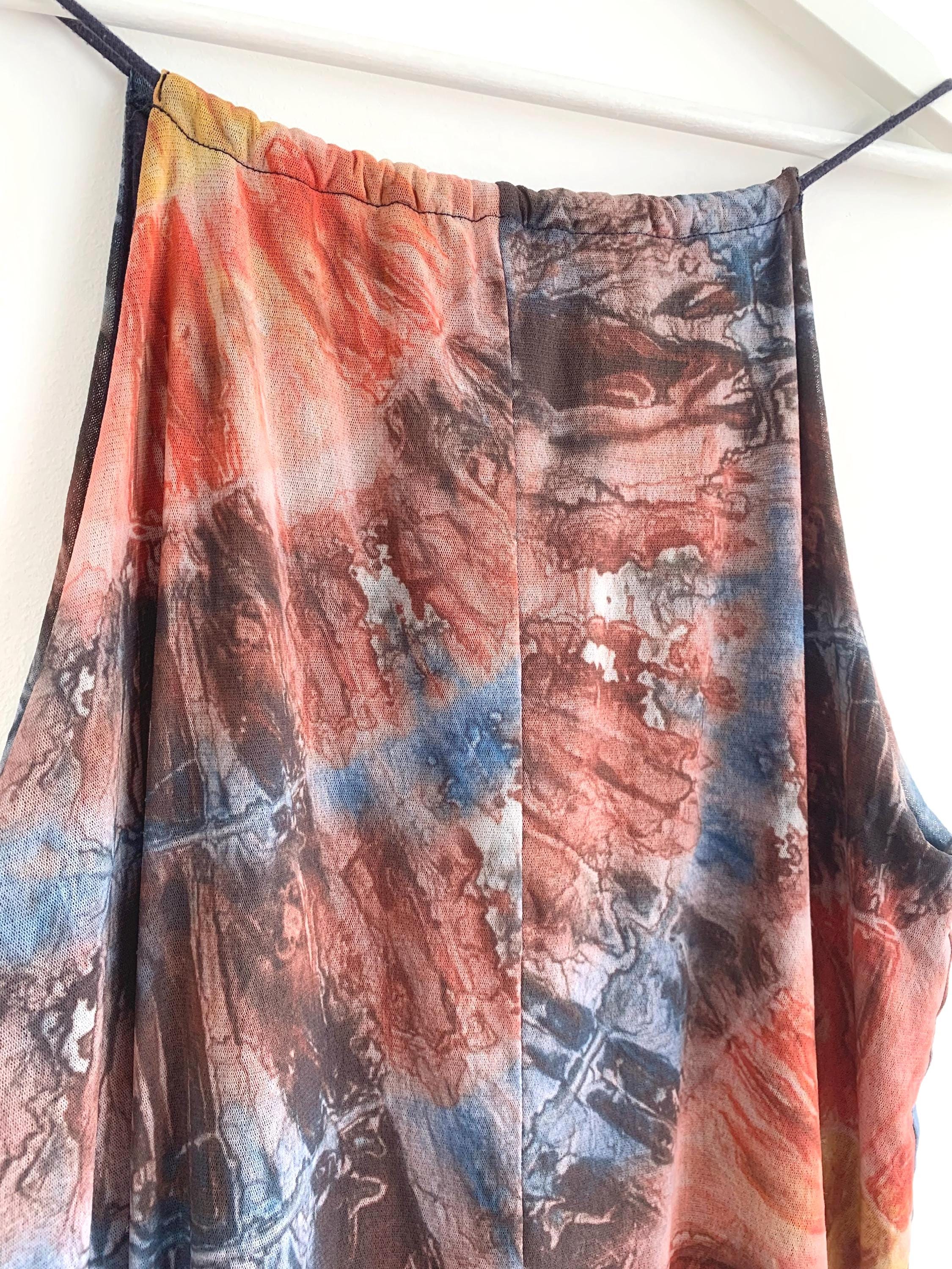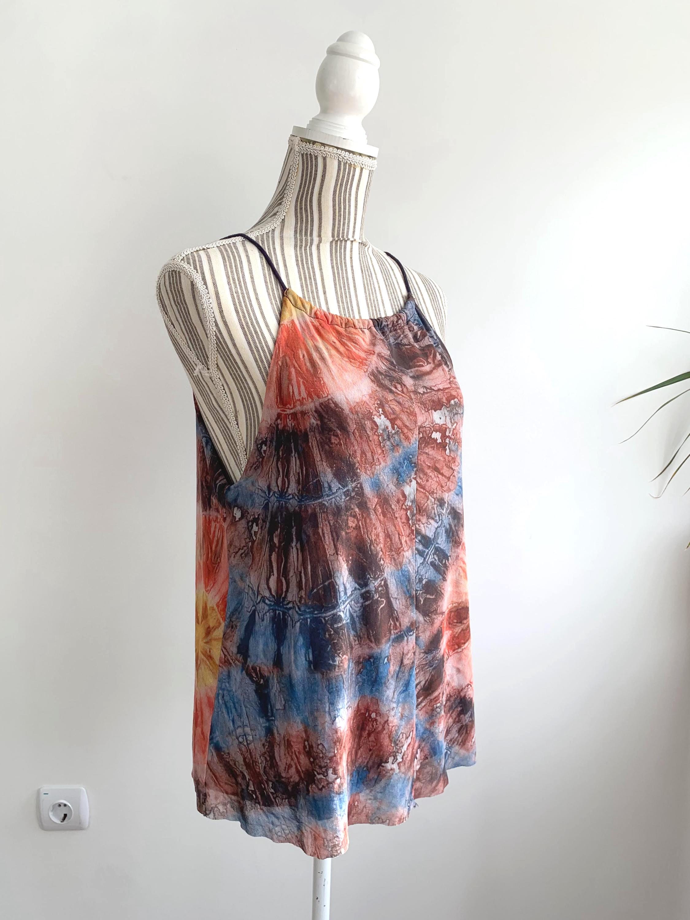 This is a vintage Y2K spaghetti strap tank top by Desigual size M. This tie dye tank top has slim straps which can adjust and tie at the back. This colorful summer top is made of sheer tulle top layer and solid color lining.