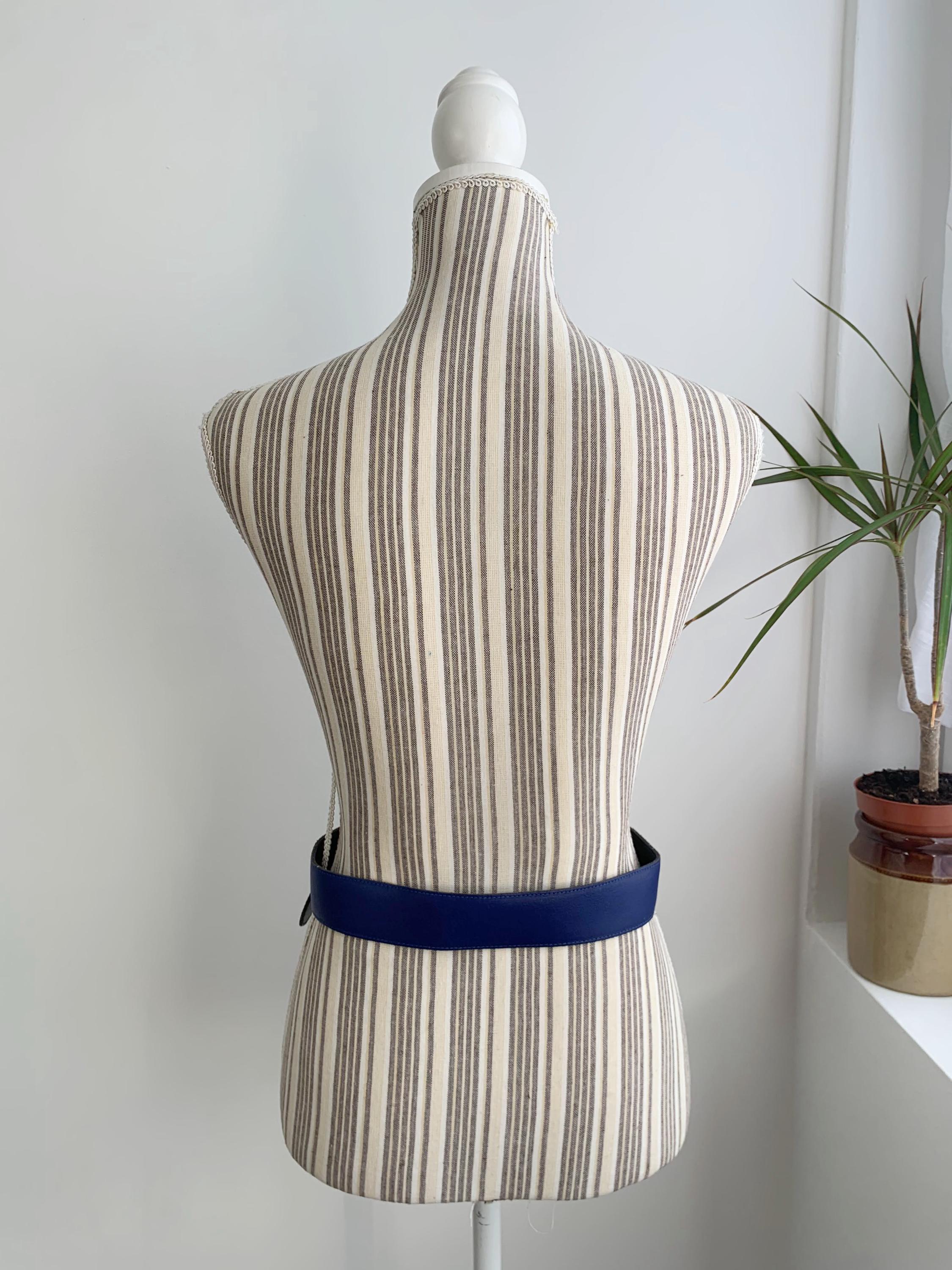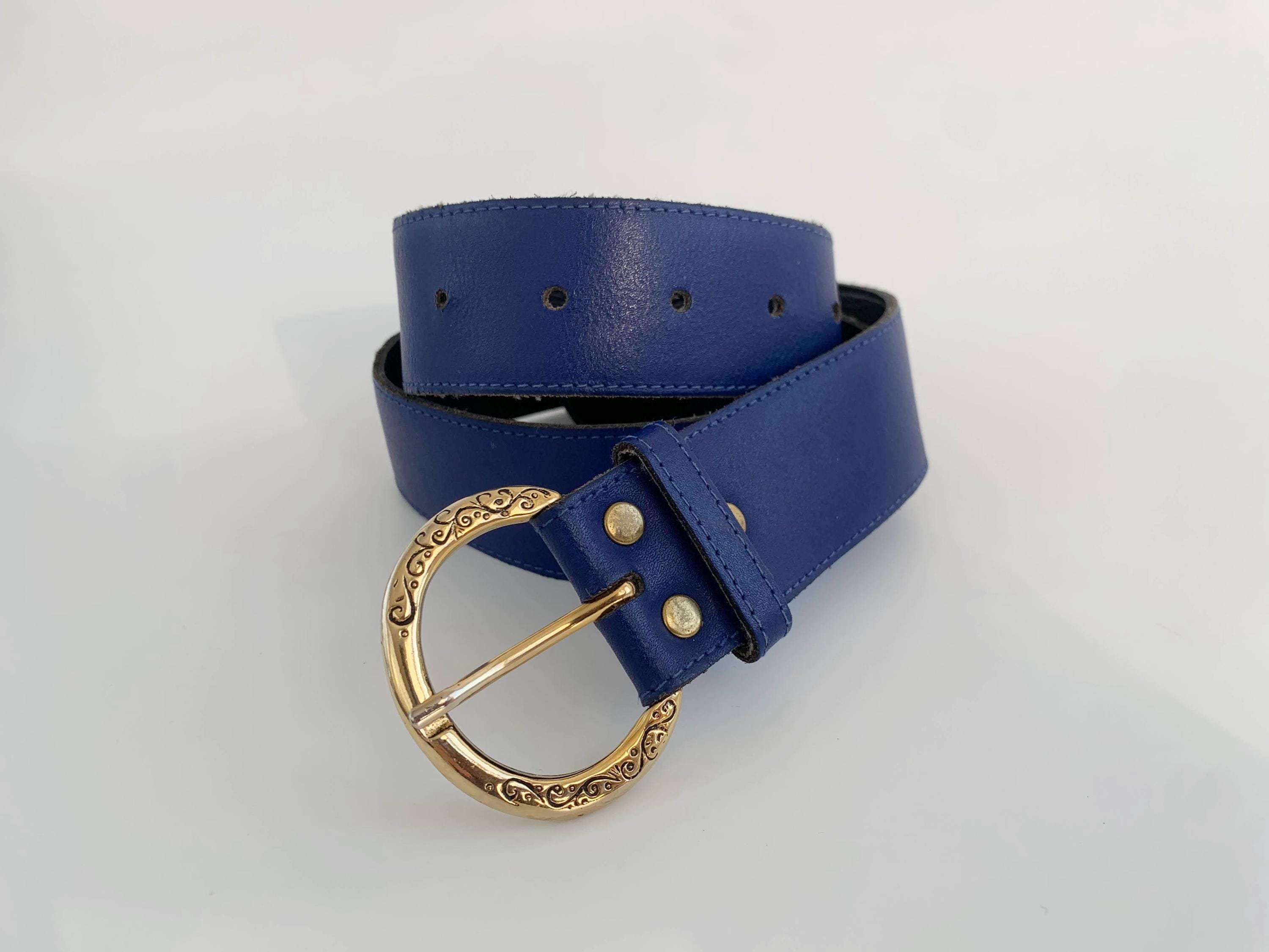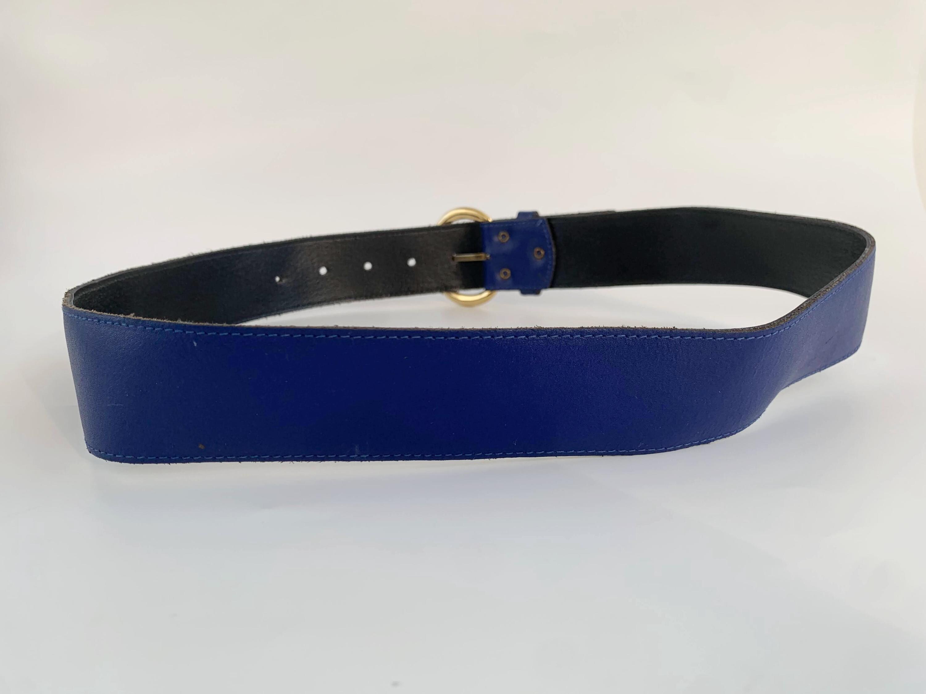 Condition: This cobalt blue leather belt is in beautiful vintage condition with minor signs of wear - a few tiny scratches on the gold tone buckle