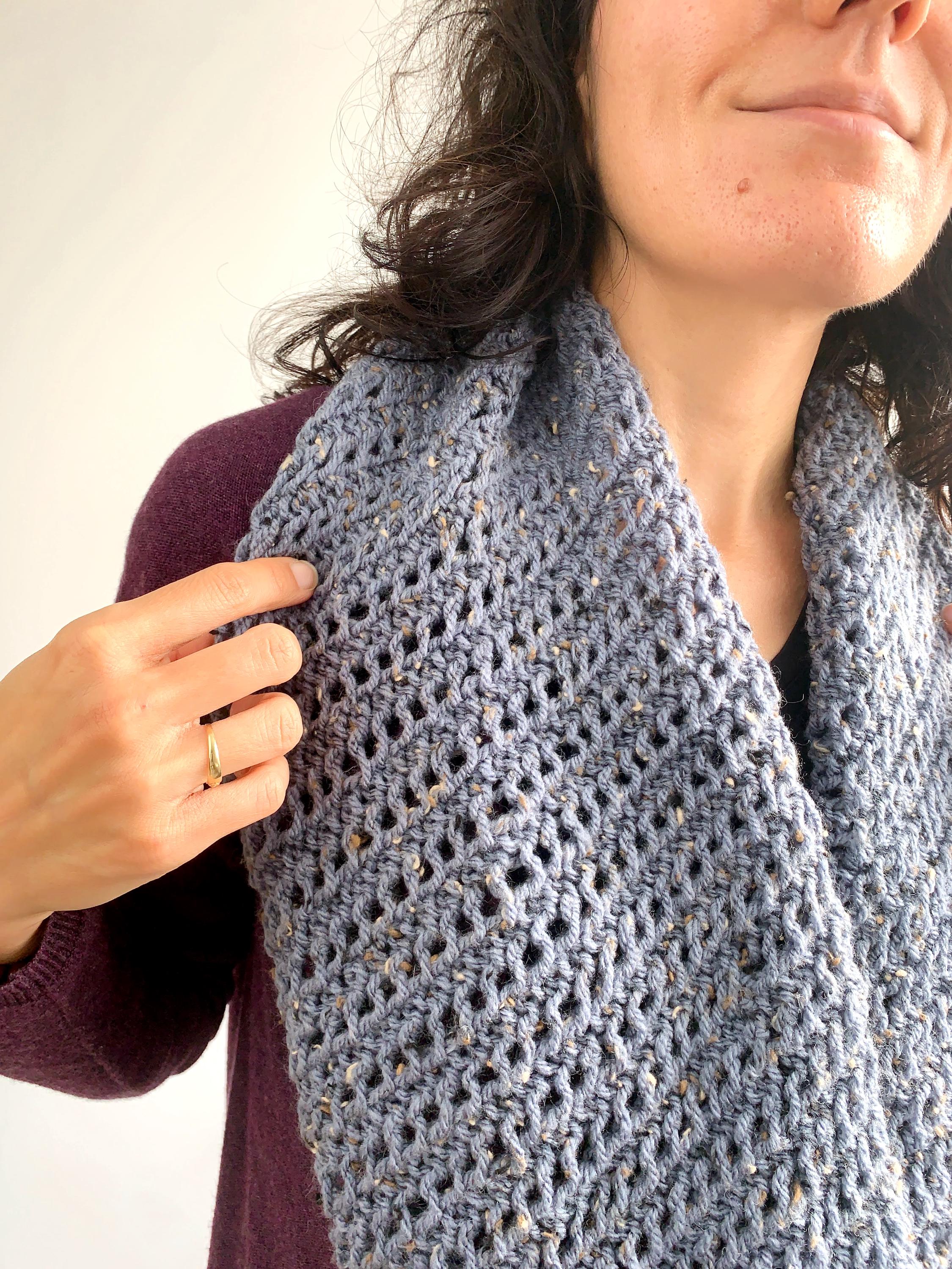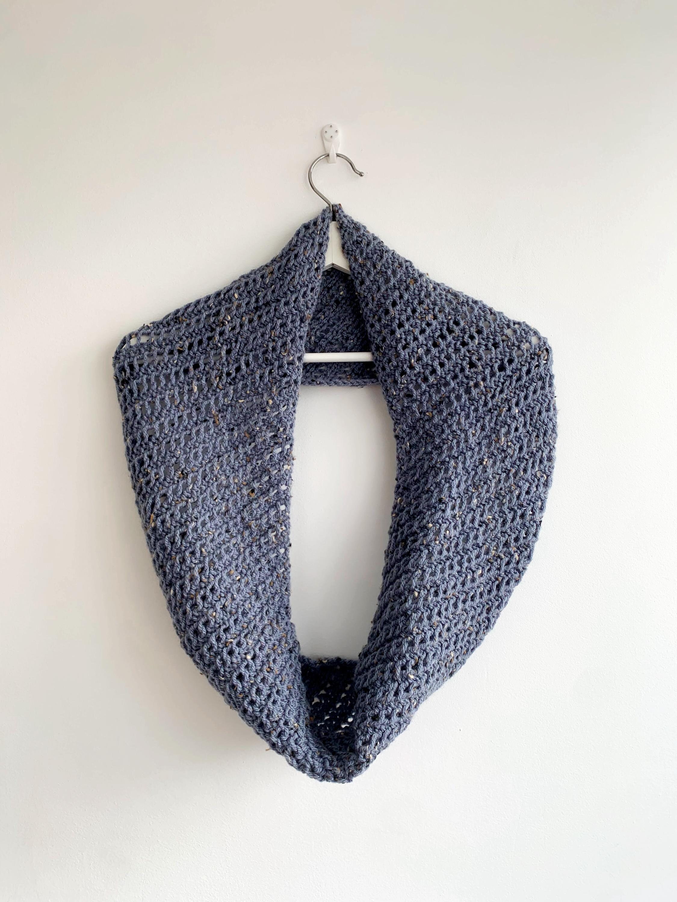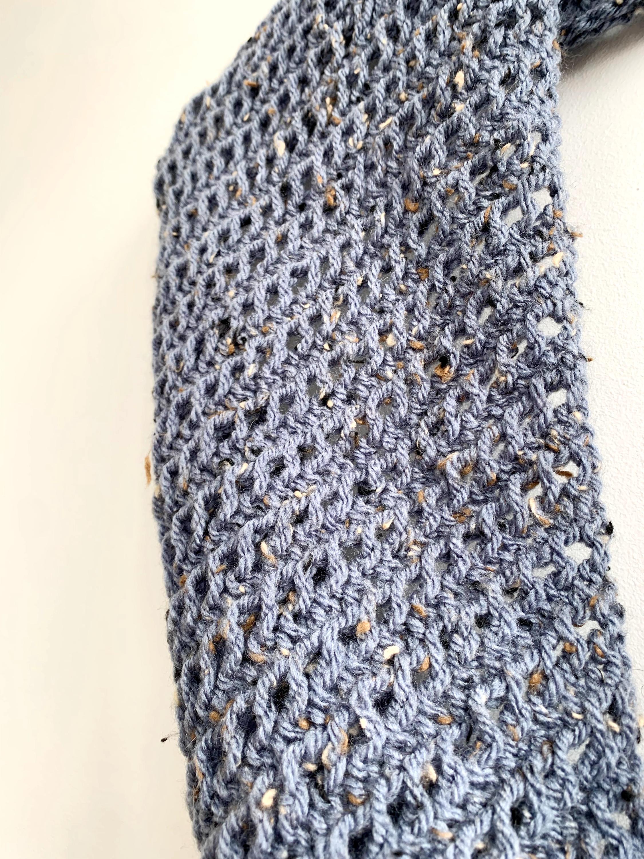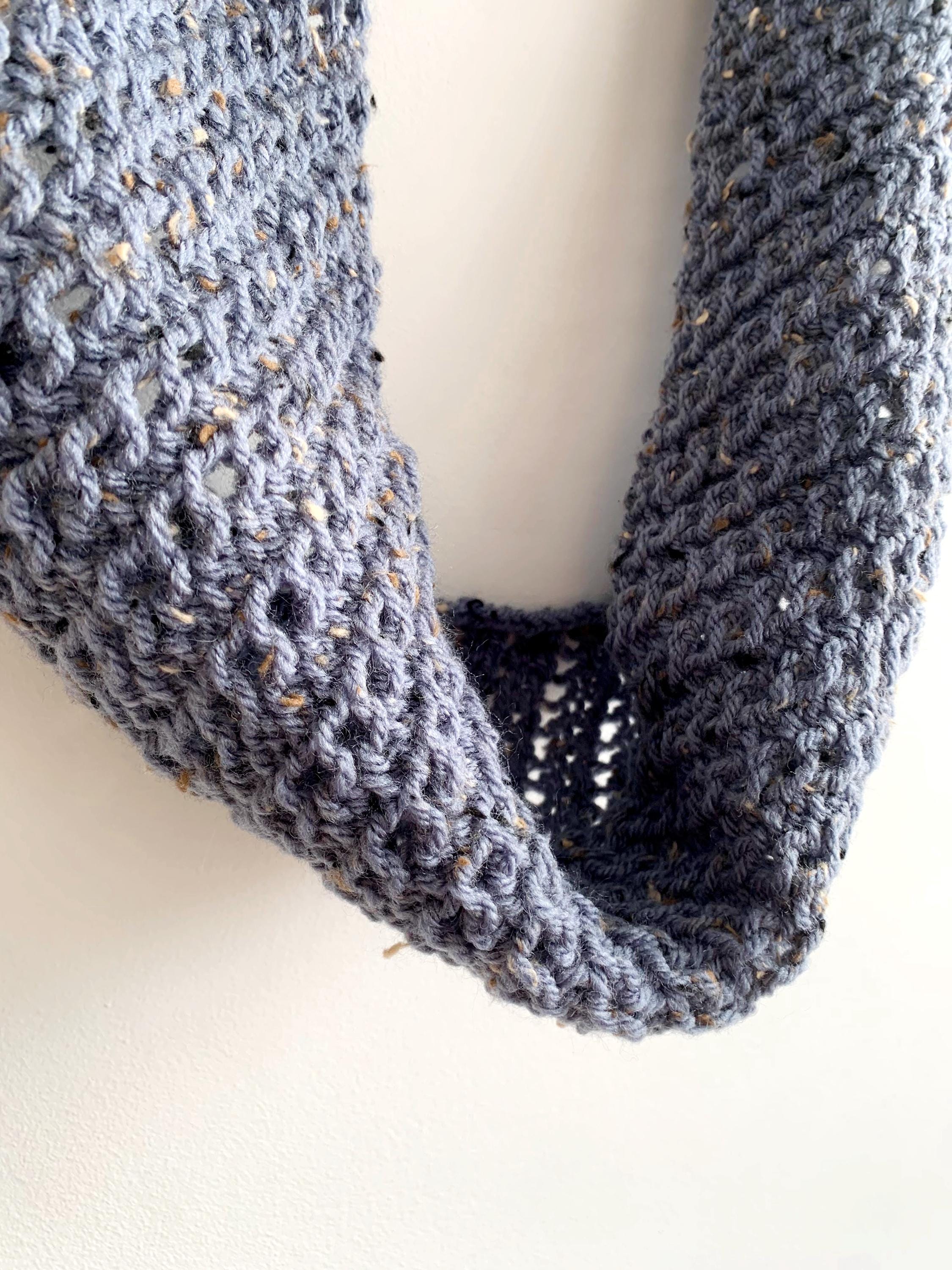 Beautiful vintage chunky infinity scarf in denim blue color with textured lacey knit pattern. This warm winter scarf was hand knitted using soft and cozy yarn which feels like acrylic wool. This big winter scarf is perfect for both men and women. It will keep you warm and cozy during the cold days. Amazing versatile accessory that you can enjoy and wear in a number of different ways.
