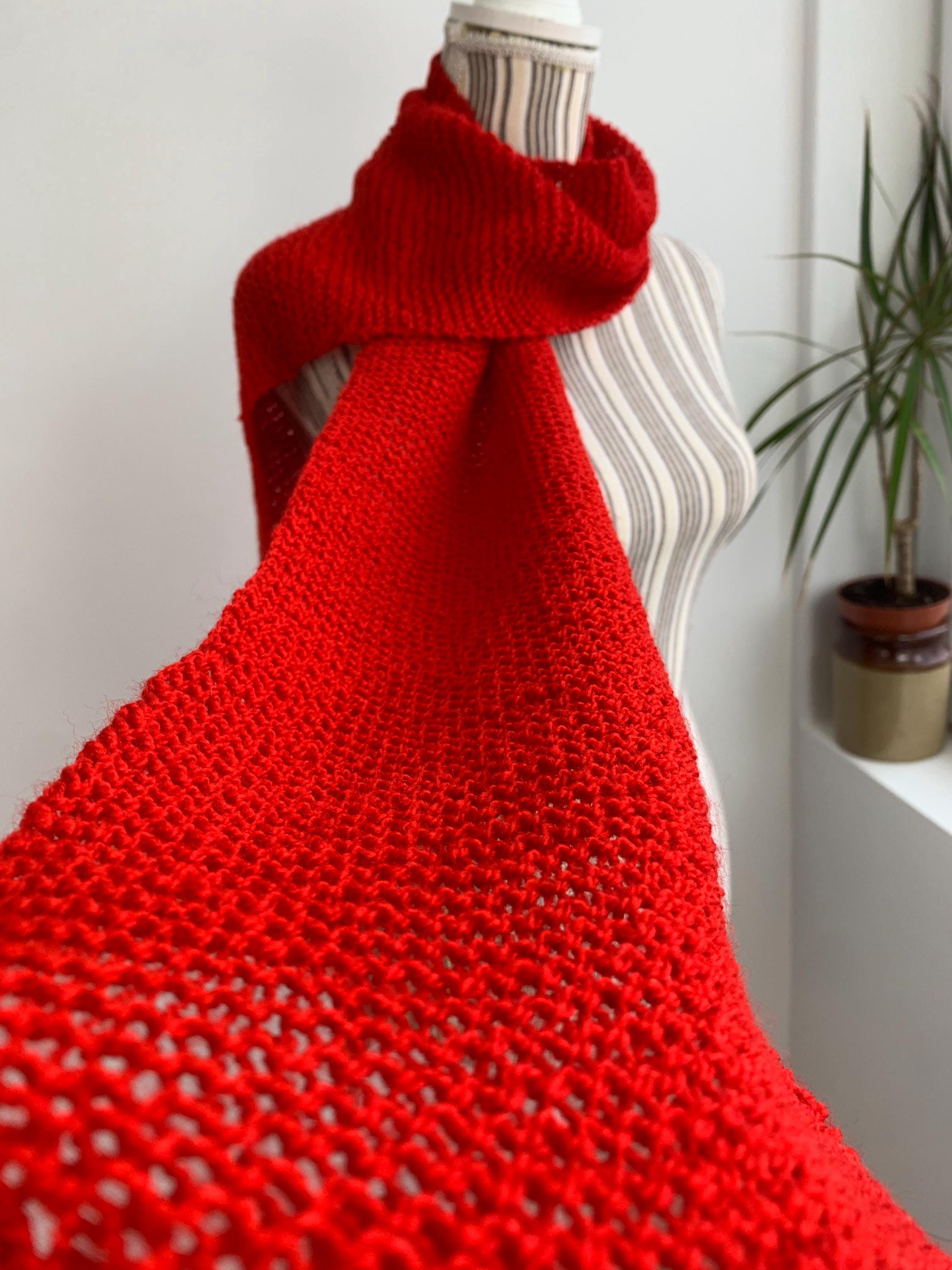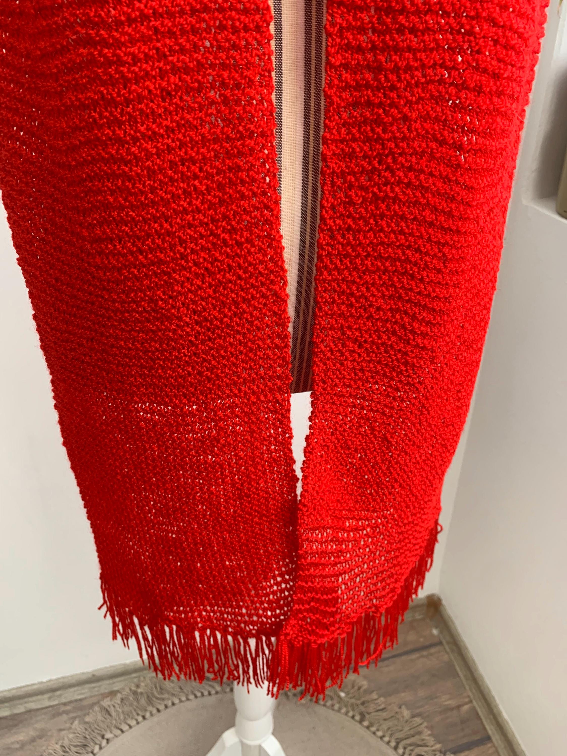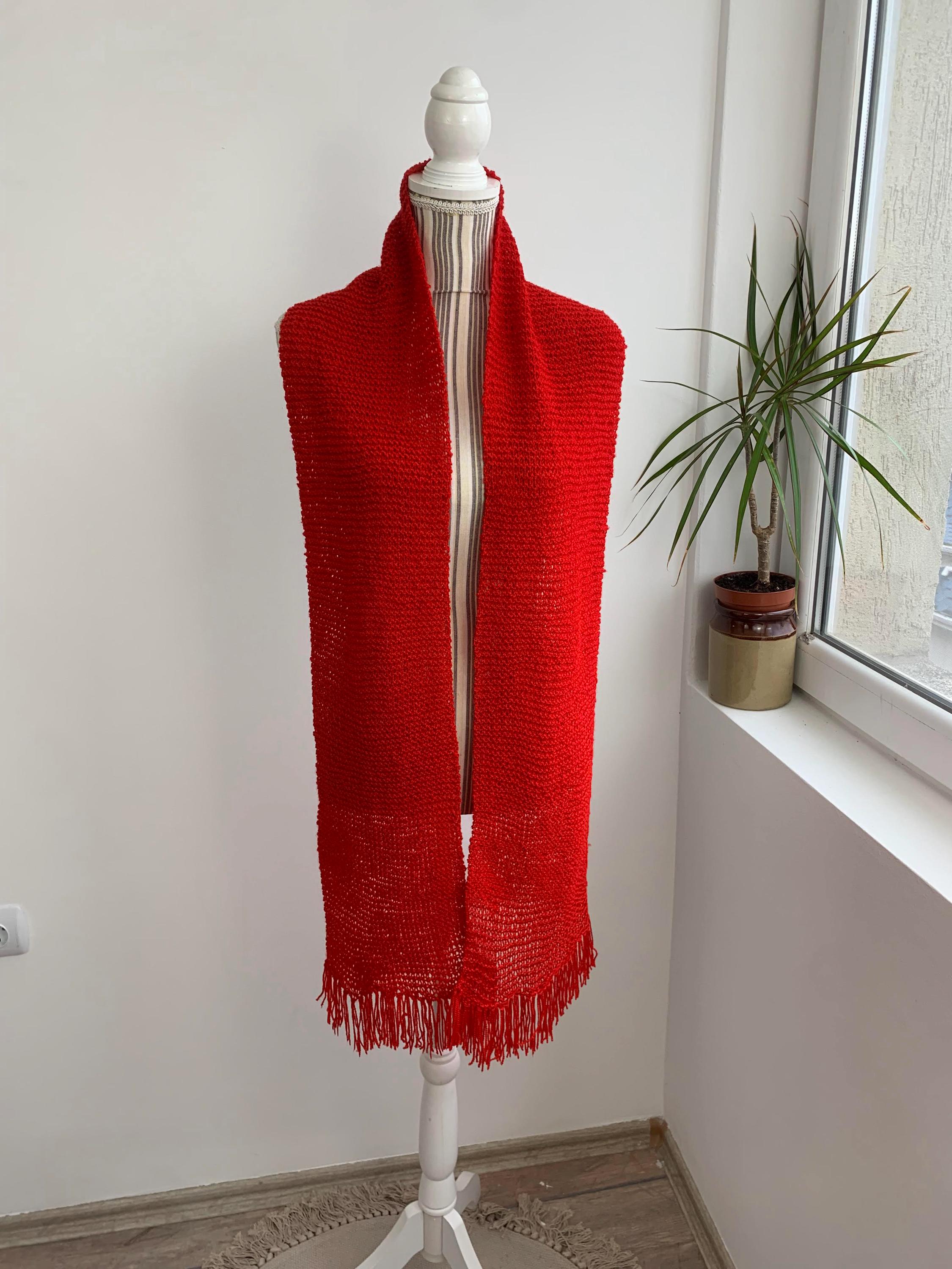 Beautiful vintage long chunky red hand knitted scarf with fringe. This bohemian oversized scarf will keep you warm and help you layer your outfit. Perfect gift for your sister or best friend.