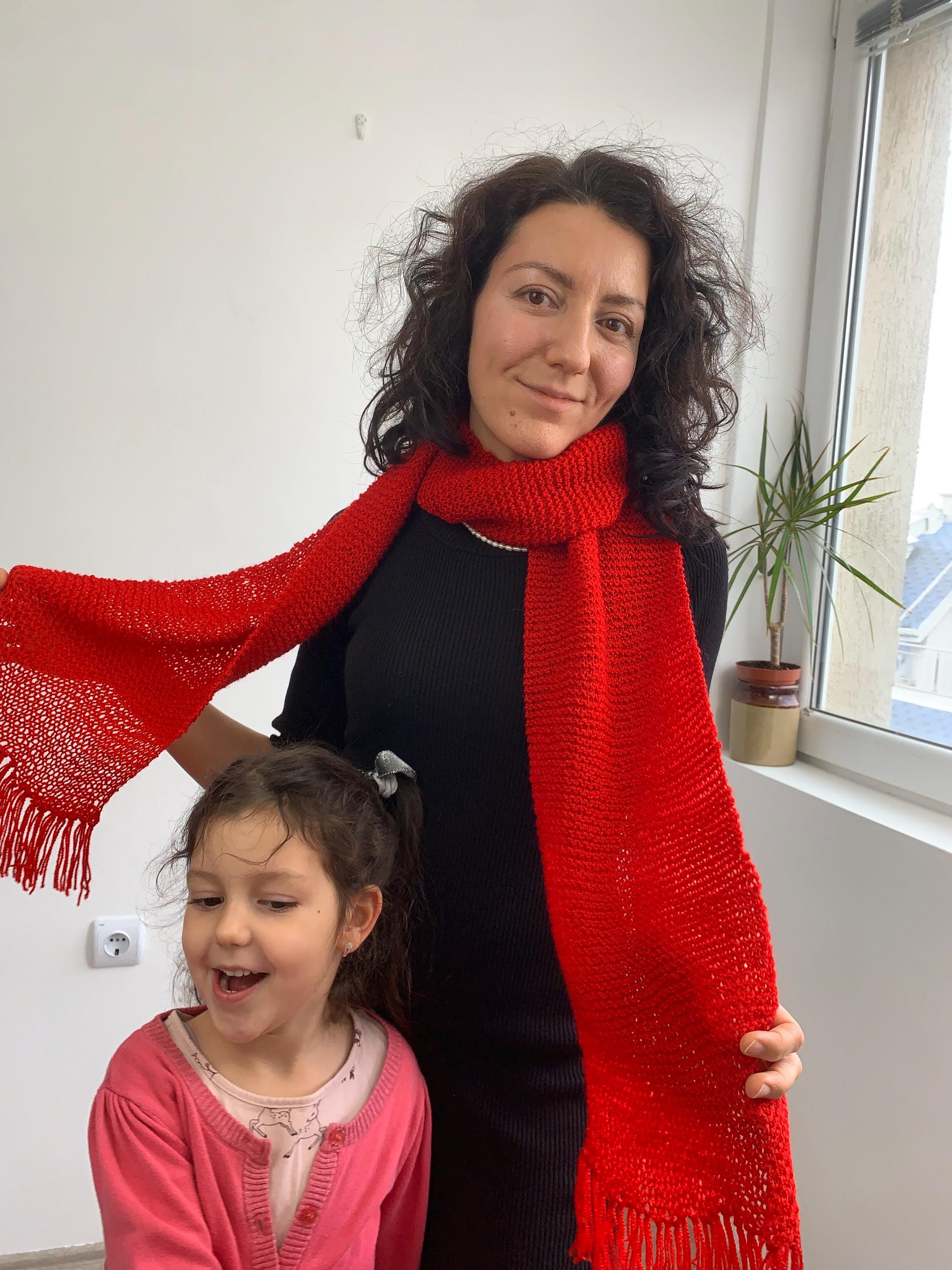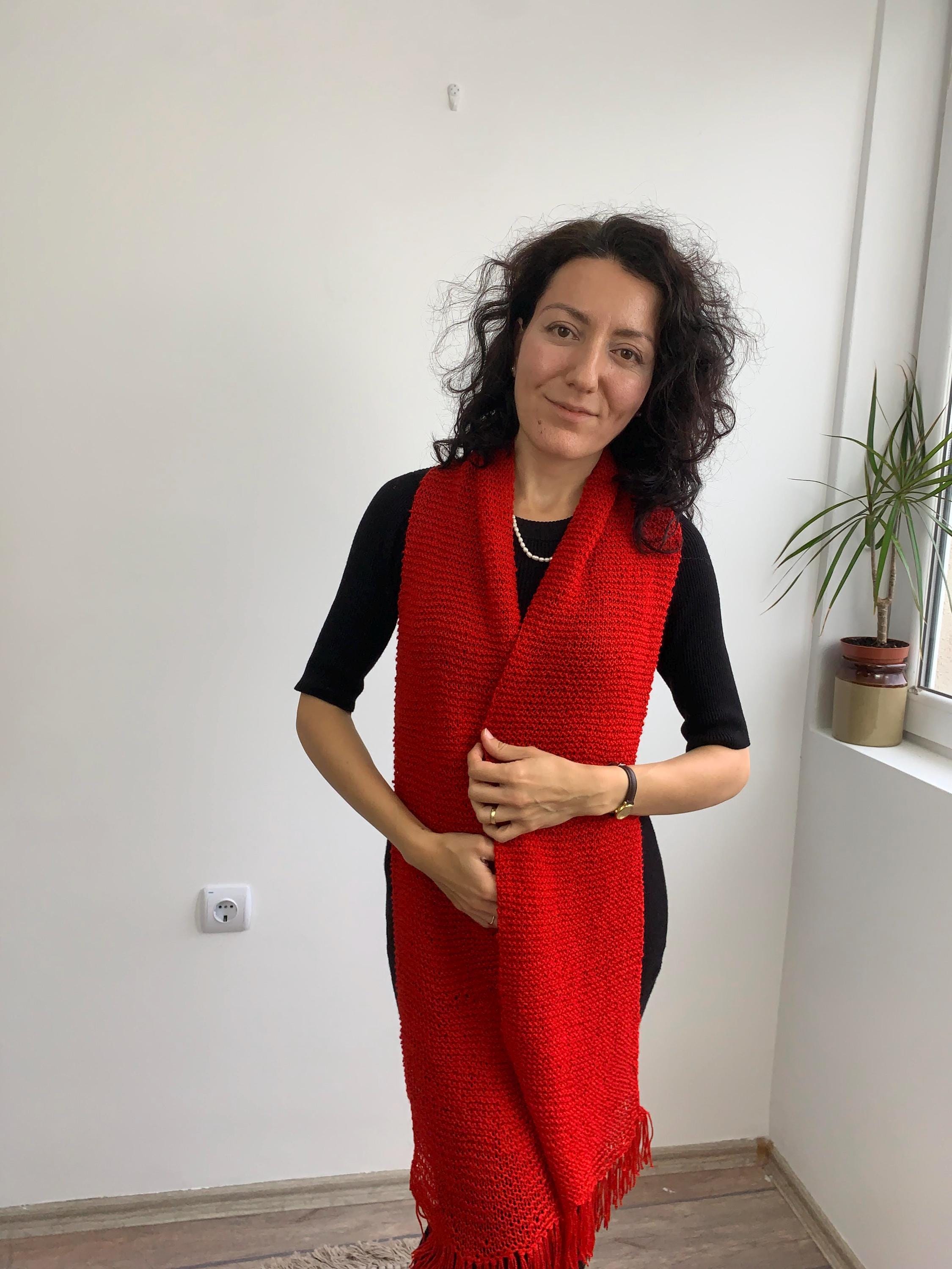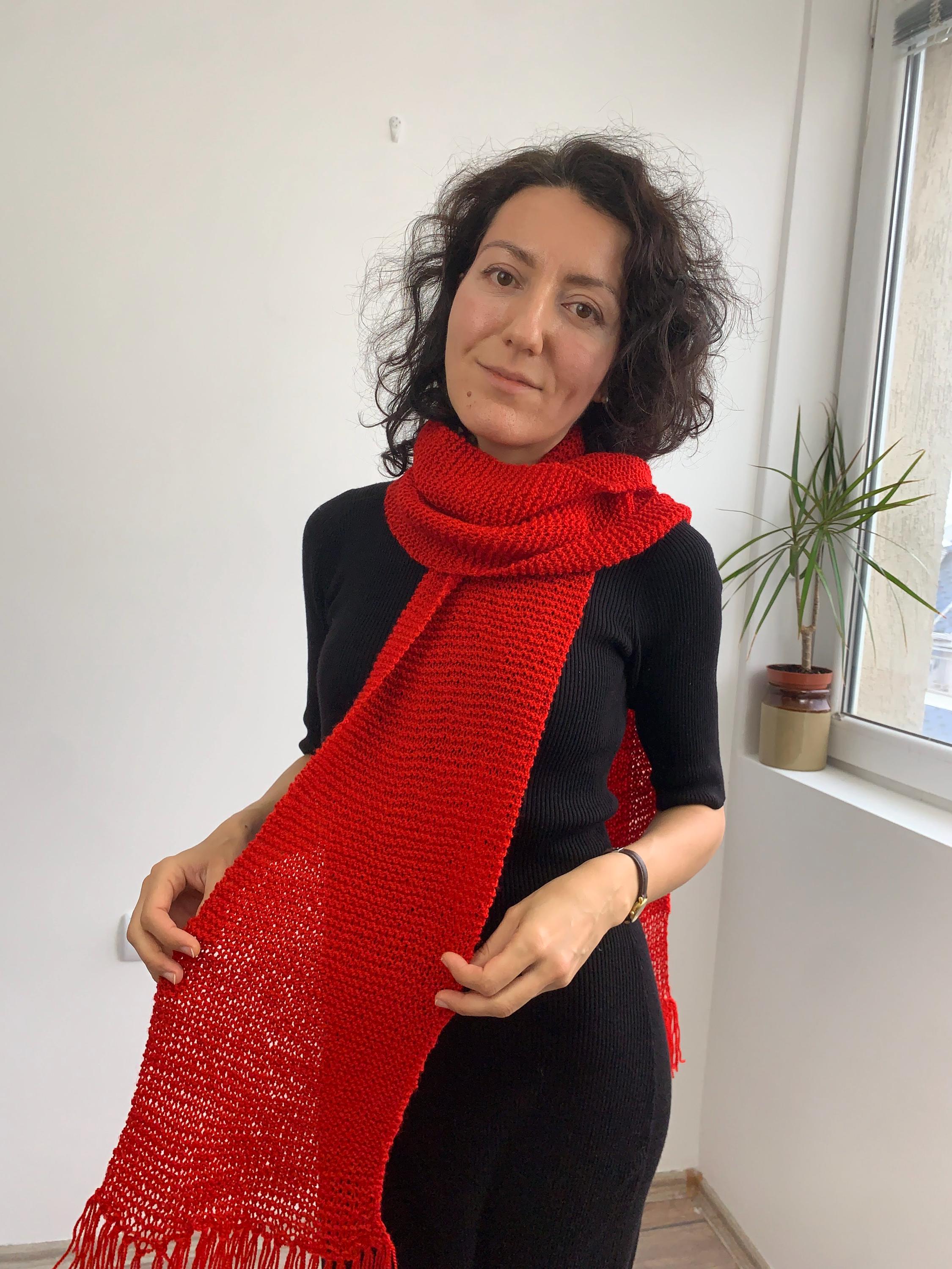 Beautiful vintage long chunky red hand knitted scarf with fringe. This bohemian oversized scarf will keep you warm and help you layer your outfit. Perfect gift for your sister or best friend.