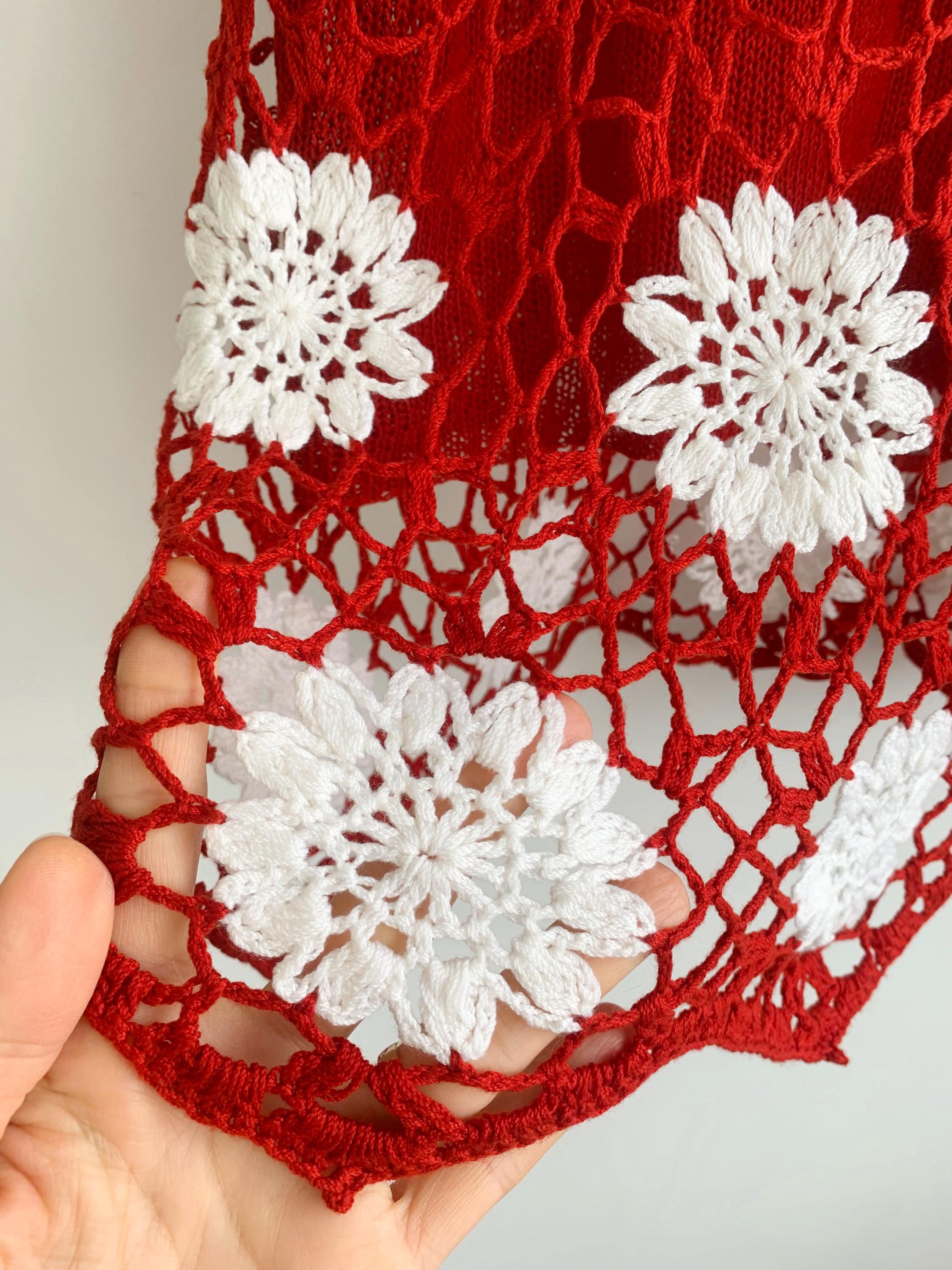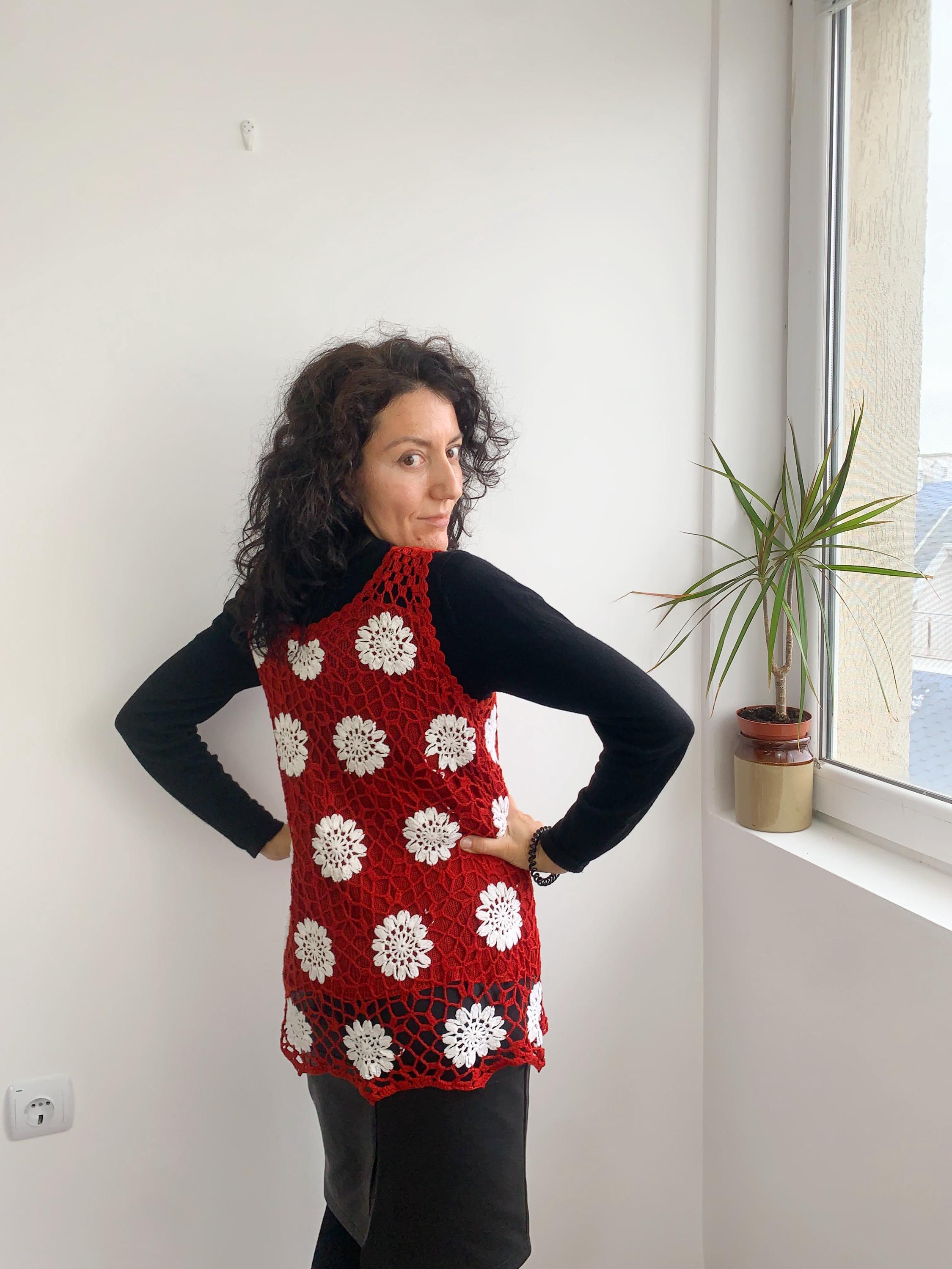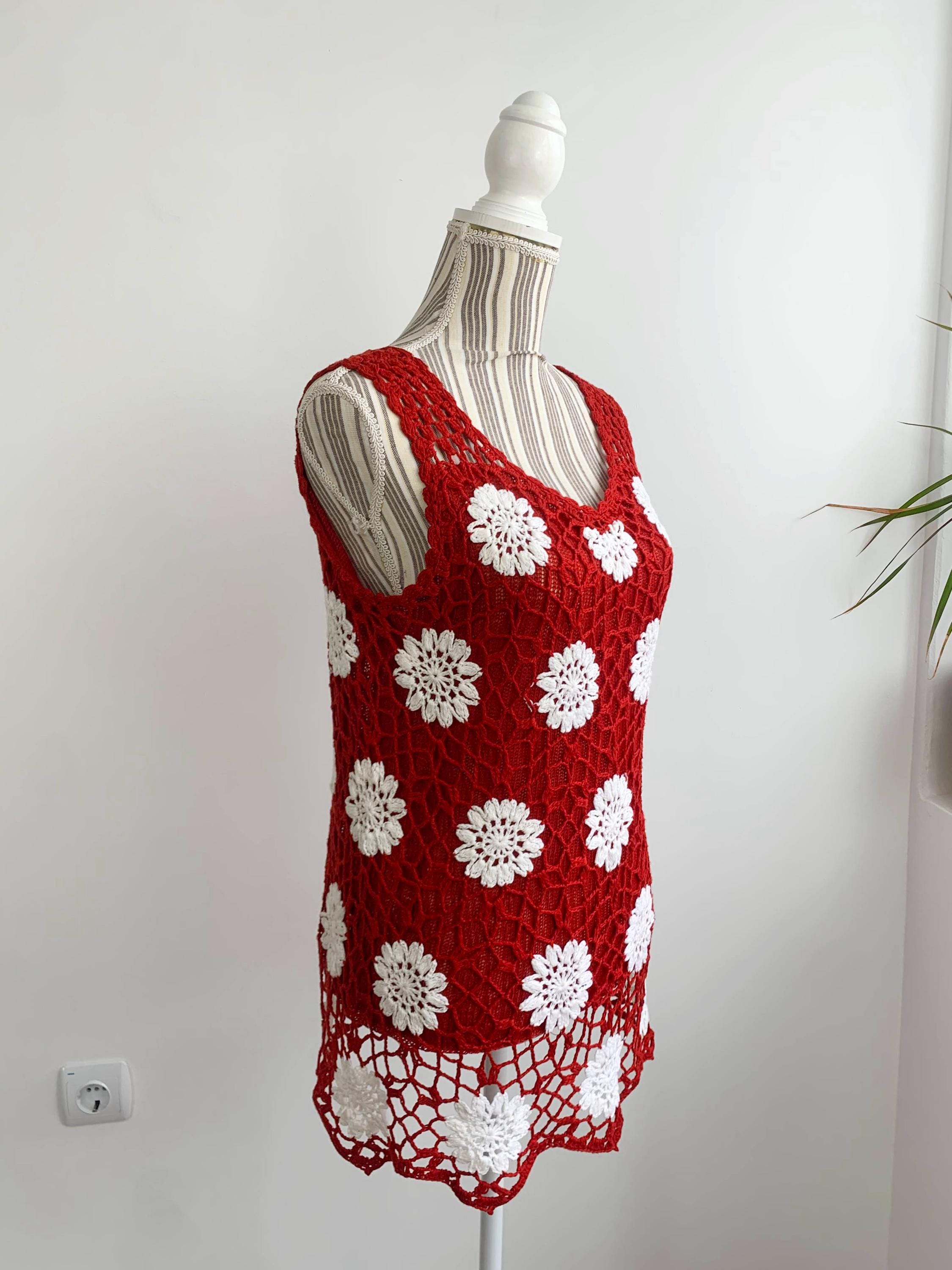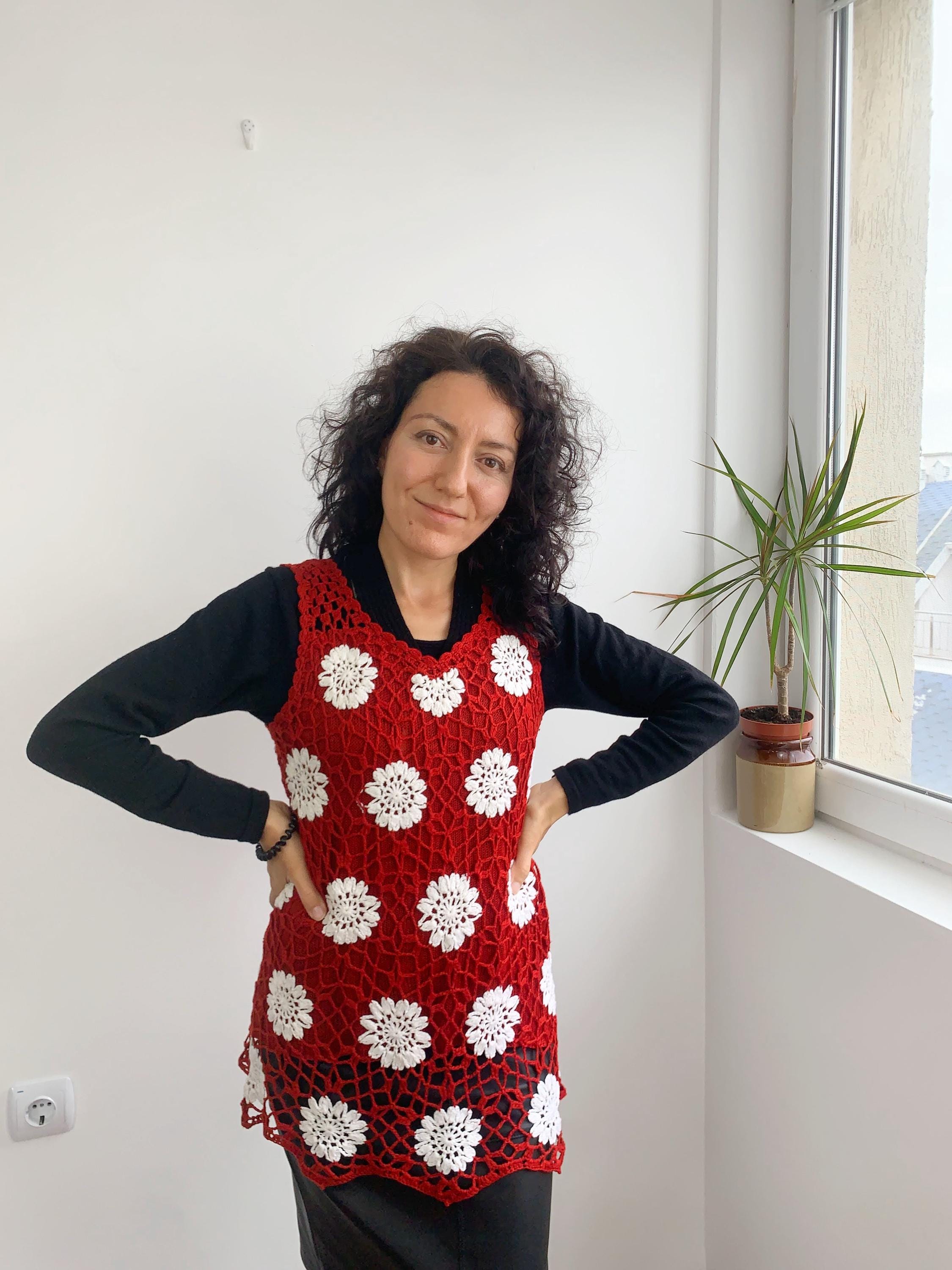 This is a pretty vintage crochet tank top for women made of 100% cotton thread and knitted lining. This sleeveless vest fits is size XXL, it fits smaller like size L. Please check the measurements below.