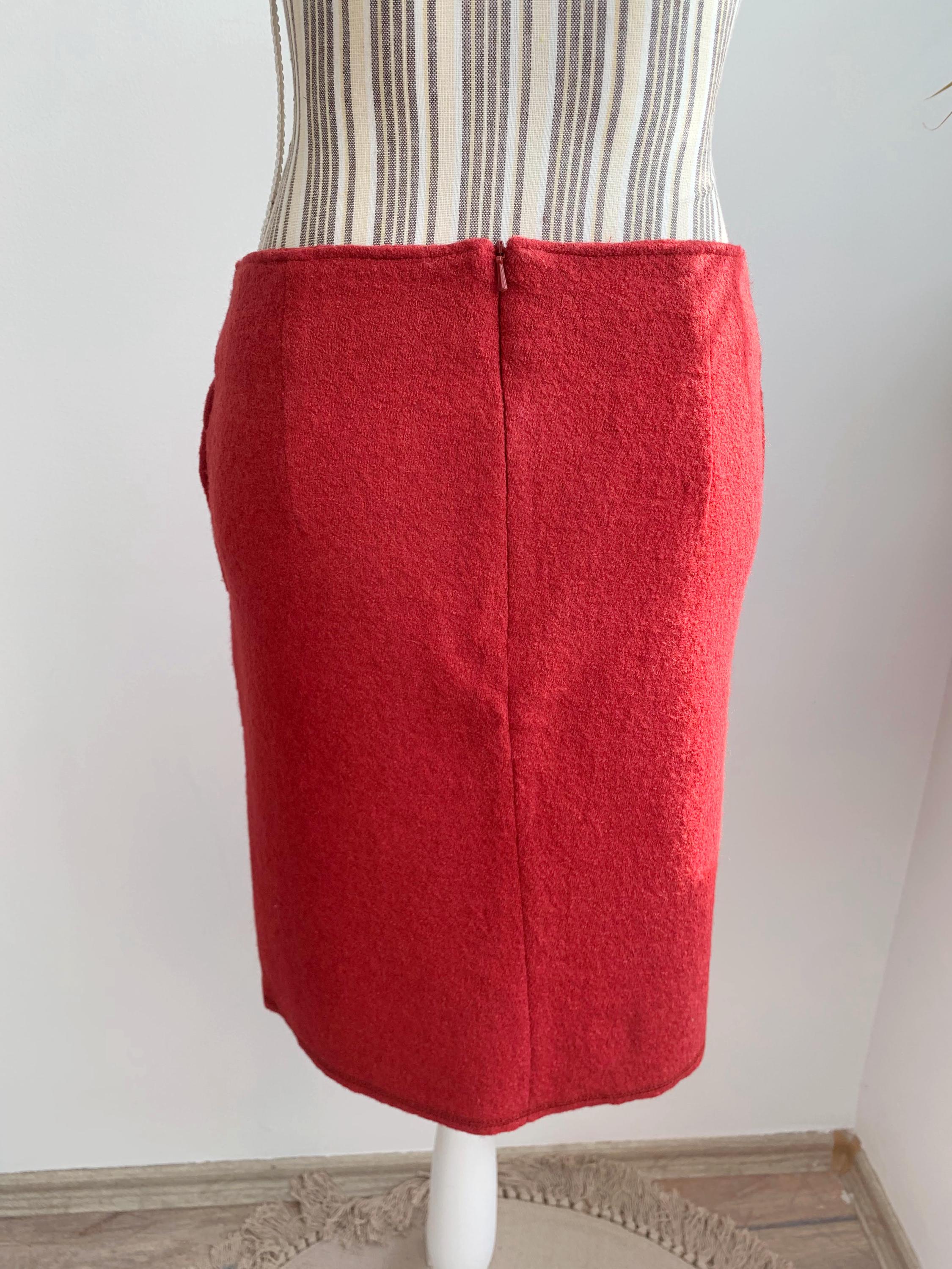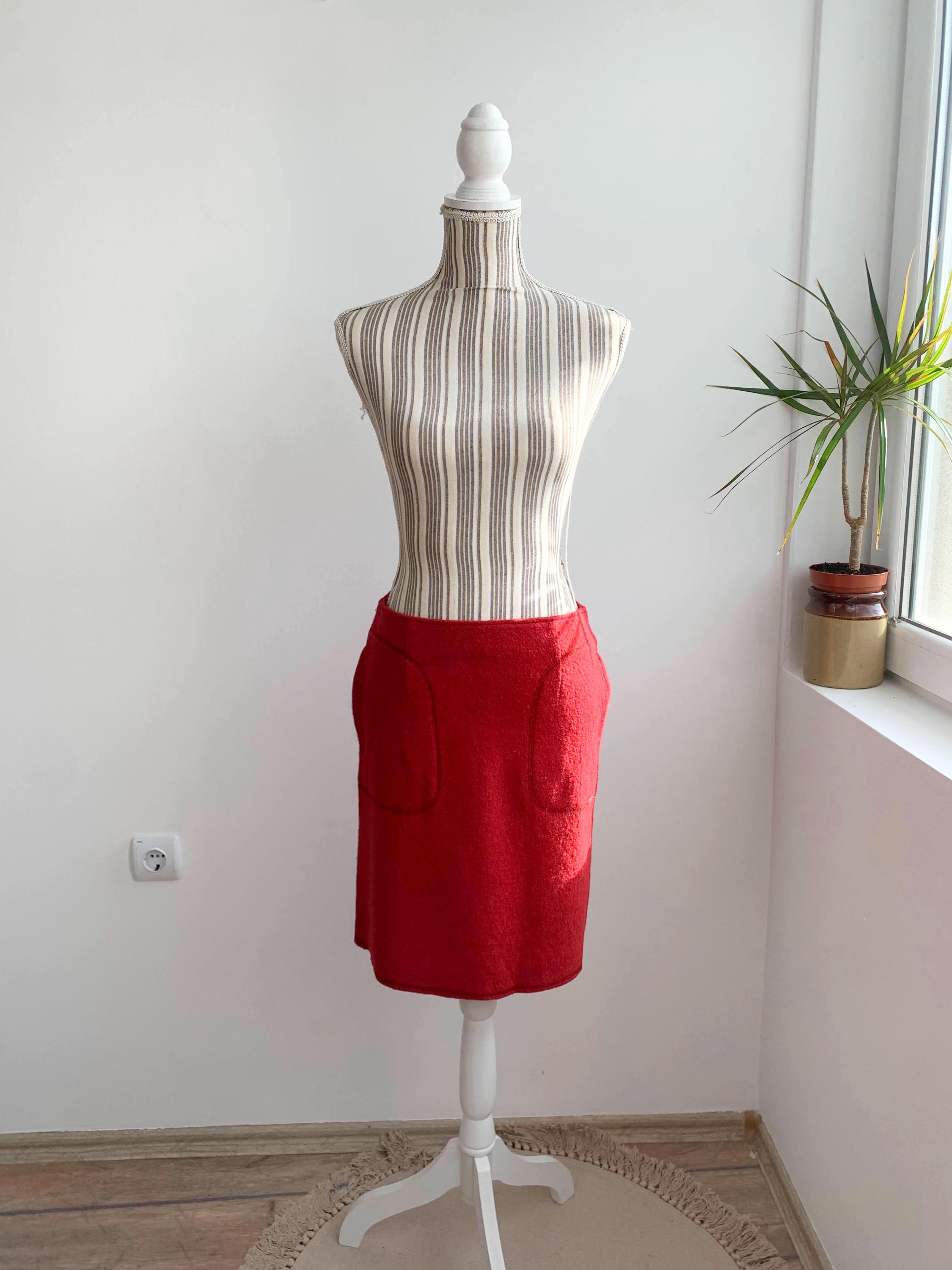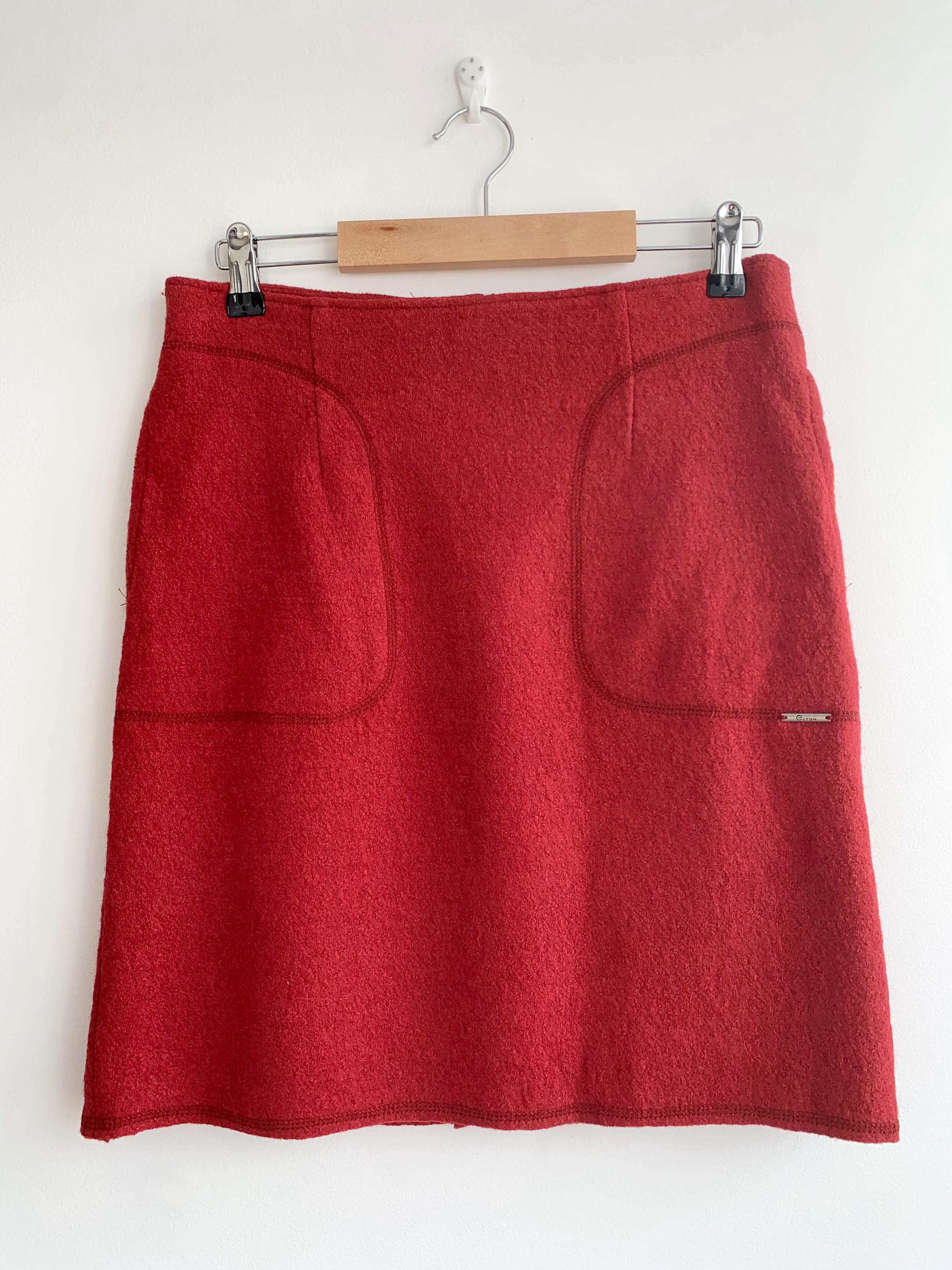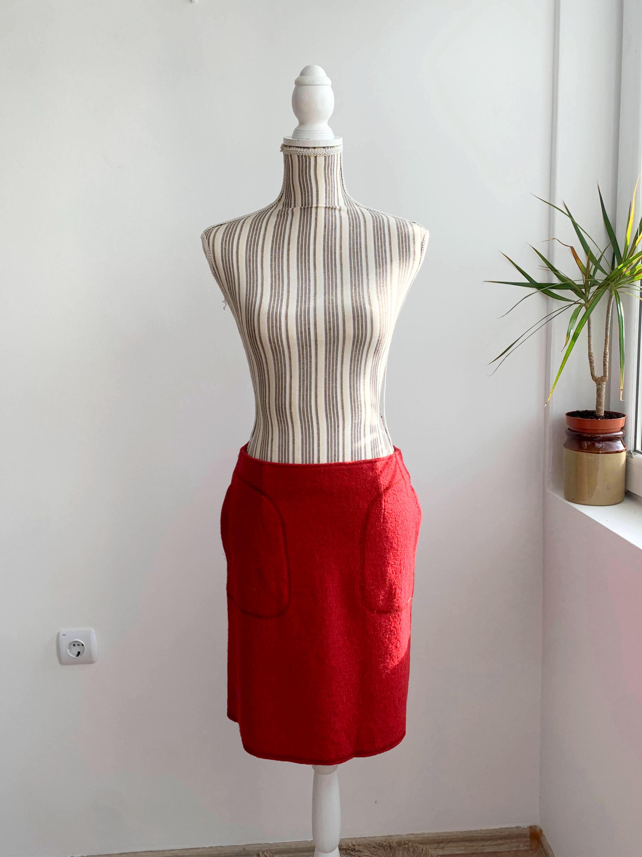 Beautiful vintage short wool blend skirt, made of warm boucle felted wool fabric with back zipper and polyester lining. This burgundy red wool skirt has two side pockets. The size marked is 34, which fits like size S. Please check the measurements below: