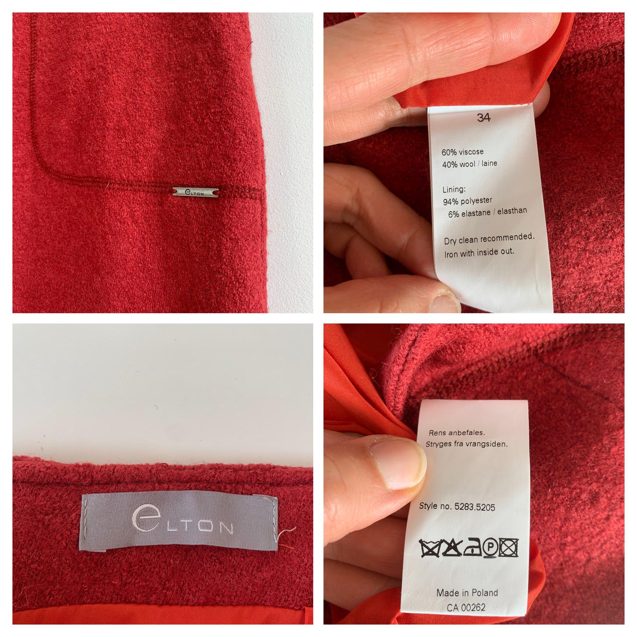 Materials: 60% viscose, 40% wool ; lining 94% polyester, 6% elastane