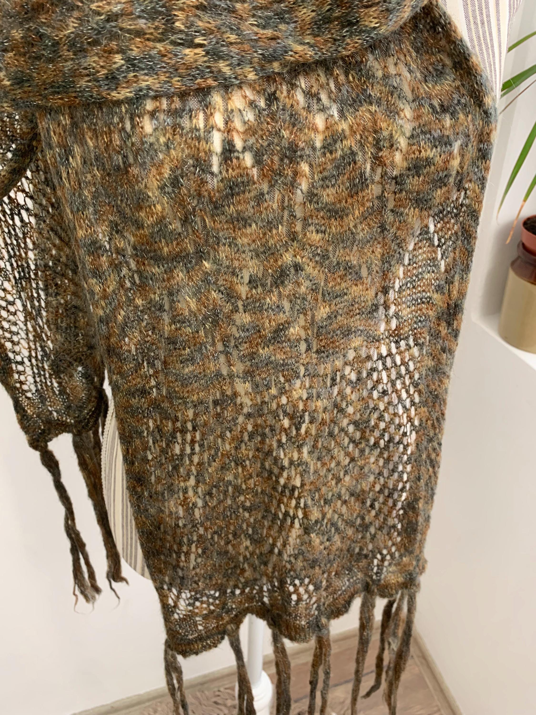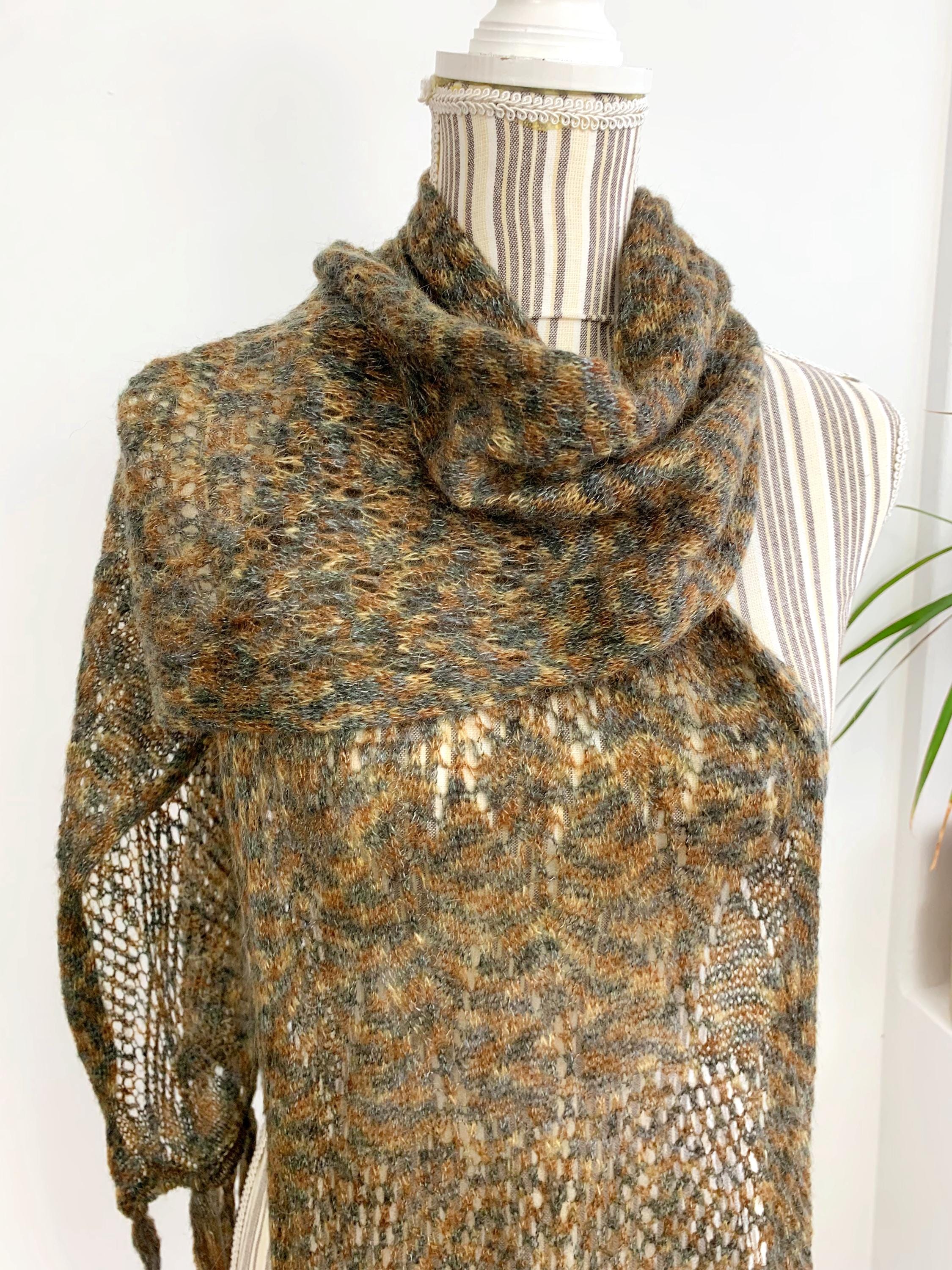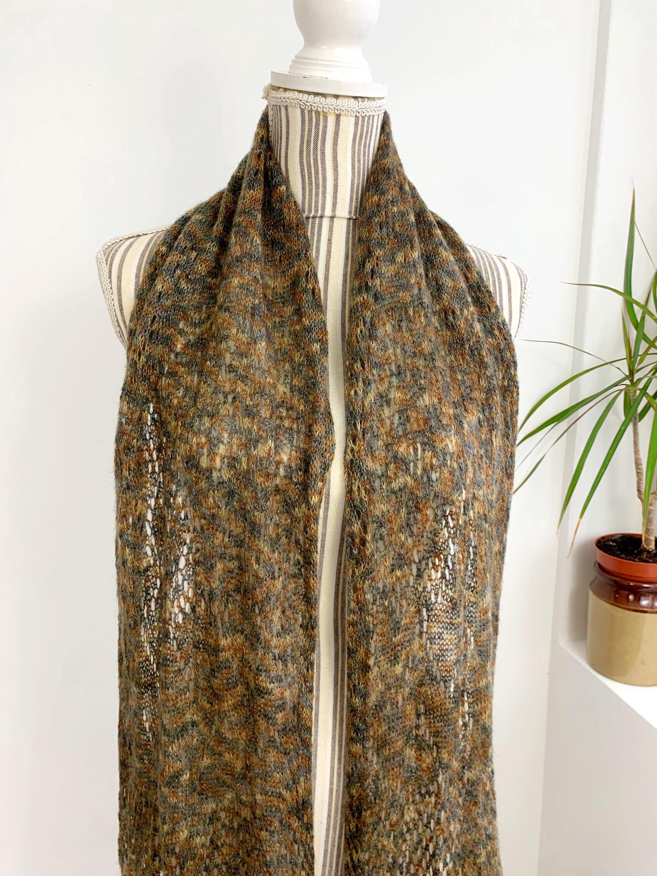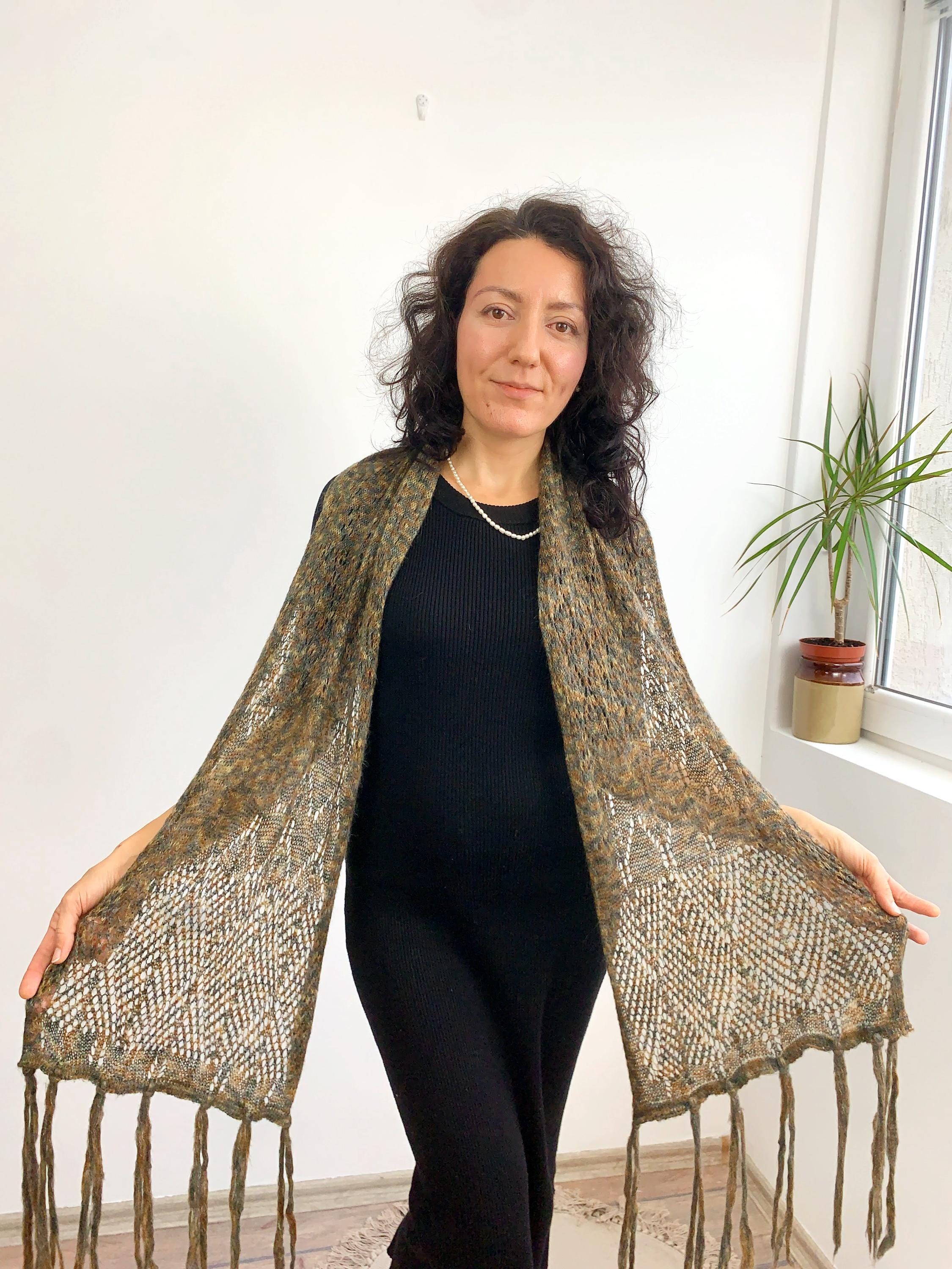 This is a vintage olive green camel brown grey ombre gradient soft mohair wool scarf with tassels. This women knitted scarf is perfect for the autumn season, it will keep you warm and cozy. Perfect gift for your mother or grandmother.