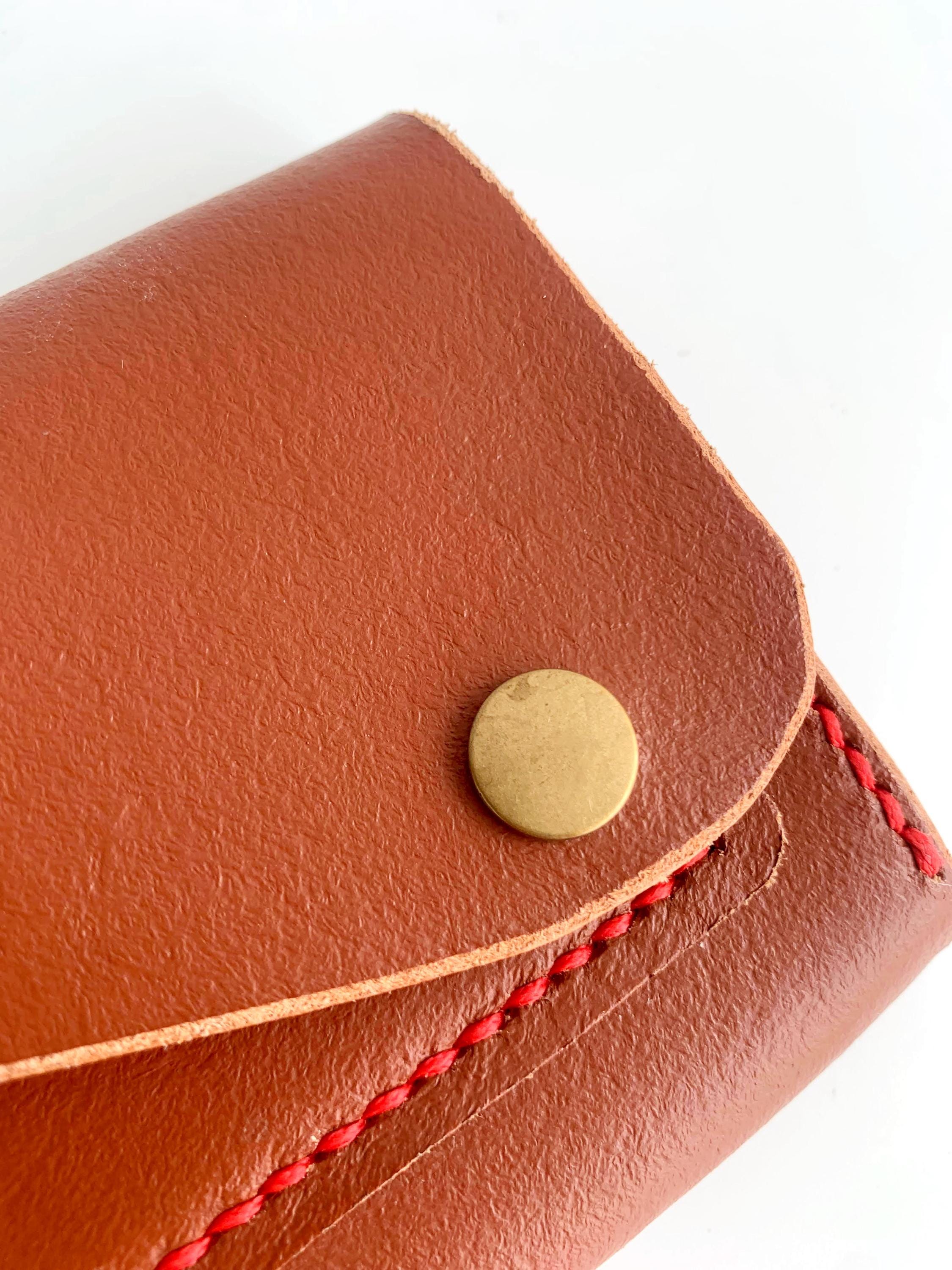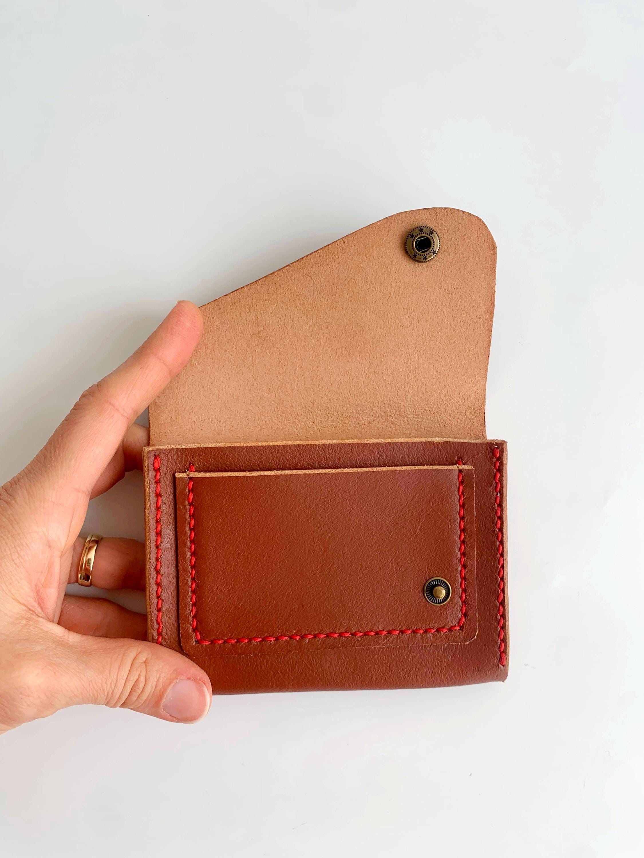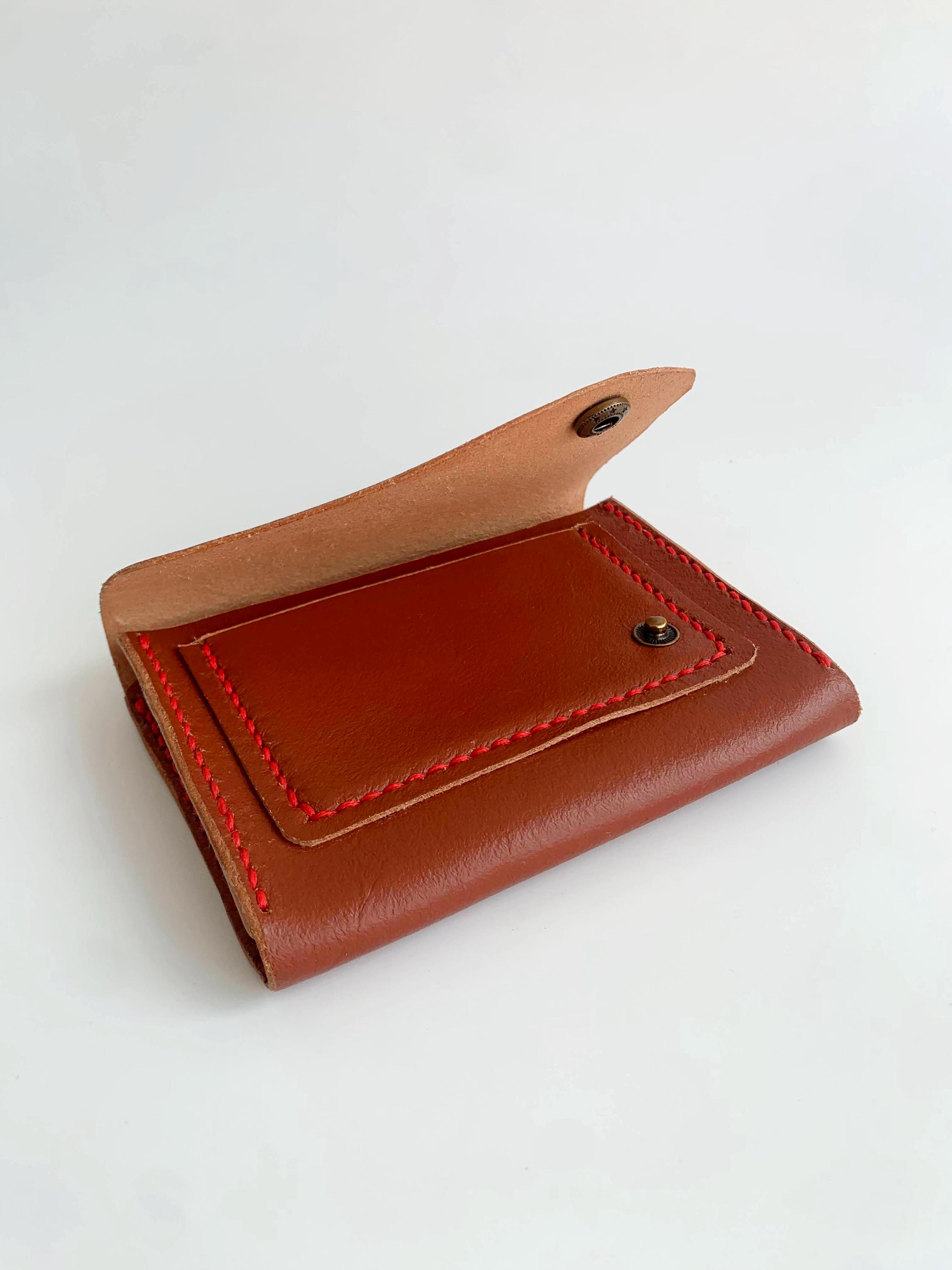 This is a vintage 70s real leather slim leather wallet in brown color with snap button closure and two compartments. Simple minimalist unisex wallet for men or women. This small leather wallet is made of genuine leather