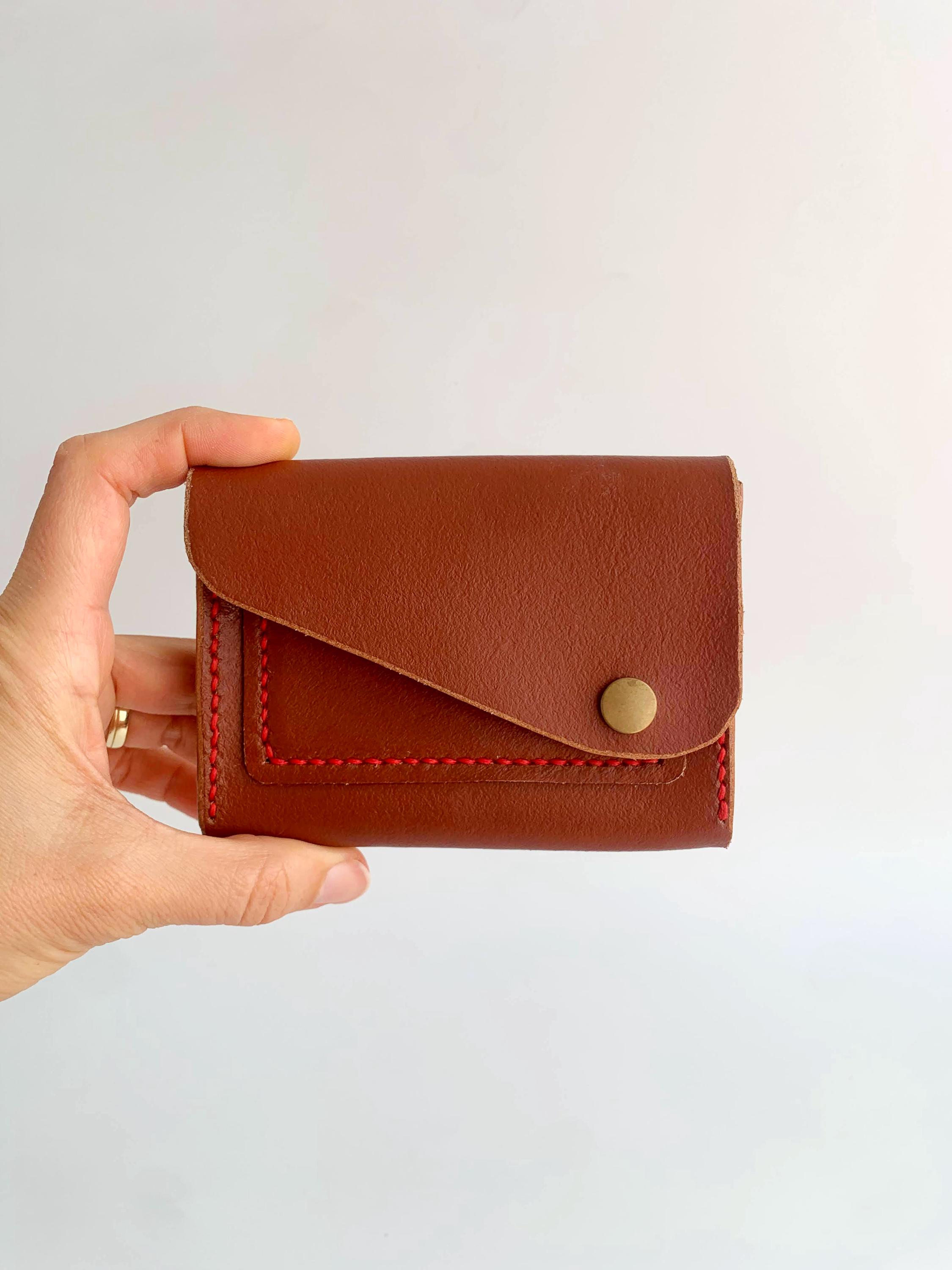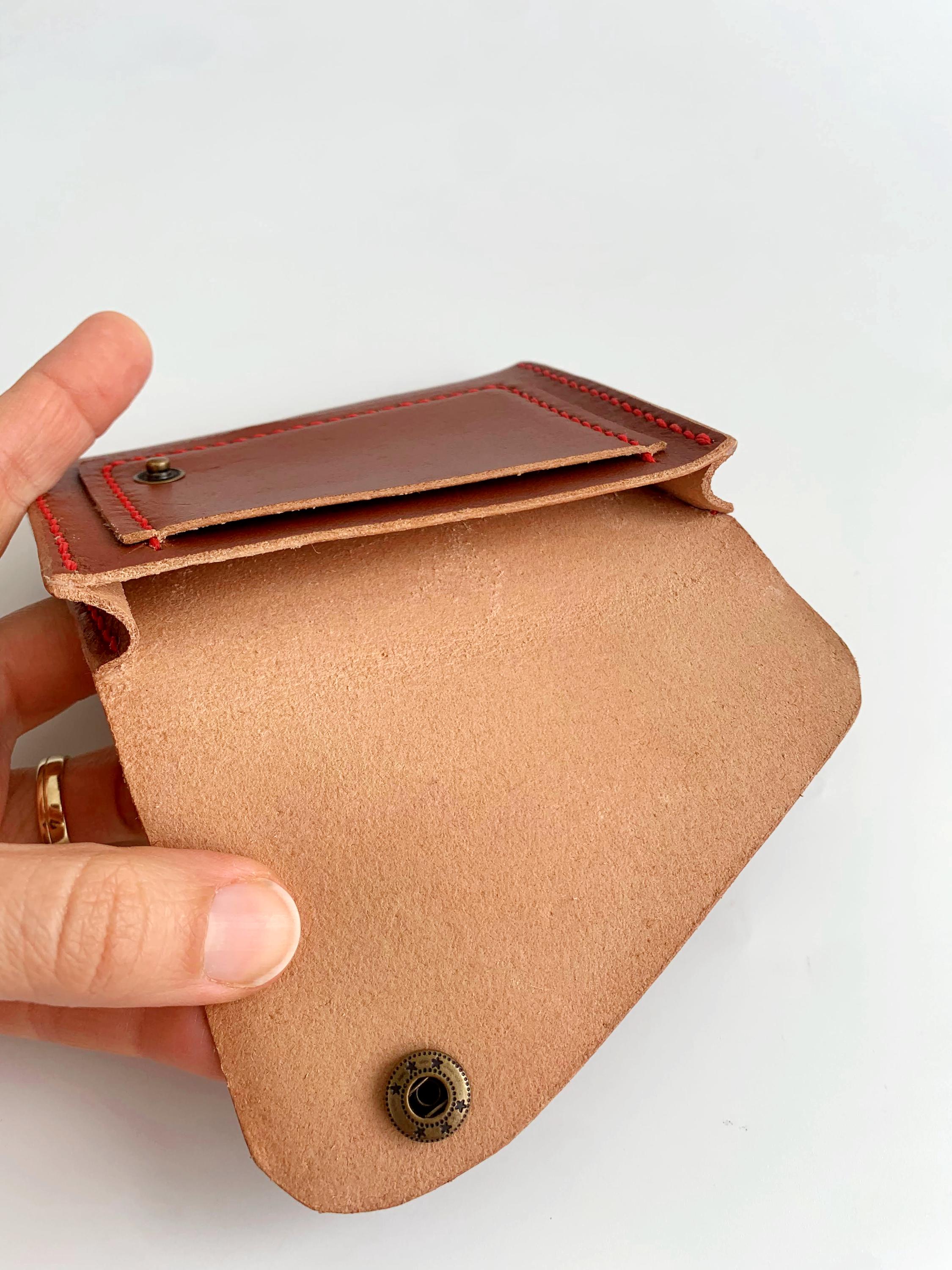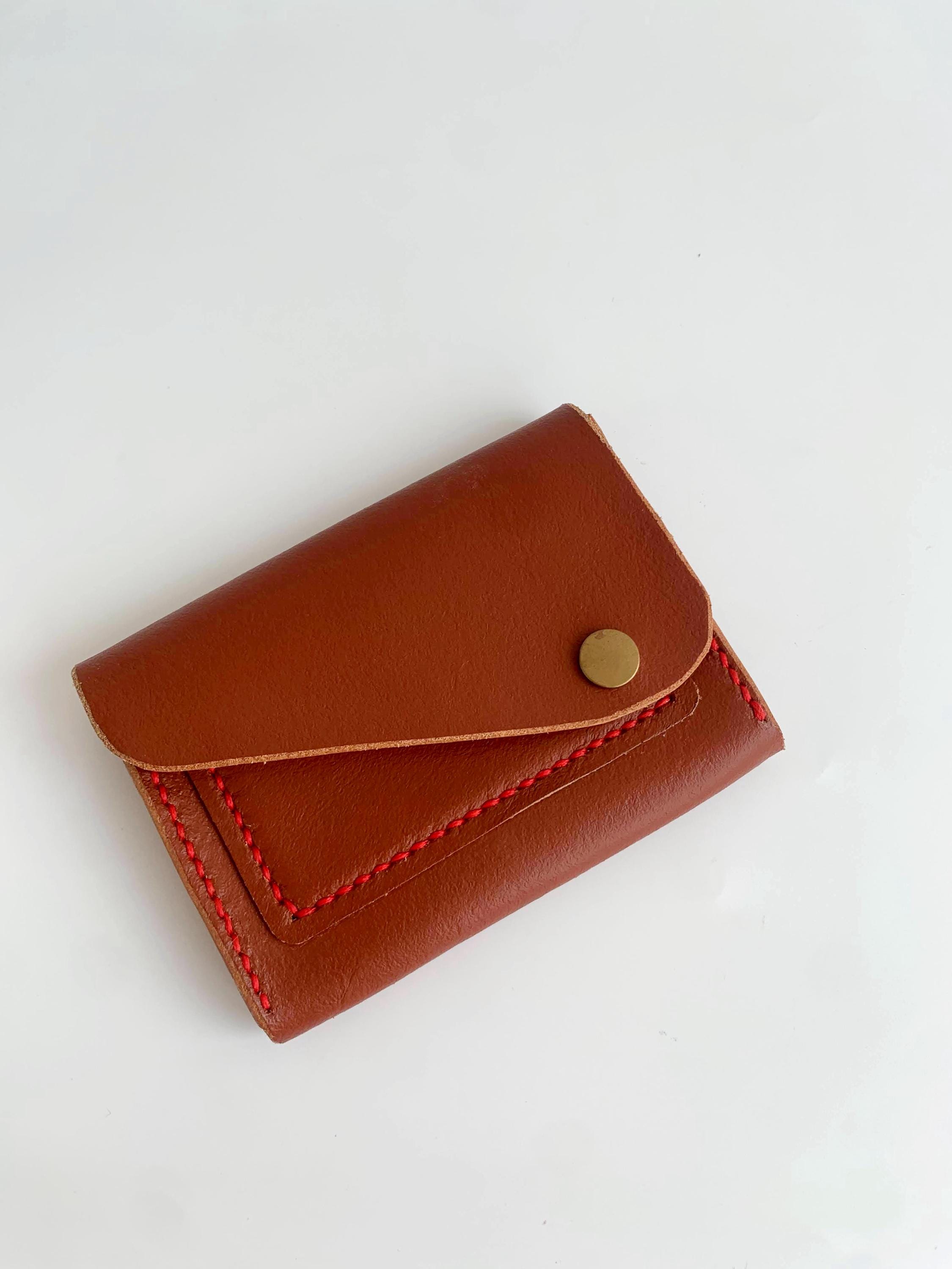 This is a vintage 70s real leather slim leather wallet in brown color with snap button closure and two compartments. Simple minimalist unisex wallet for men or women. This small leather wallet is made of genuine leather