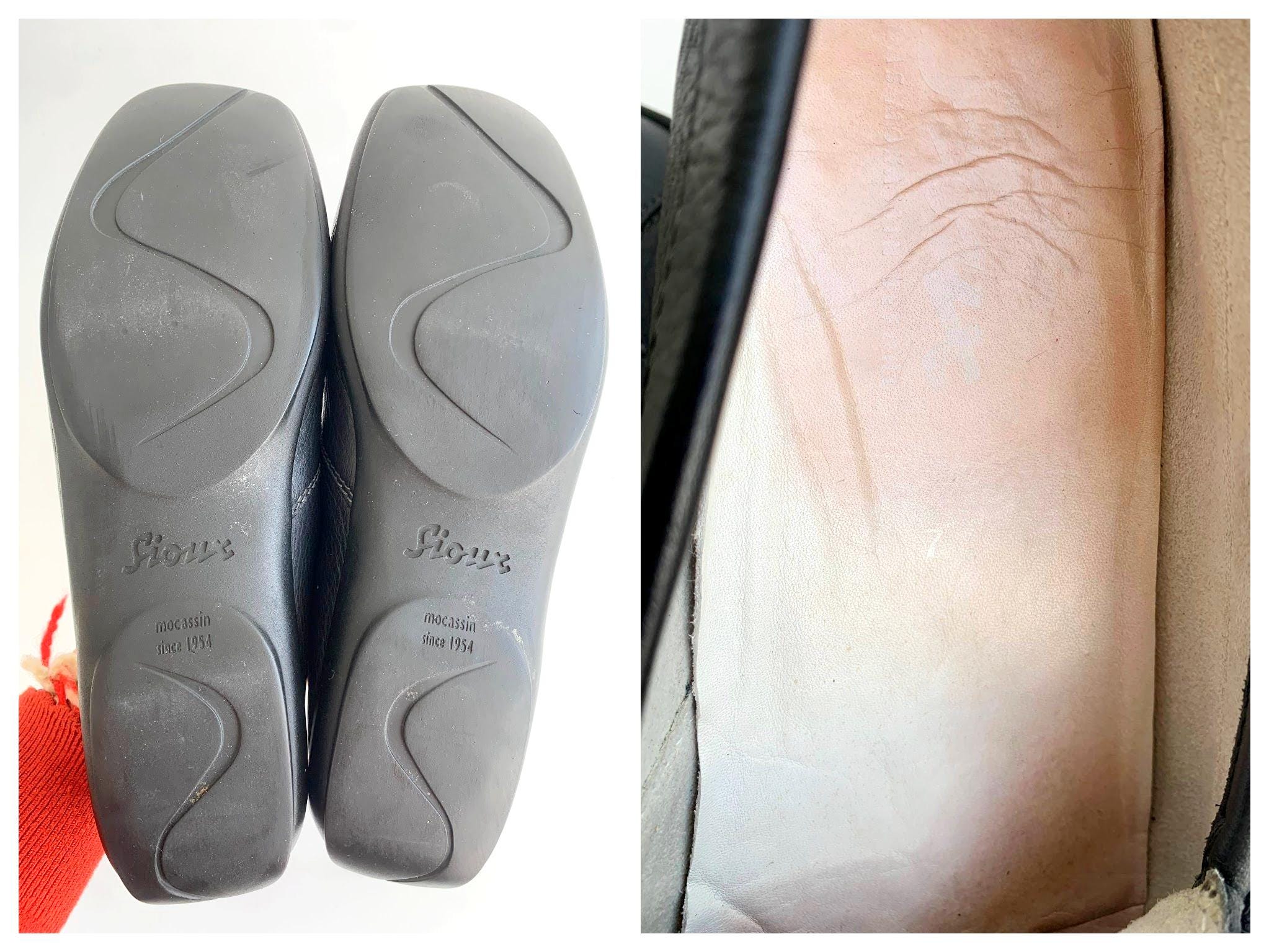 These are vintage 90s black leather loafers for women by Sioux. These black leather slip on shoes are made of soft pebbled genuine leather, real leather interior and rubber soles. These classic casual moccasins have a low sole and they are super comfy to walk in all day long. You would look stylish and yet comfortable. Perfect daily flats that your feet will love. The size marked us UK 7, which corresponds to EUR 40, US 8 1/2. Please check the measurements below.