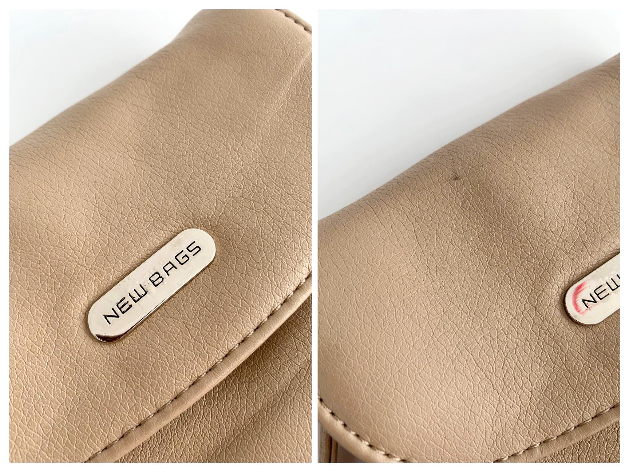 Condition: This beige leather purse is beautifully preserved with some minor of wear - there are some creases on the vinyl leather and some scratches on the metal plate, capture in the close up photos.