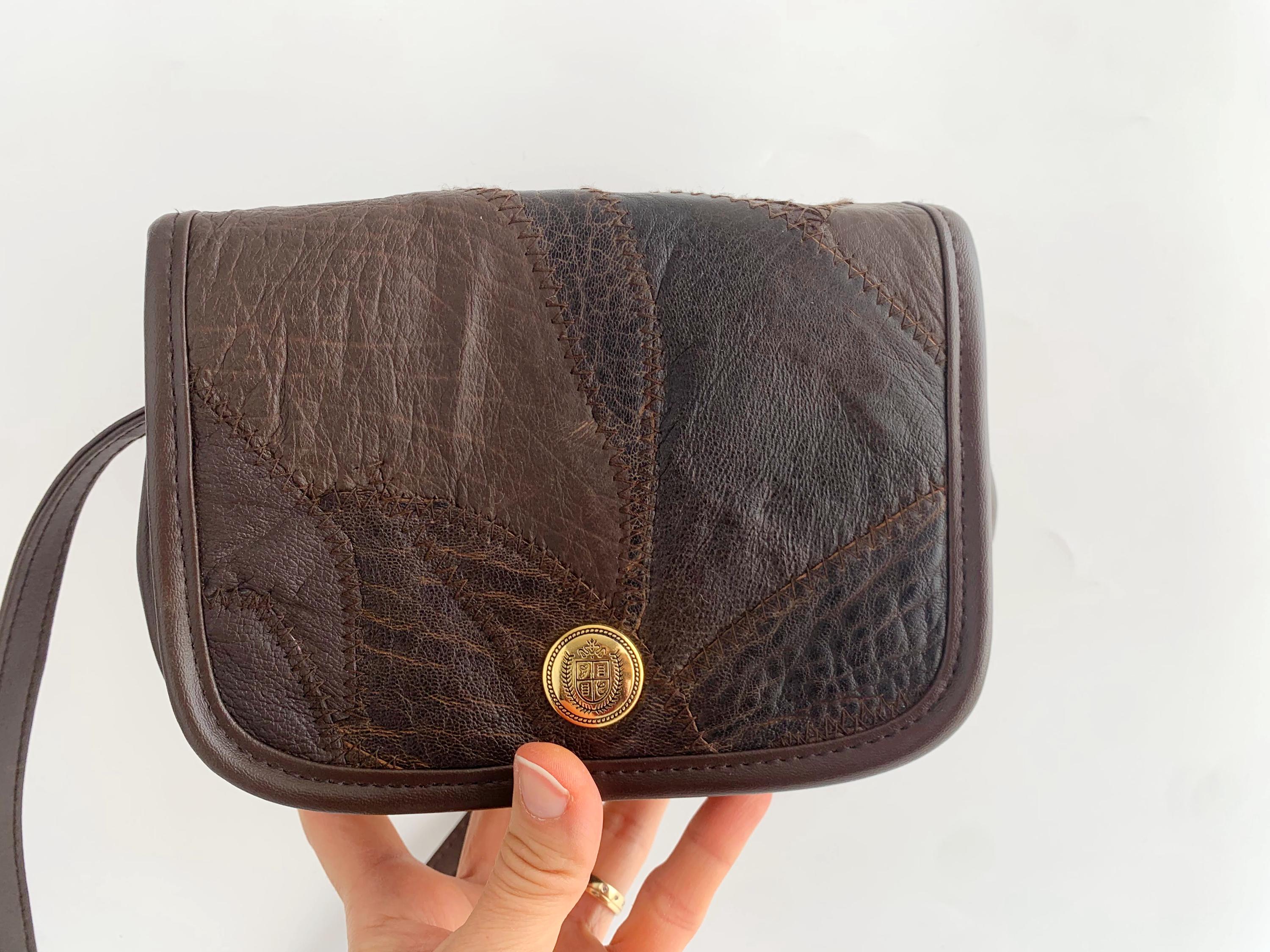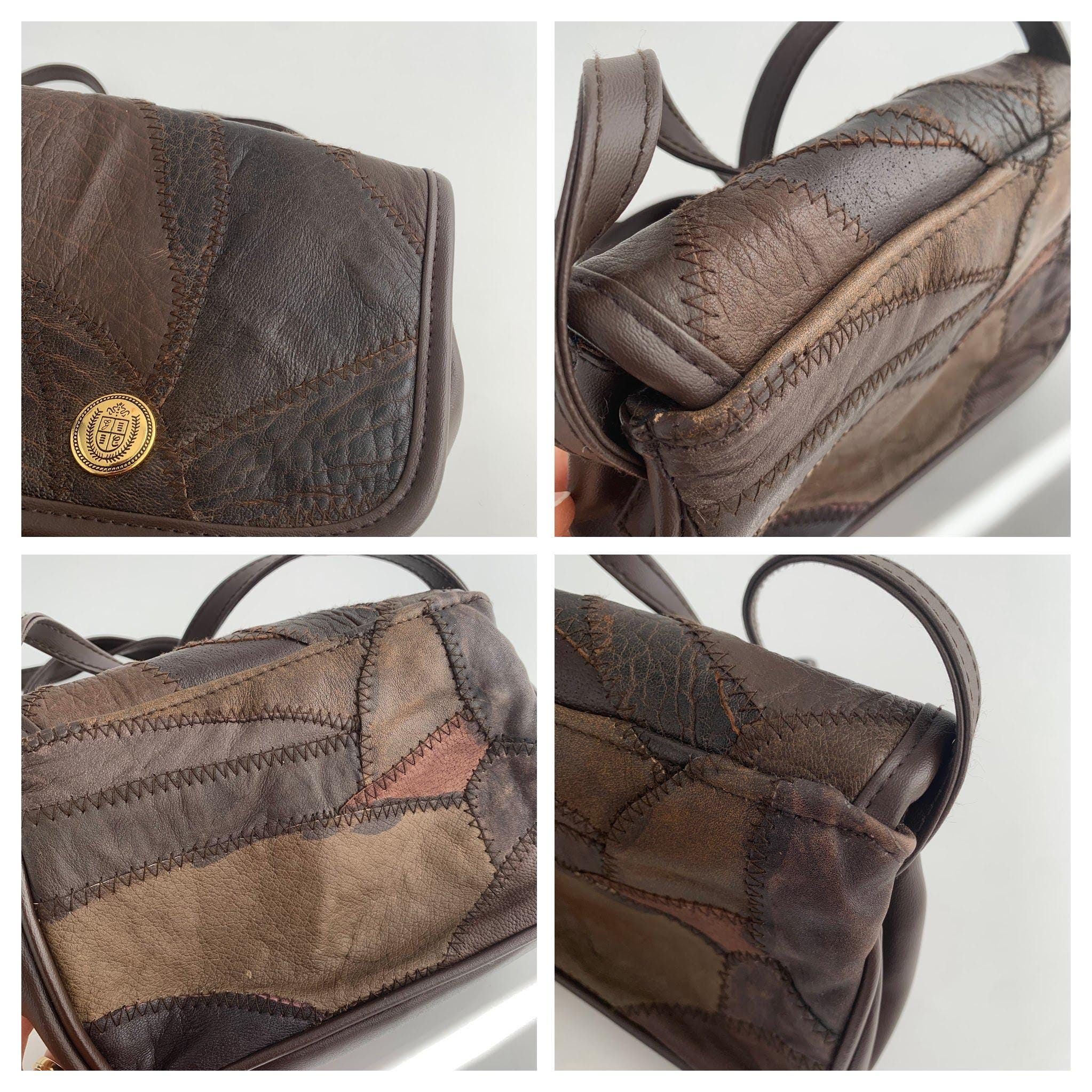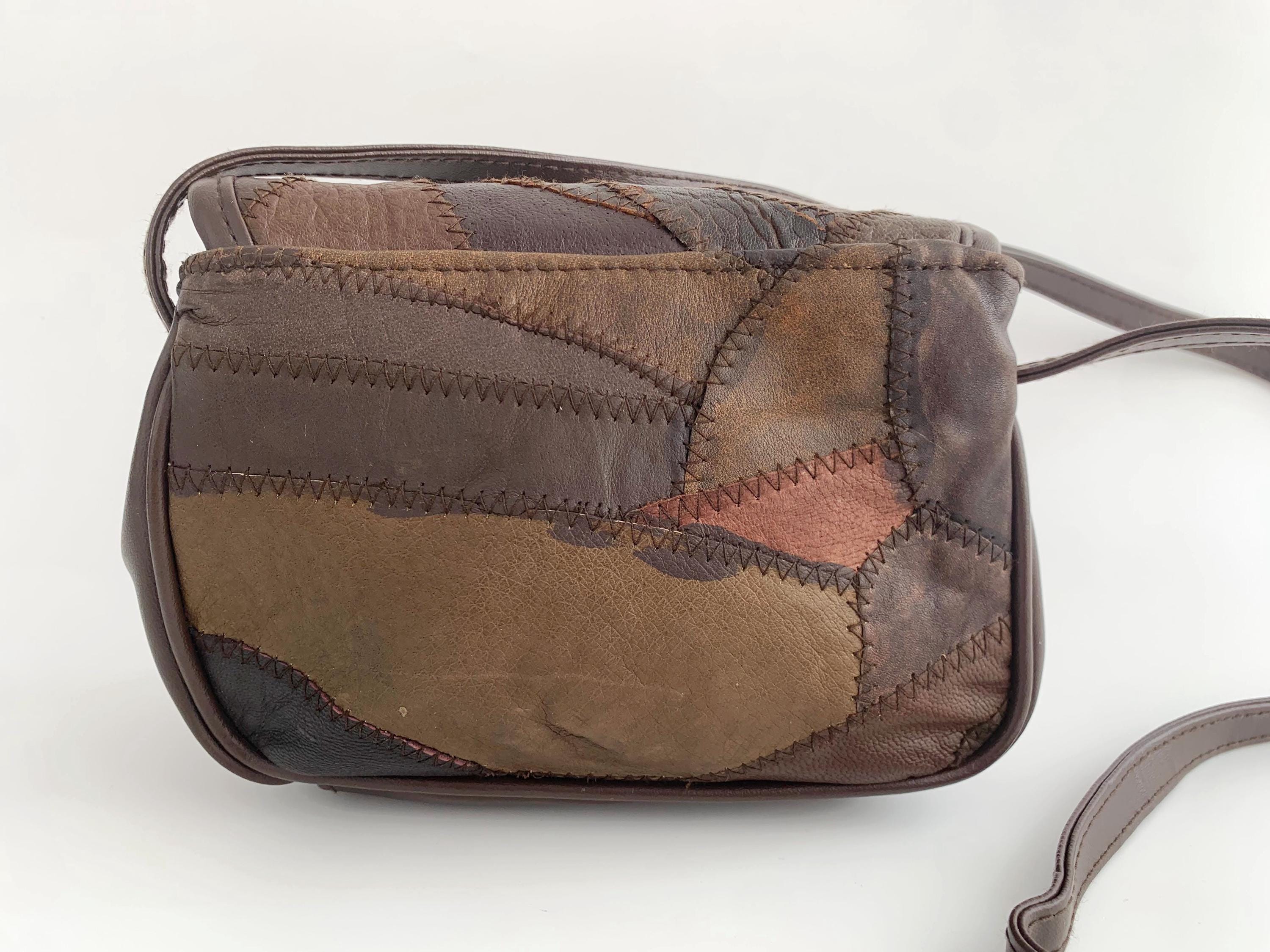 This is a vintage 90s leather patchwork brown leather satchel purse with adjustable shoulder strap. This boho small size crossbody bag is made of genuine leather patches with faux leather sides and bottom. This boho shoulder purse has two compartments and one zipper pocket. The interior is lined with cotton fabric. You can easily organize all your belongings so you can access everything you need in a split second. This patchwork leather purse will be your go to purse for everyday use.