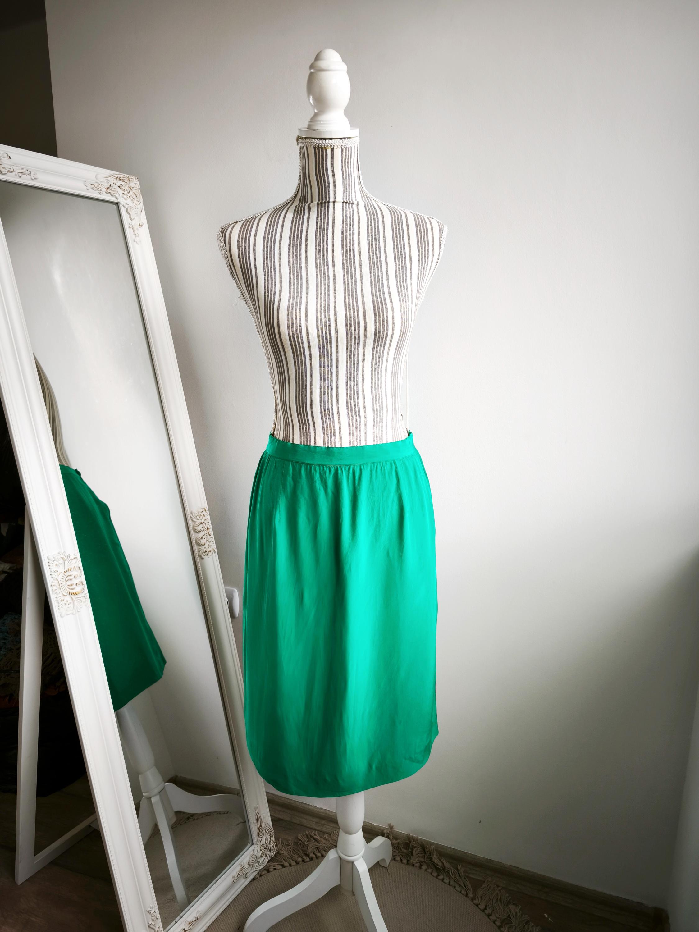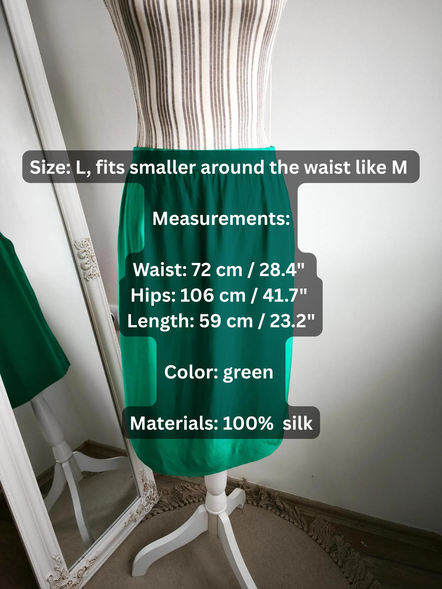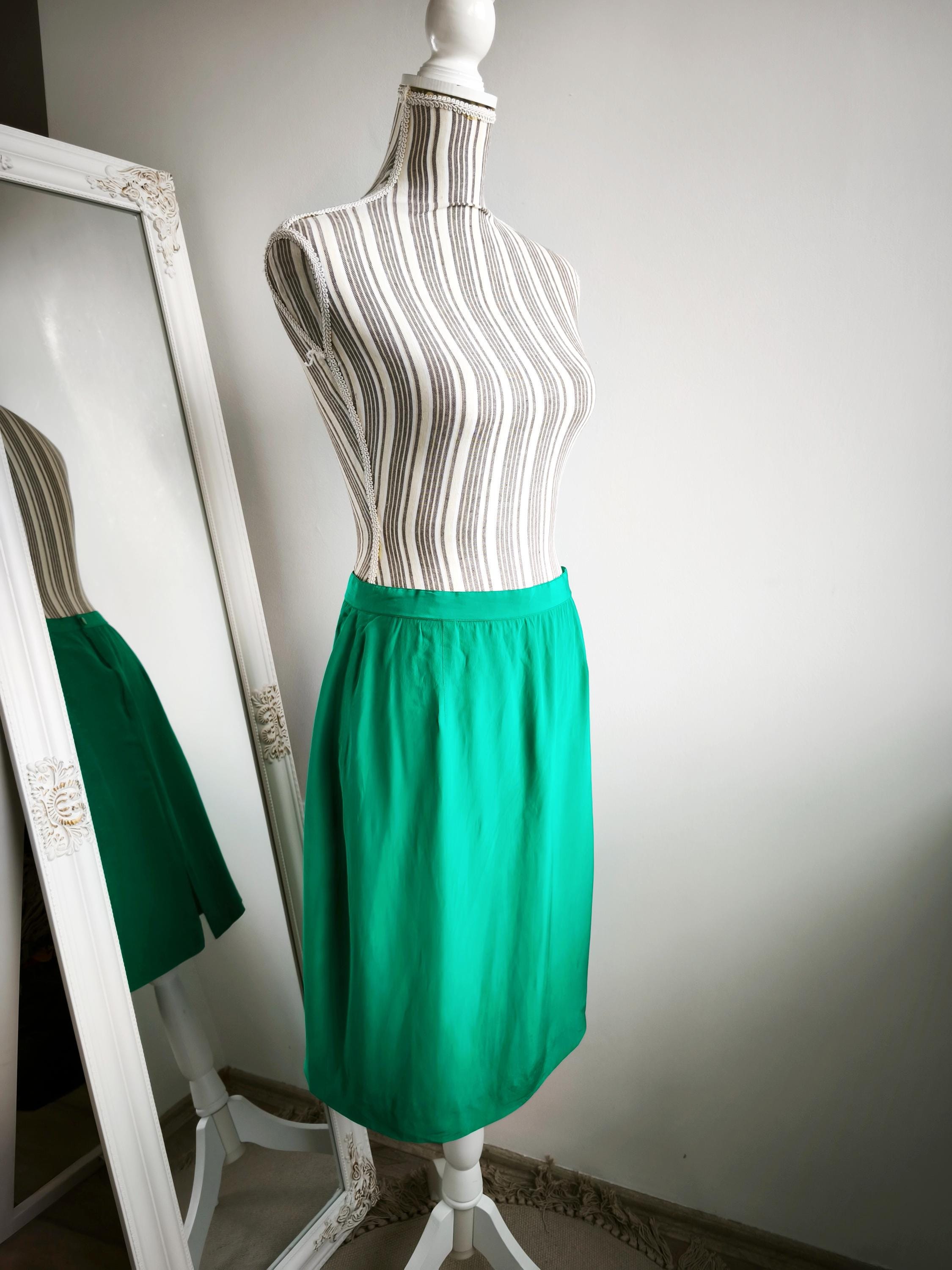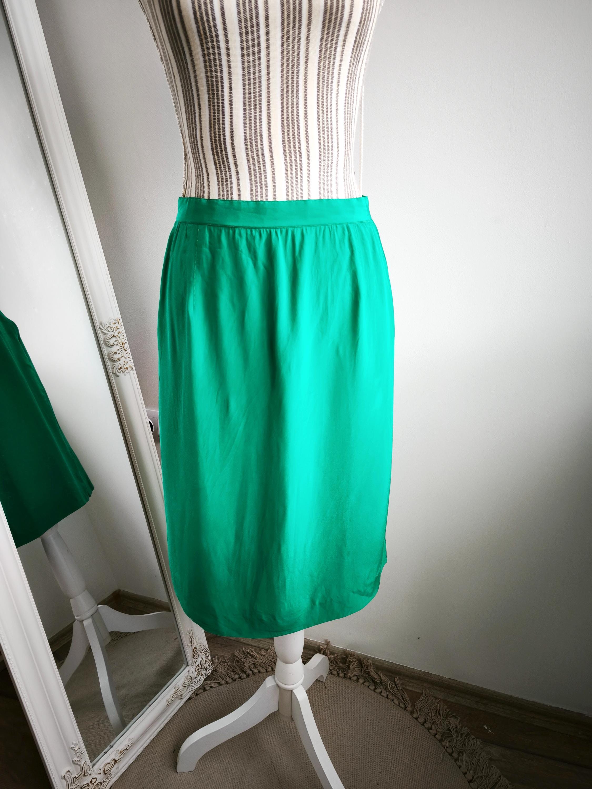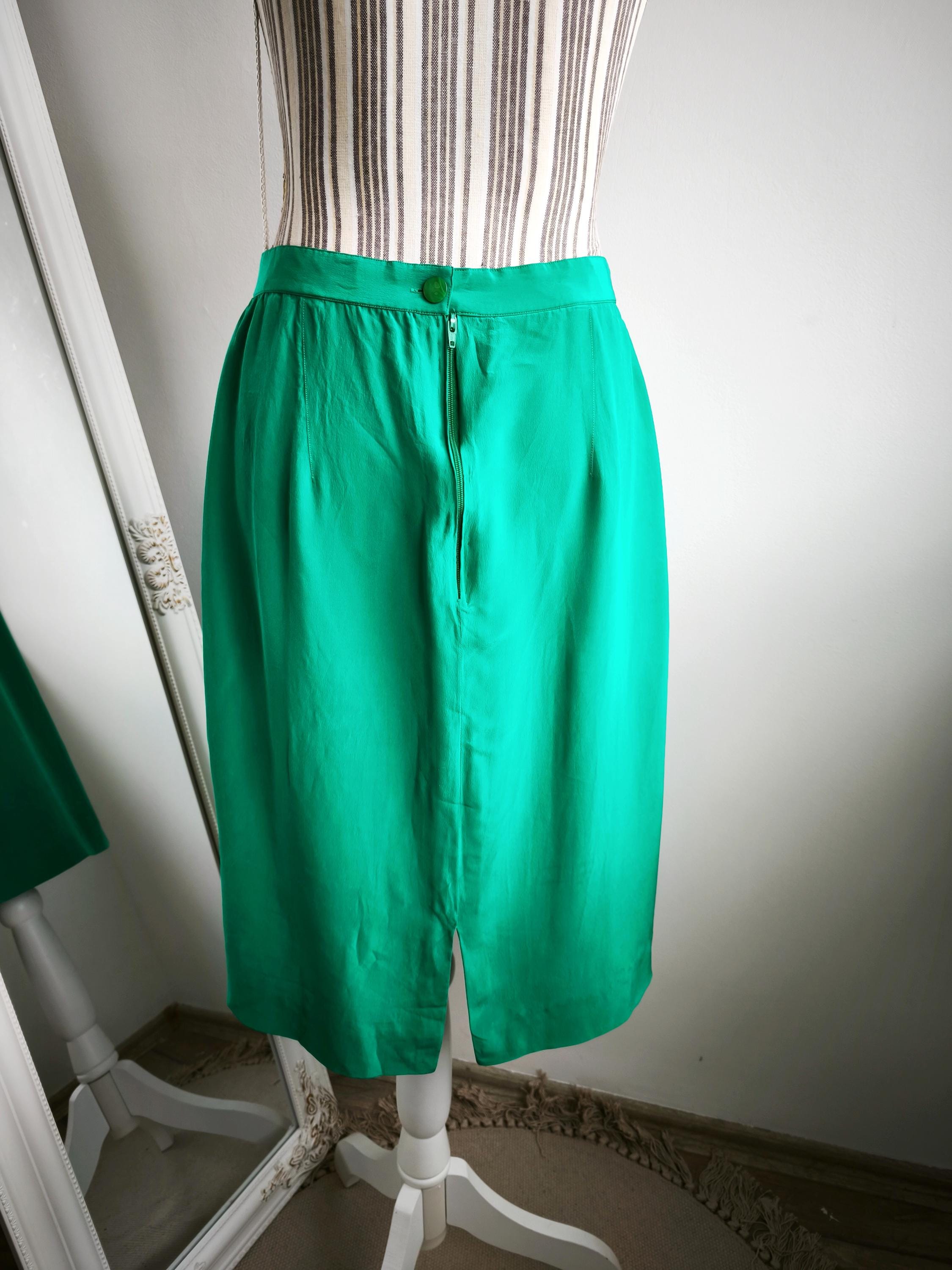 Step into timeless elegance with this pre-loved Vintage 80s Teal Green Pure Silk Pencil Skirt for Women by Spirit by Gio Mariotti. Crafted from 100% pure silk, this skirt effortlessly blends vintage charm with modern sophistication. The sleek pencil silhouette and vibrant green color make it the perfect statement piece for both professional and special occasion wardrobes.
