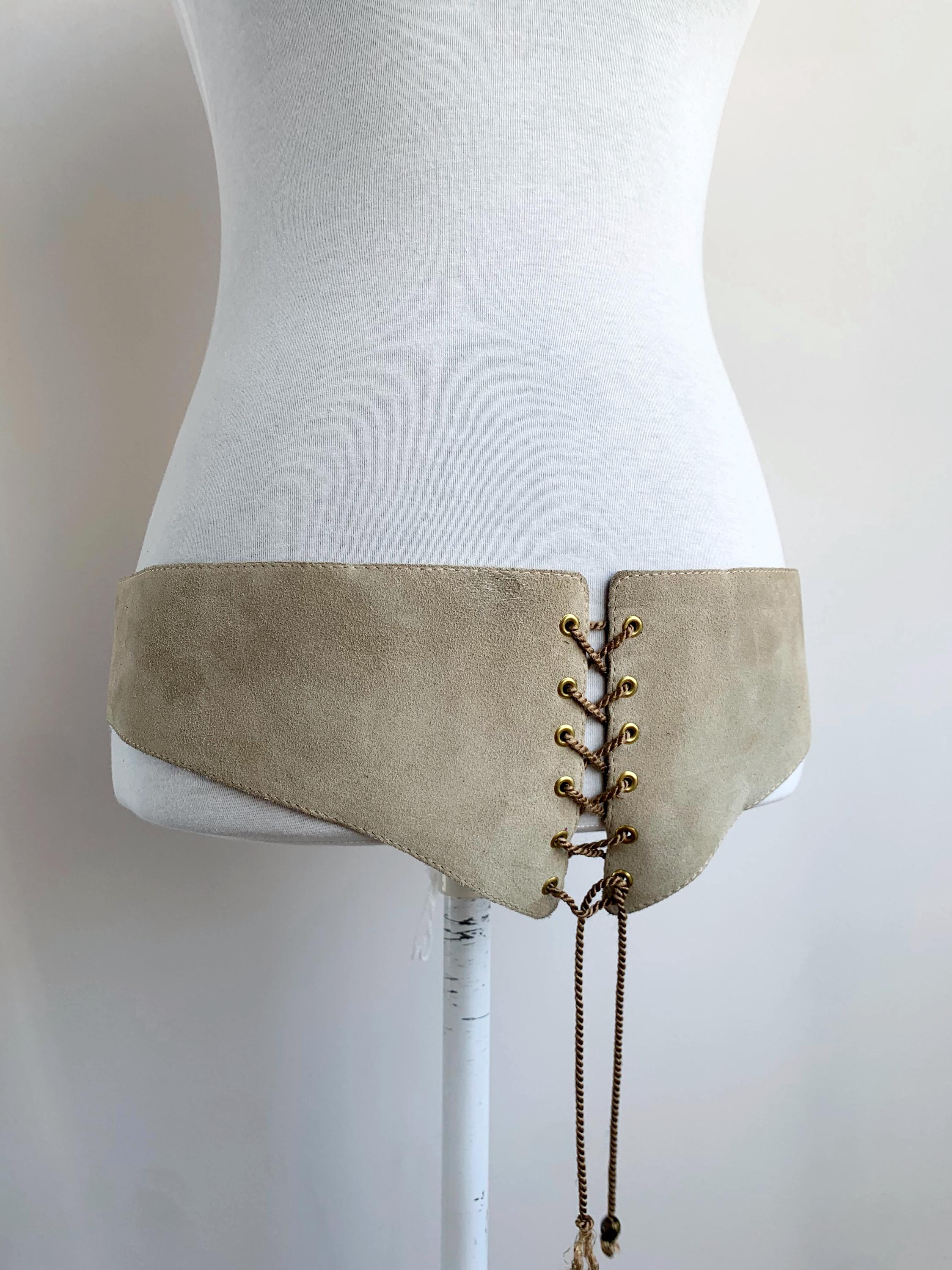 Beautiful vintage suede leather lace up obi belt for women in nude color. This oktoberfest corset belt is made of soft suede genuine leather. This drop waist belt has a lace up front and back closure. You can adjust it at the back with a hook. You can also adjust it at the front with the ties.